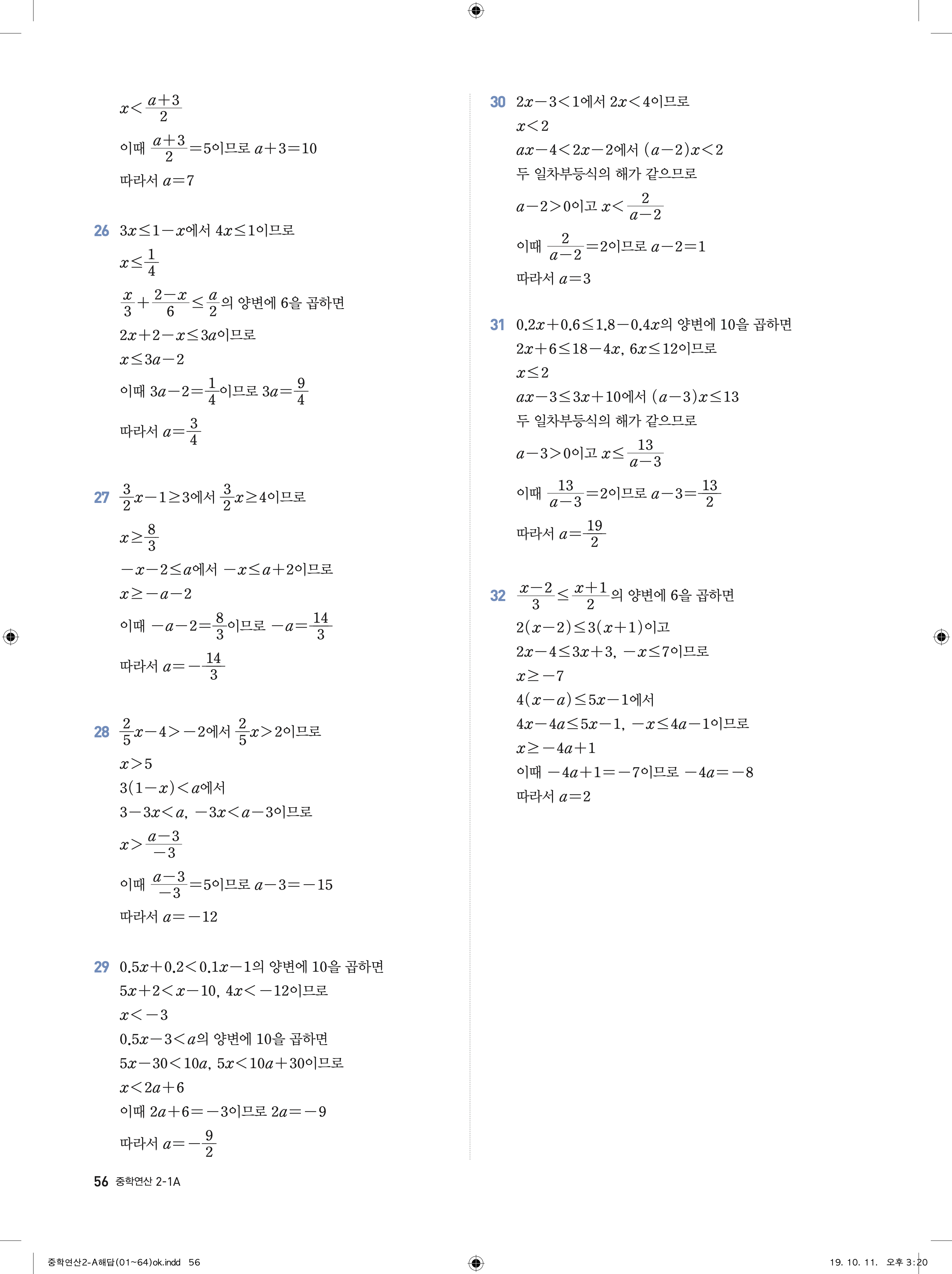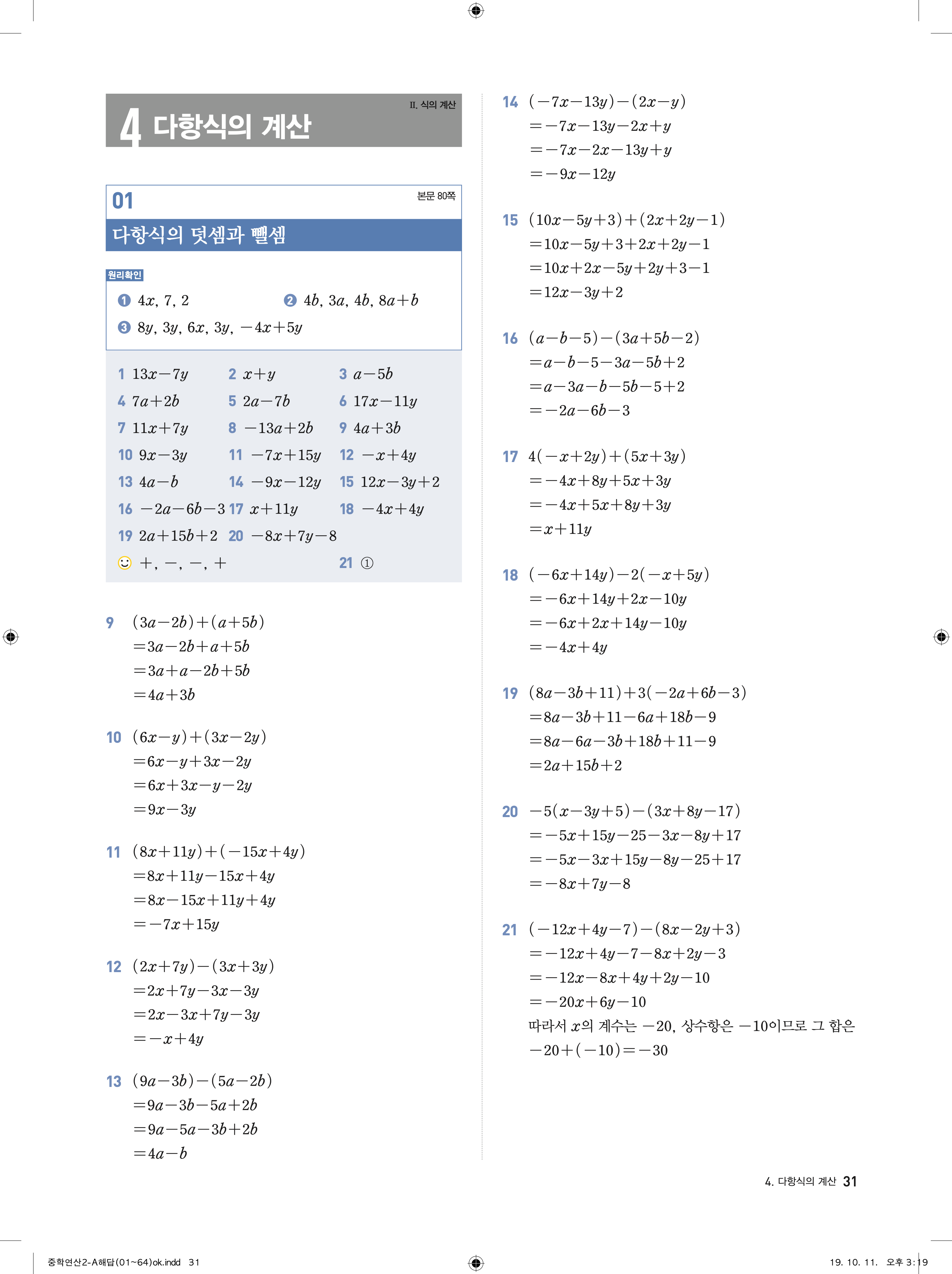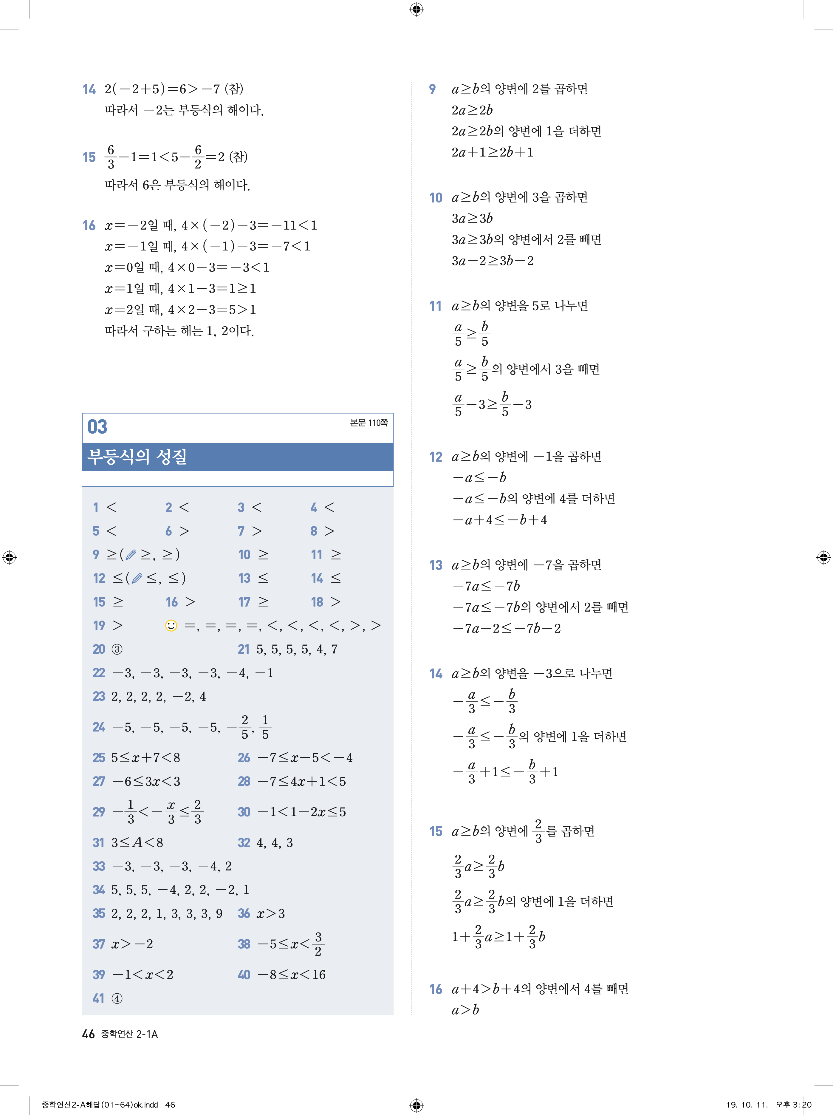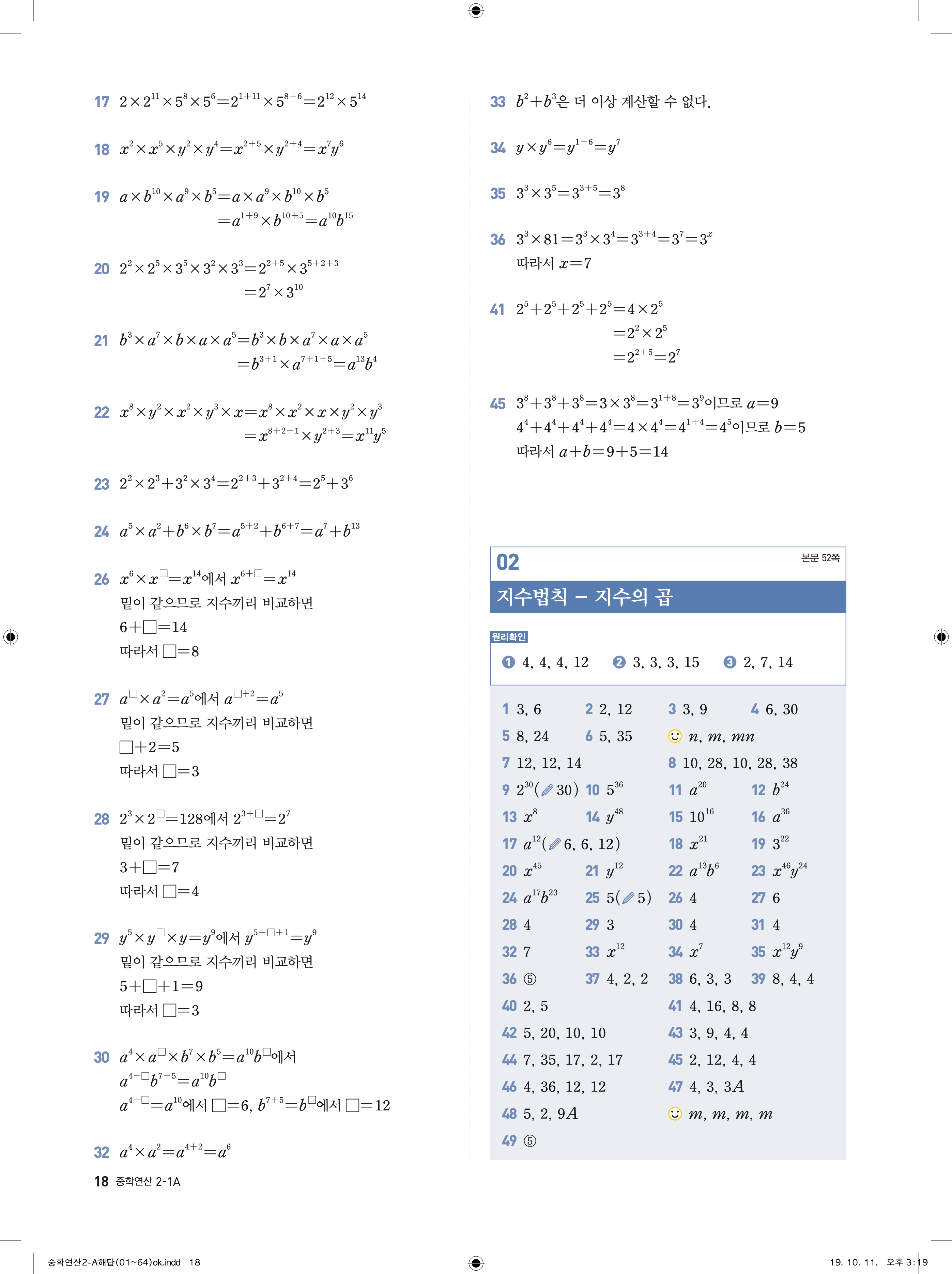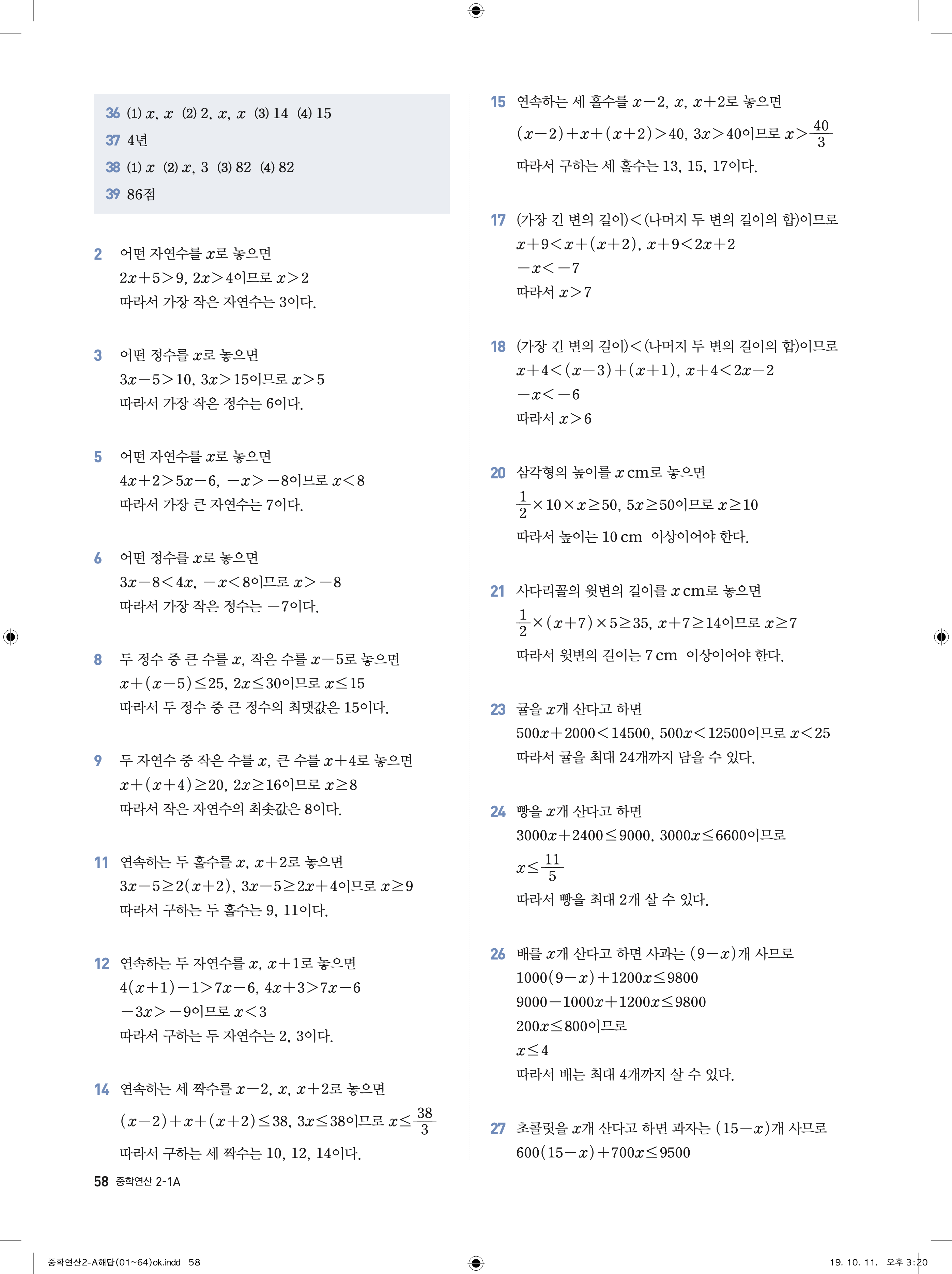 디딤돌 중학연산 2-1A 답지 해설 바로보는 사진답지 빠른답지 모바일최적화