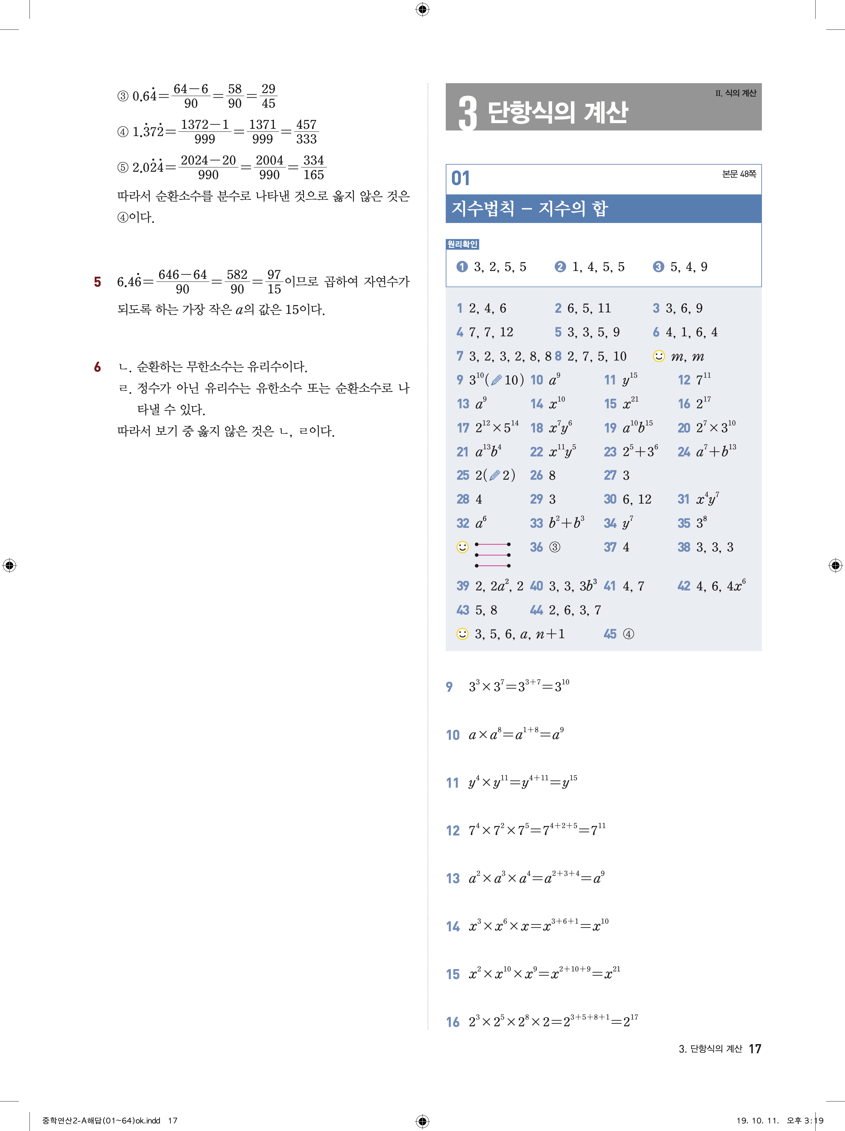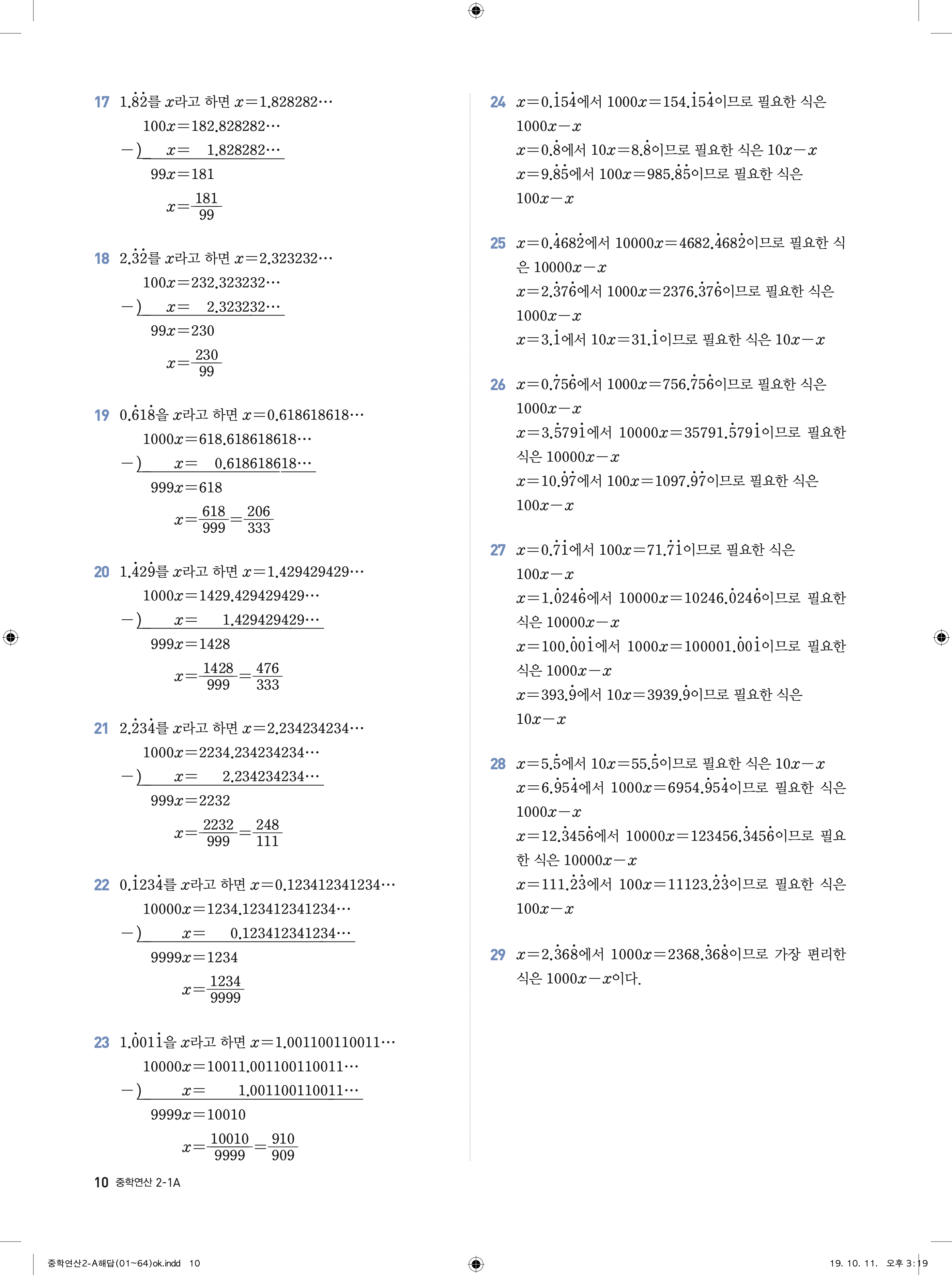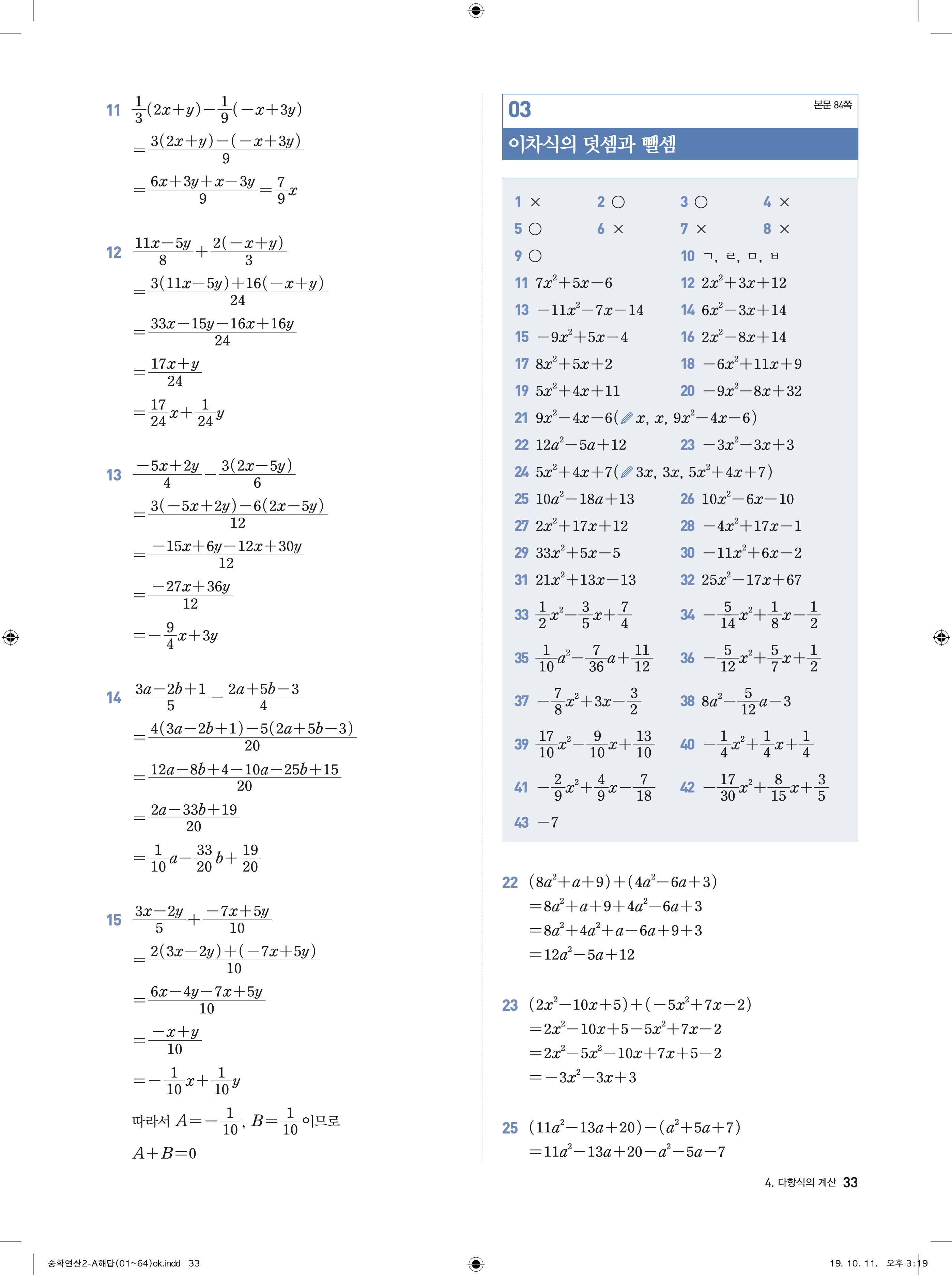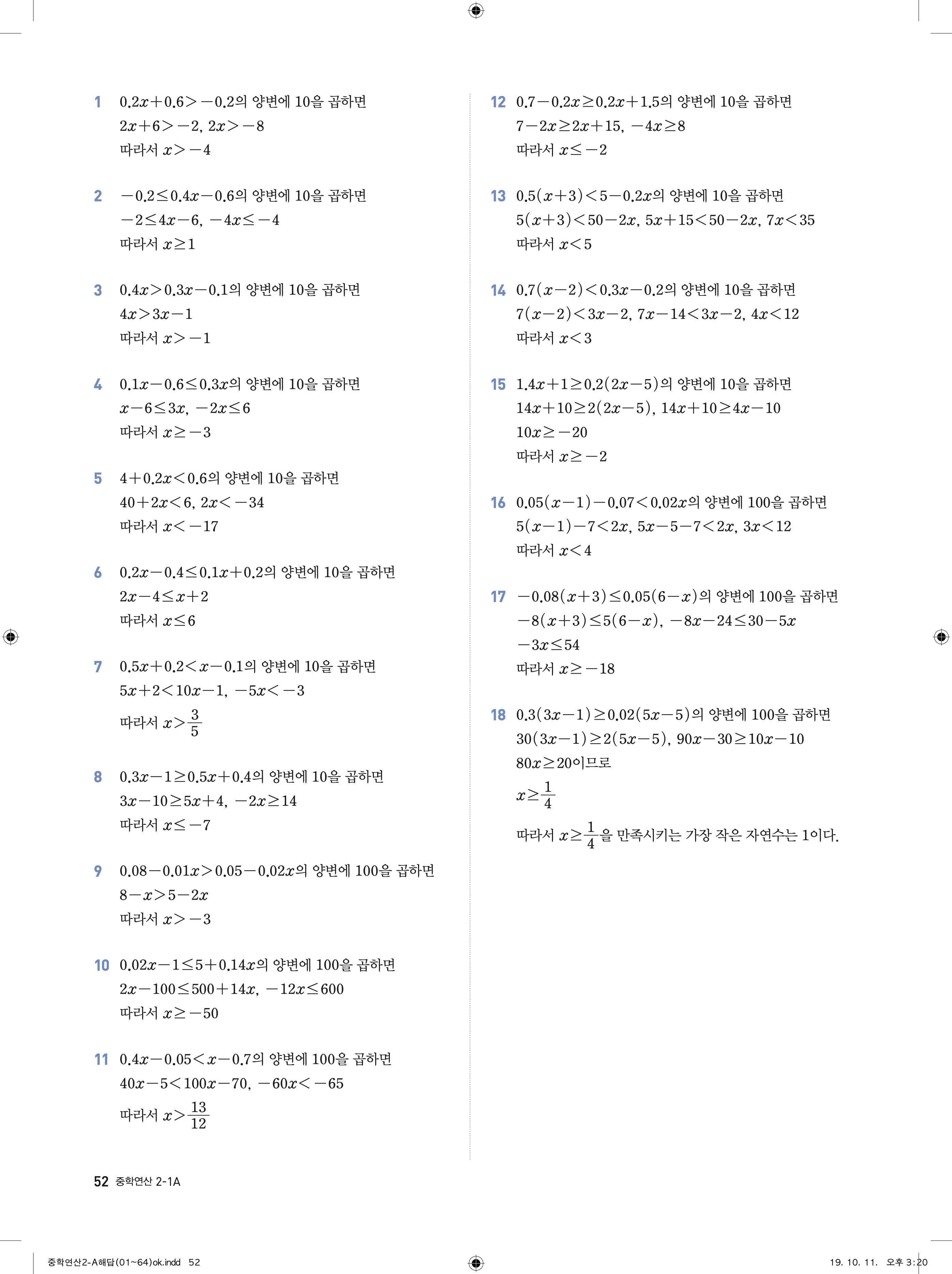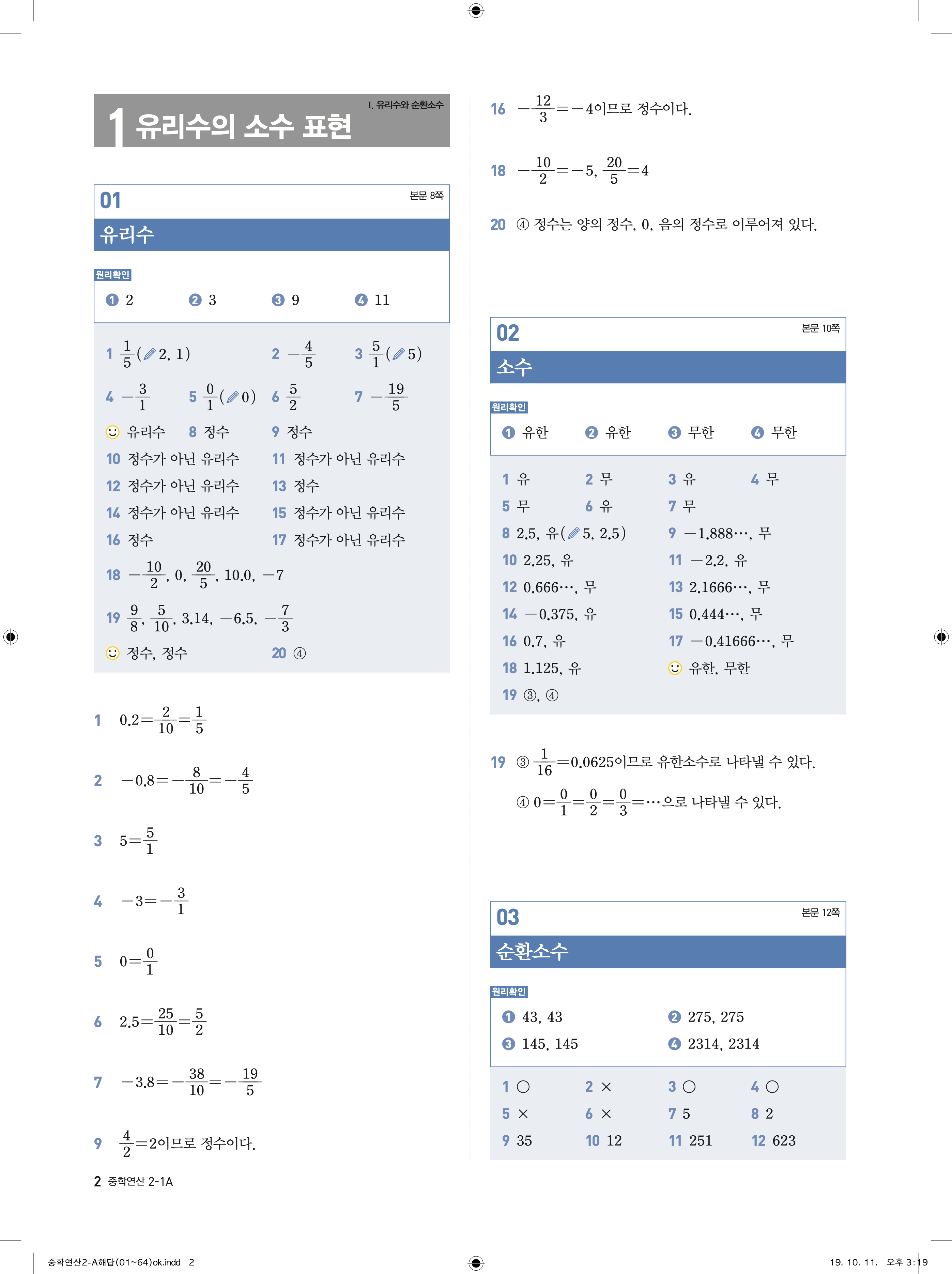 디딤돌 중학연산 2-1A 답지 해설 바로보는 사진답지 빠른답지 모바일최적화