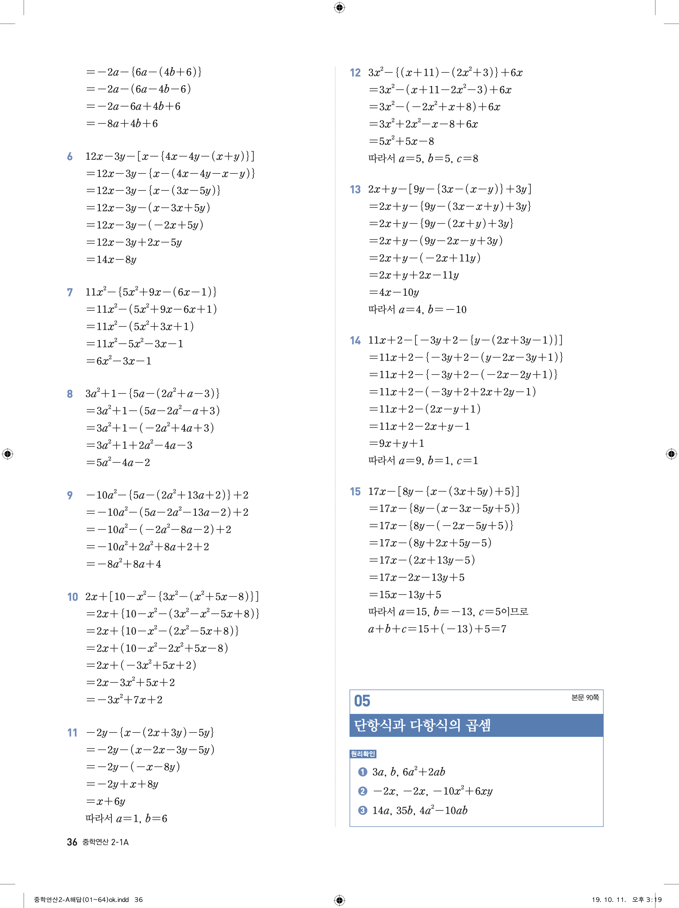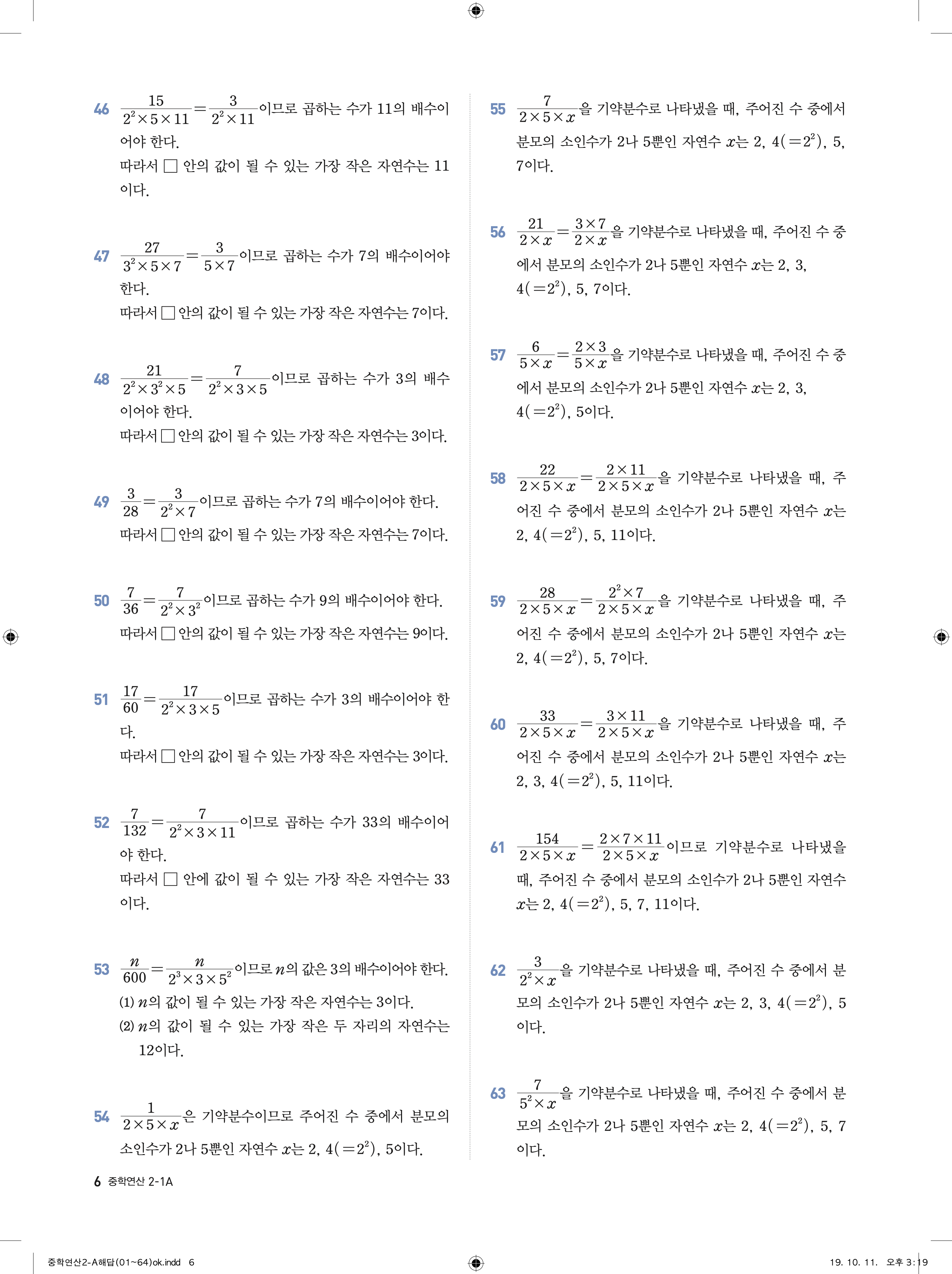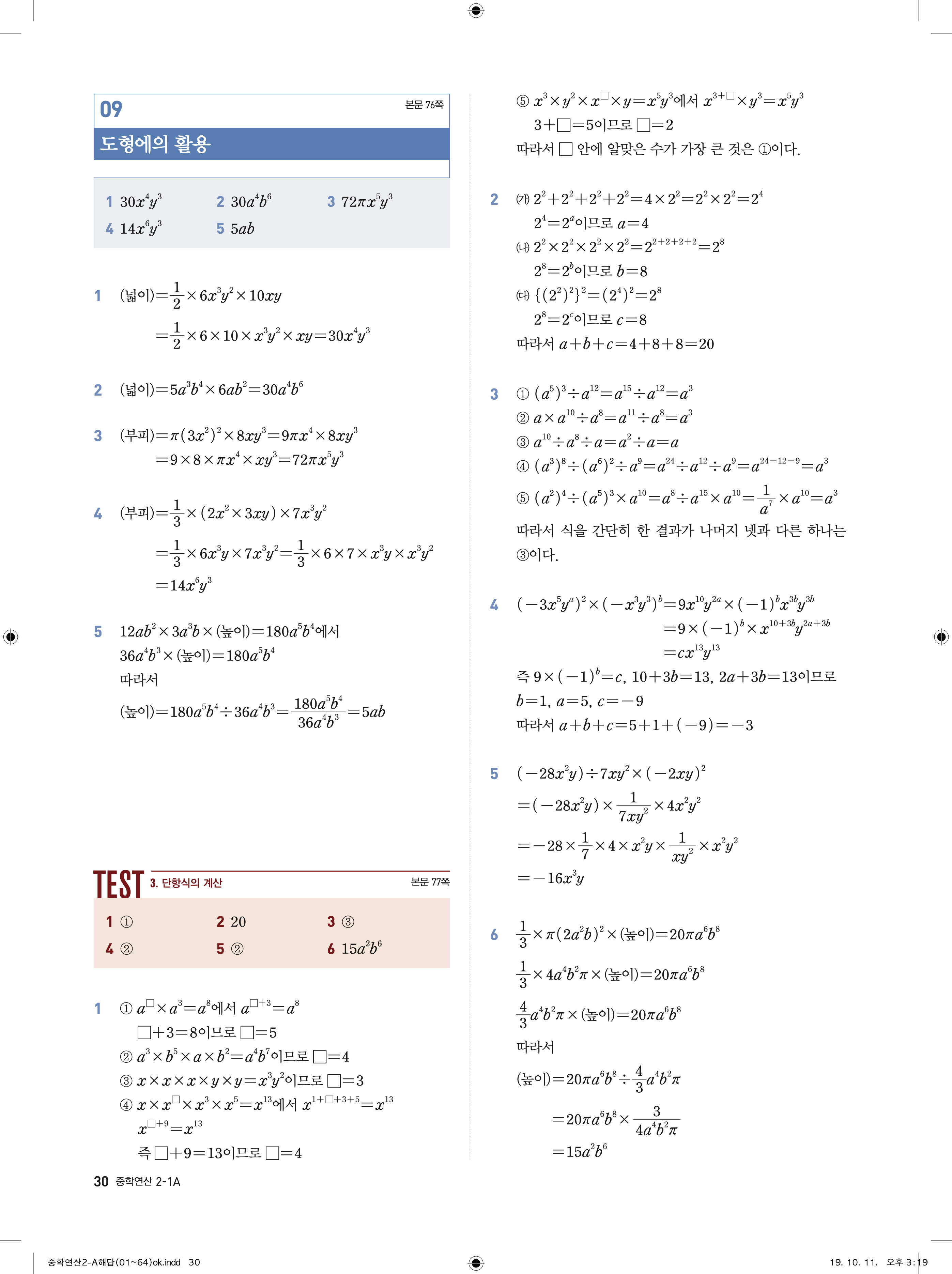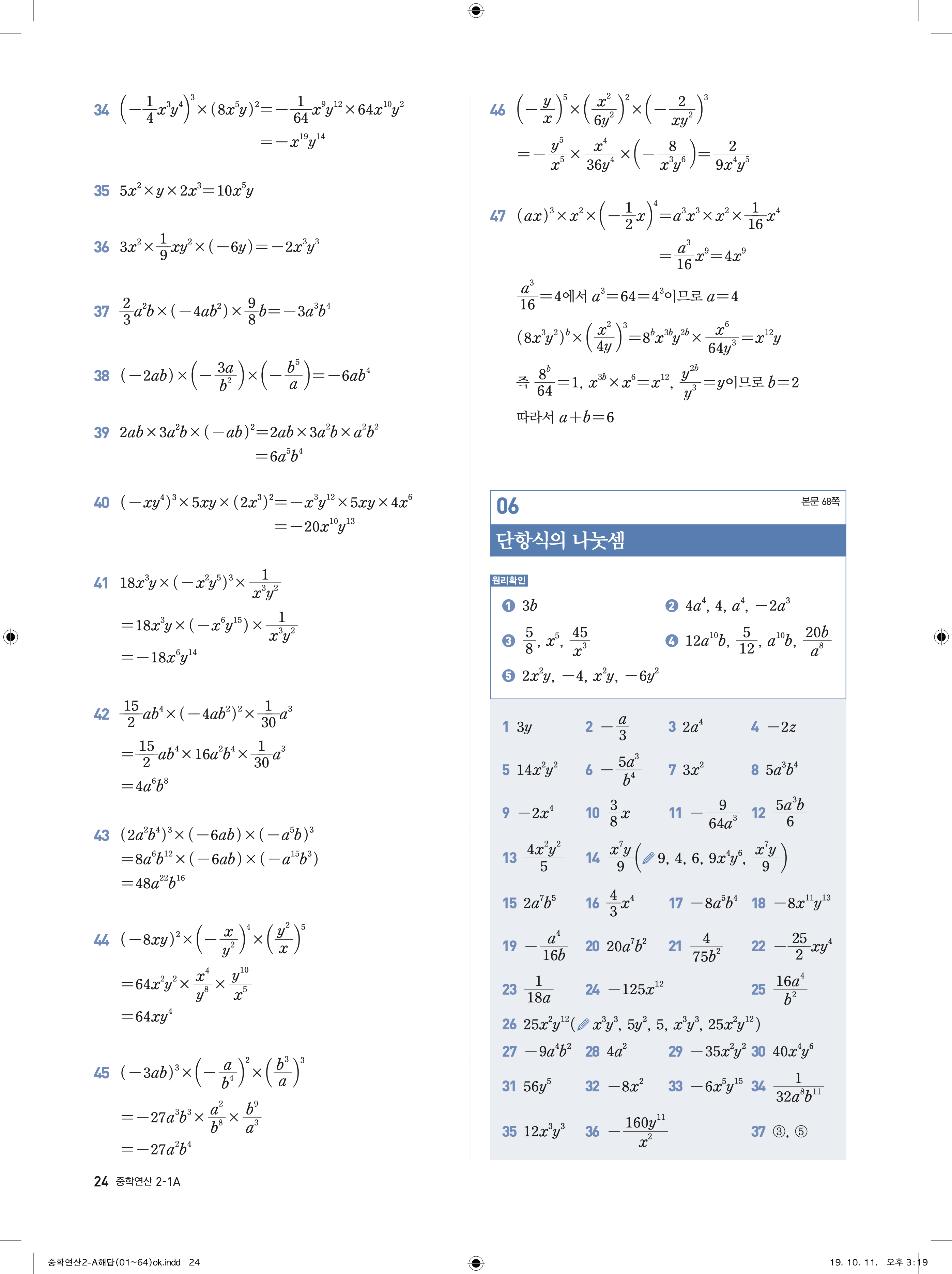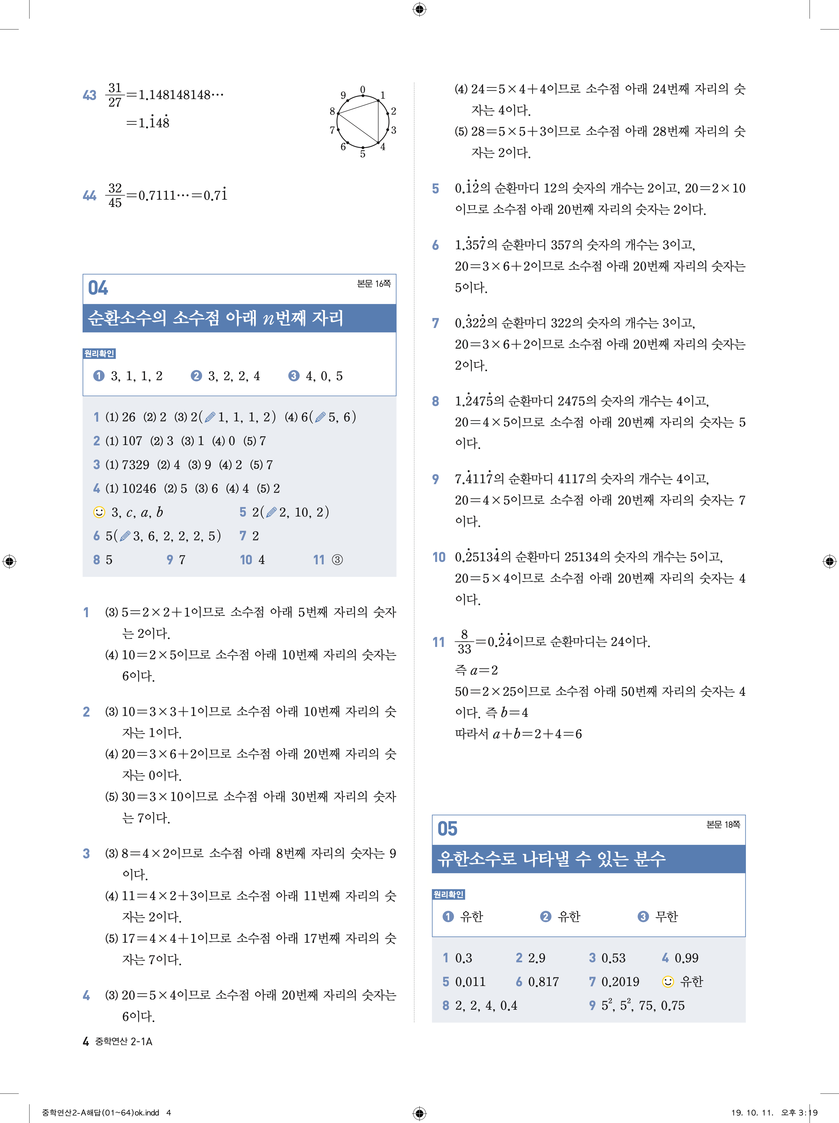 디딤돌 중학연산 2-1A 답지 해설 바로보는 사진답지 빠른답지 모바일최적화