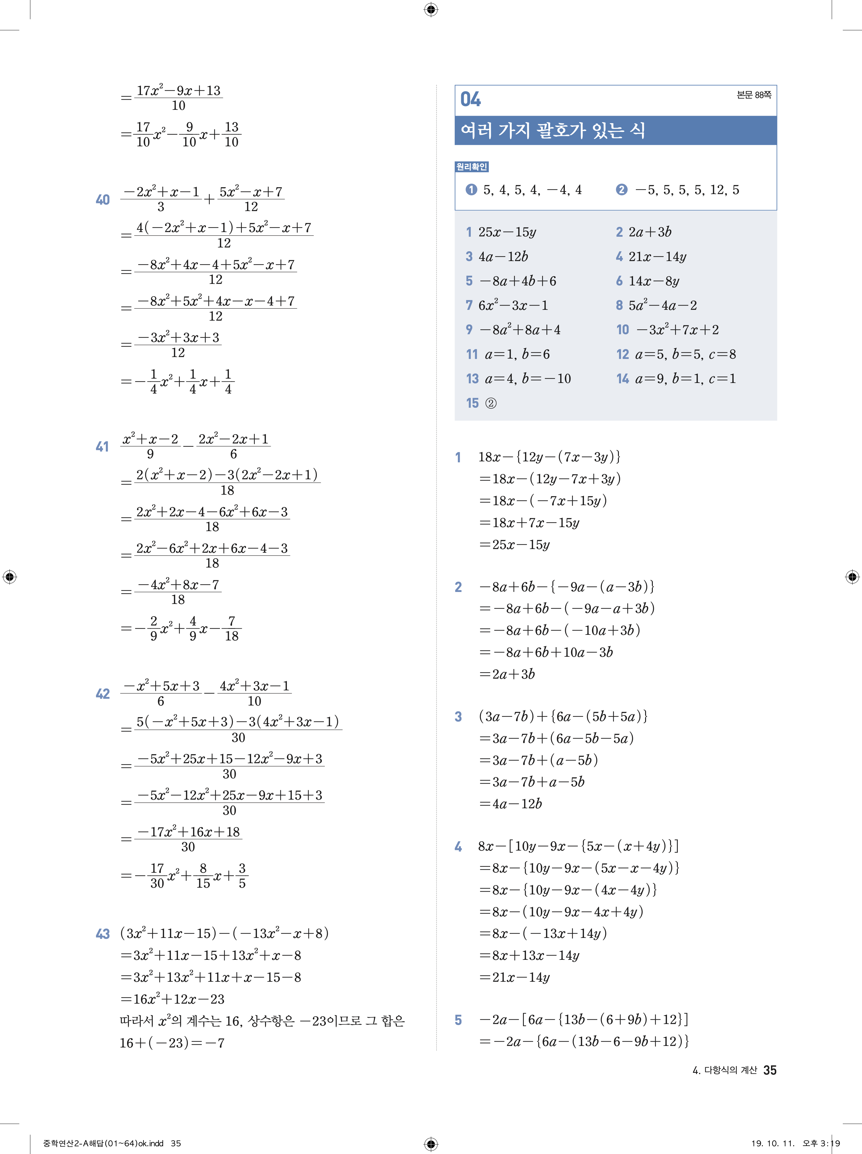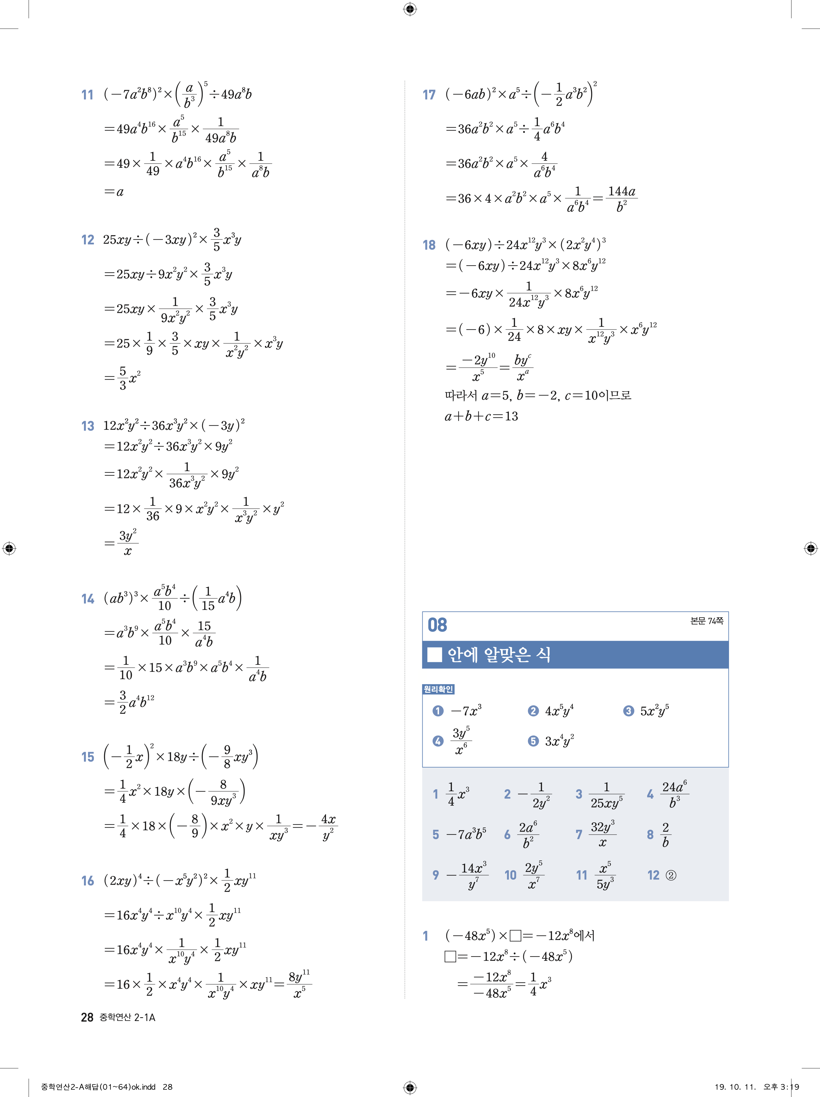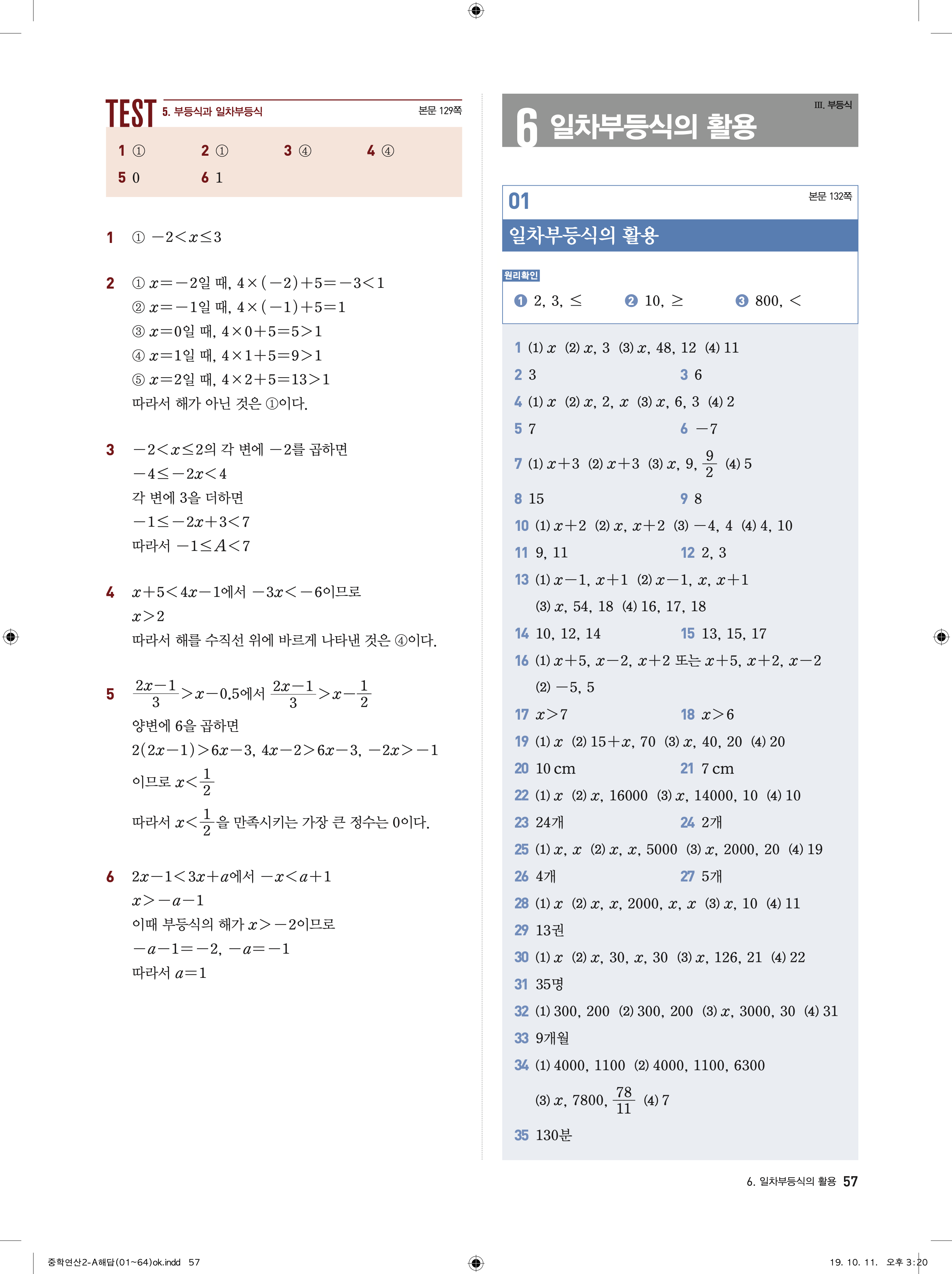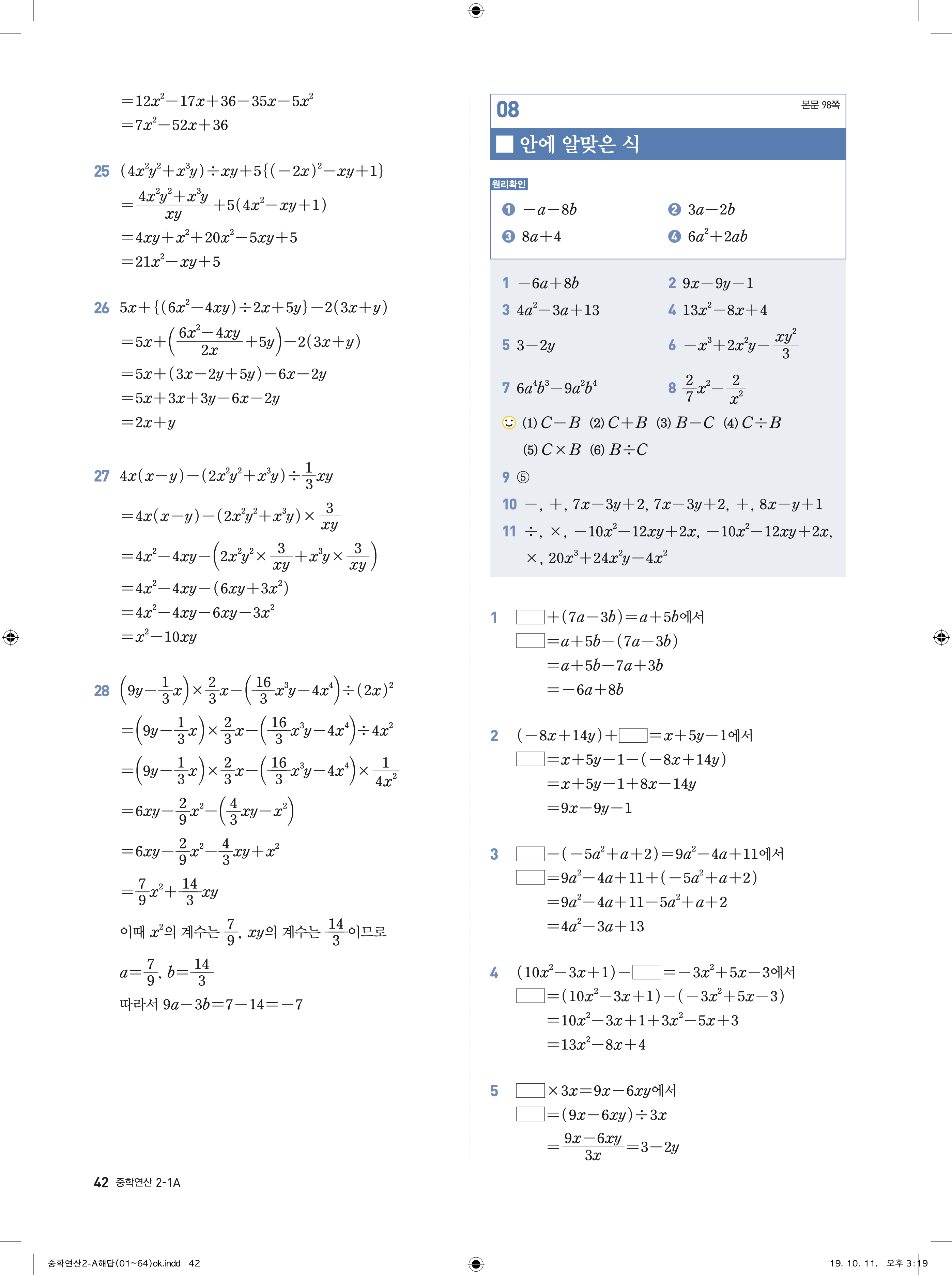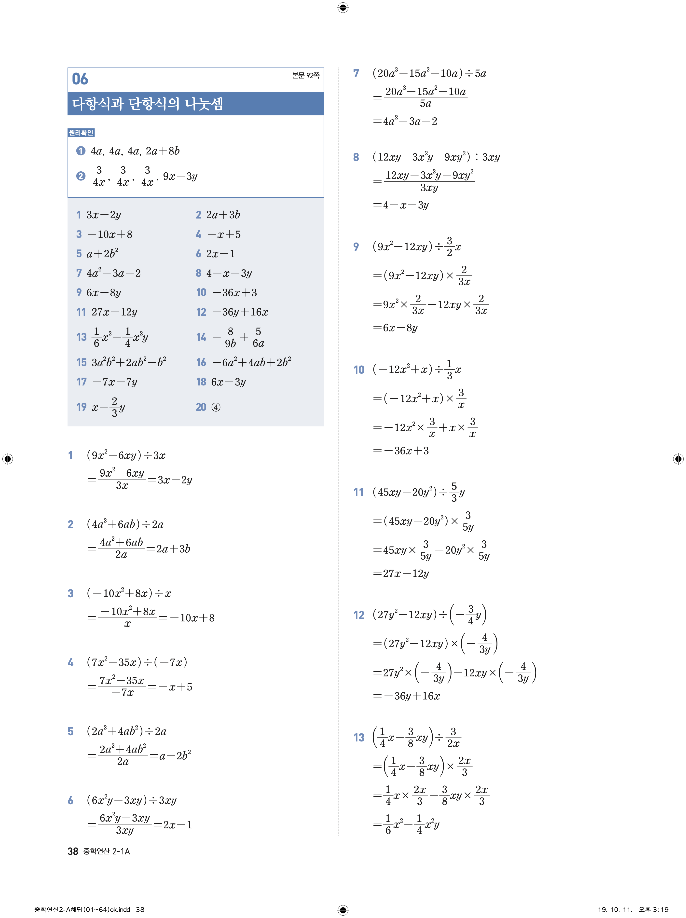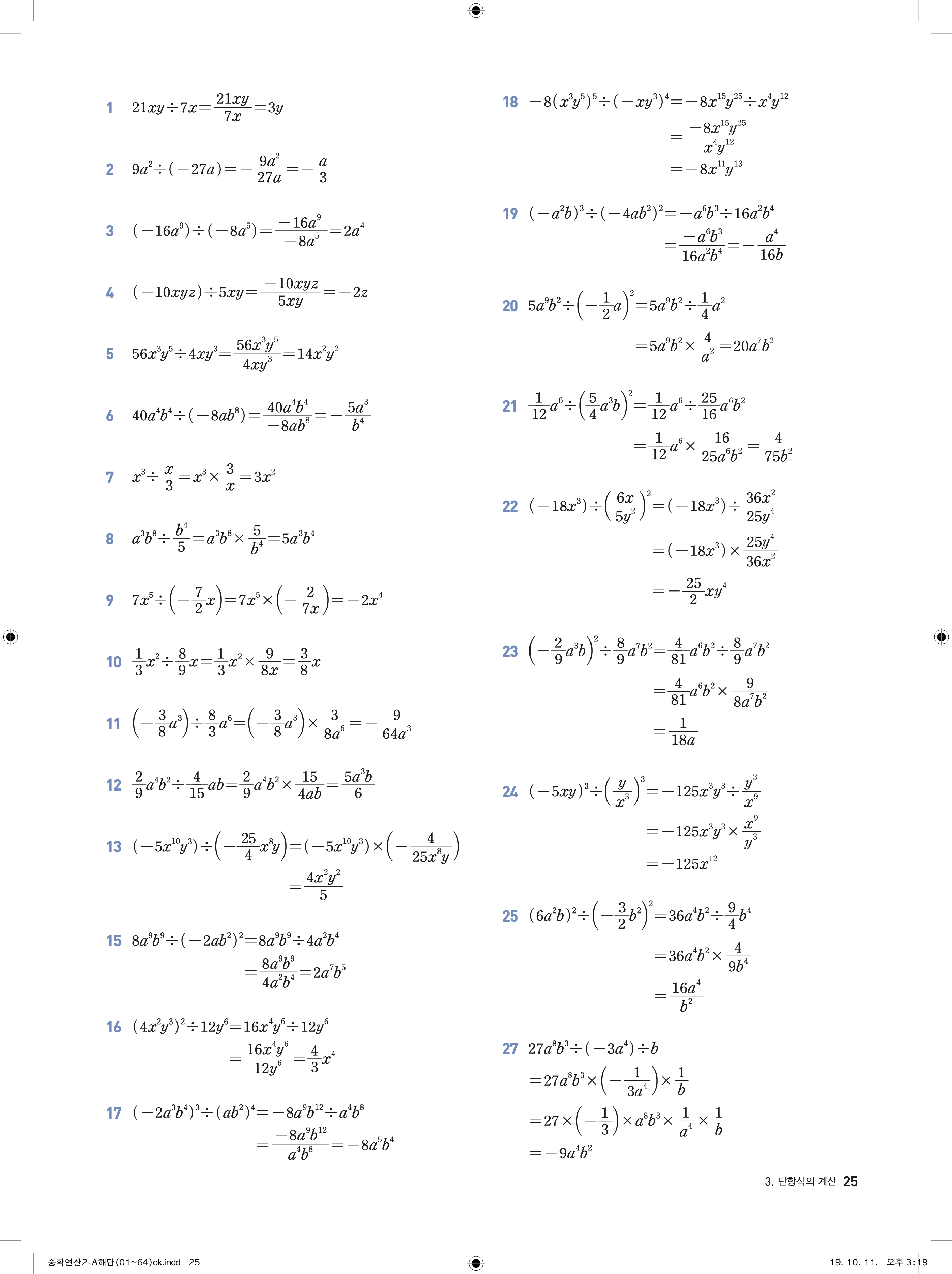 디딤돌 중학연산 2-1A 답지 해설 바로보는 사진답지 빠른답지 모바일최적화