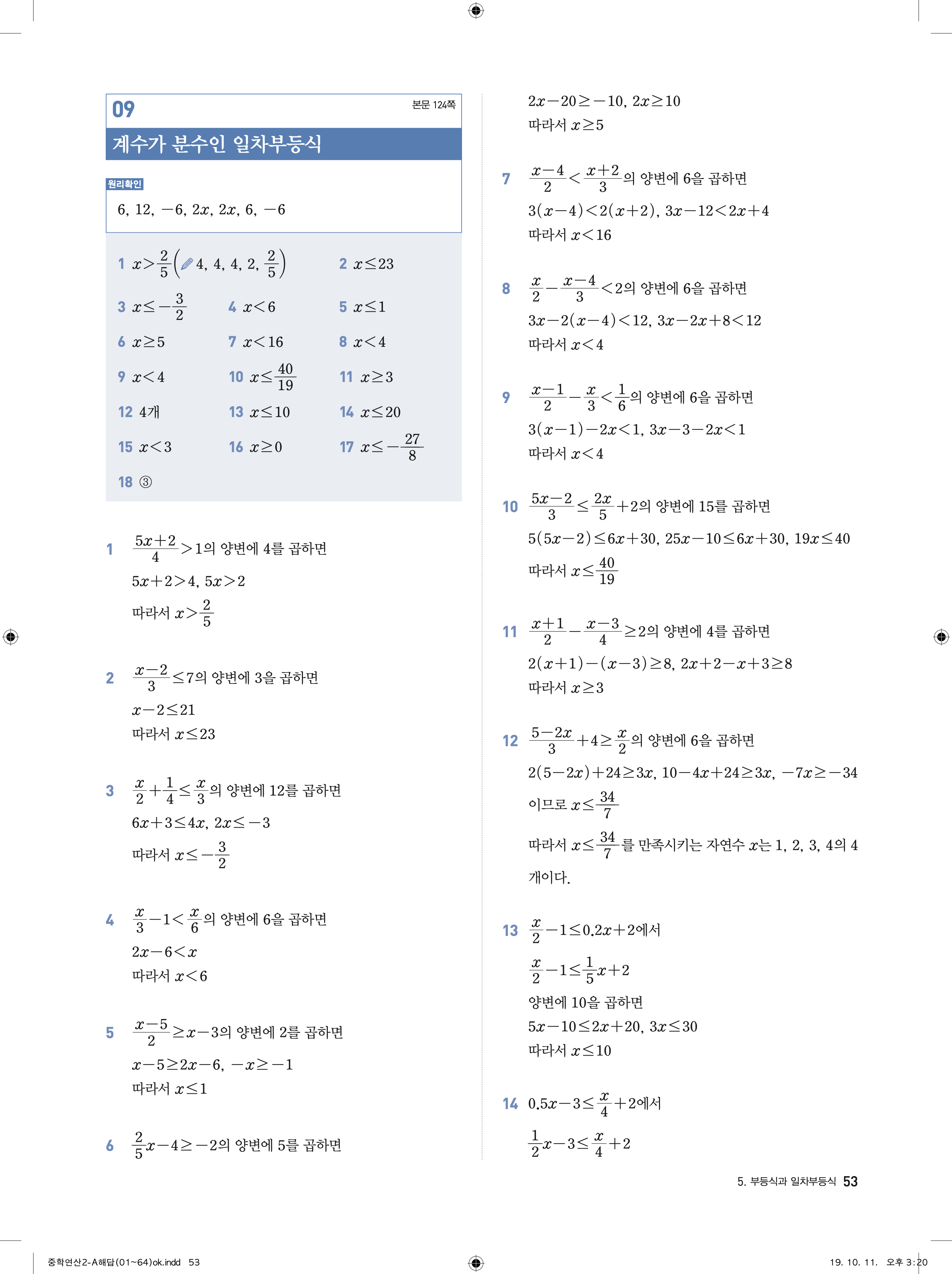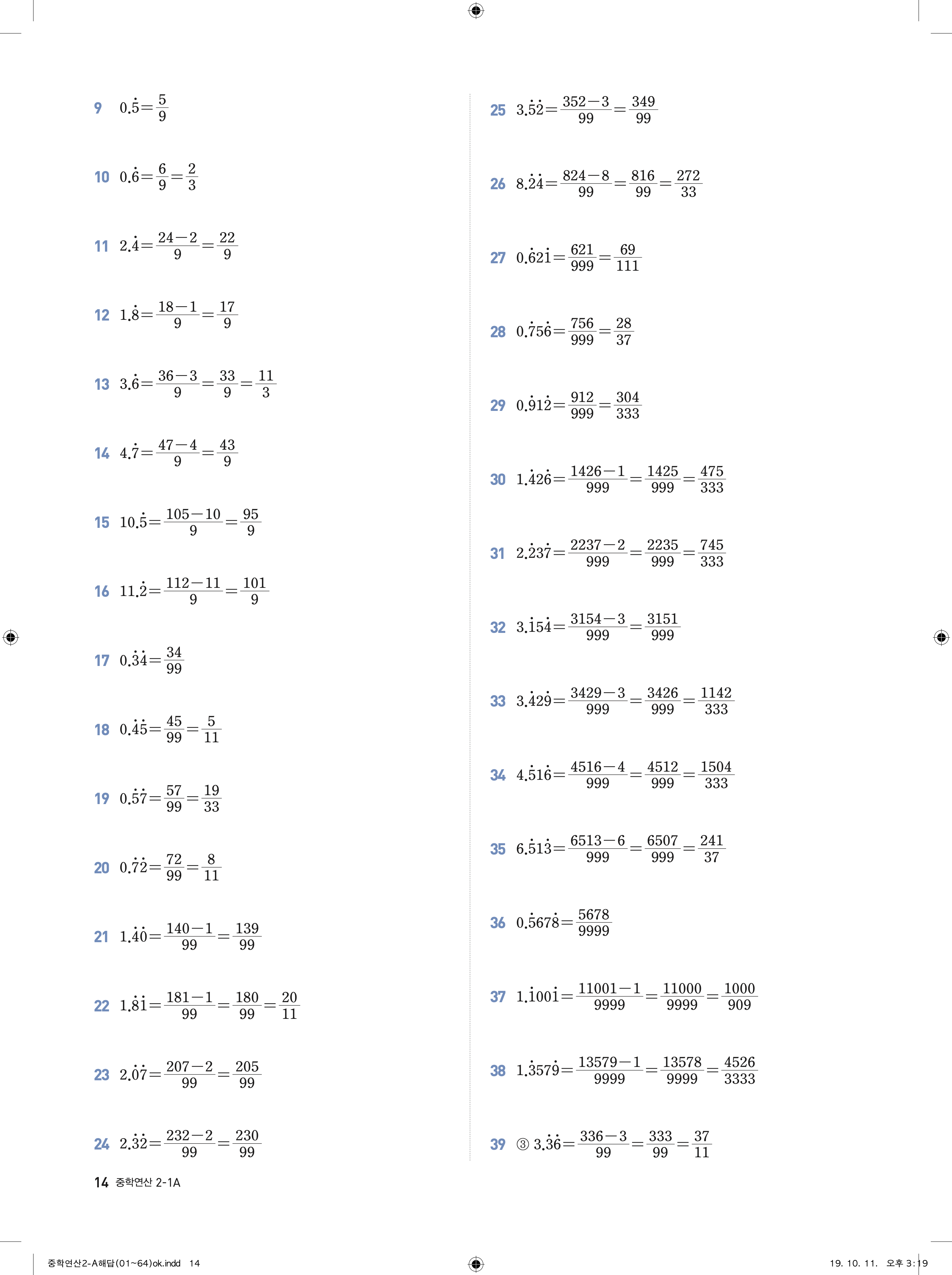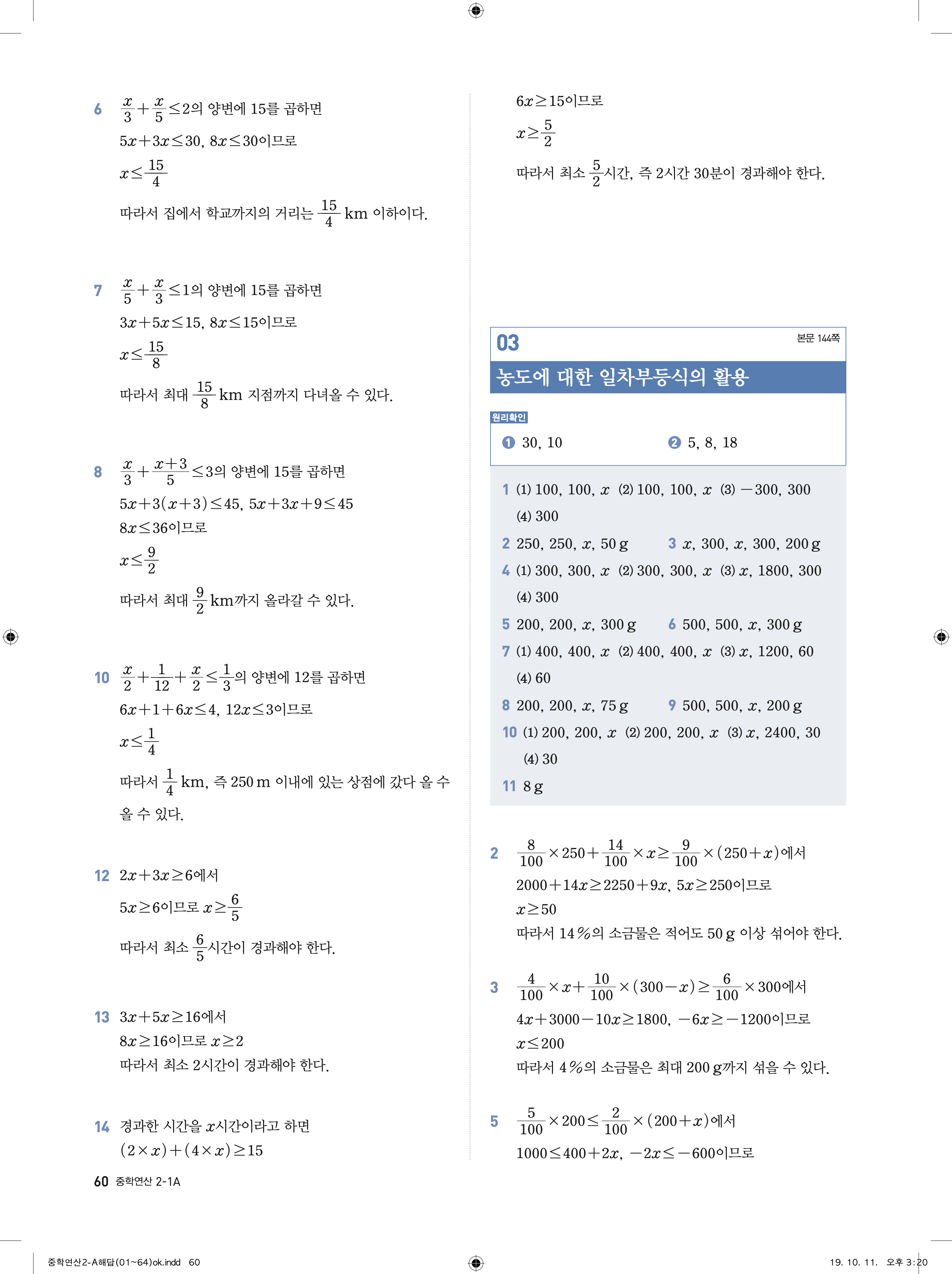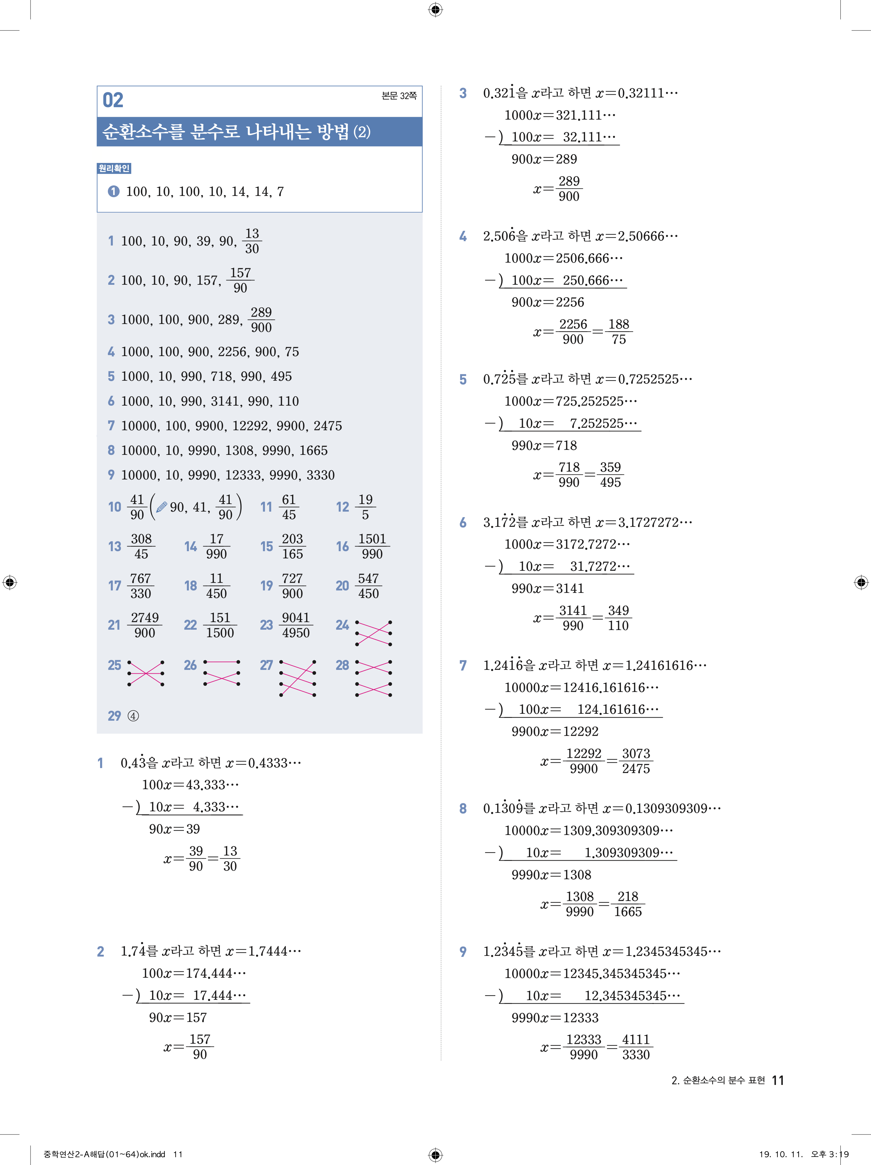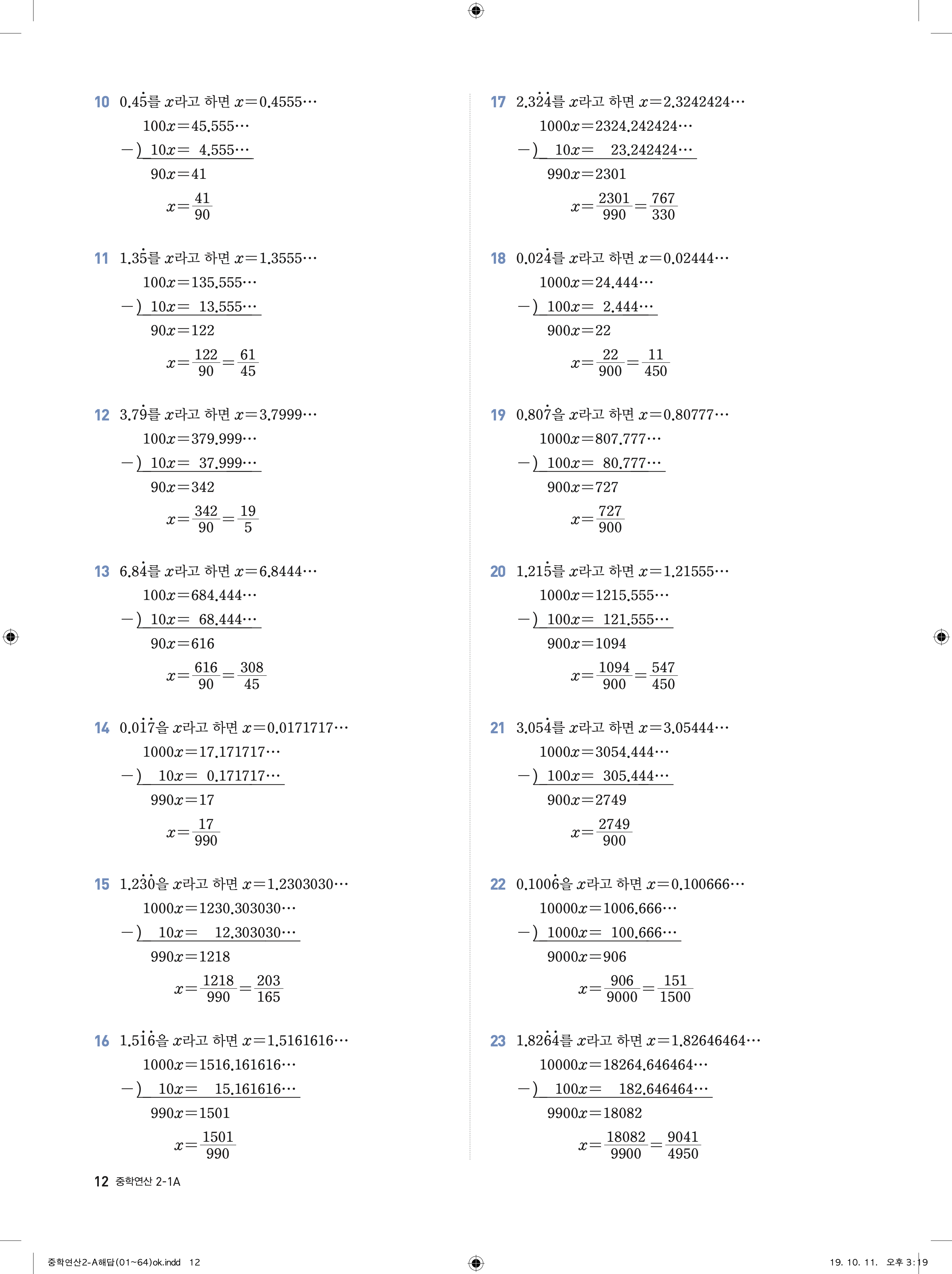 디딤돌 중학연산 2-1A 답지 해설 바로보는 사진답지 빠른답지 모바일최적화