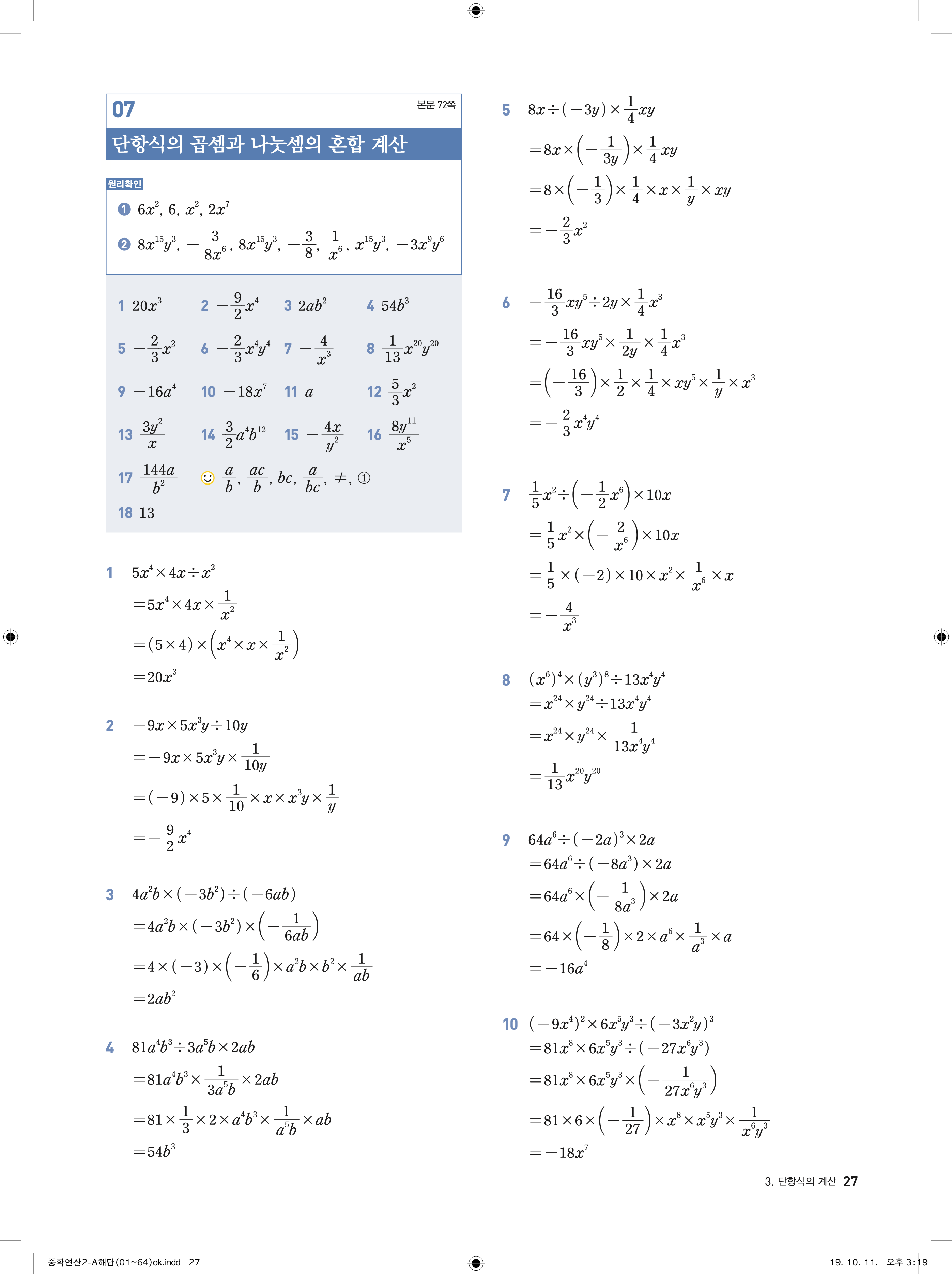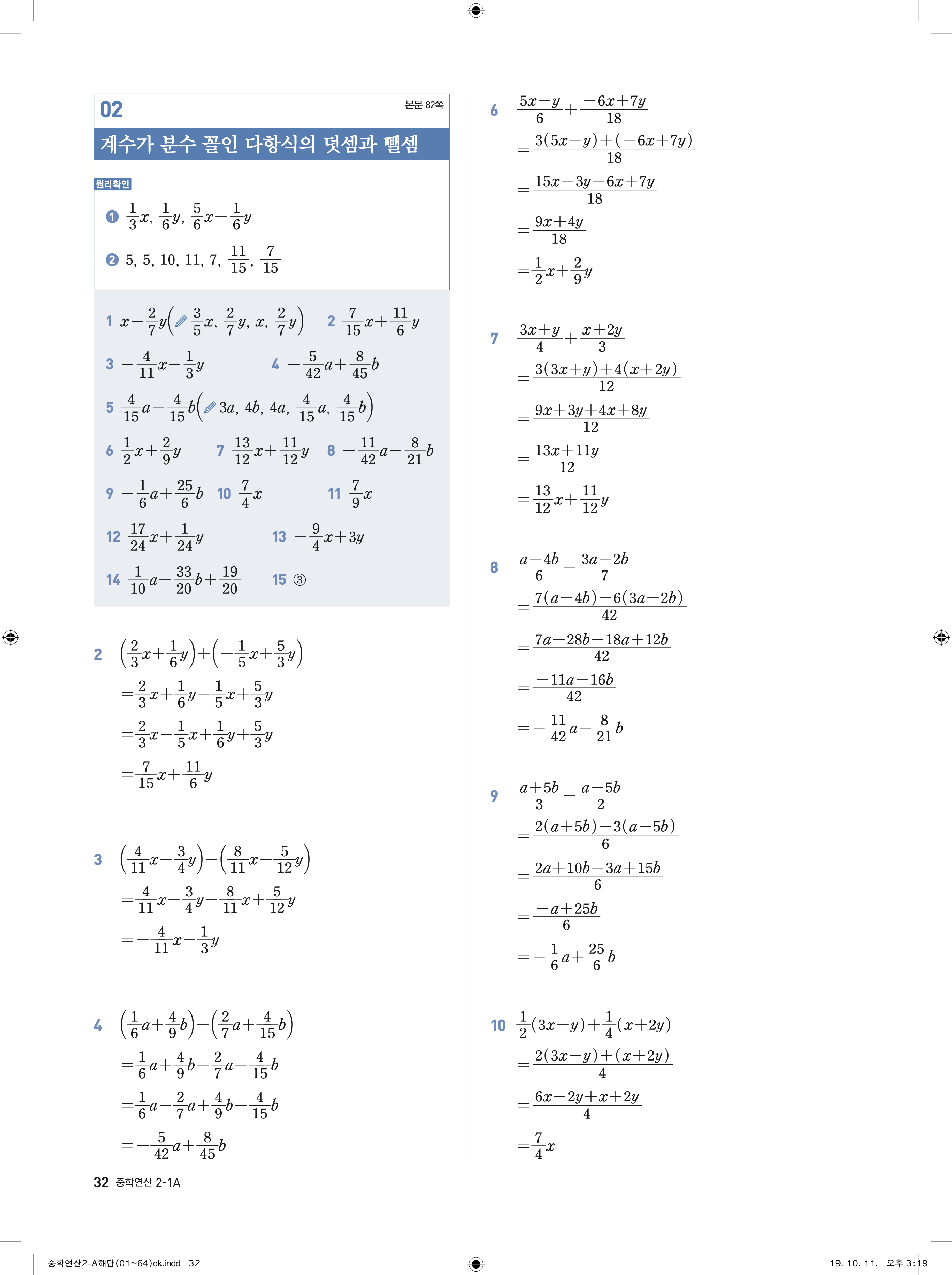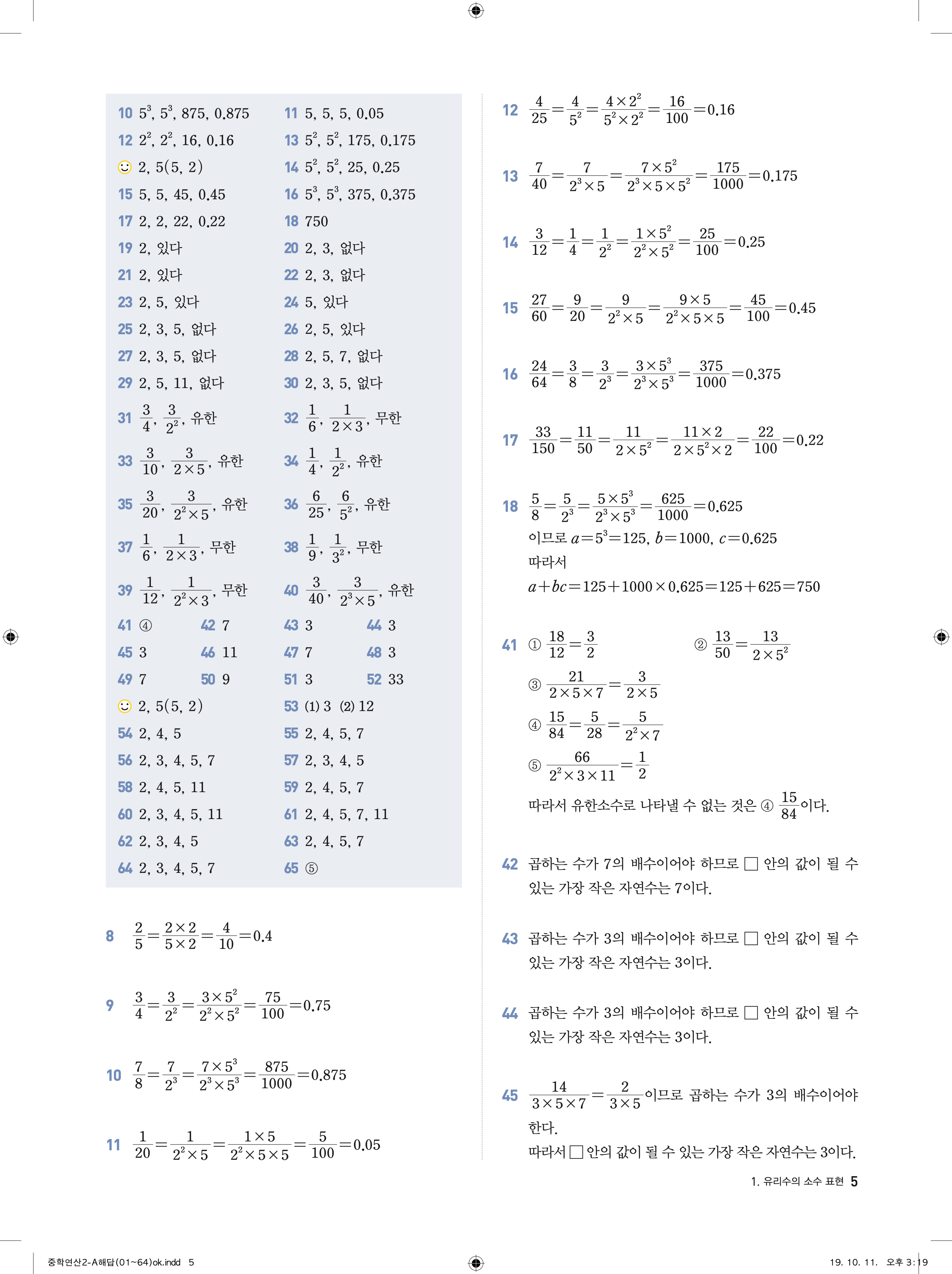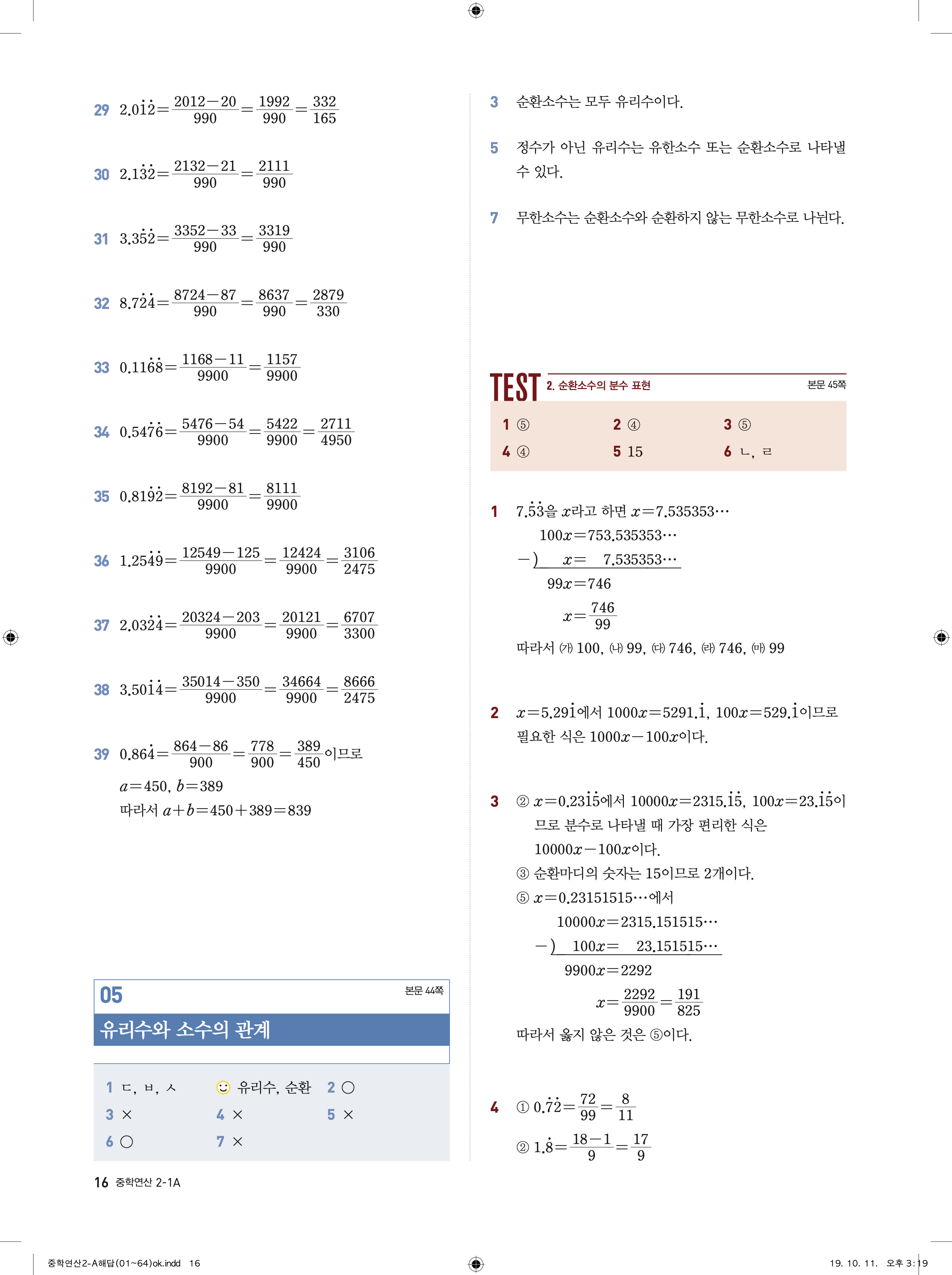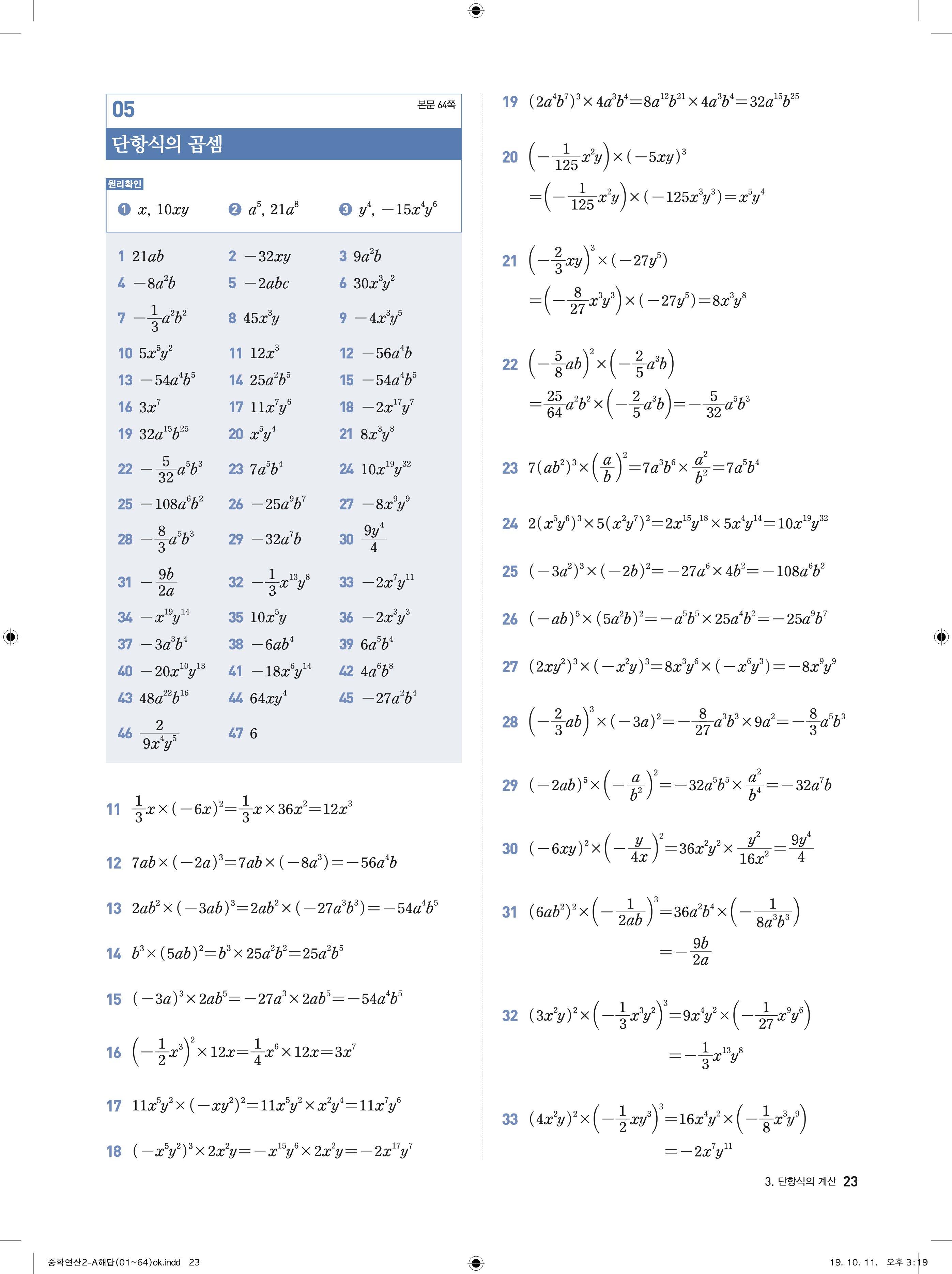 디딤돌 중학연산 2-1A 답지 해설 바로보는 사진답지 빠른답지 모바일최적화