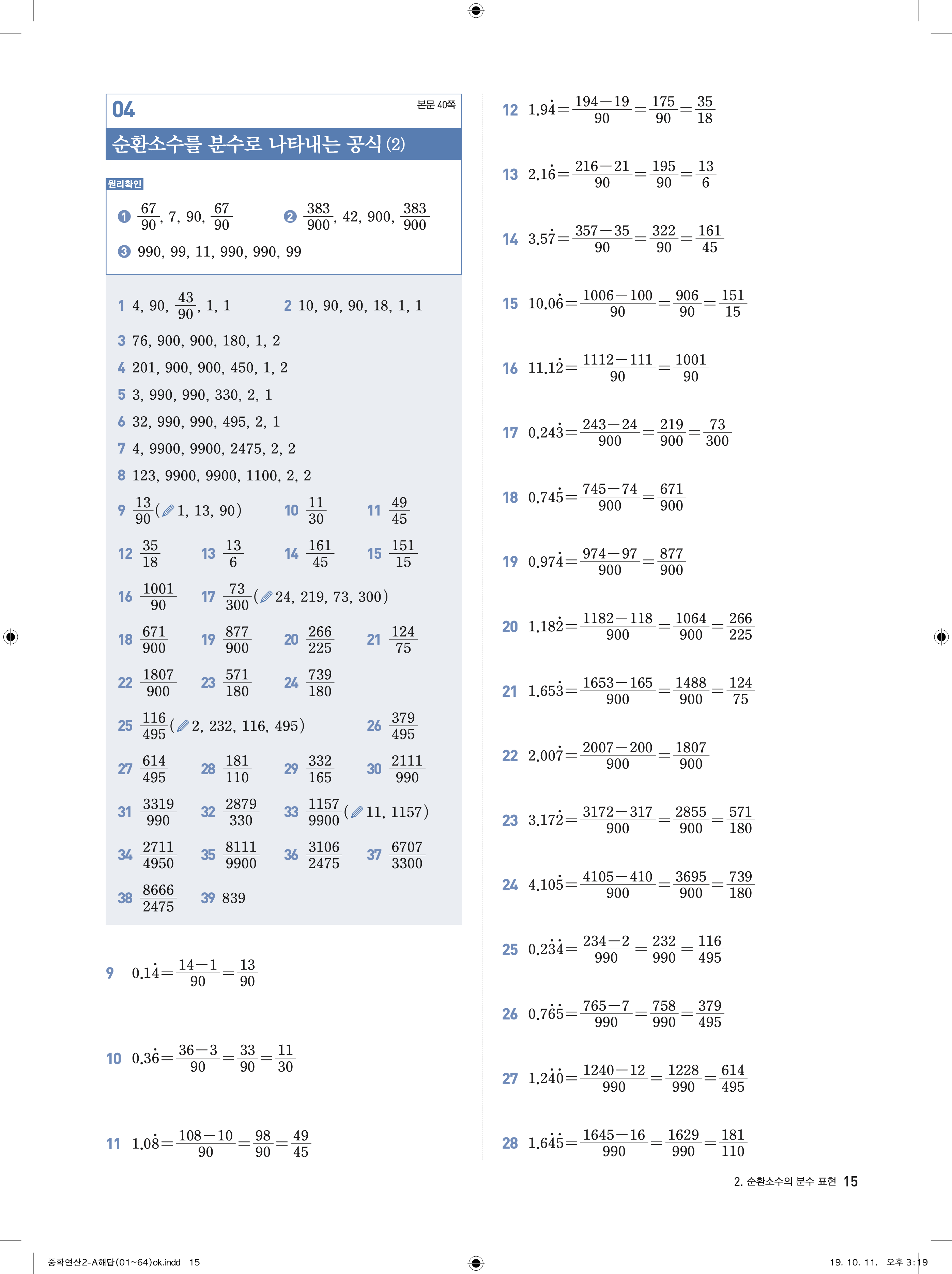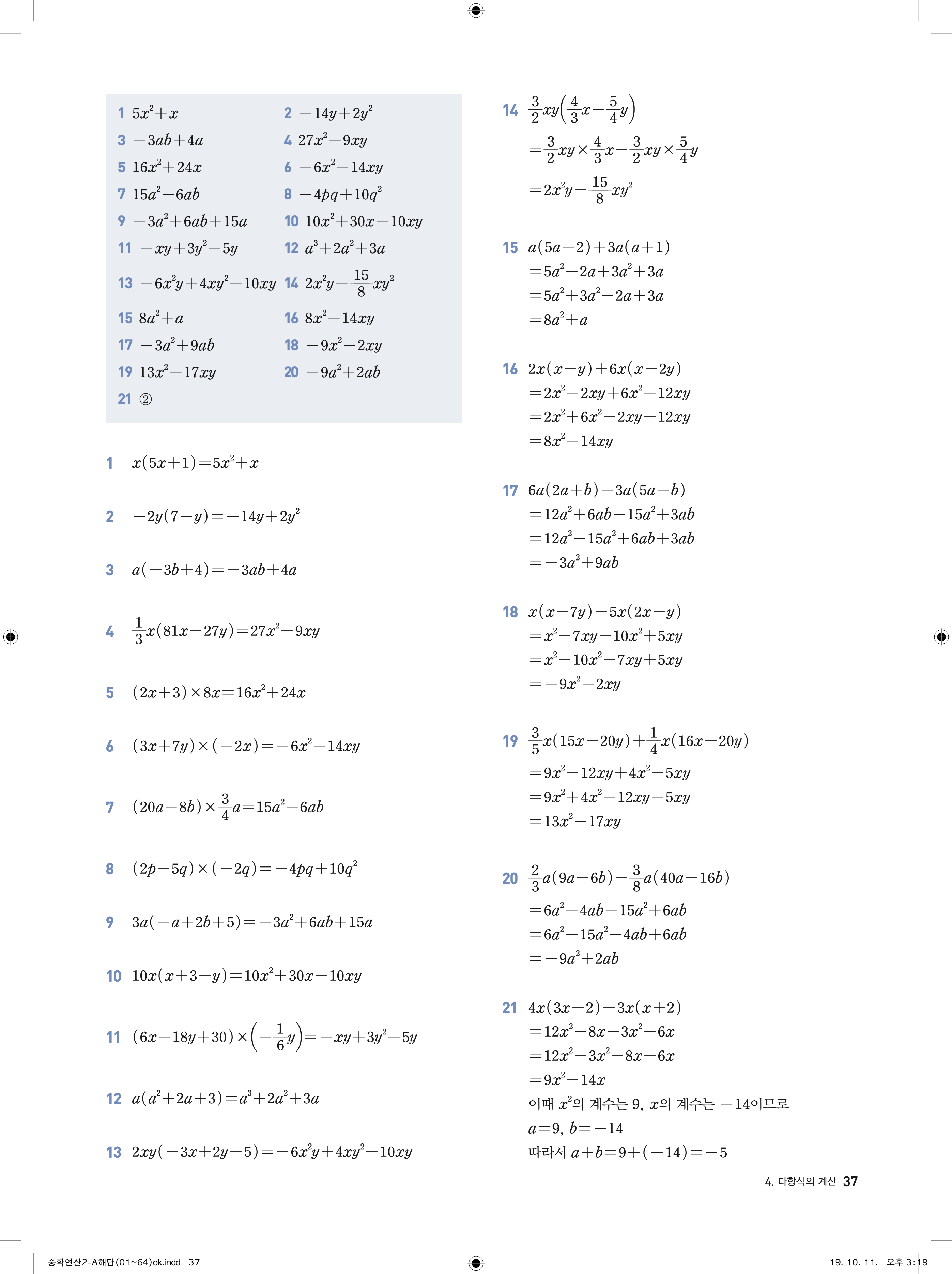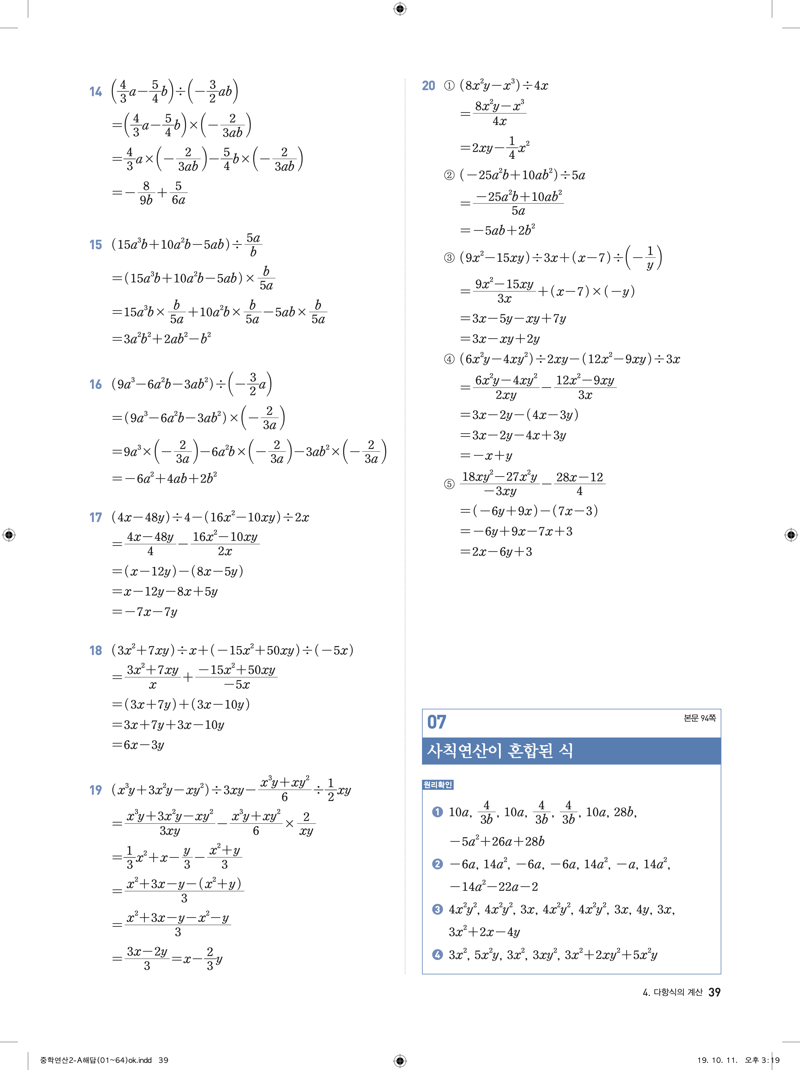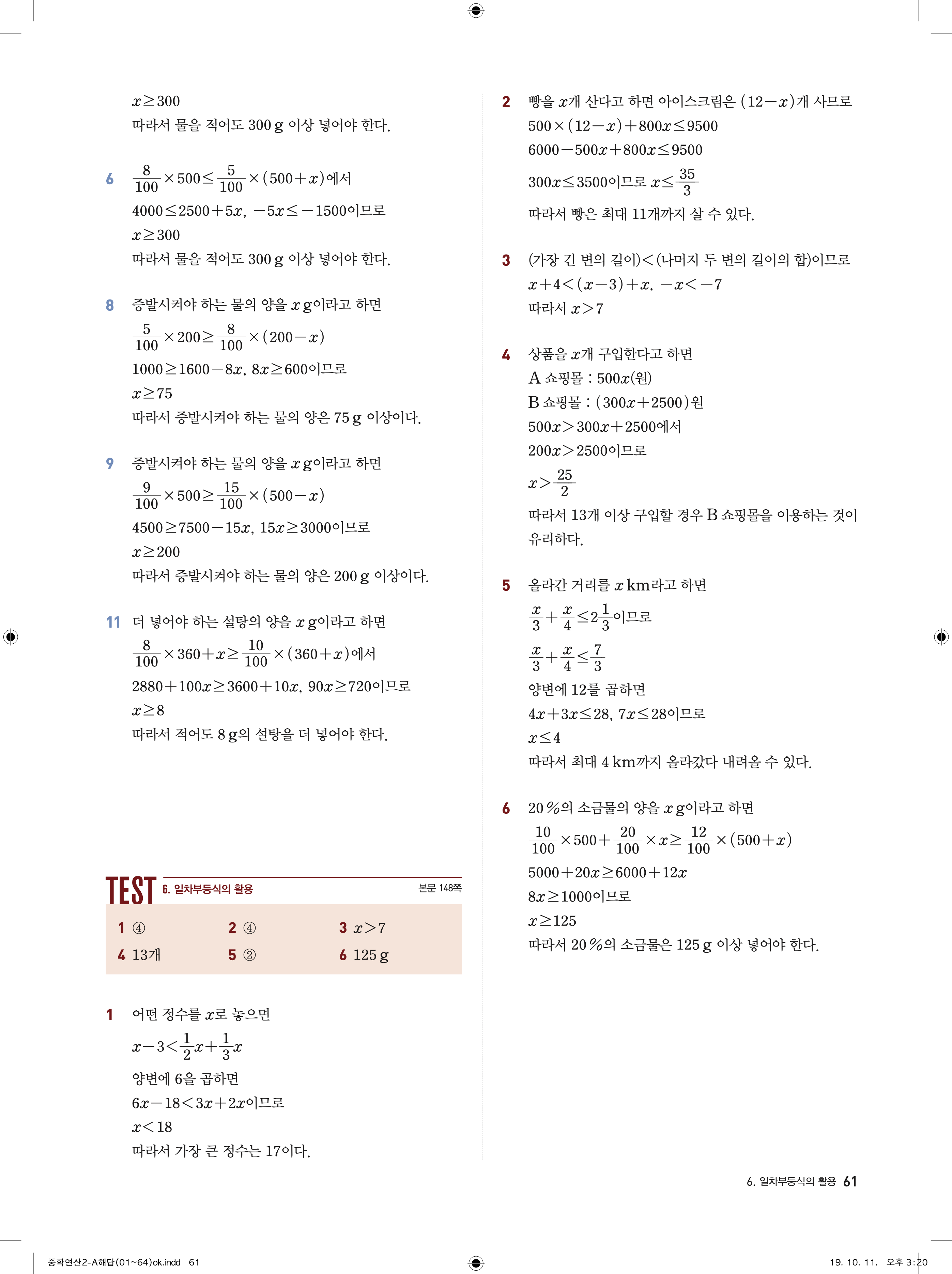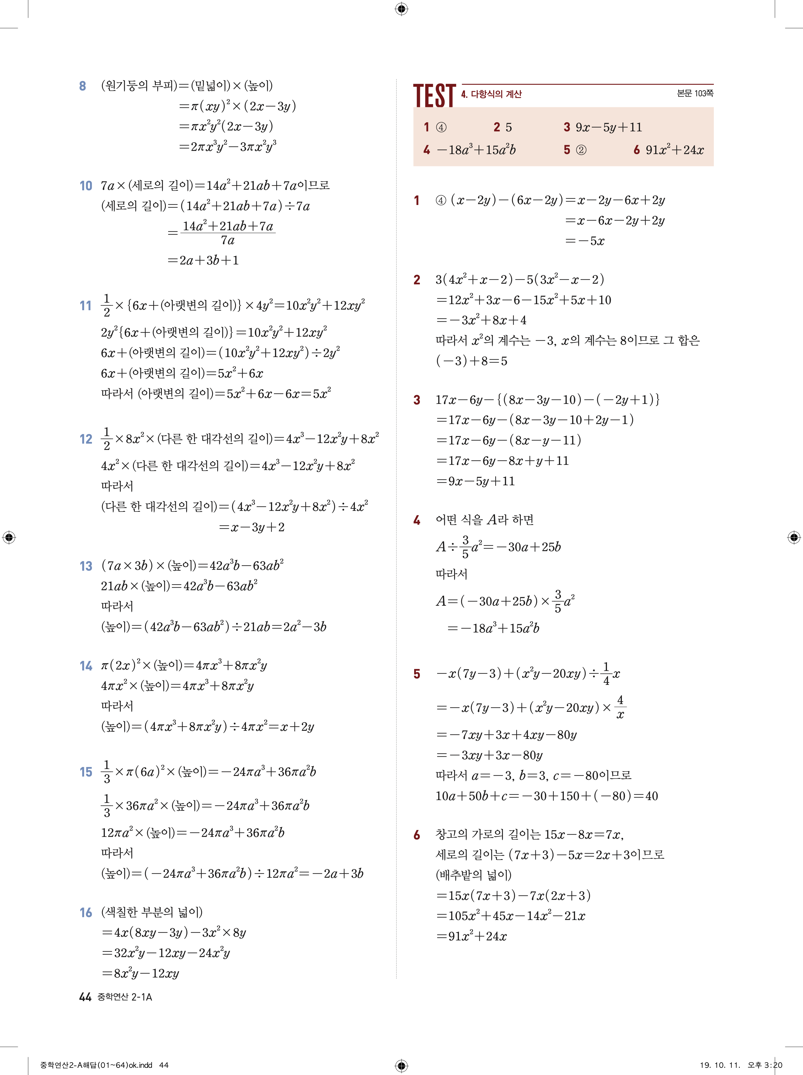 디딤돌 중학연산 2-1A 답지 해설 바로보는 사진답지 빠른답지 모바일최적화
