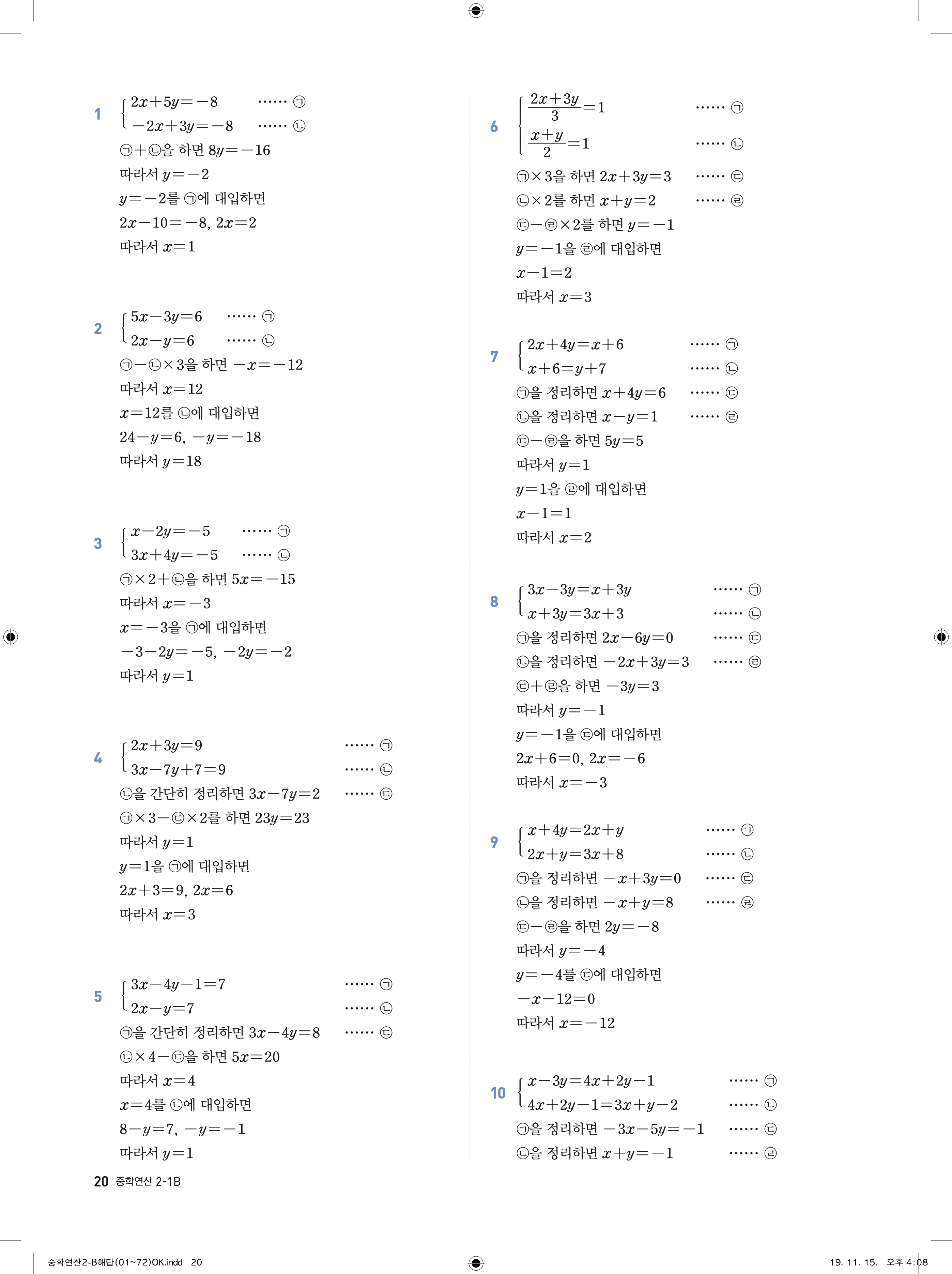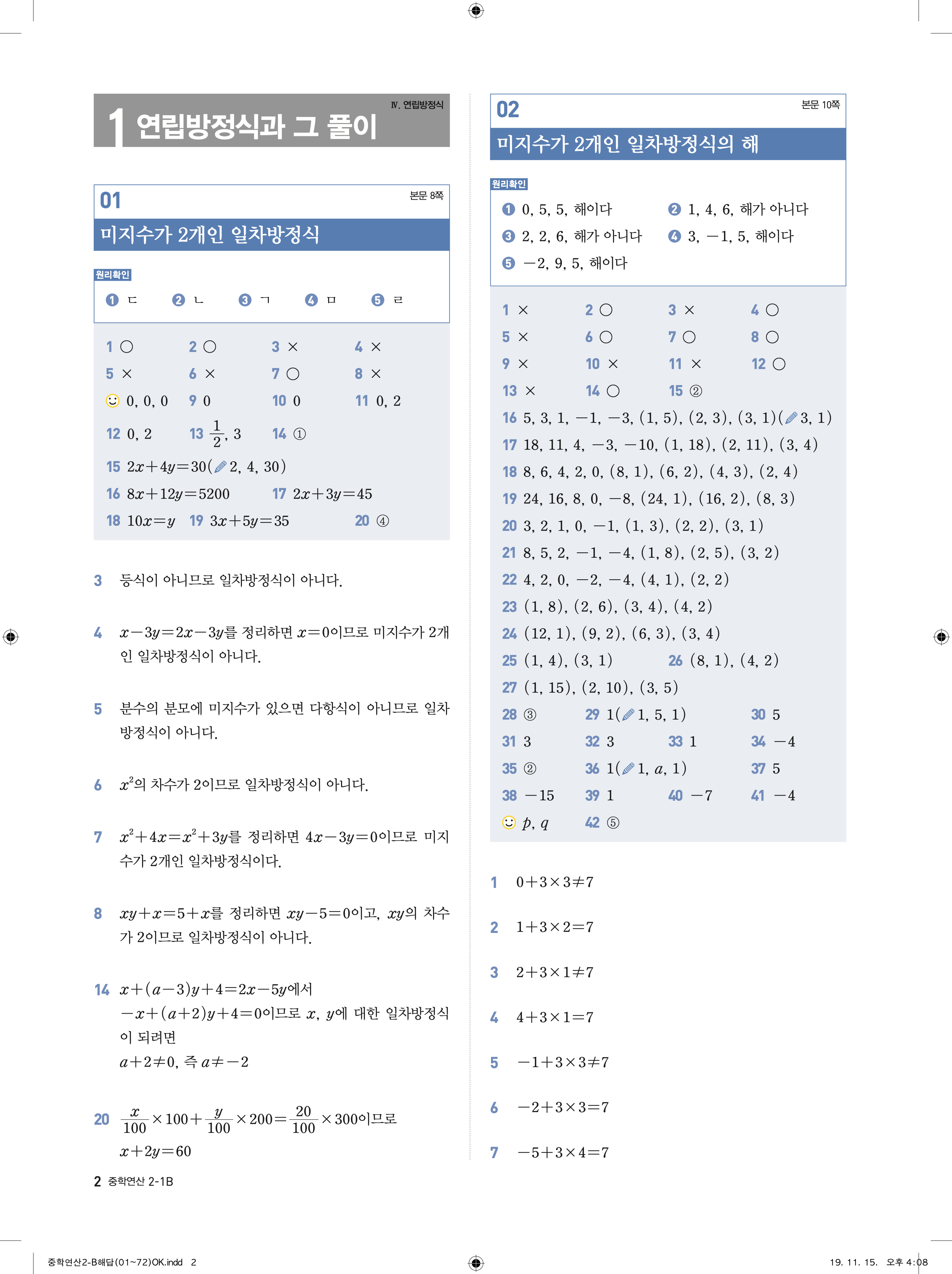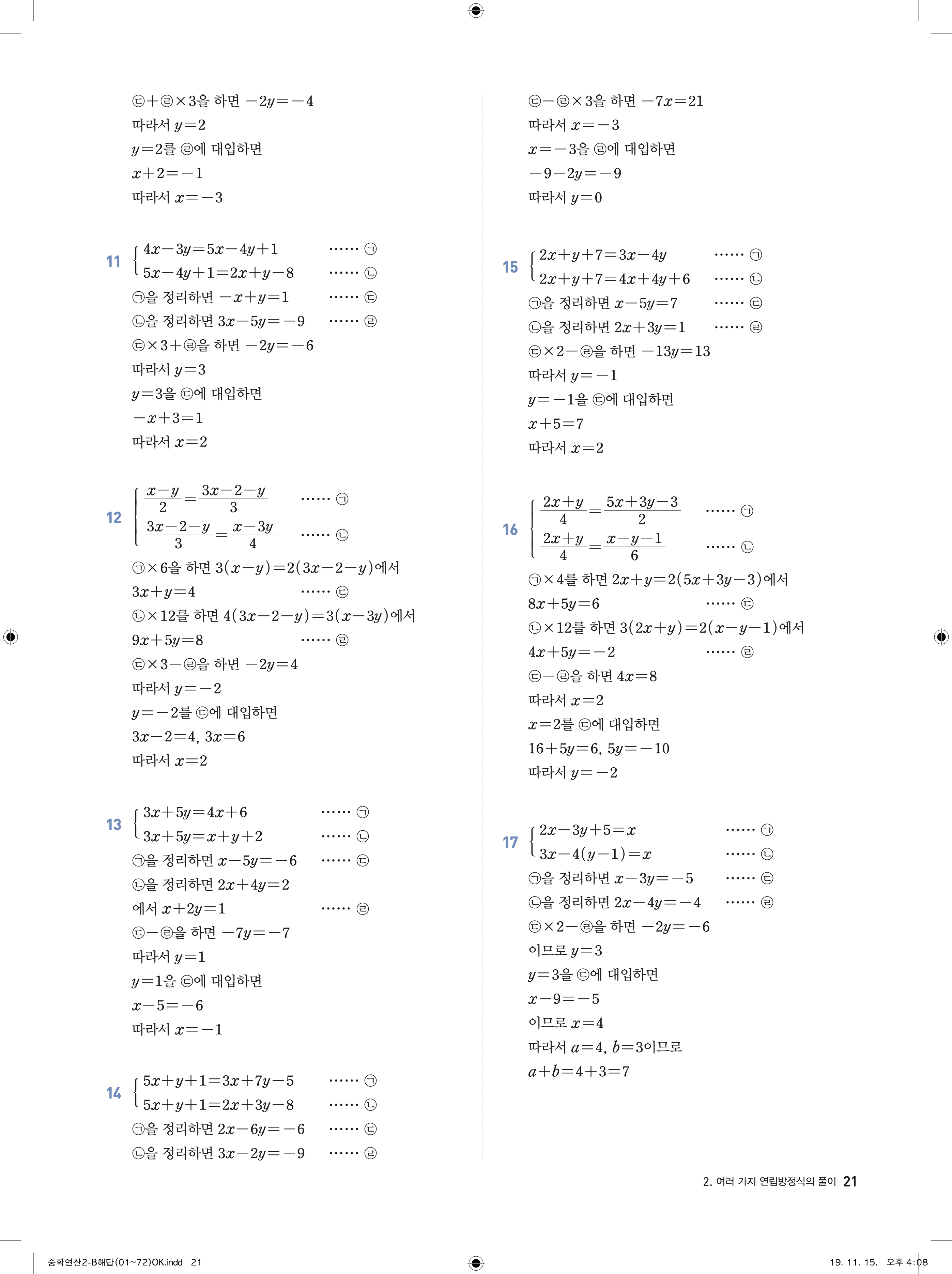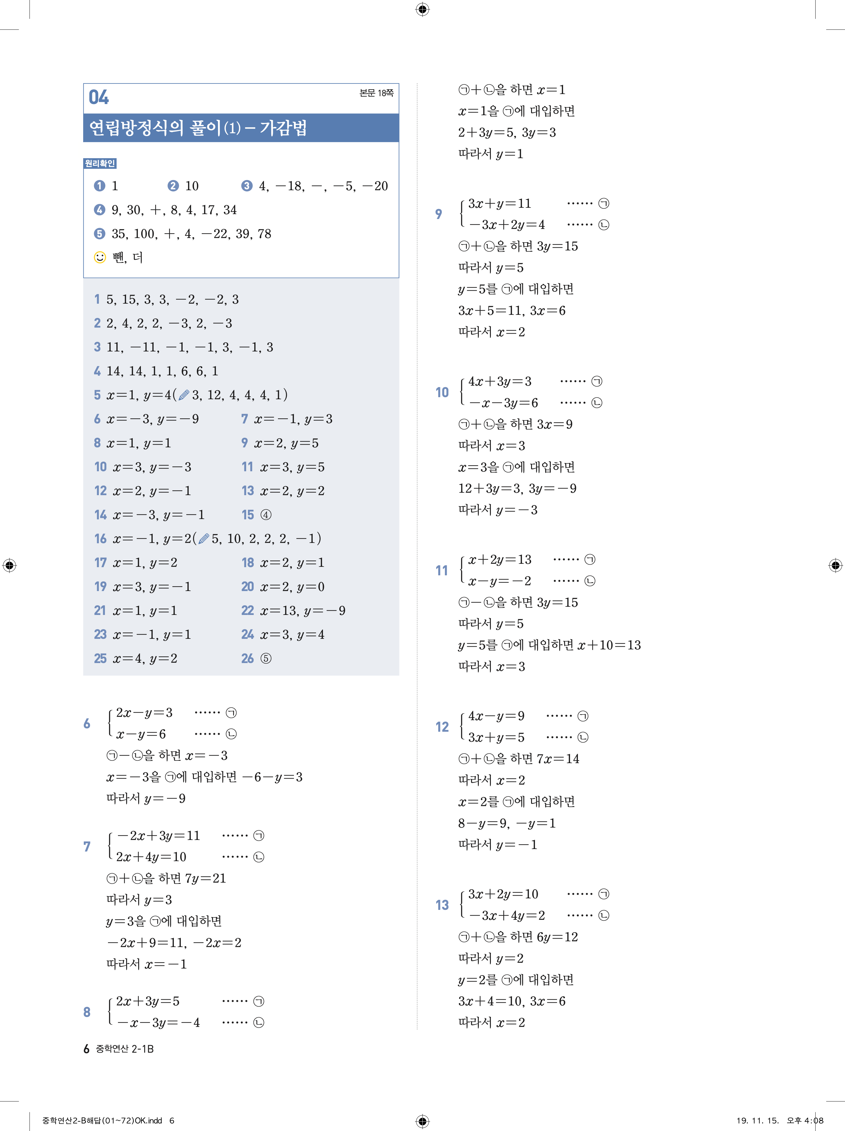 디딤돌 중학연산 2-1B 답지 해설 바로보는 사진답지 빠른답지 모바일최적화