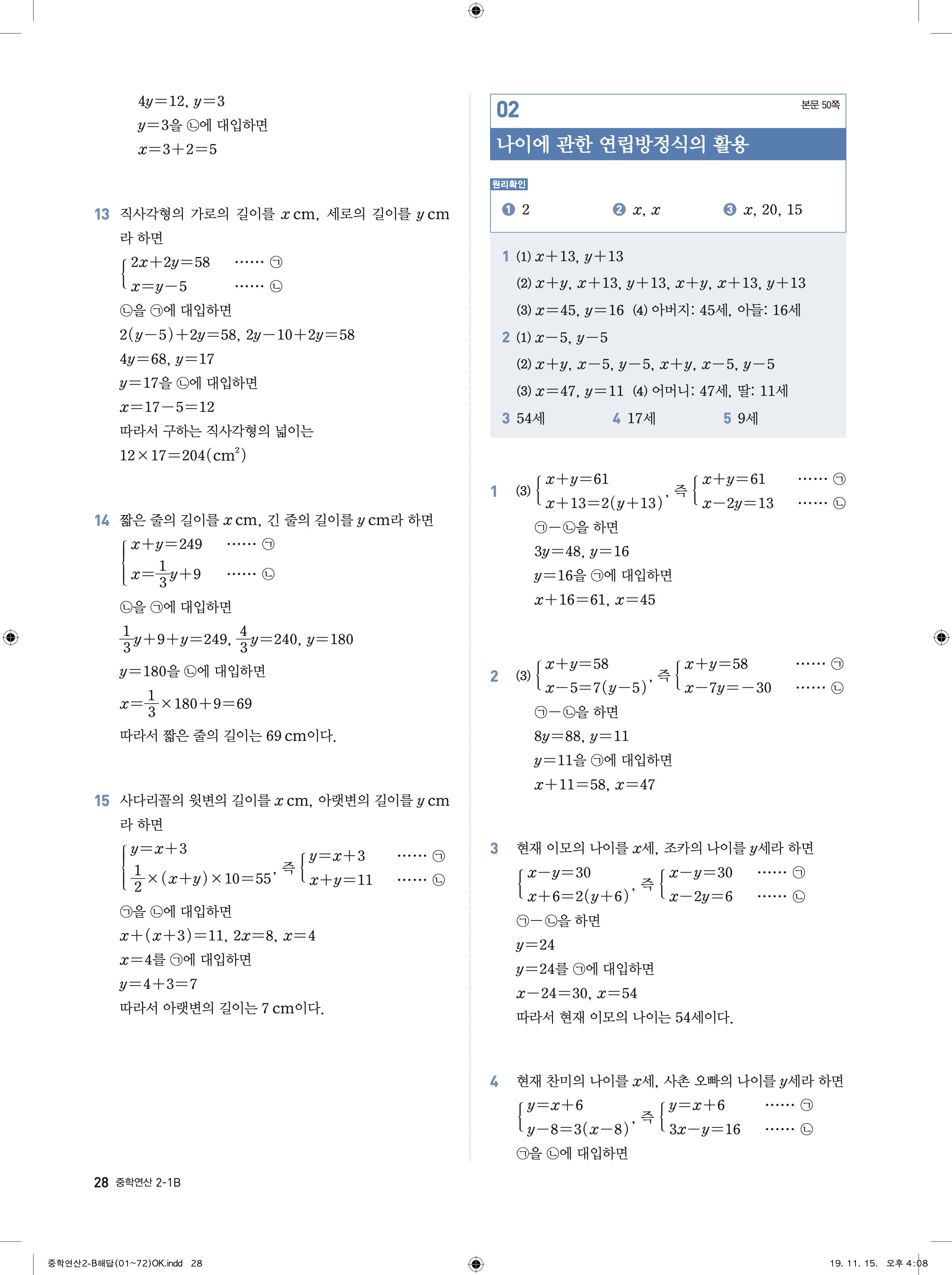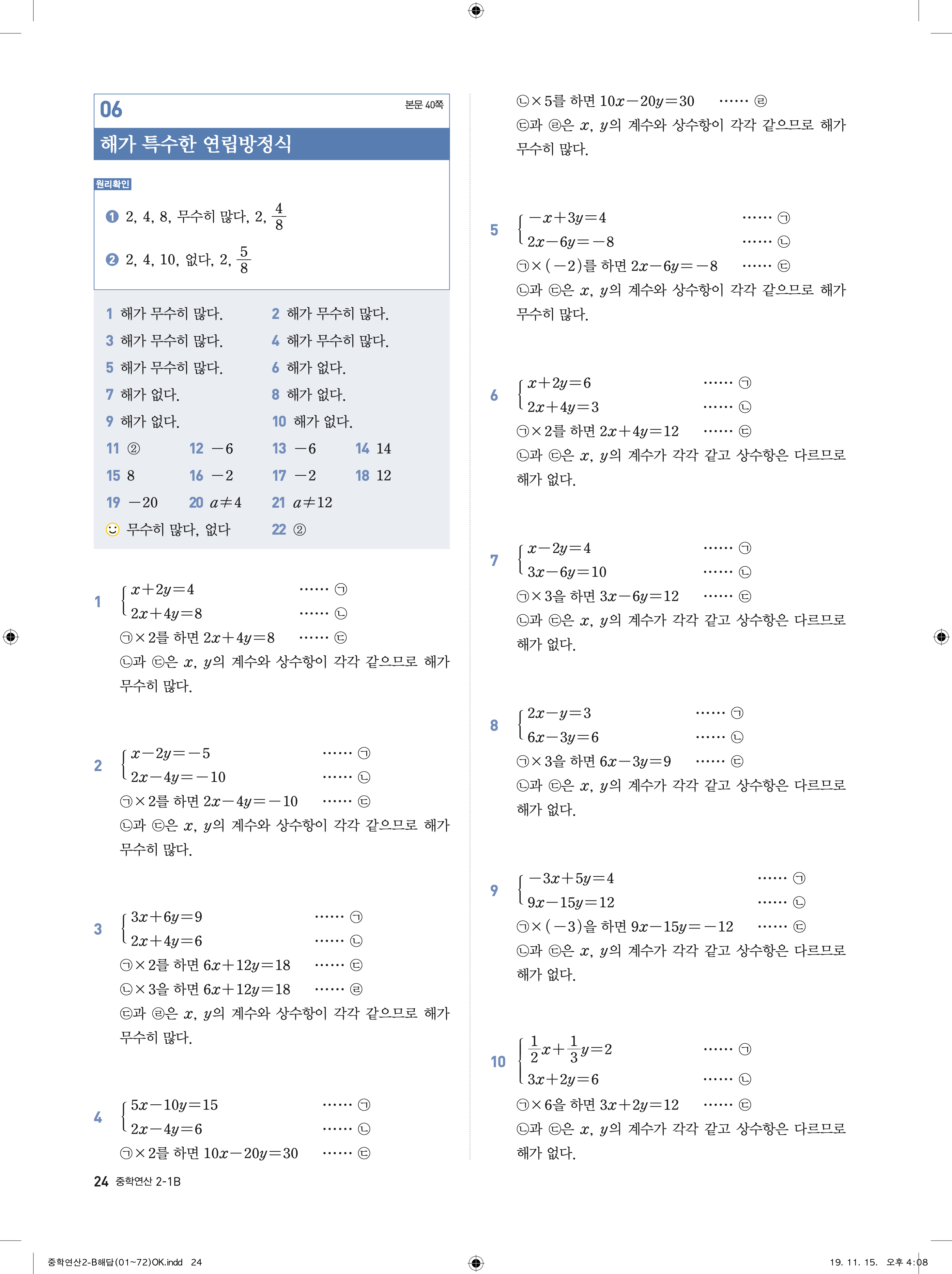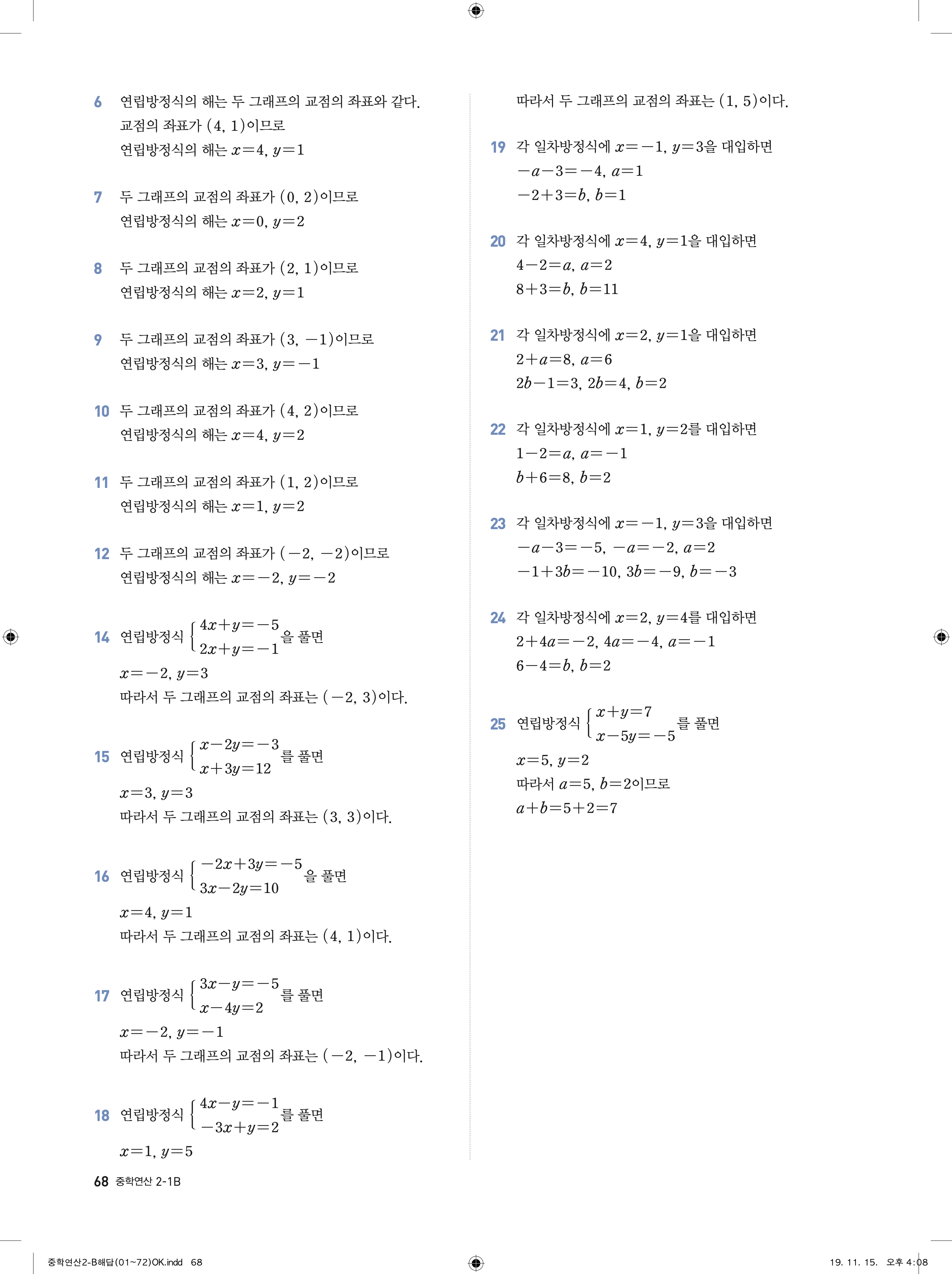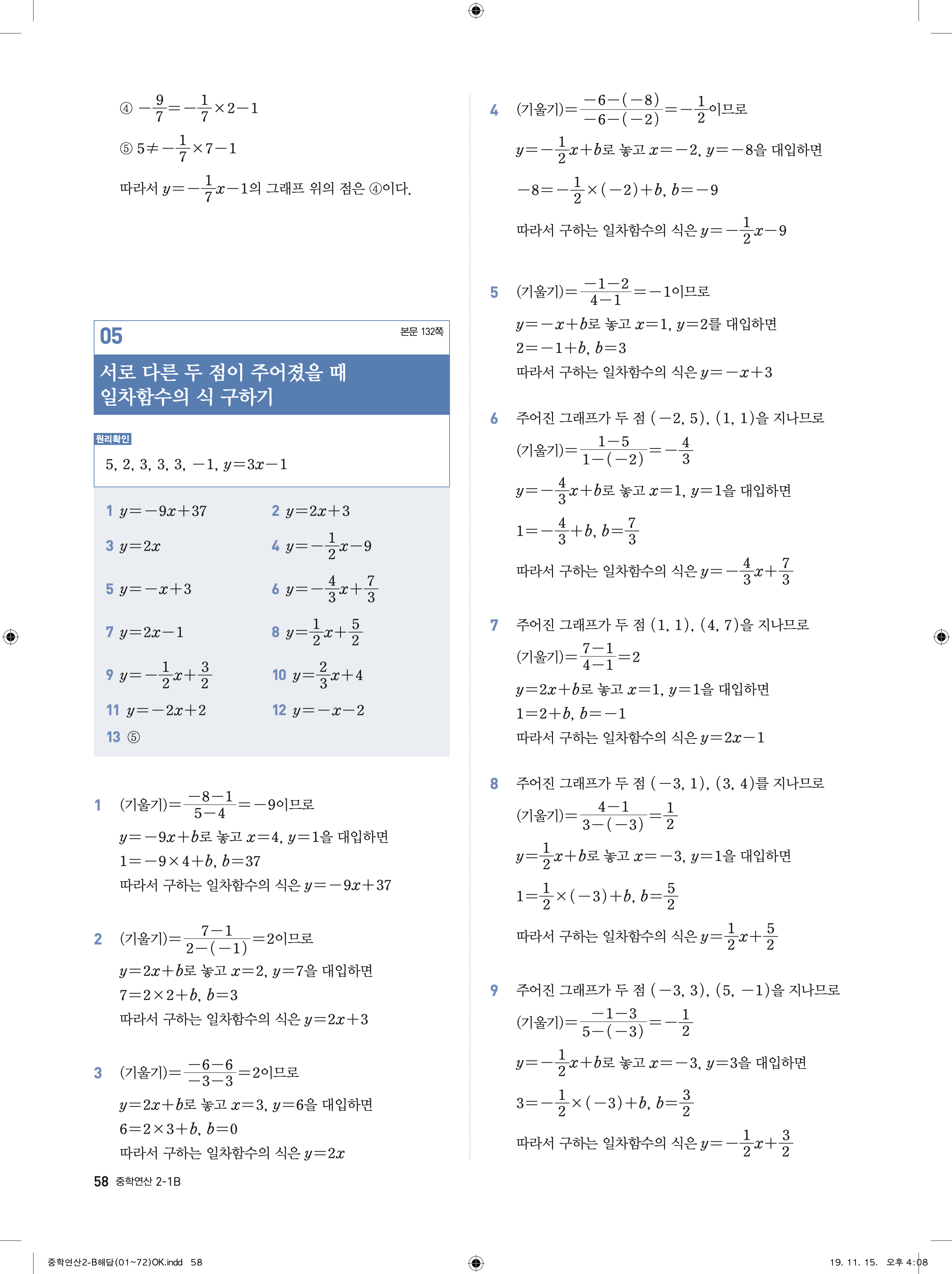 디딤돌 중학연산 2-1B 답지 해설 바로보는 사진답지 빠른답지 모바일최적화