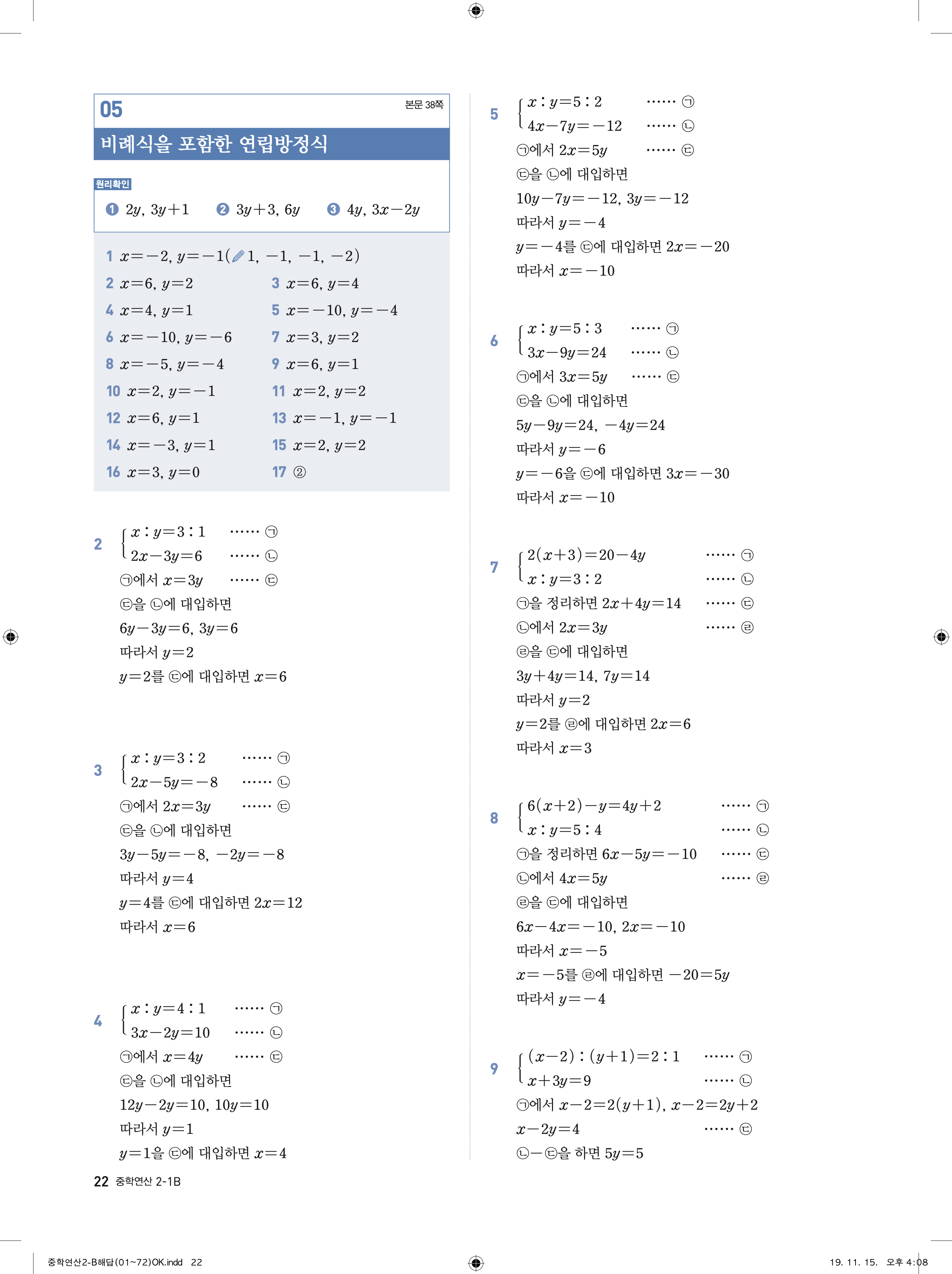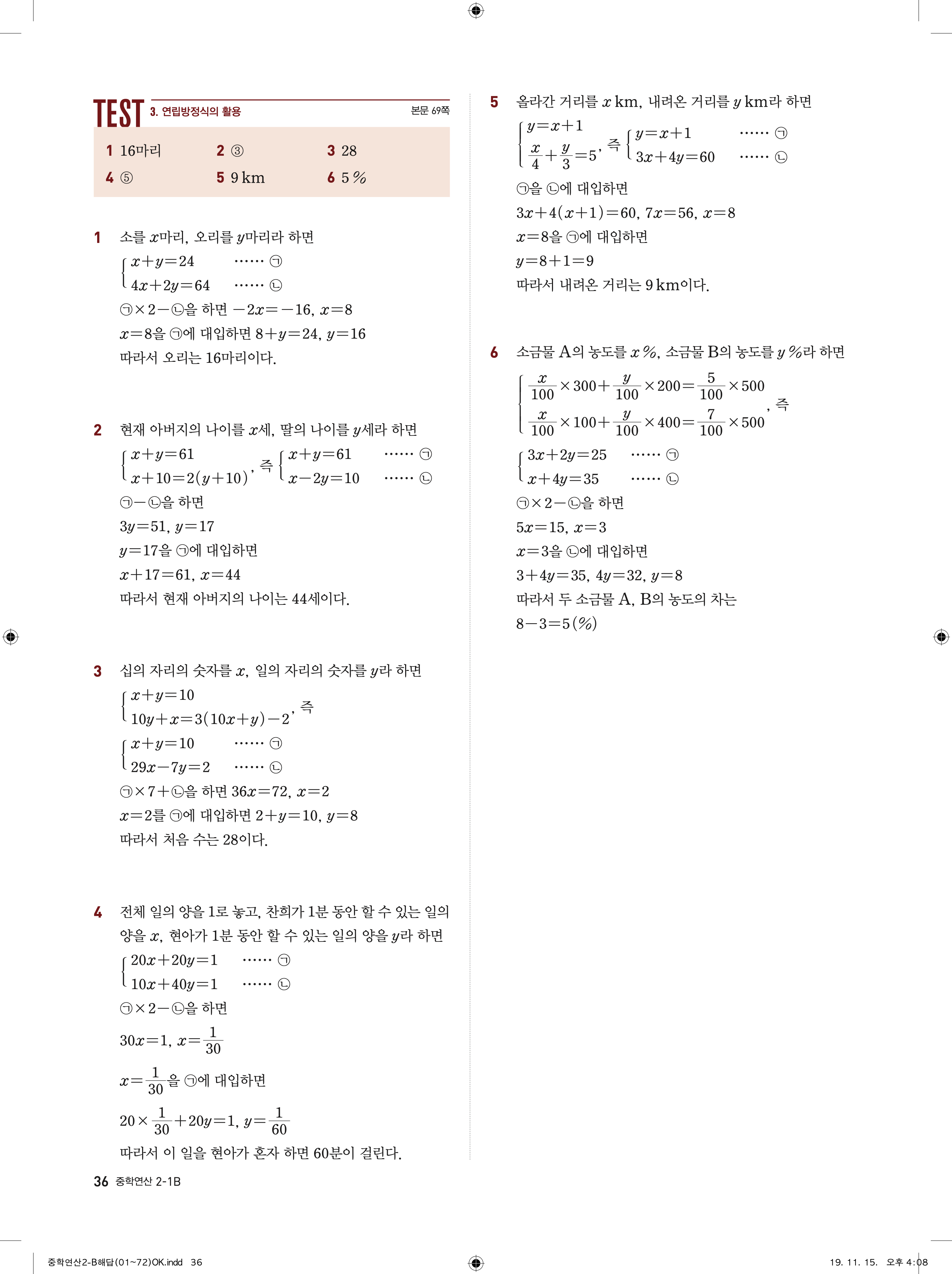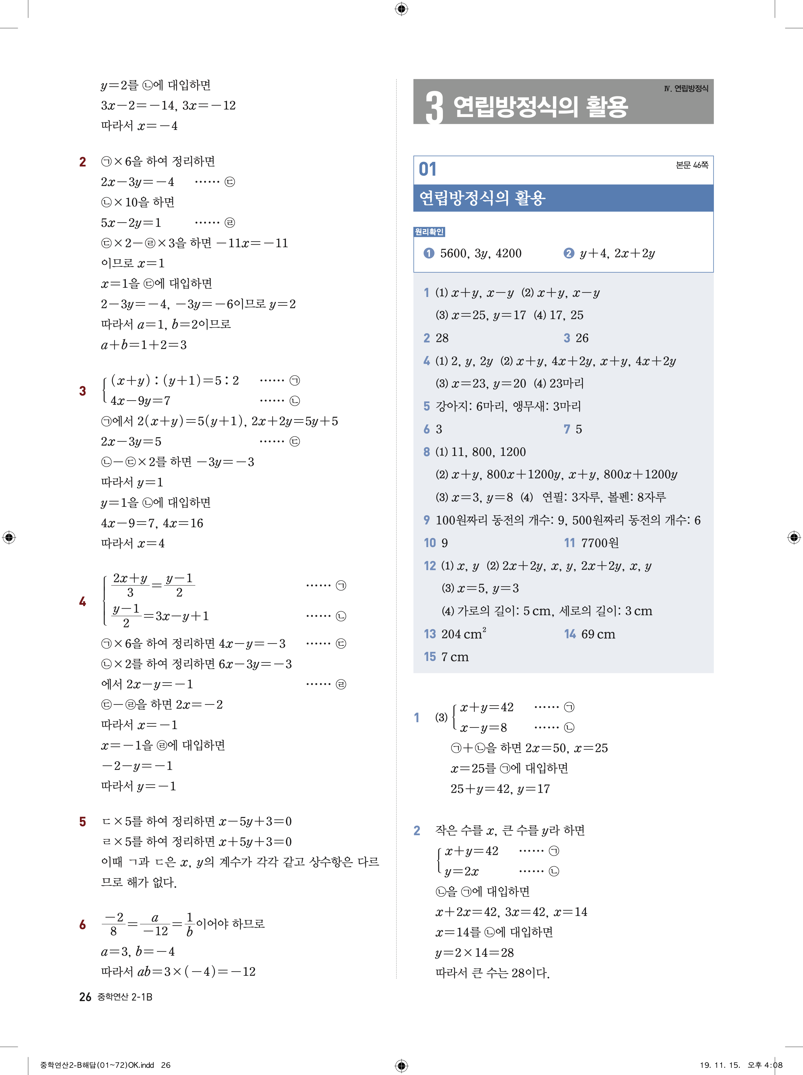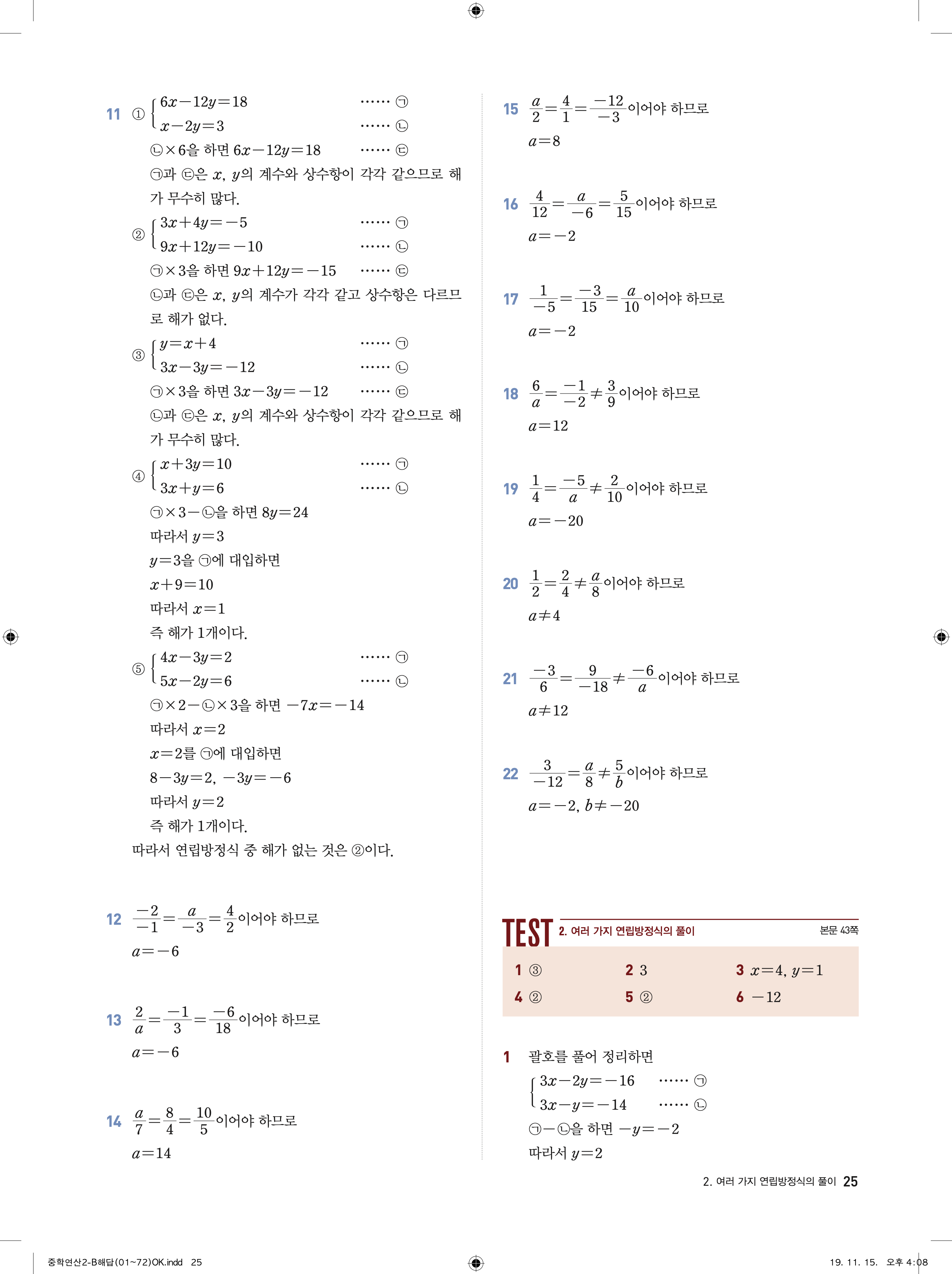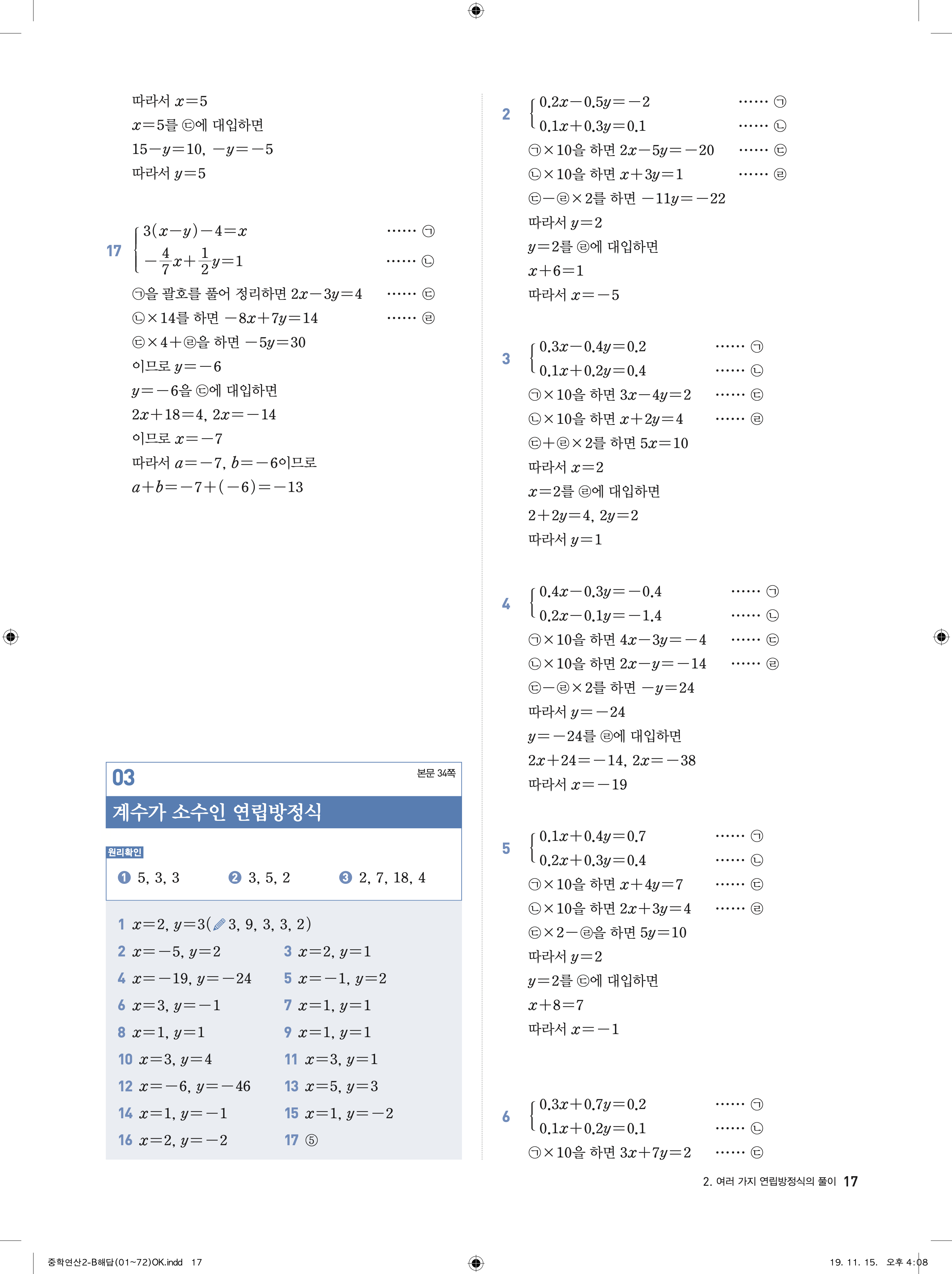 디딤돌 중학연산 2-1B 답지 해설 바로보는 사진답지 빠른답지 모바일최적화