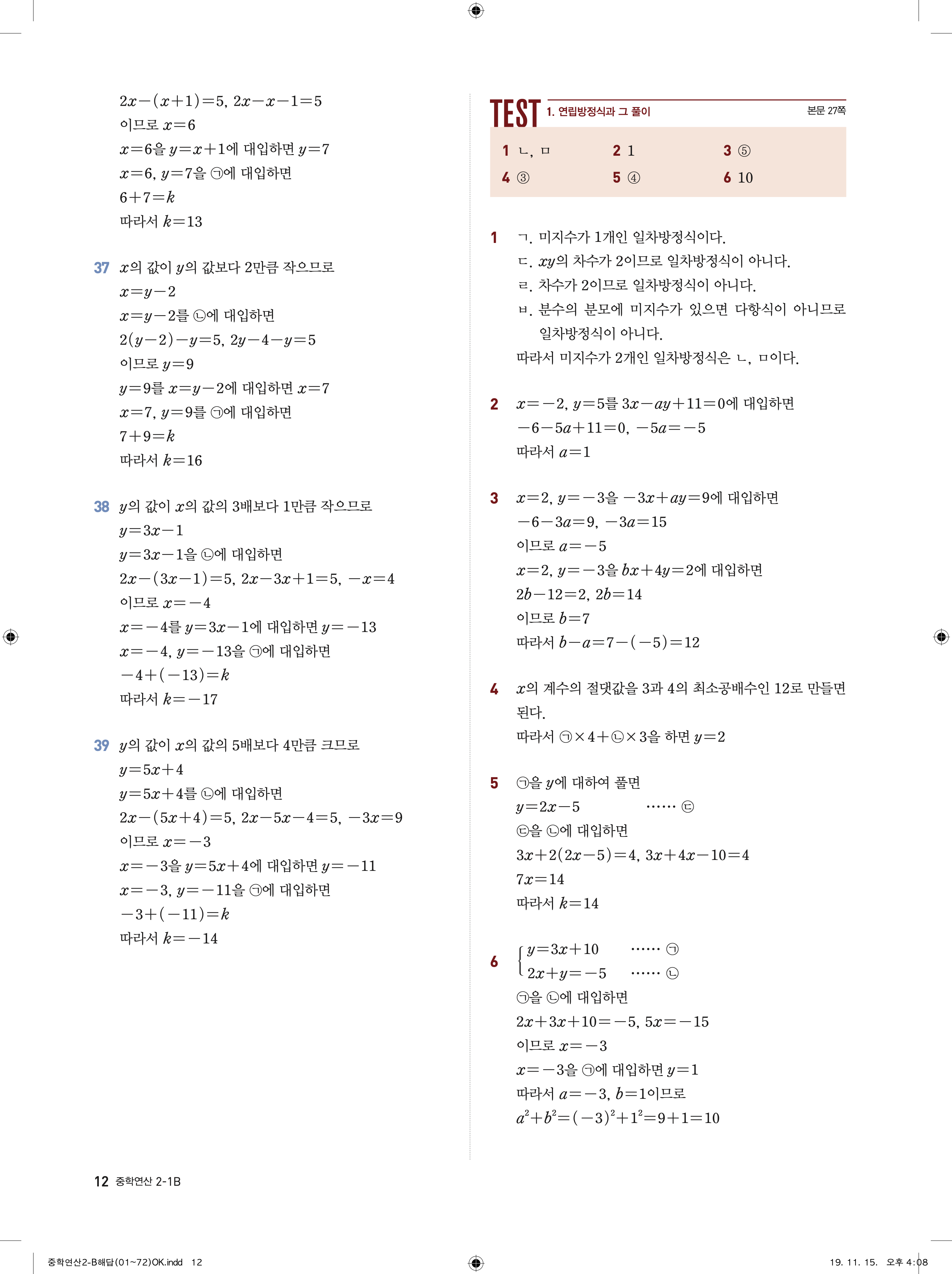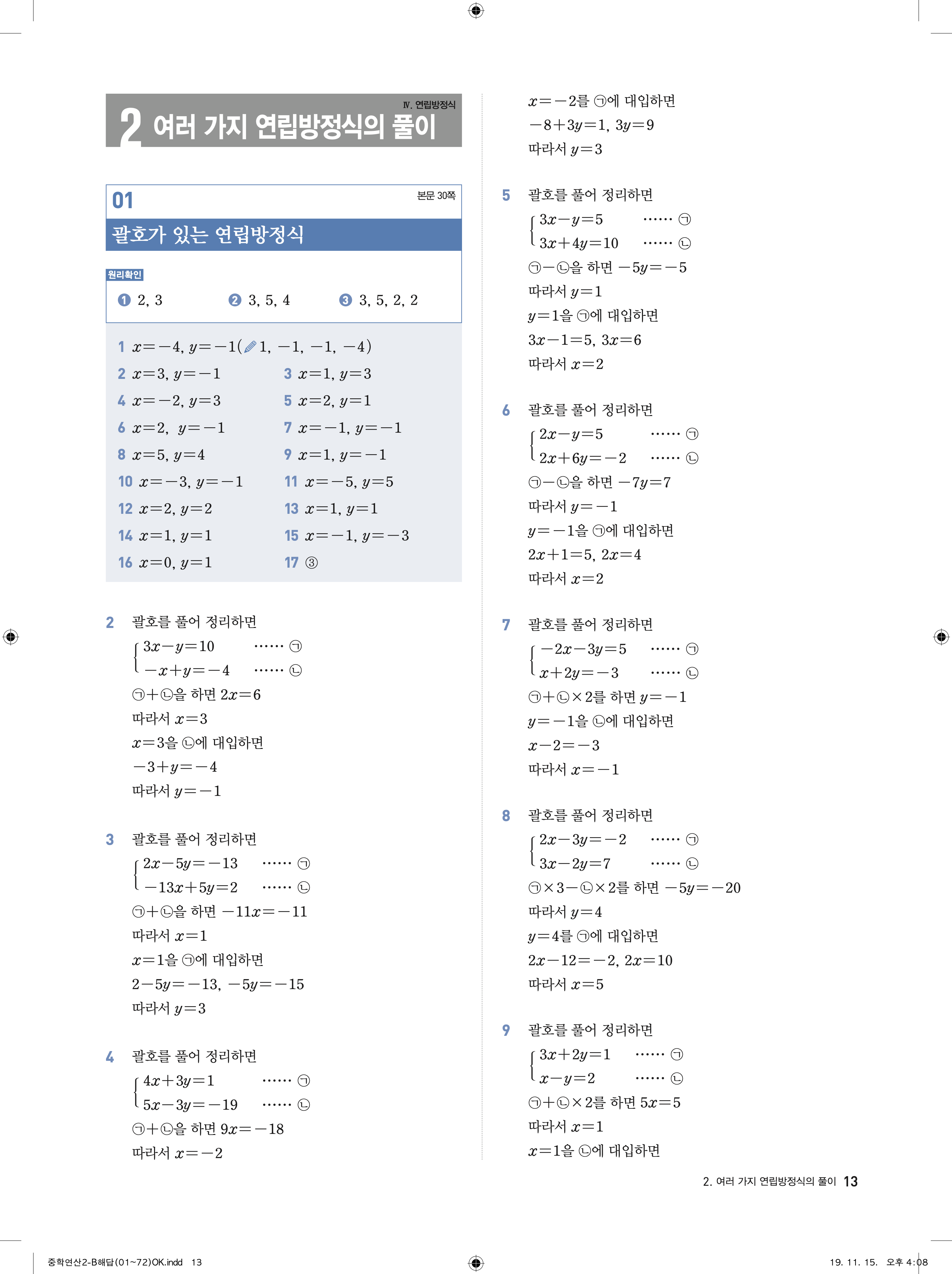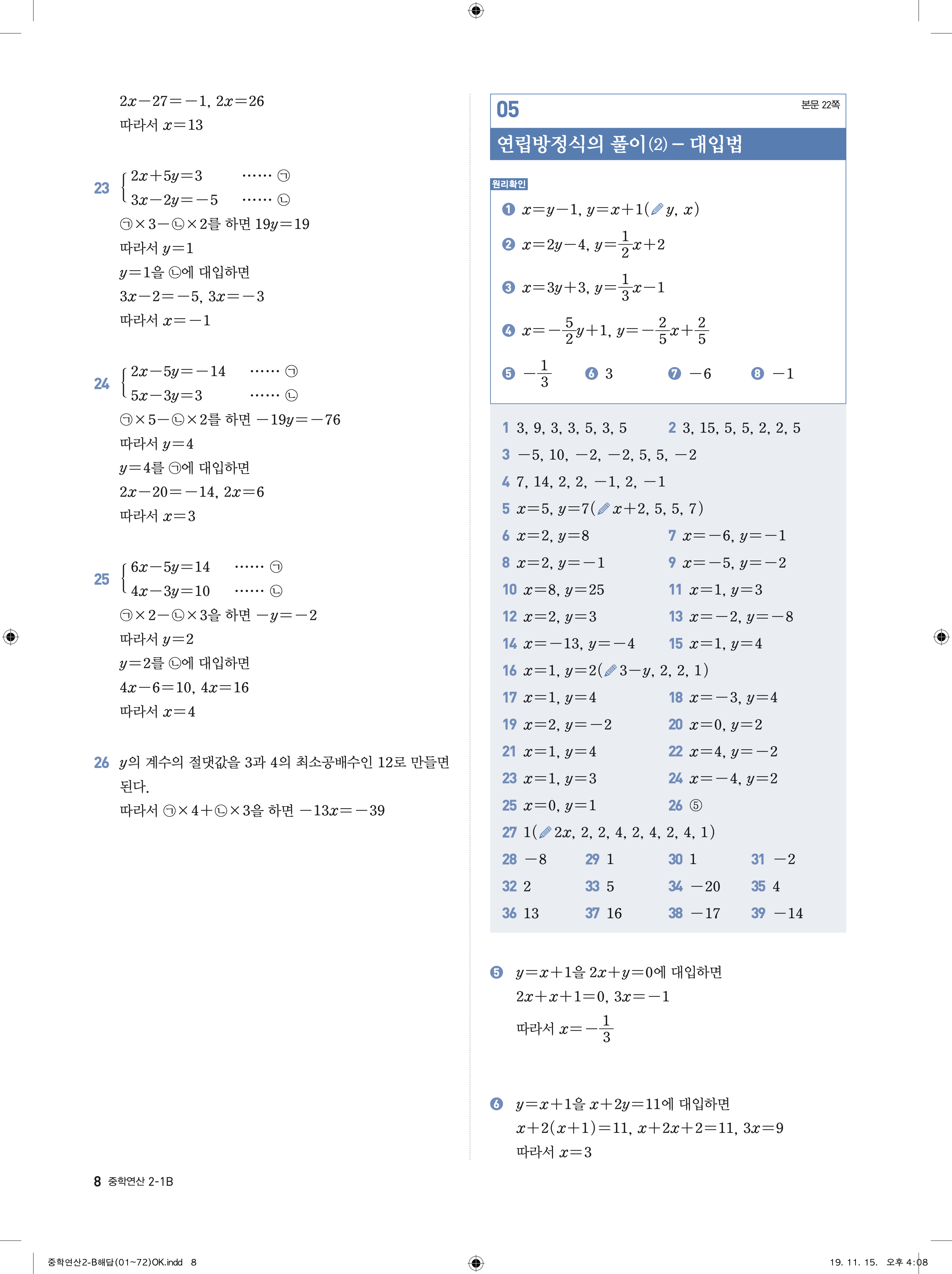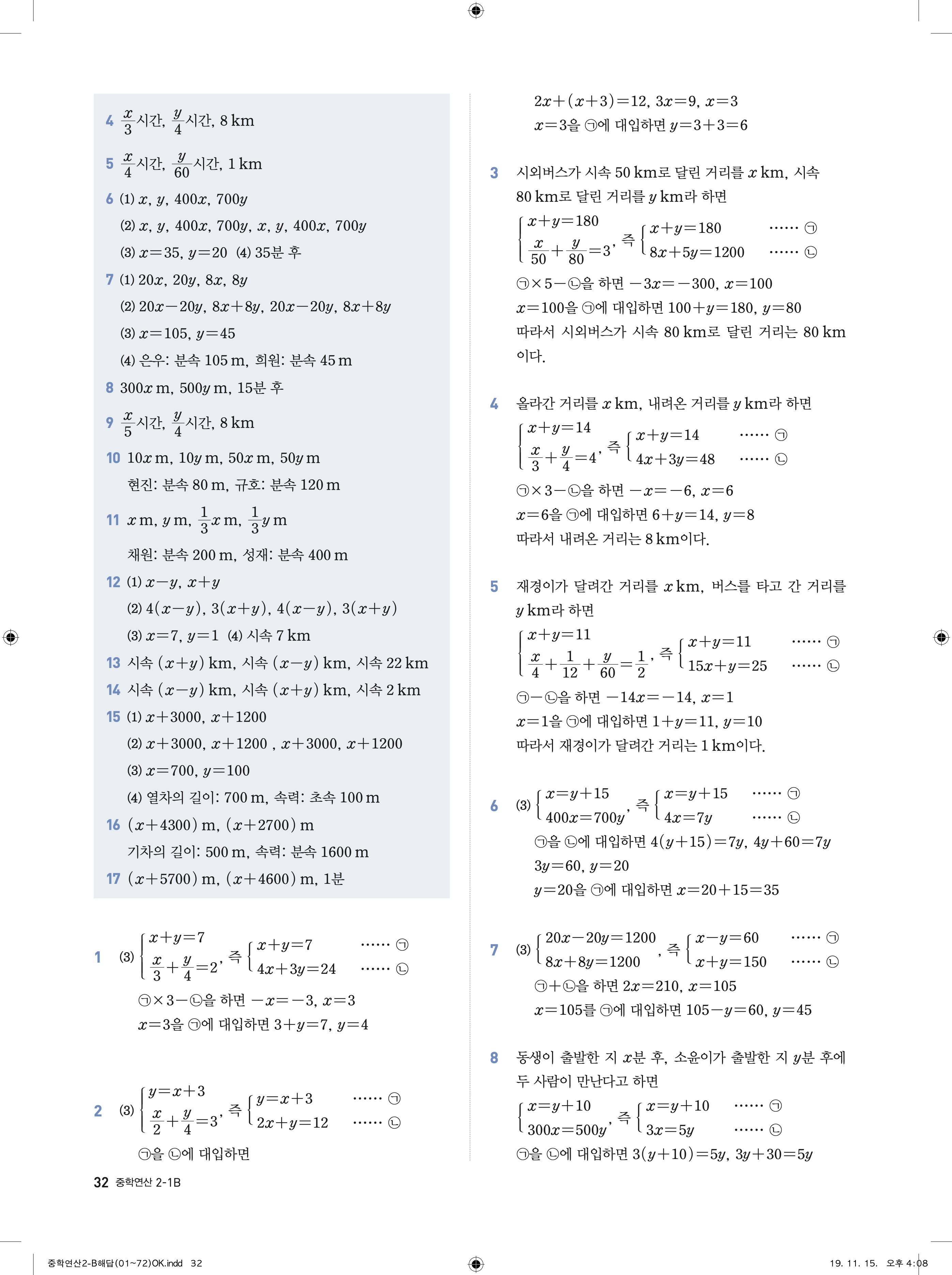 디딤돌 중학연산 2-1B 답지 해설 바로보는 사진답지 빠른답지 모바일최적화