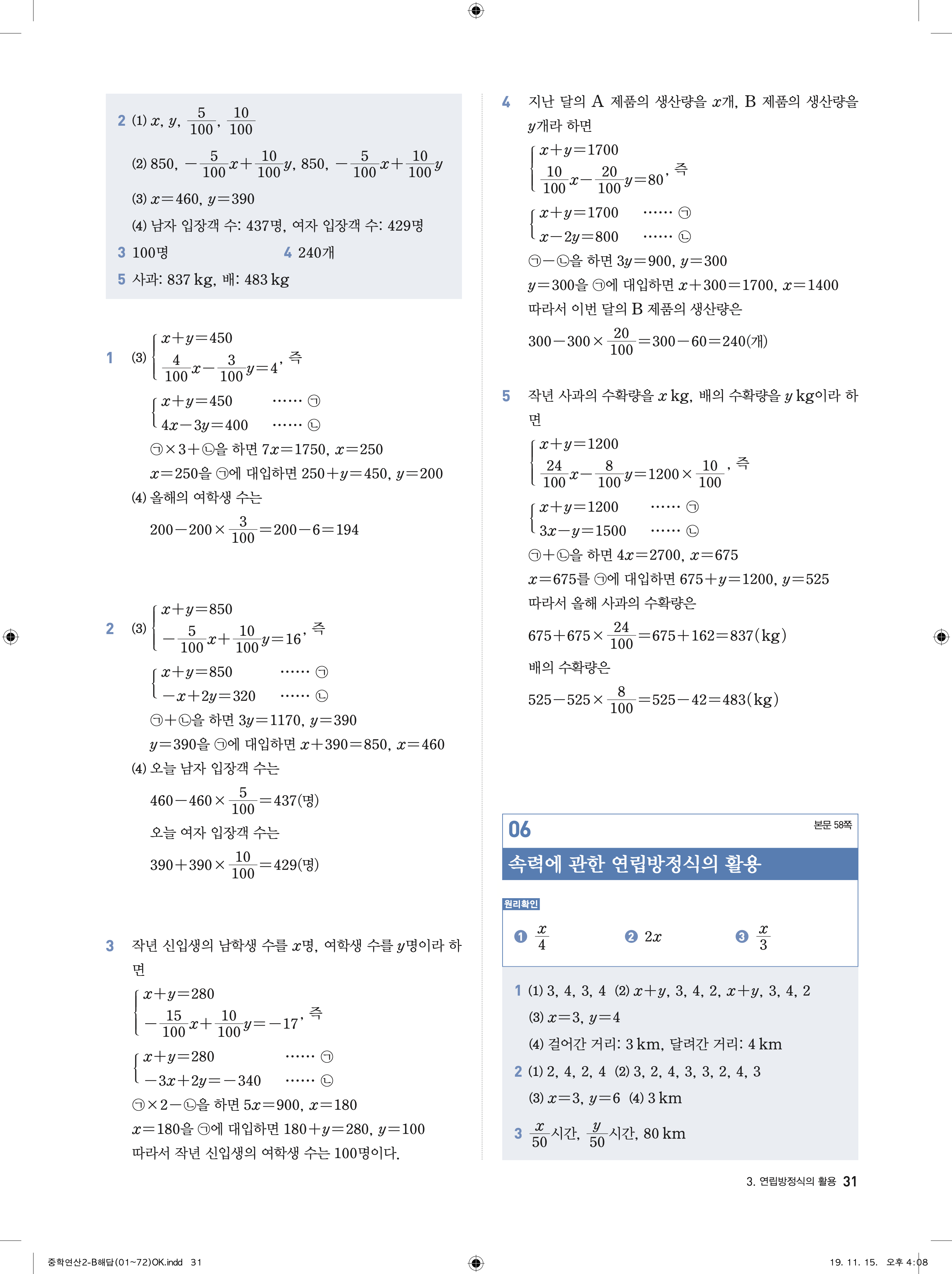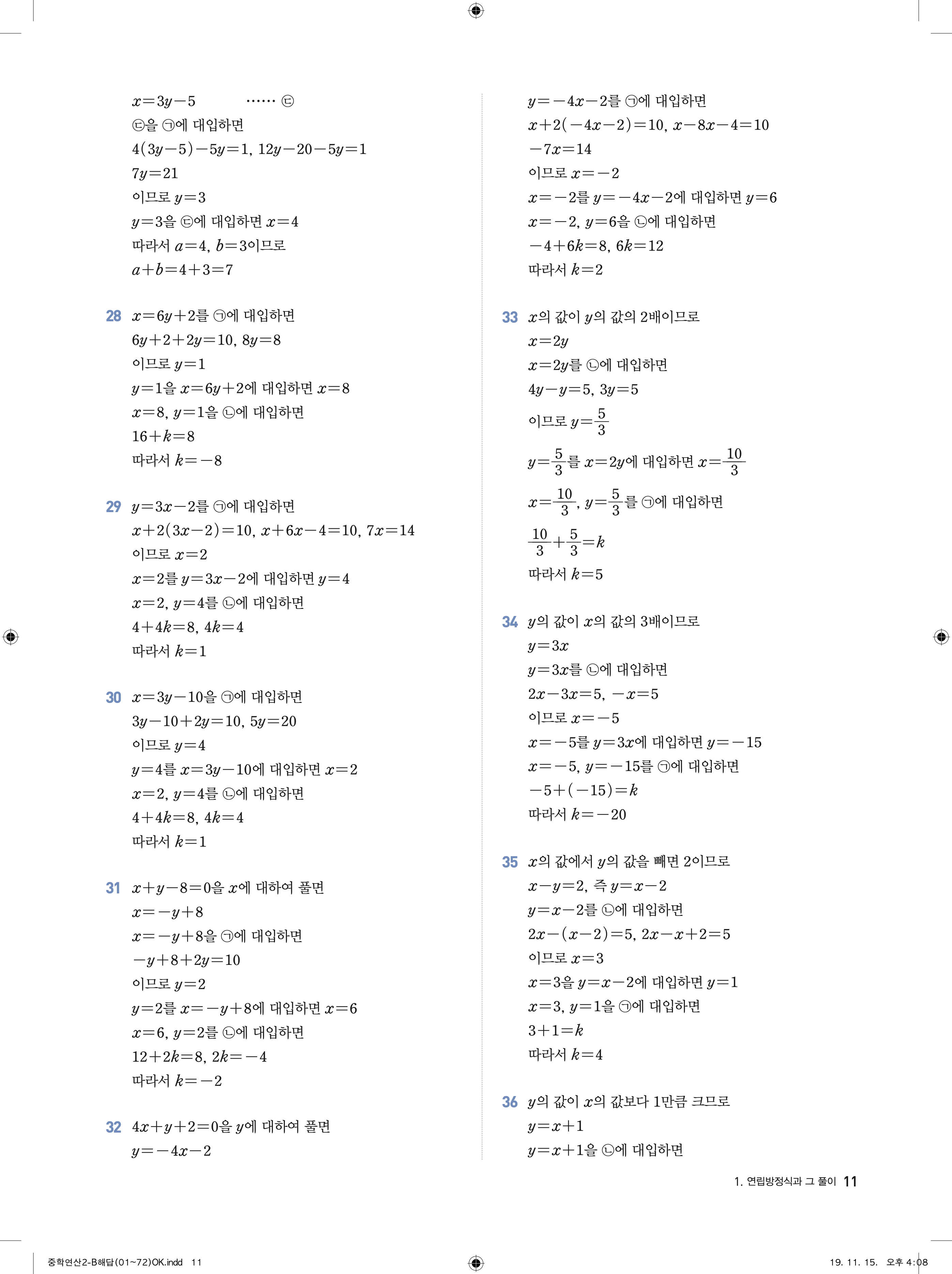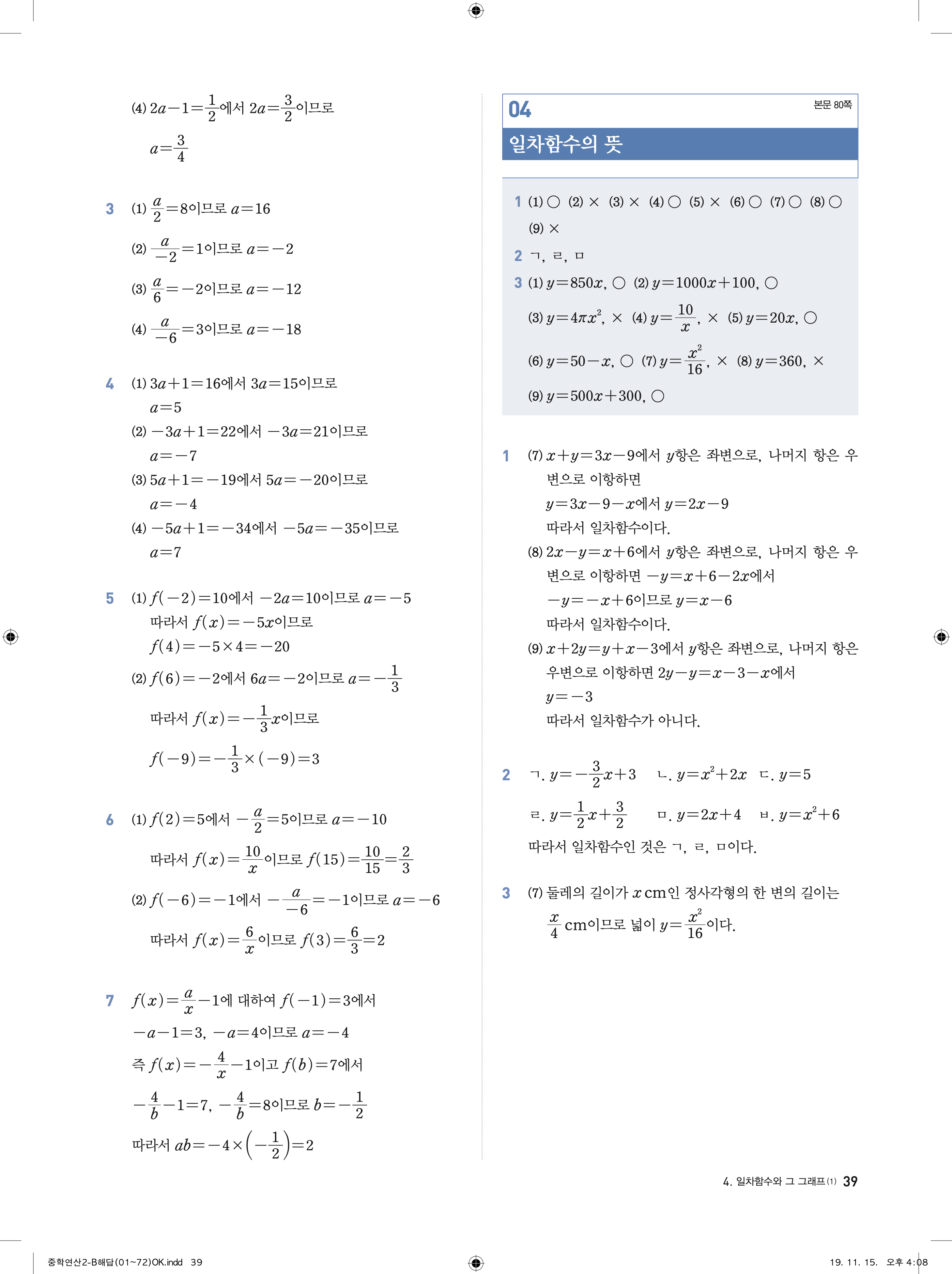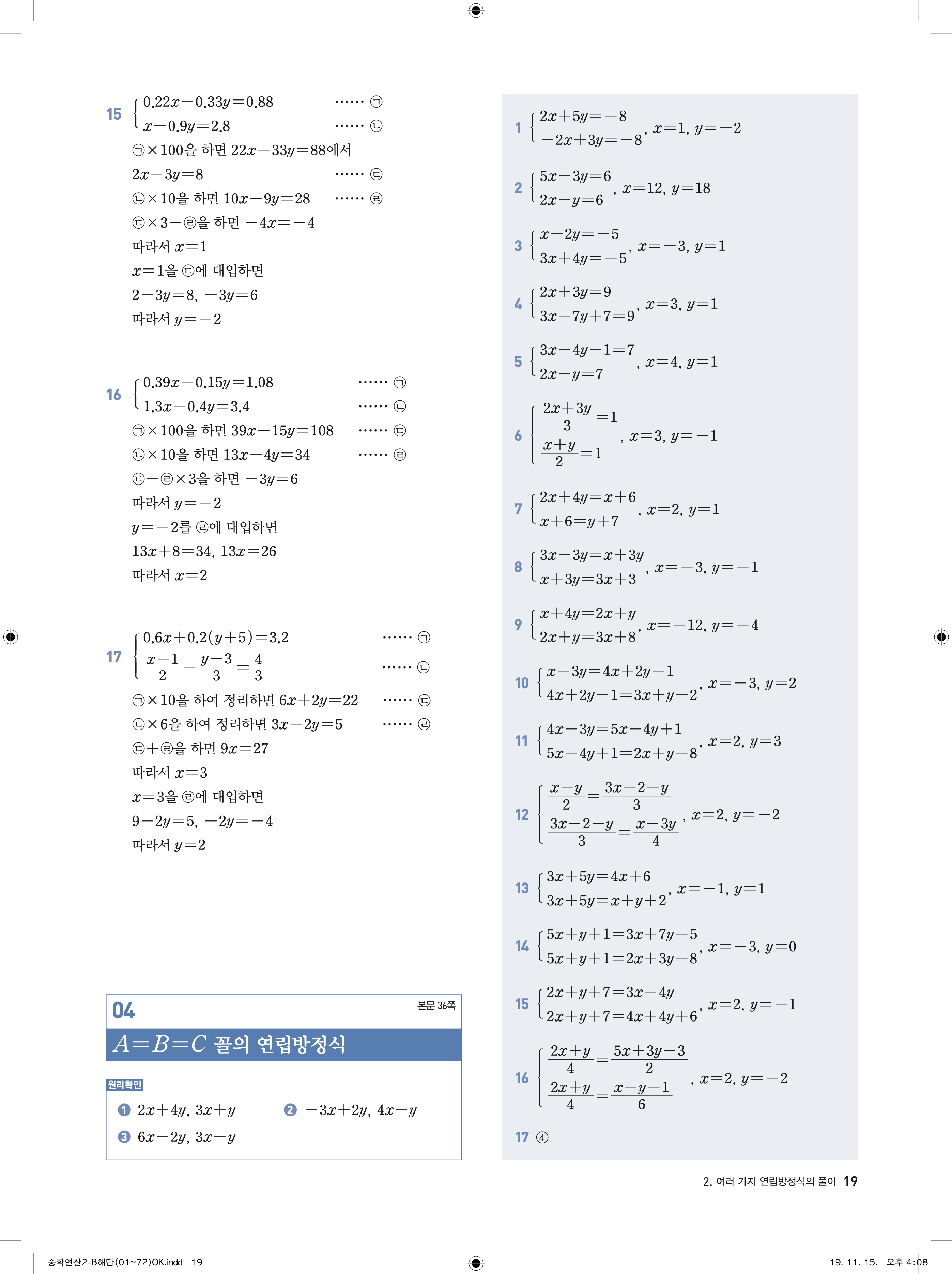 디딤돌 중학연산 2-1B 답지 해설 바로보는 사진답지 빠른답지 모바일최적화