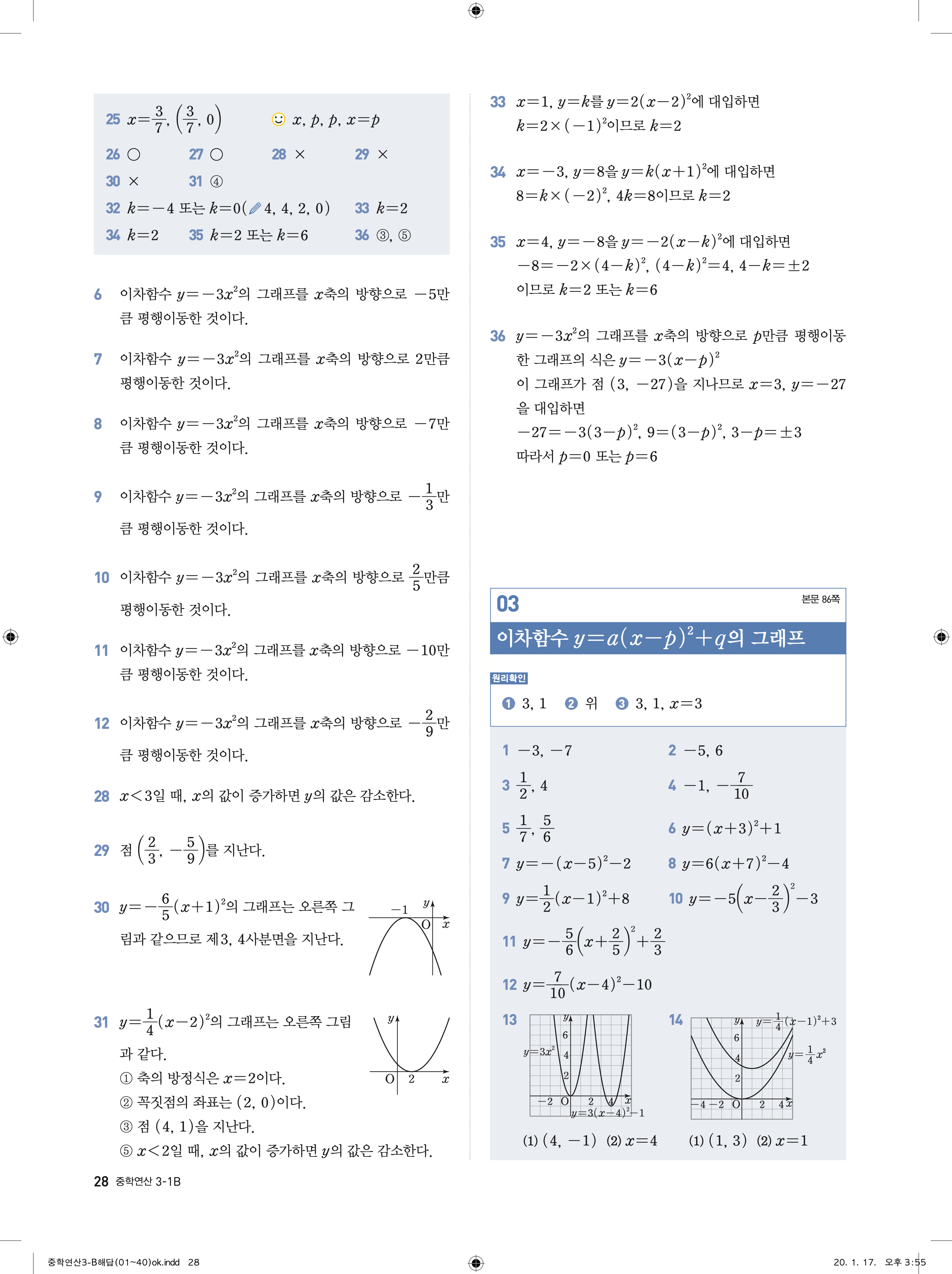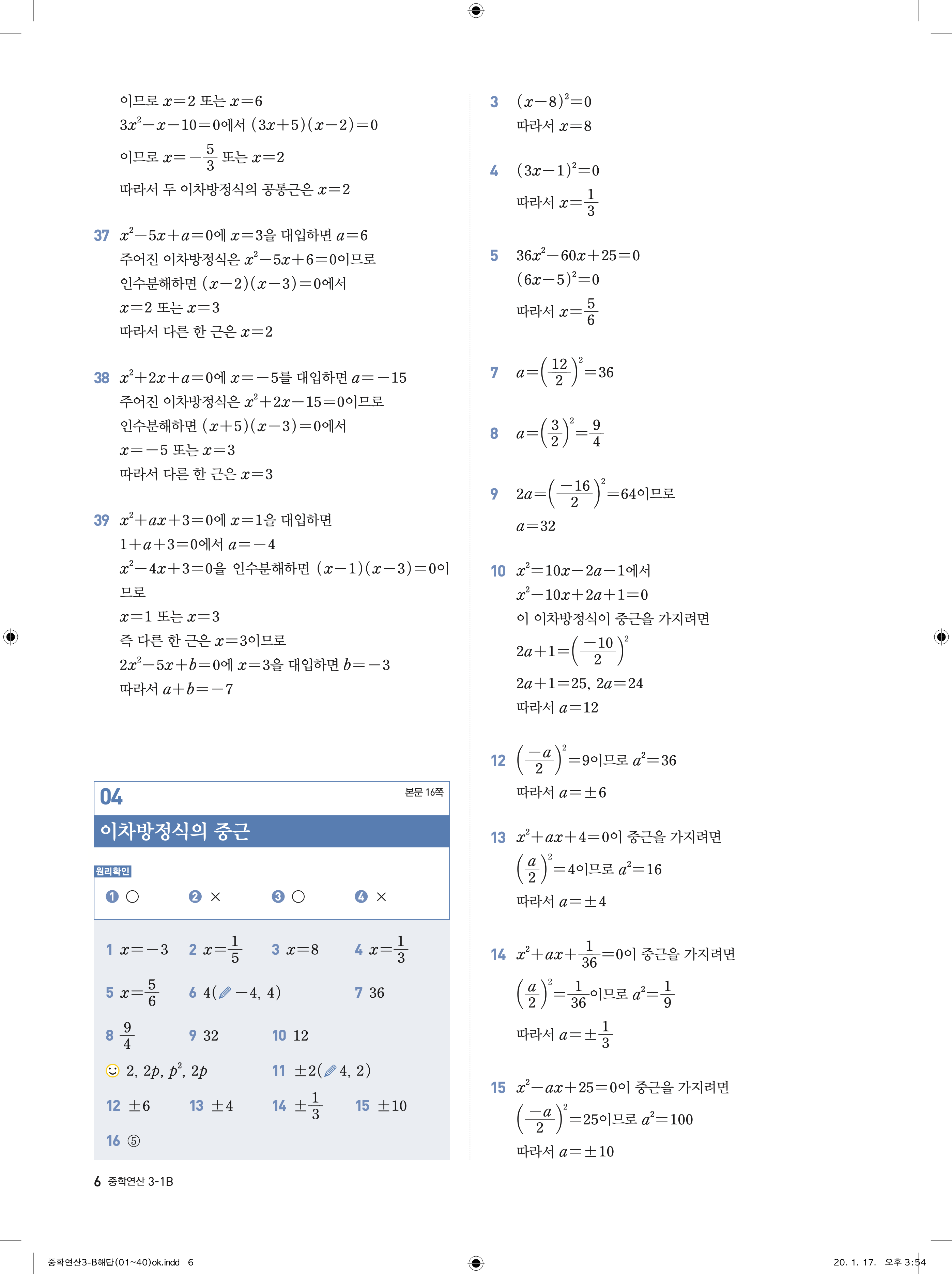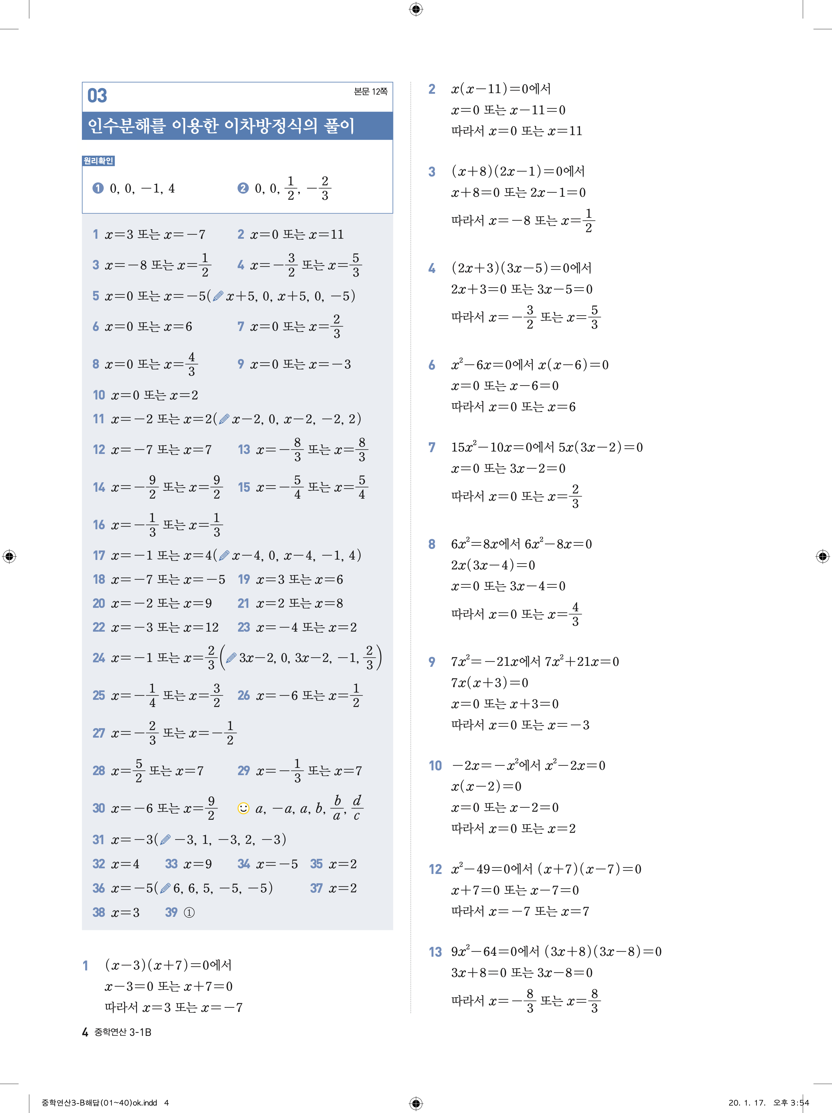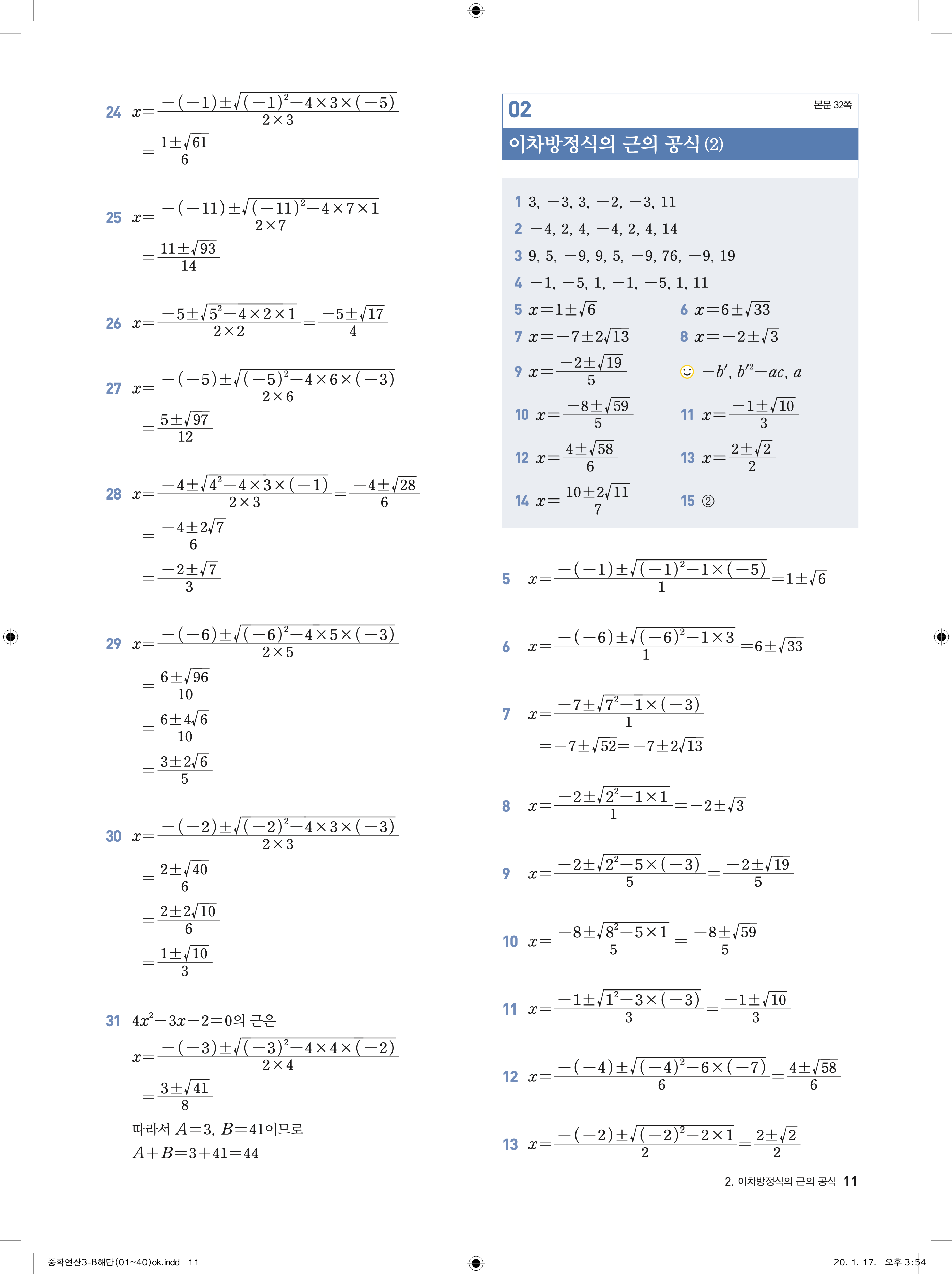 디딤돌 중학연산 3-1B 답지 해설 바로보는 사진답지 빠른답지 모바일최적화