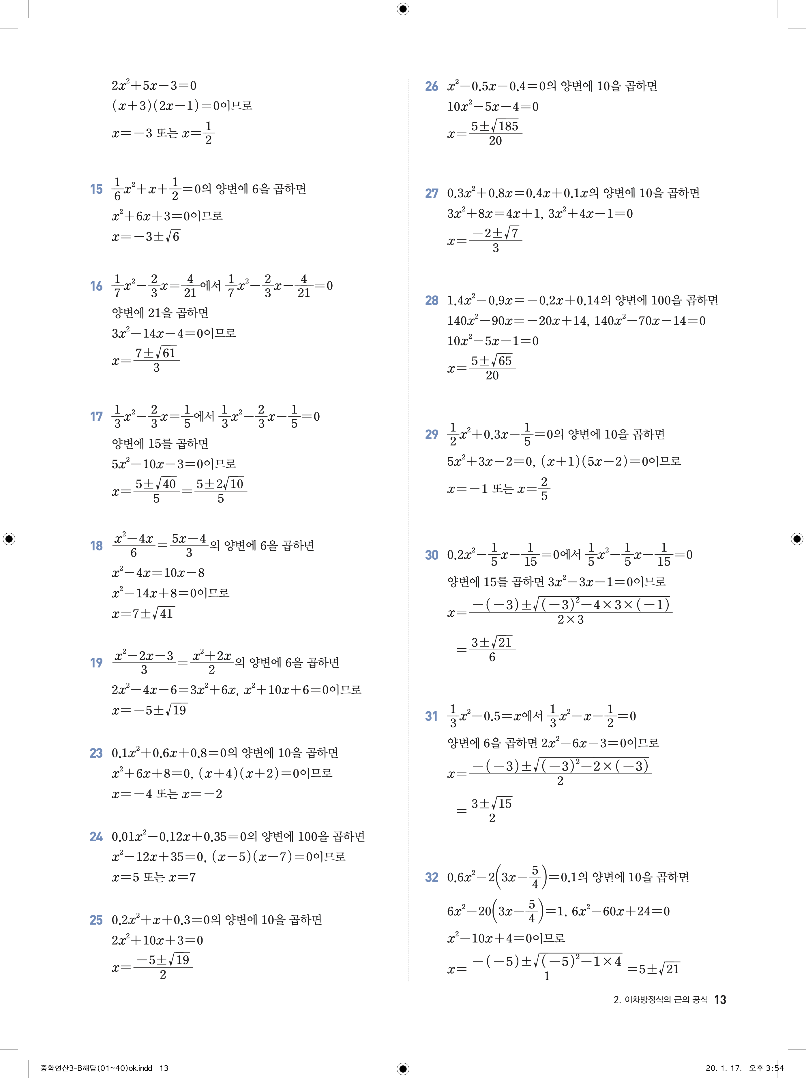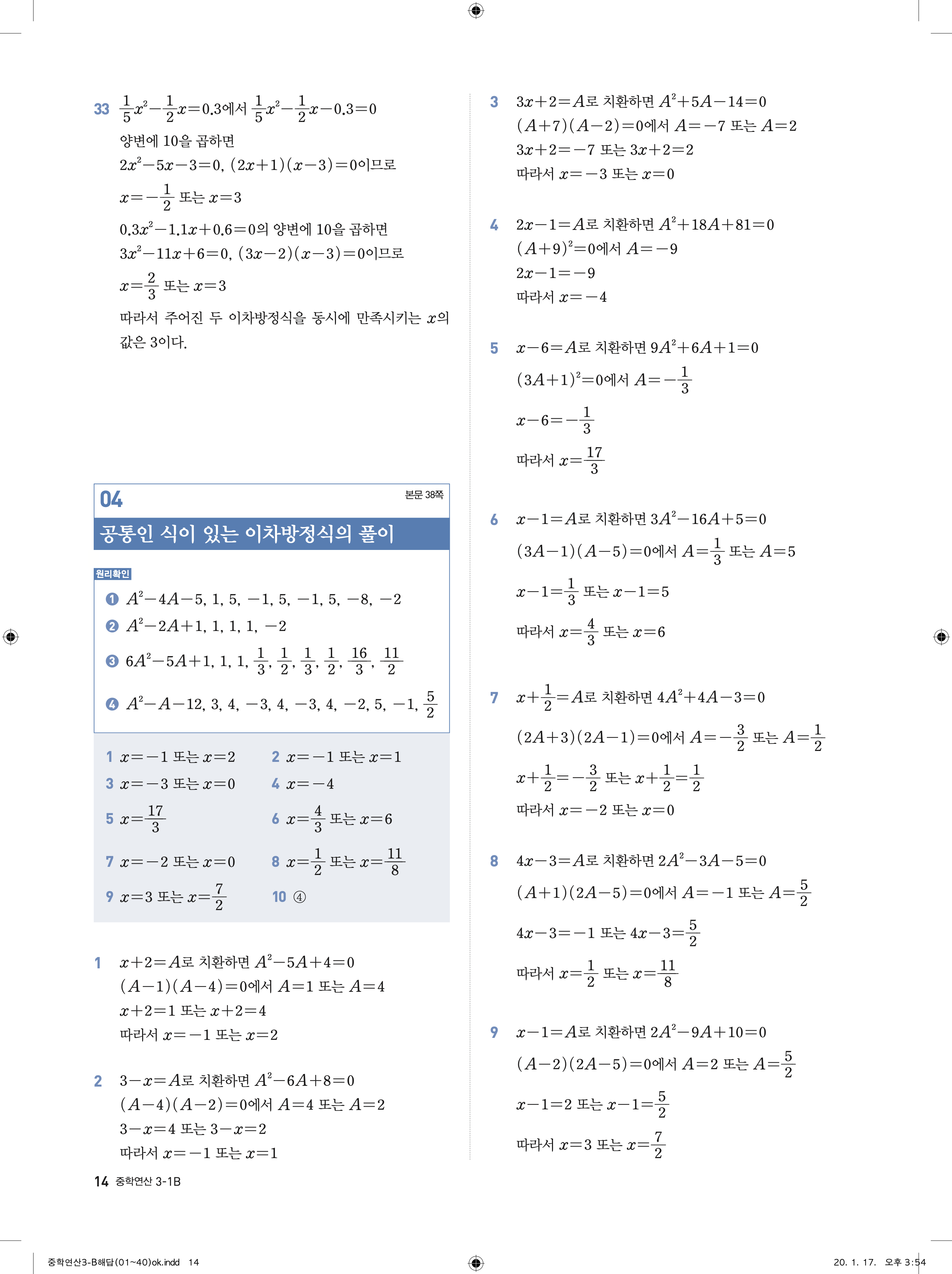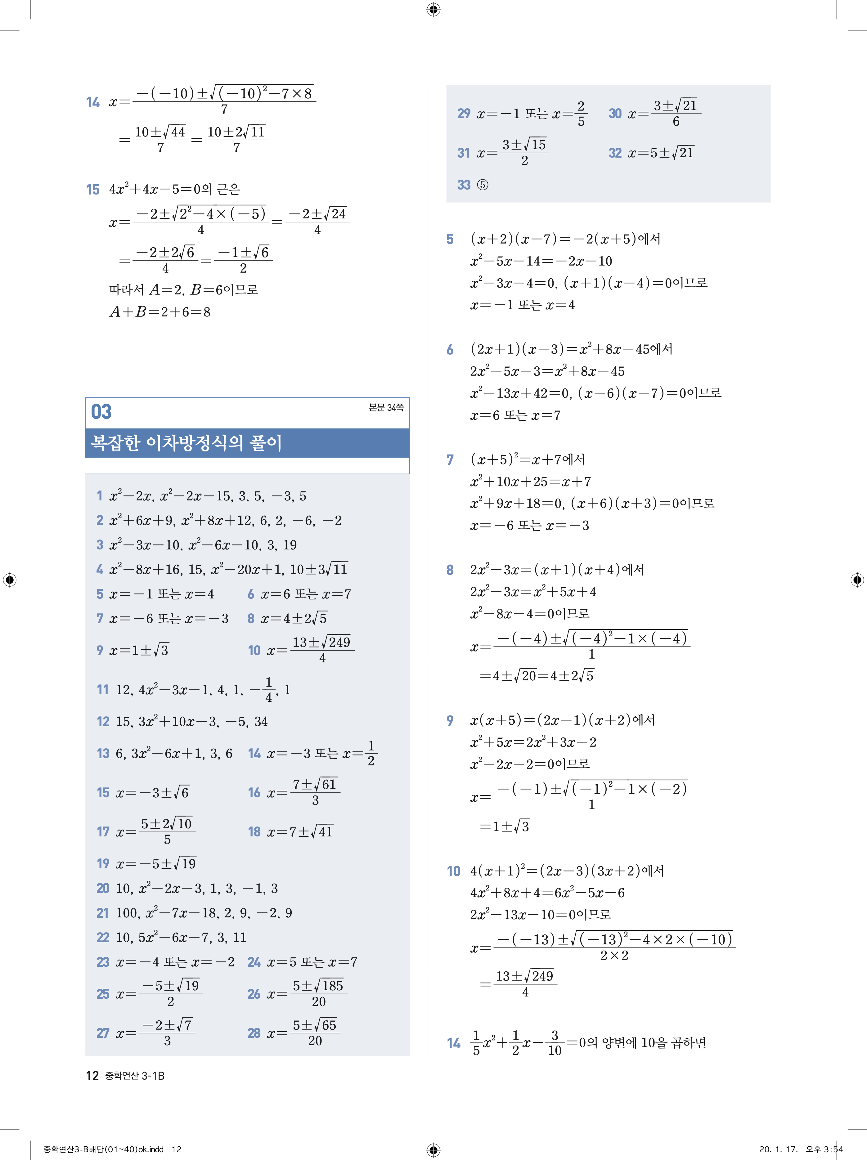 디딤돌 중학연산 3-1B 답지 해설 바로보는 사진답지 빠른답지 모바일최적화