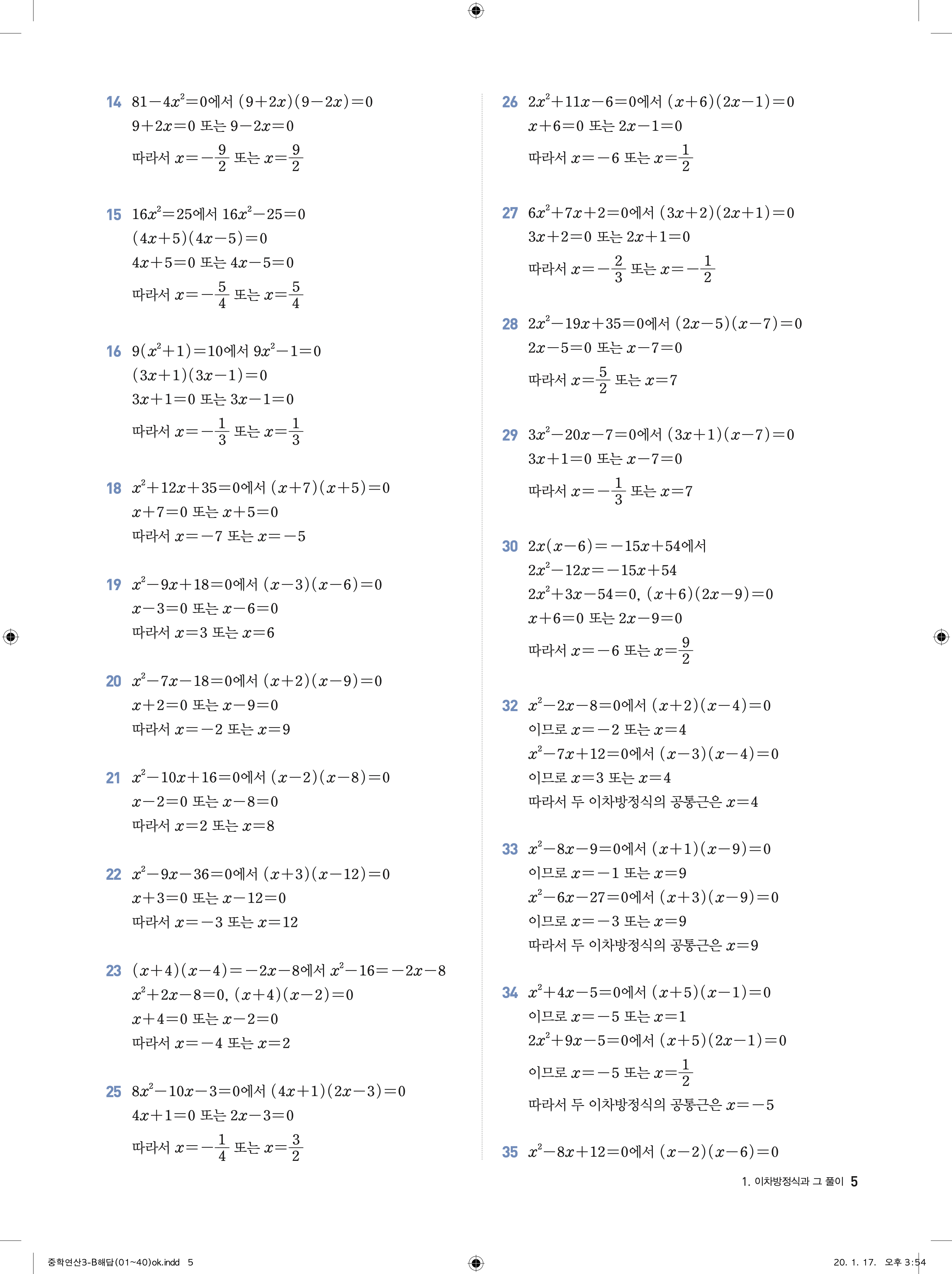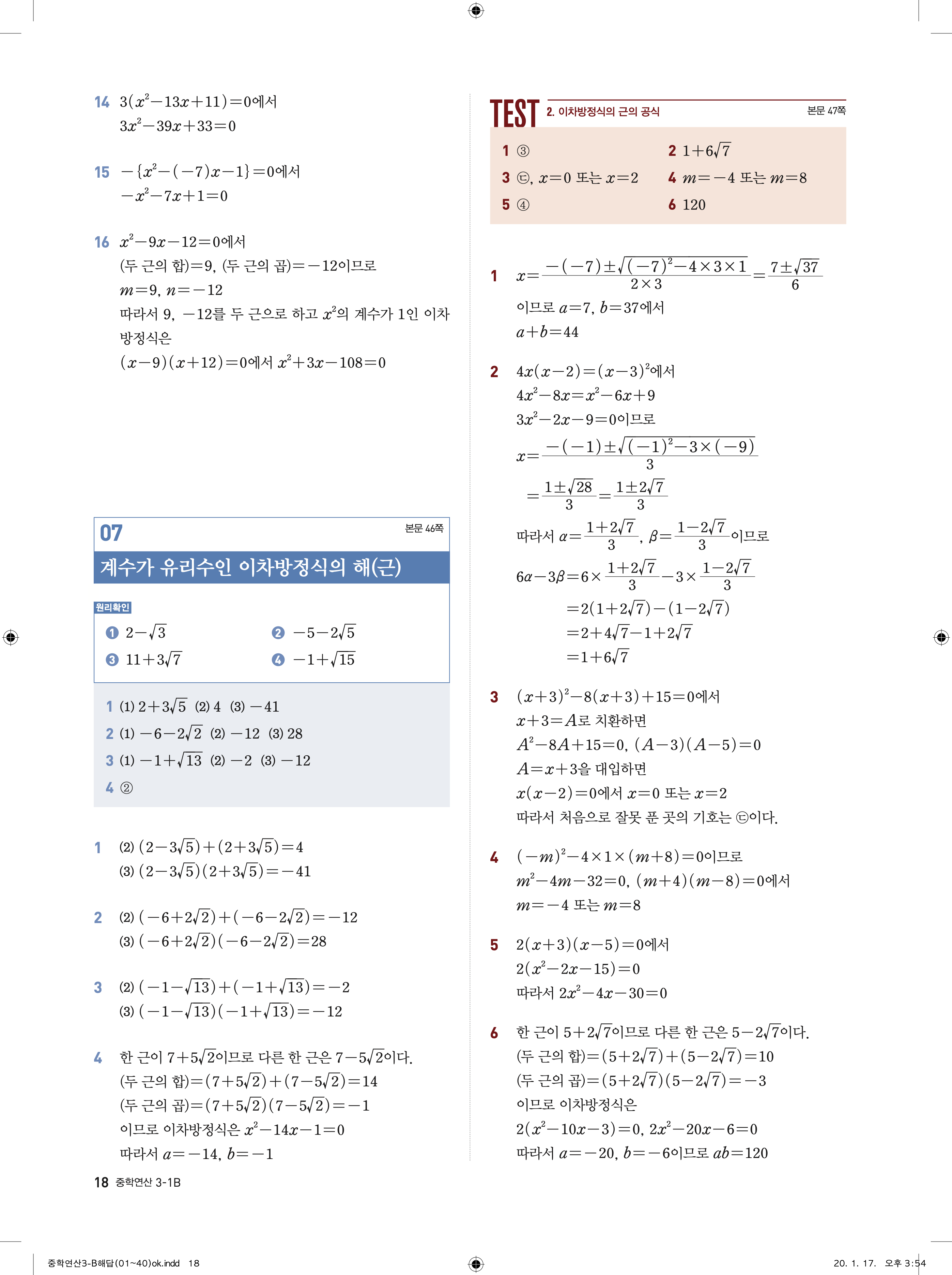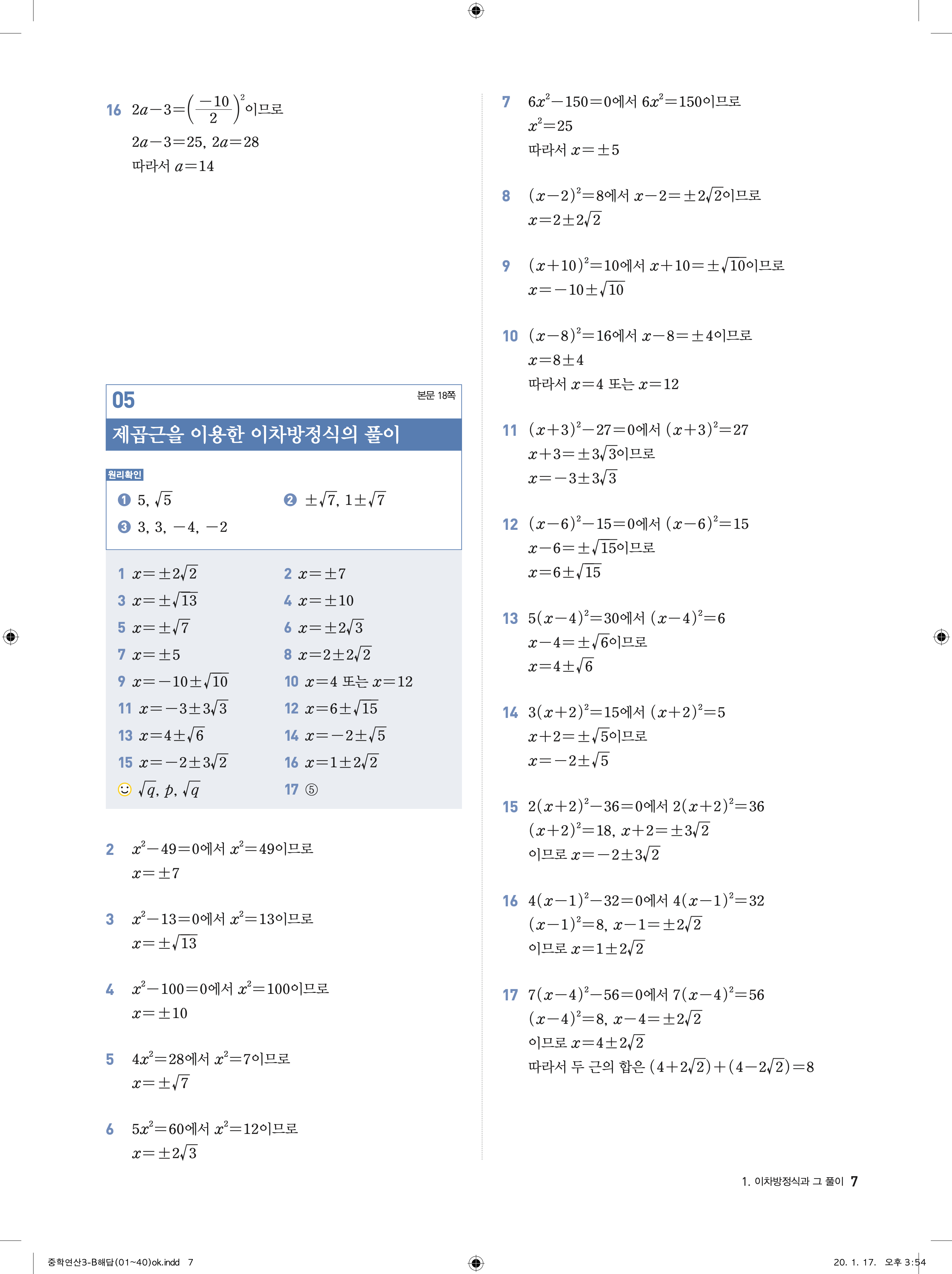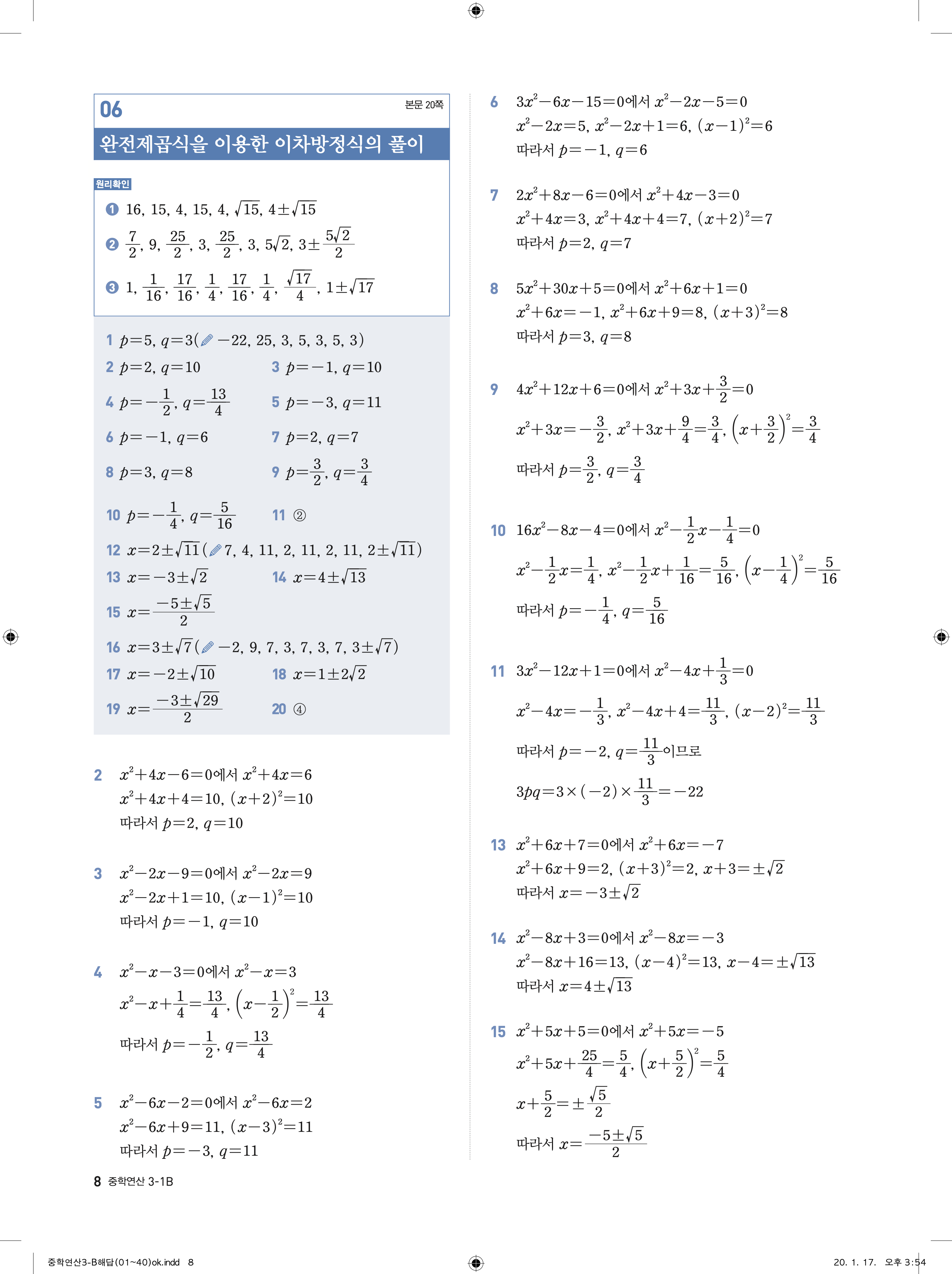디딤돌 중학연산 3-1B 답지 해설 바로보는 사진답지 빠른답지 모바일최적화