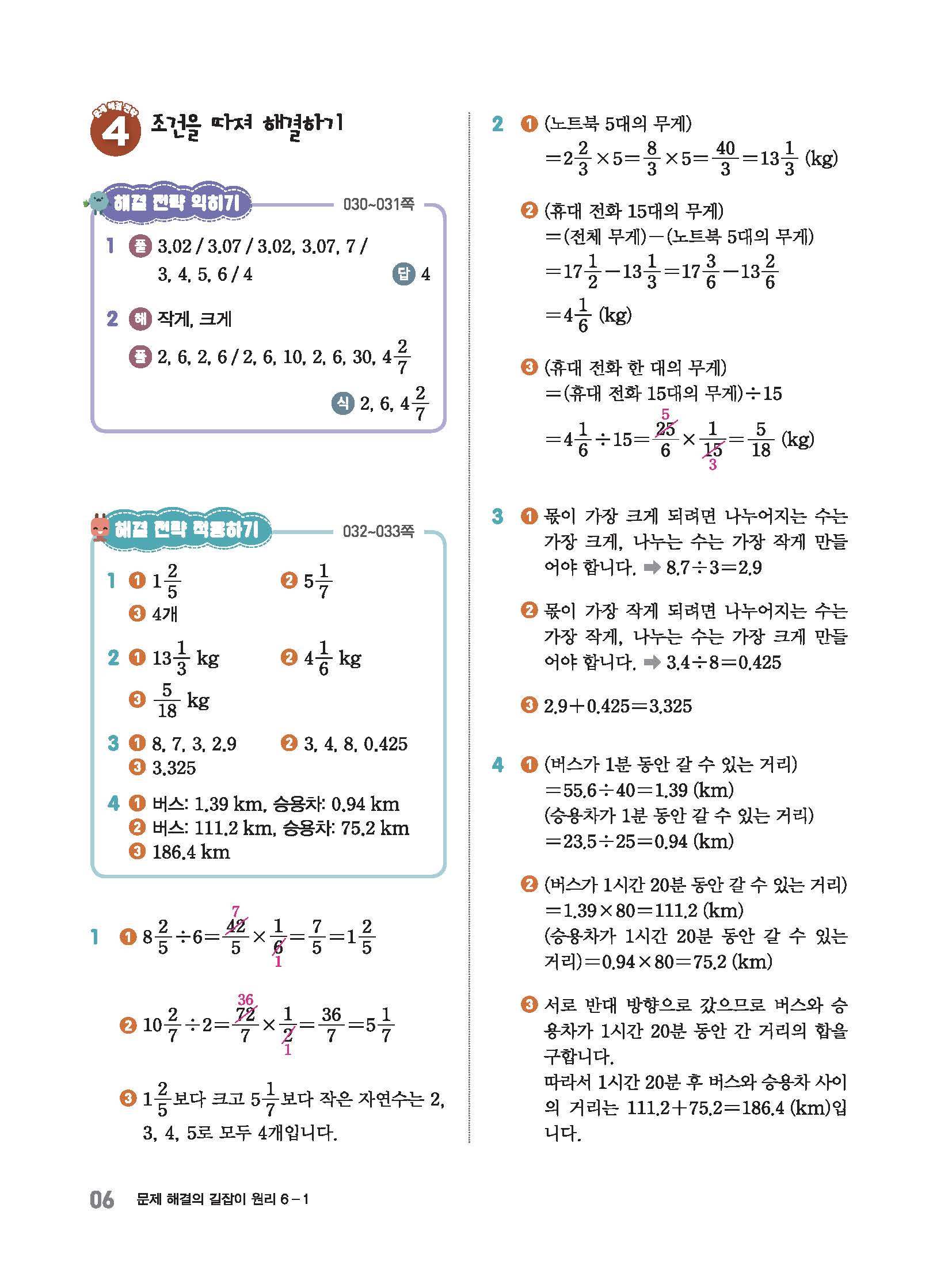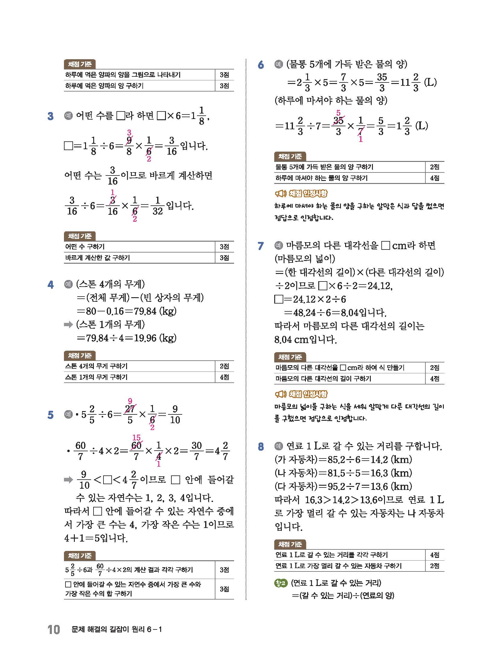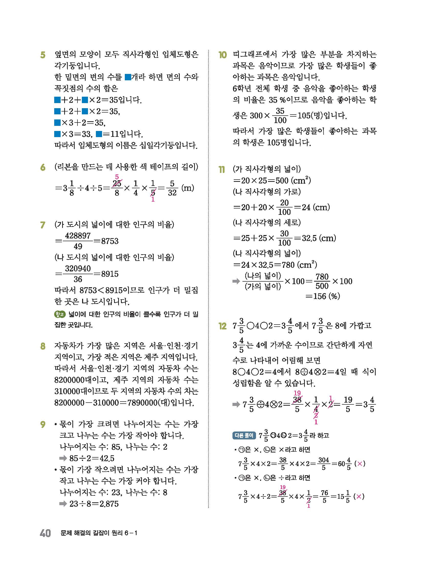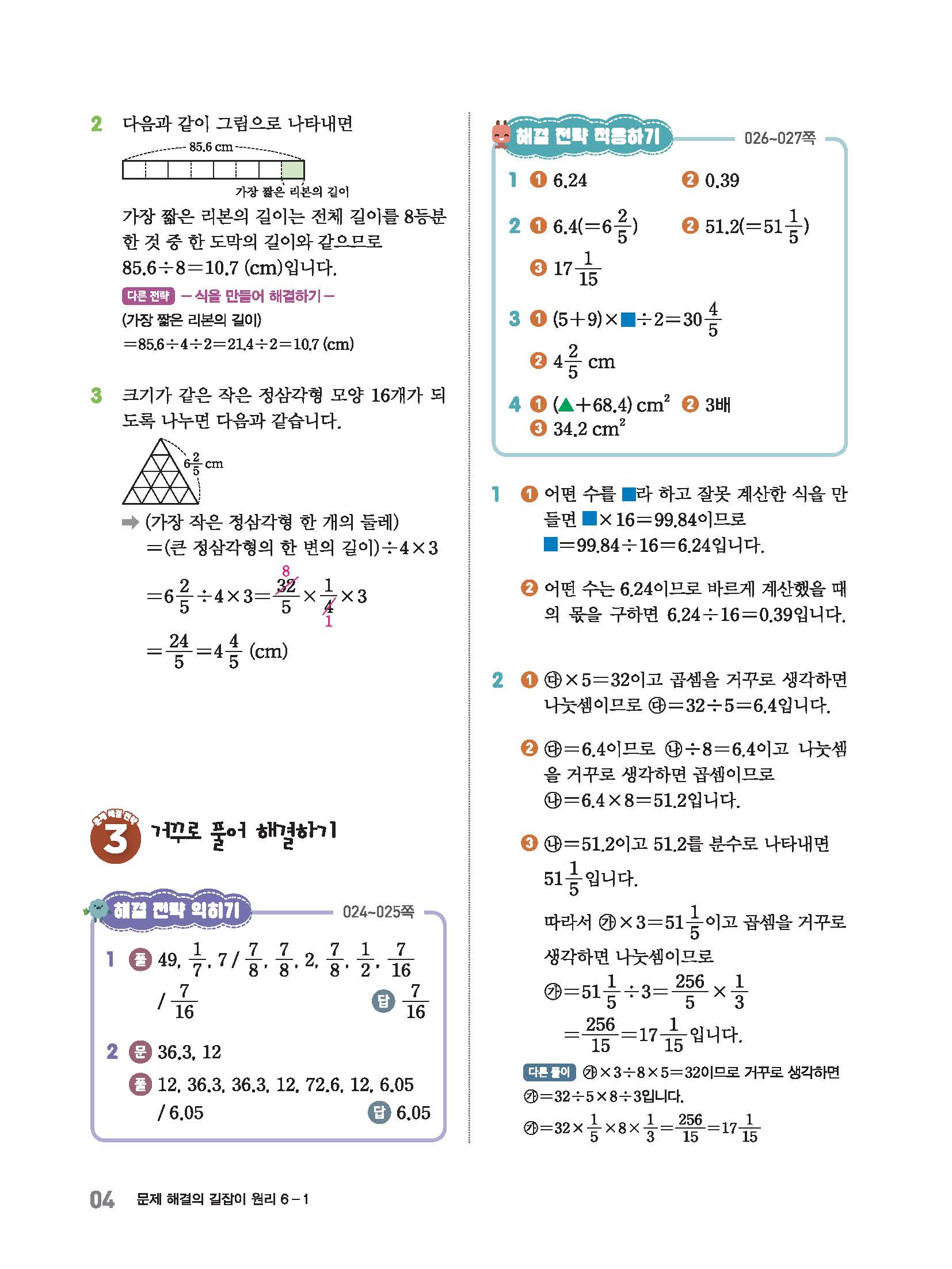미래엔 문제 해결의 길잡이 원리 6-1 답지 사진답지 빠른답지 모바일최적화