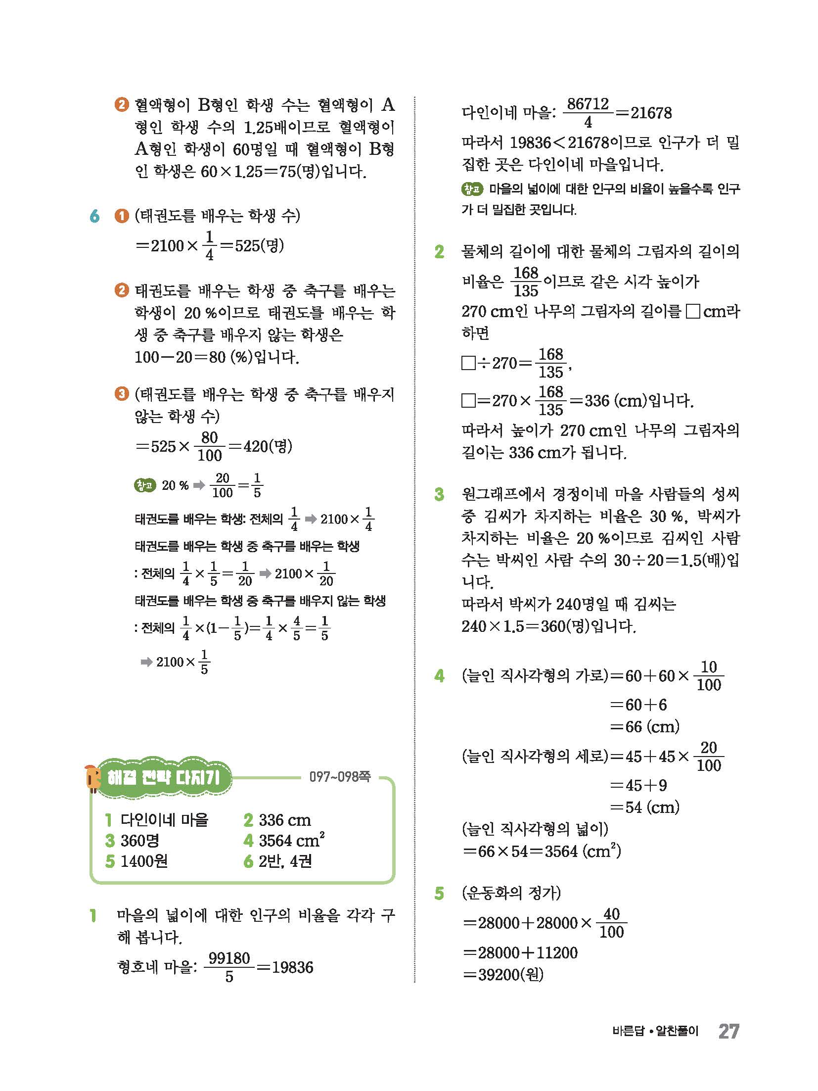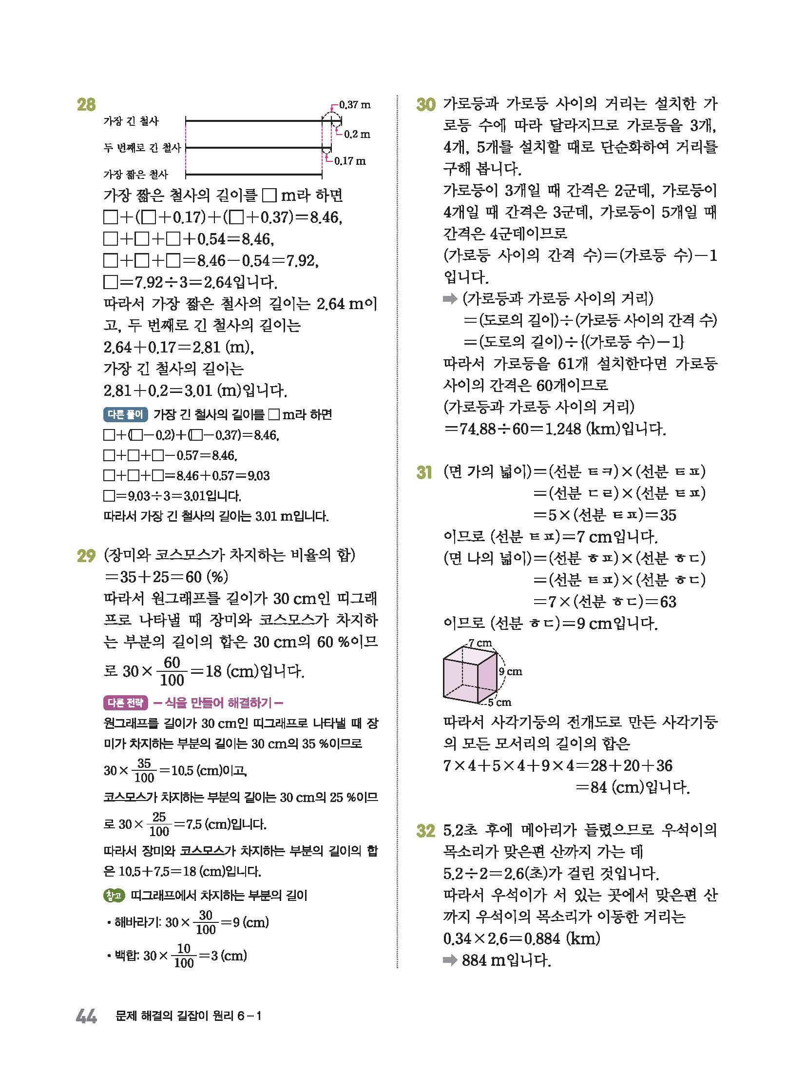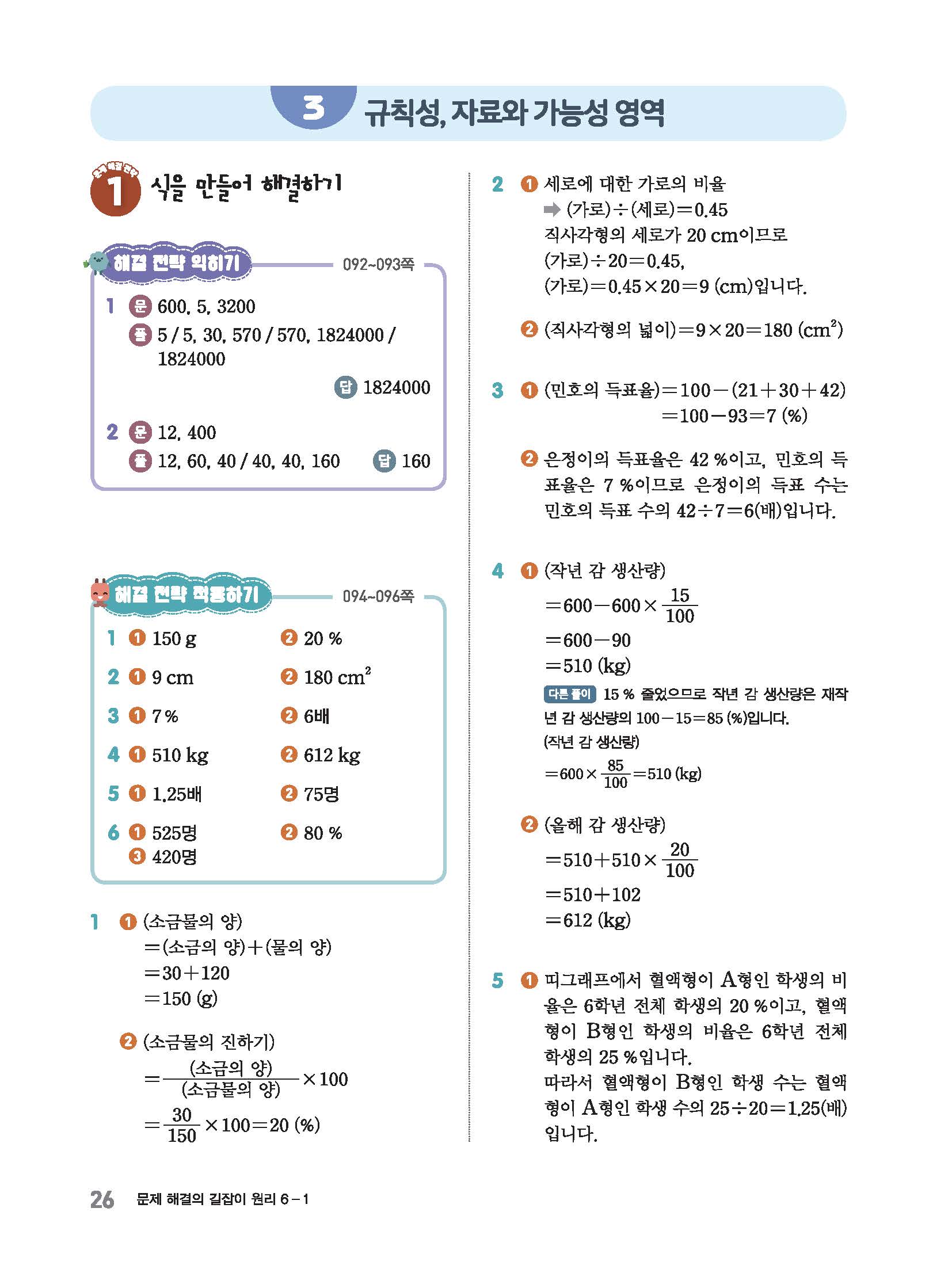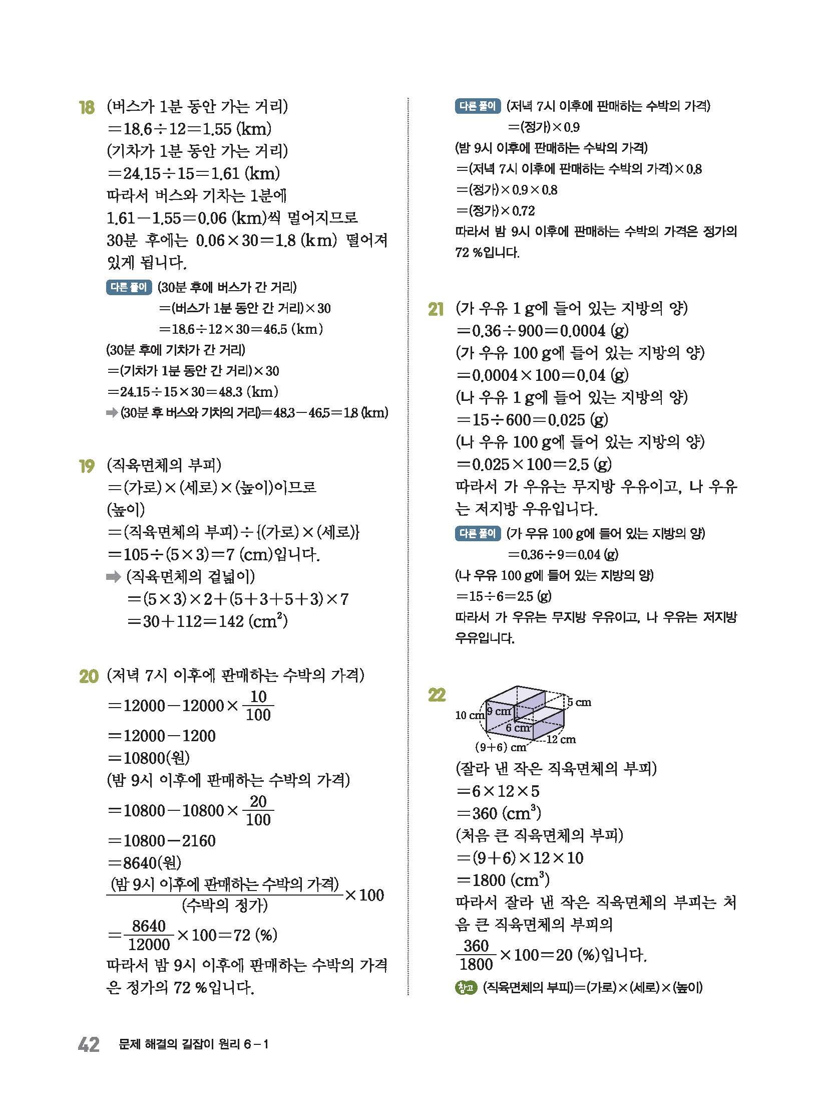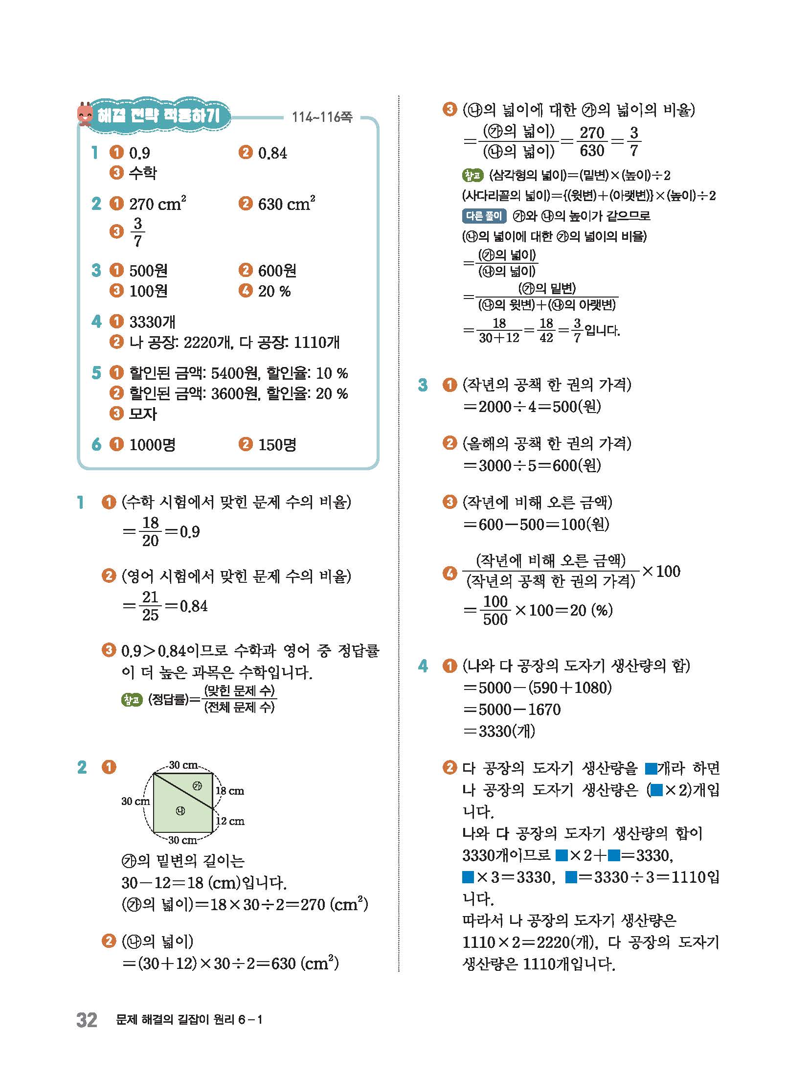 미래엔 문제 해결의 길잡이 원리 6-1 답지 사진답지 빠른답지 모바일최적화
