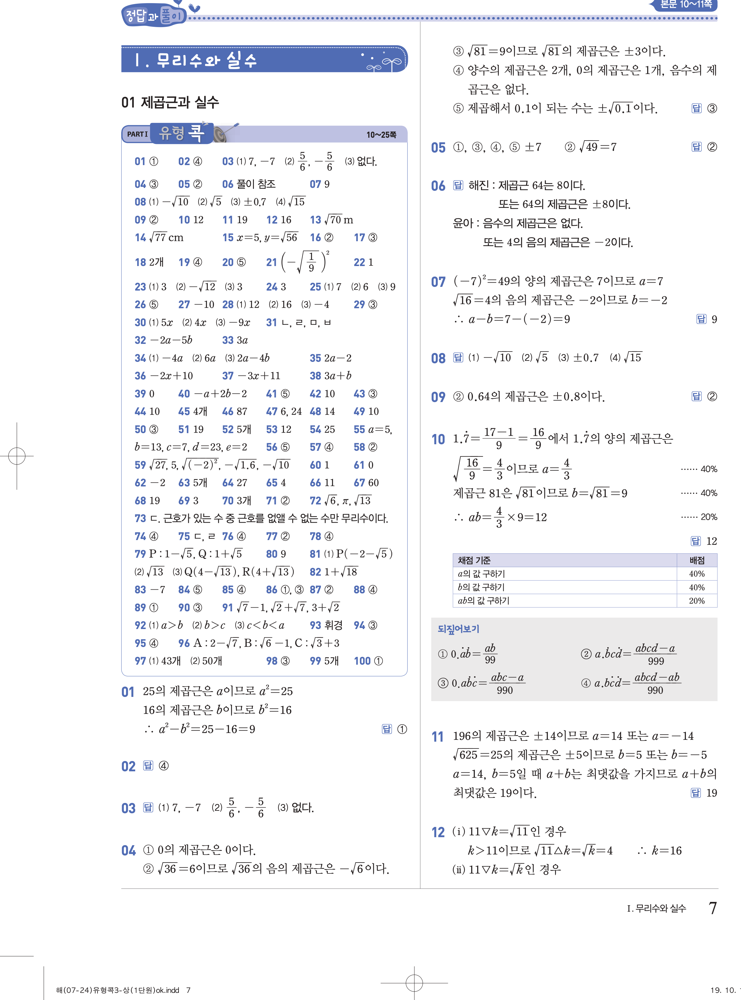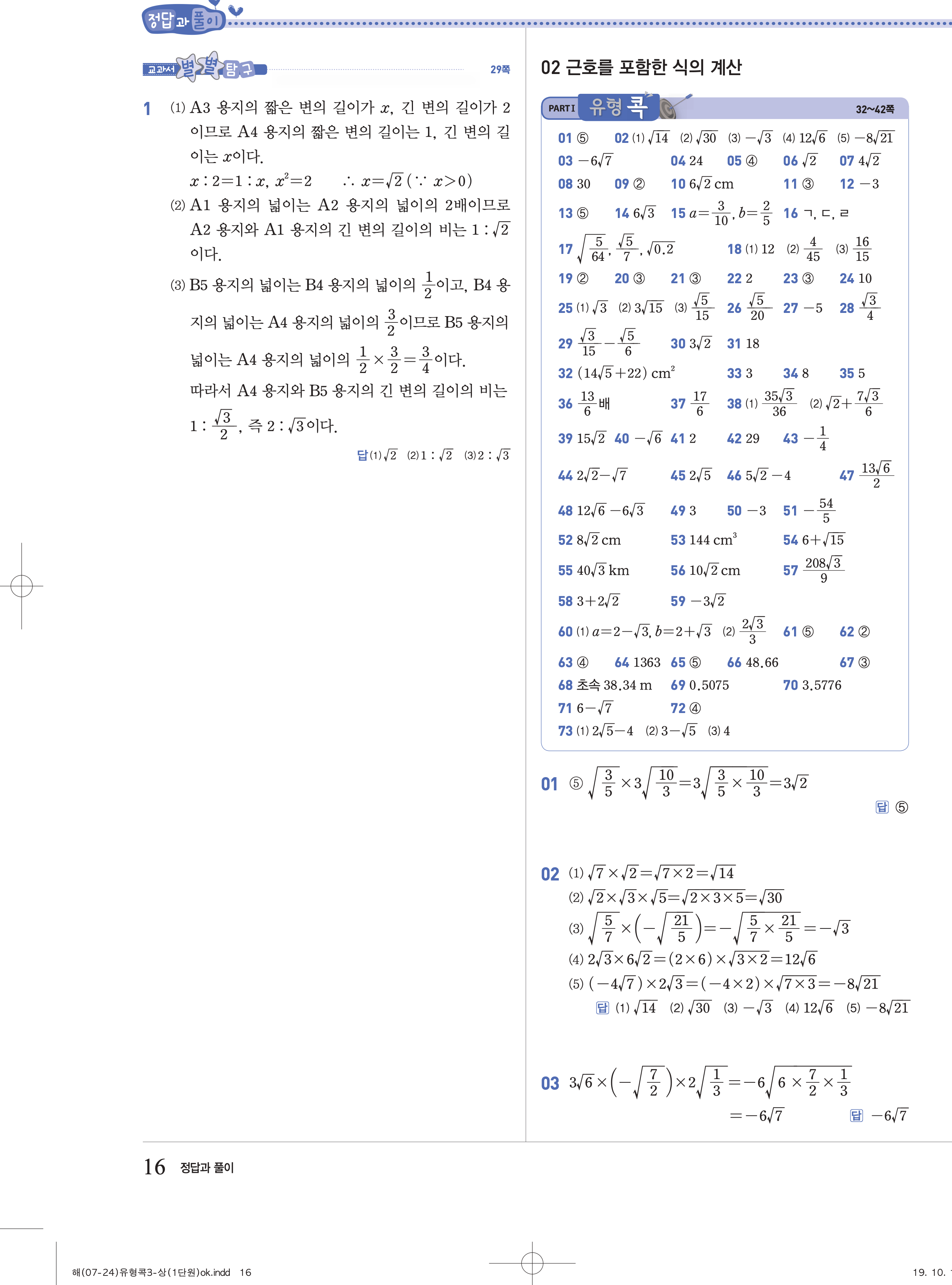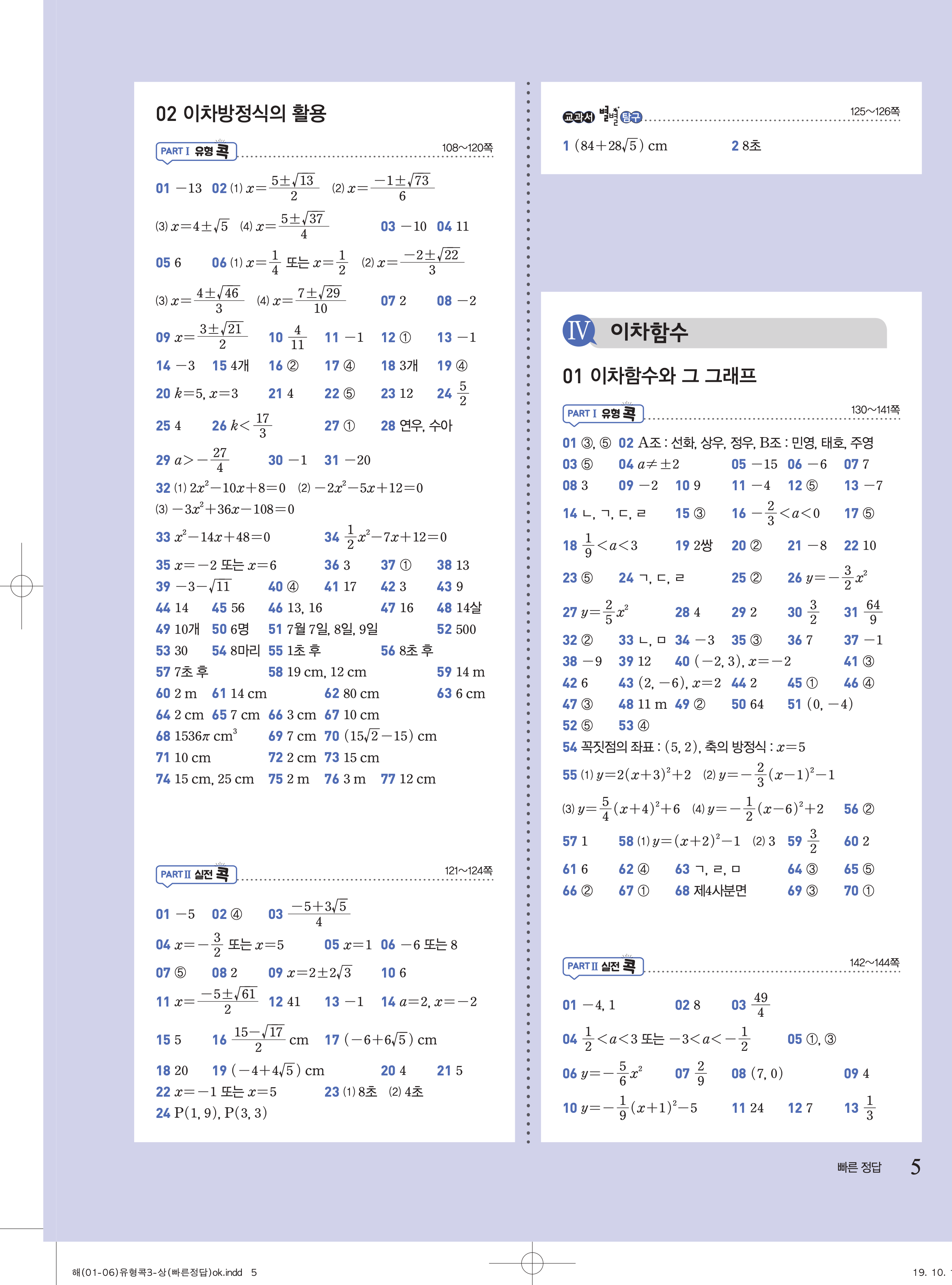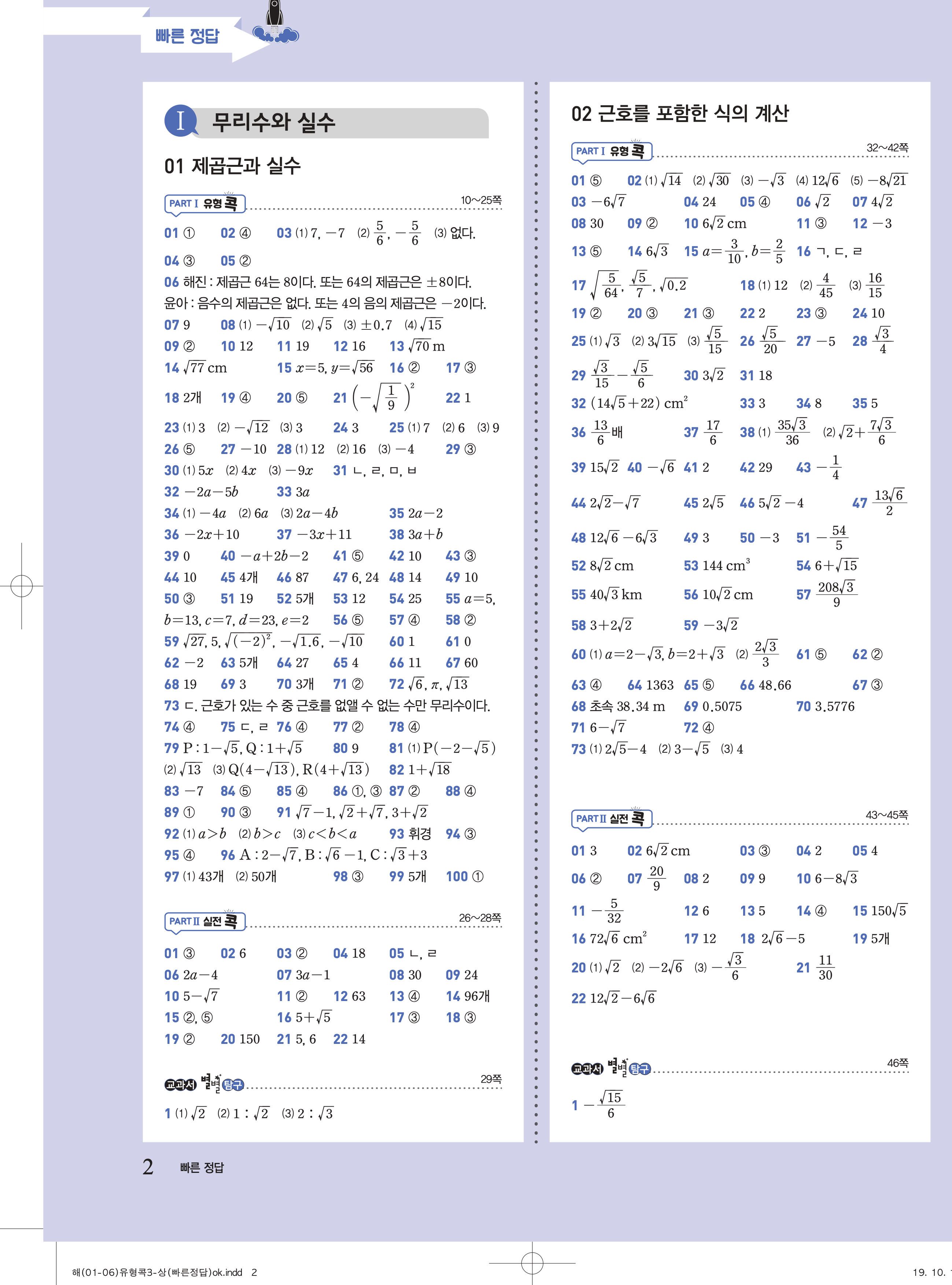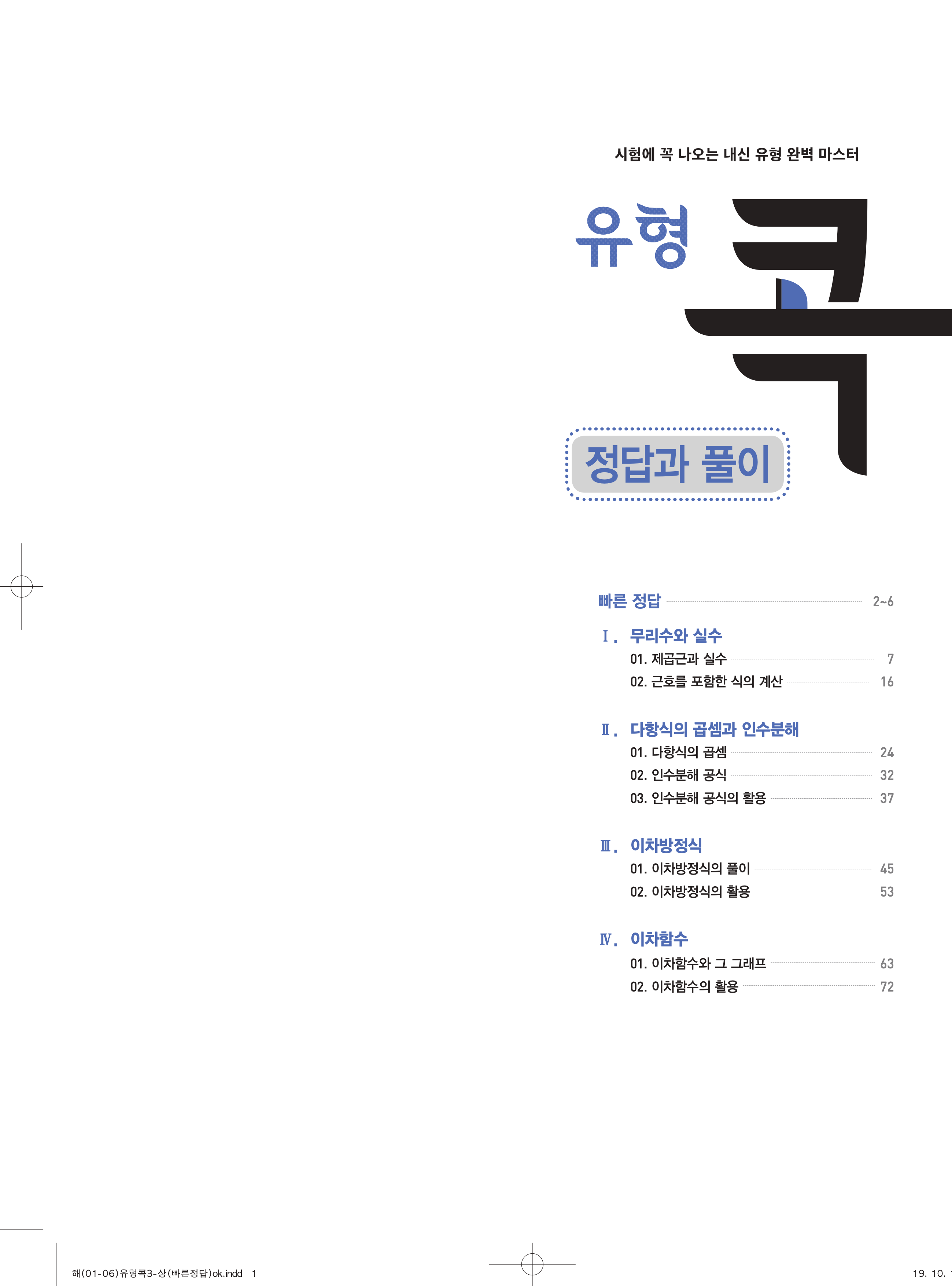 유형콕 중등수학 3-1 답지 해설 바로보는 사진답지 빠른답지 모바일최적화