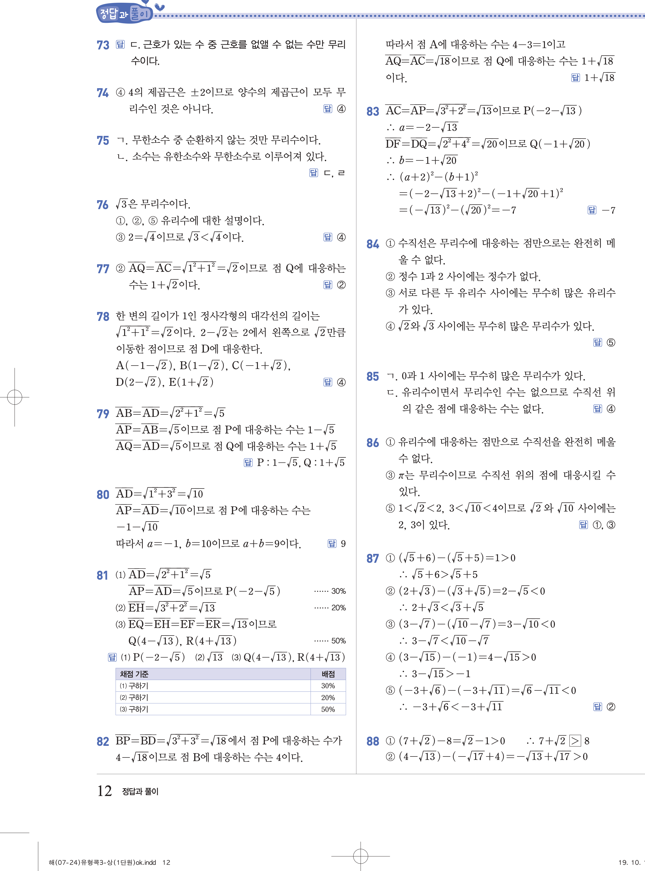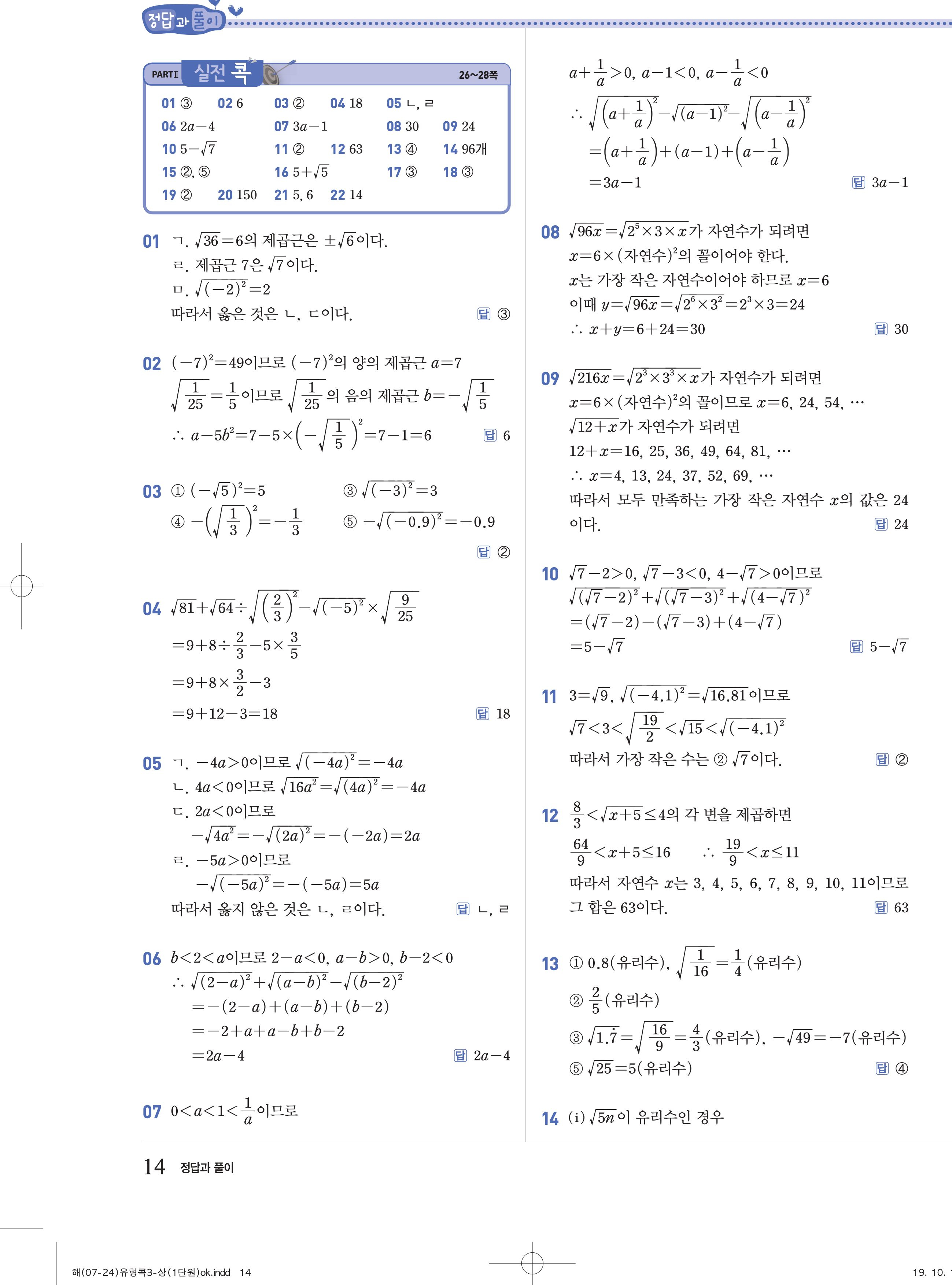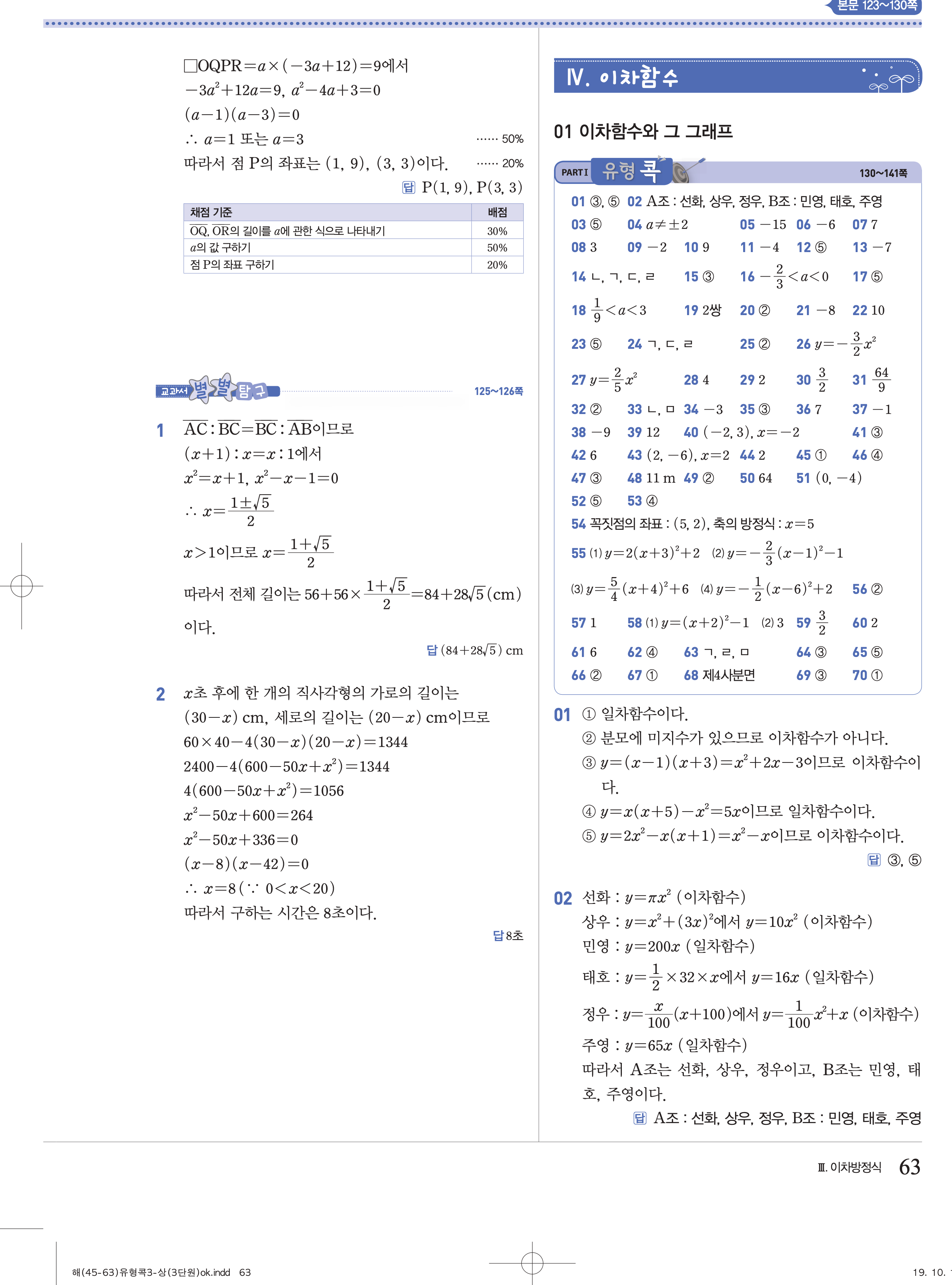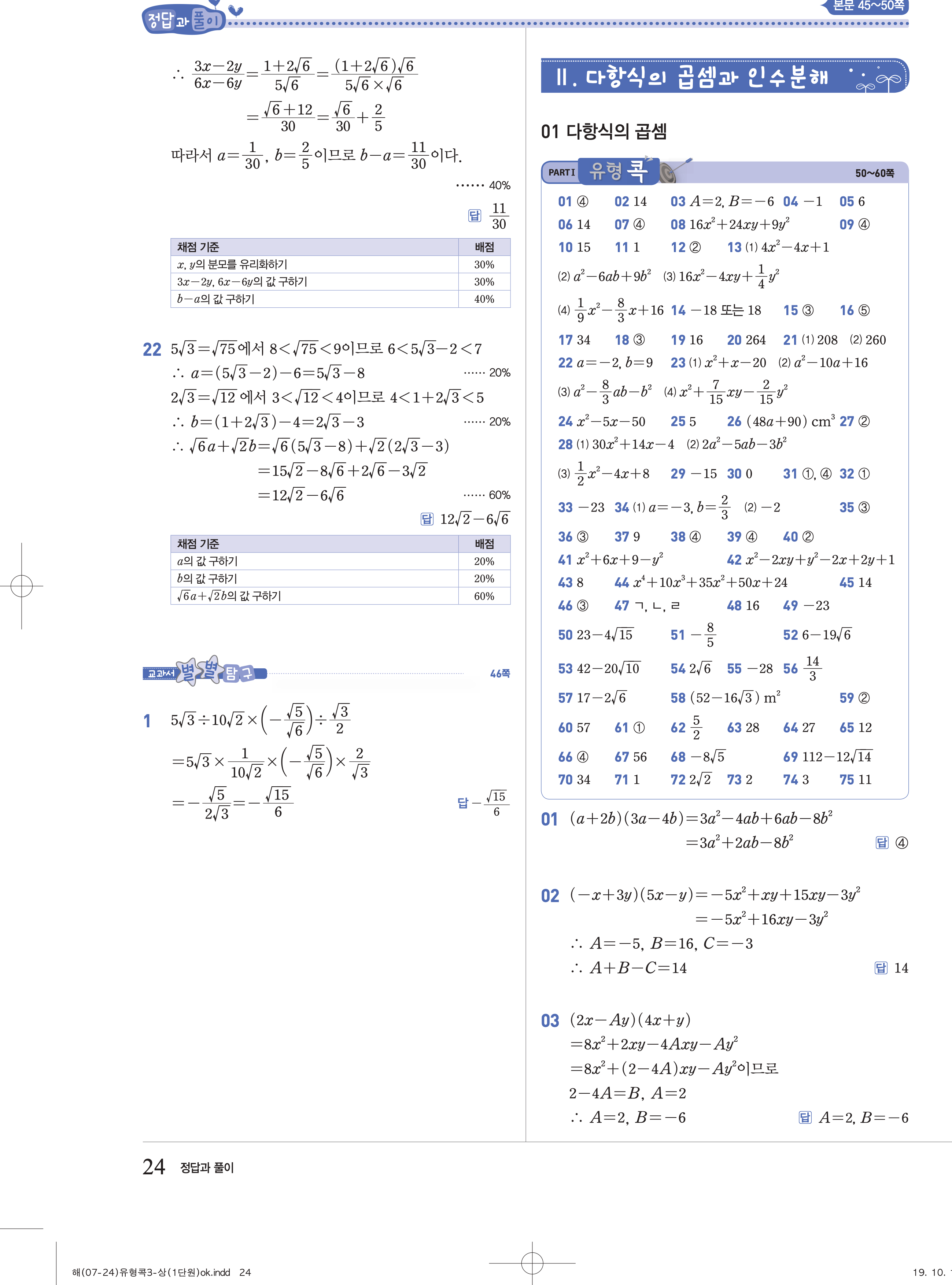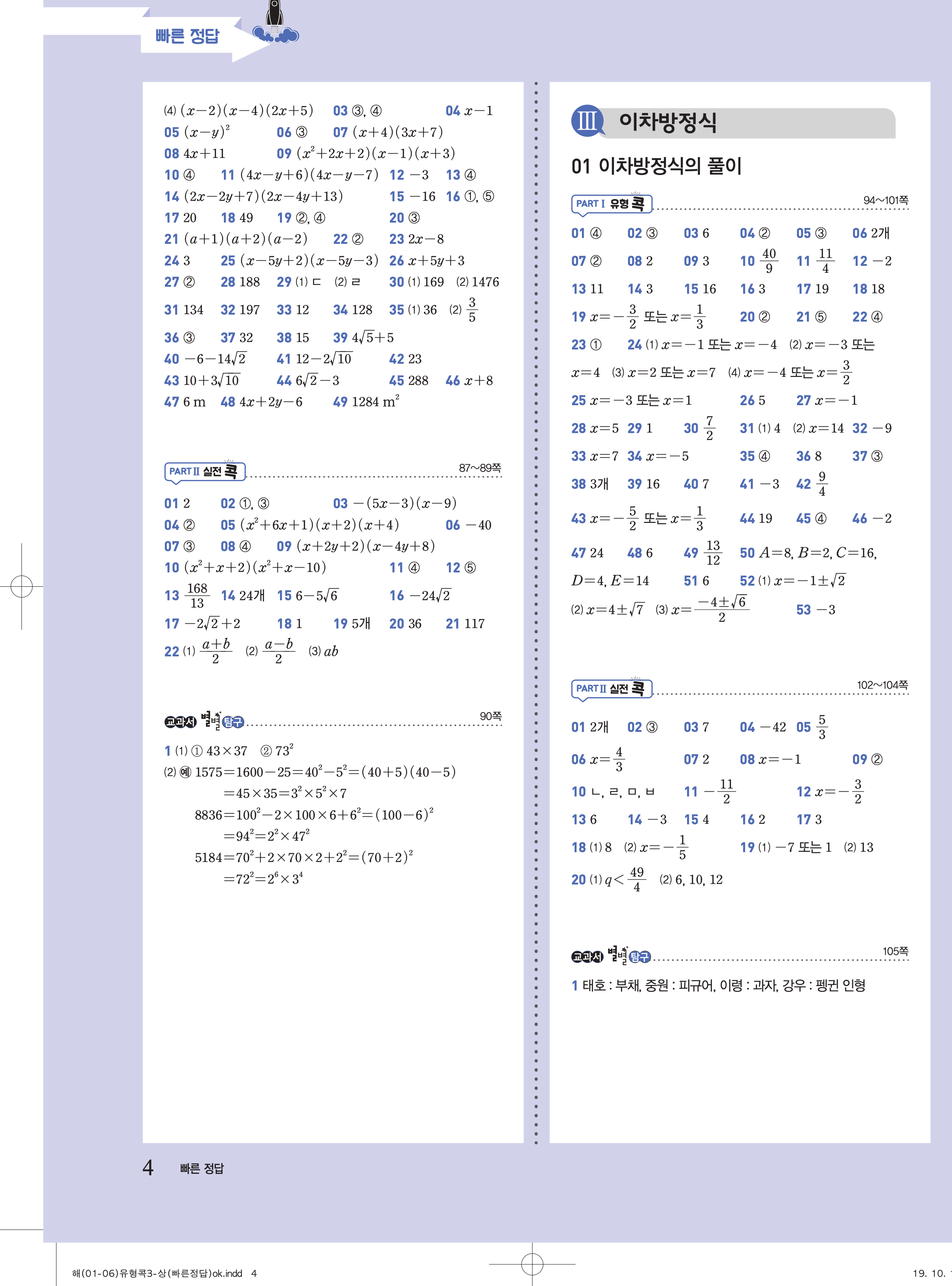 유형콕 중등수학 3-1 답지 해설 바로보는 사진답지 빠른답지 모바일최적화