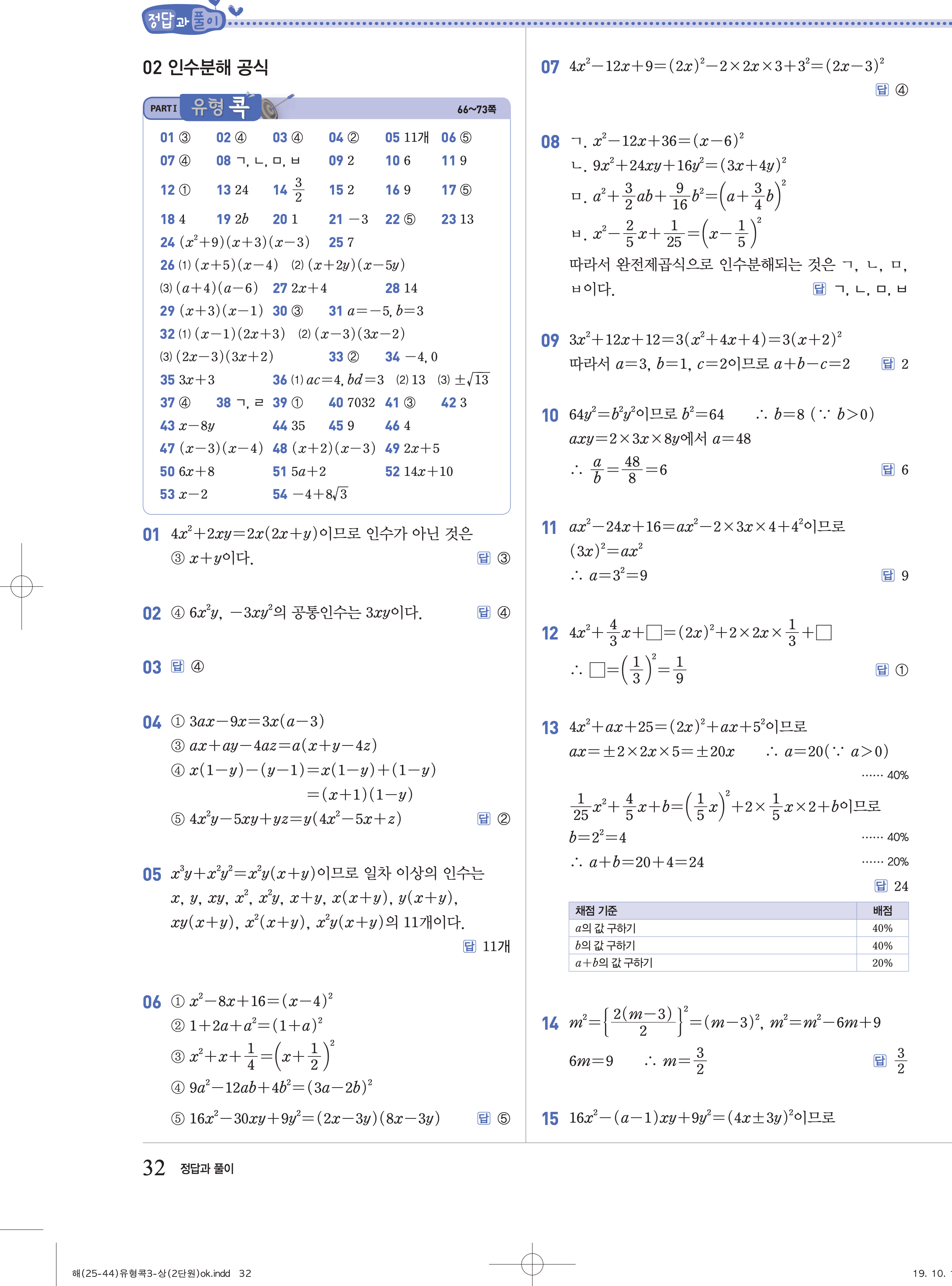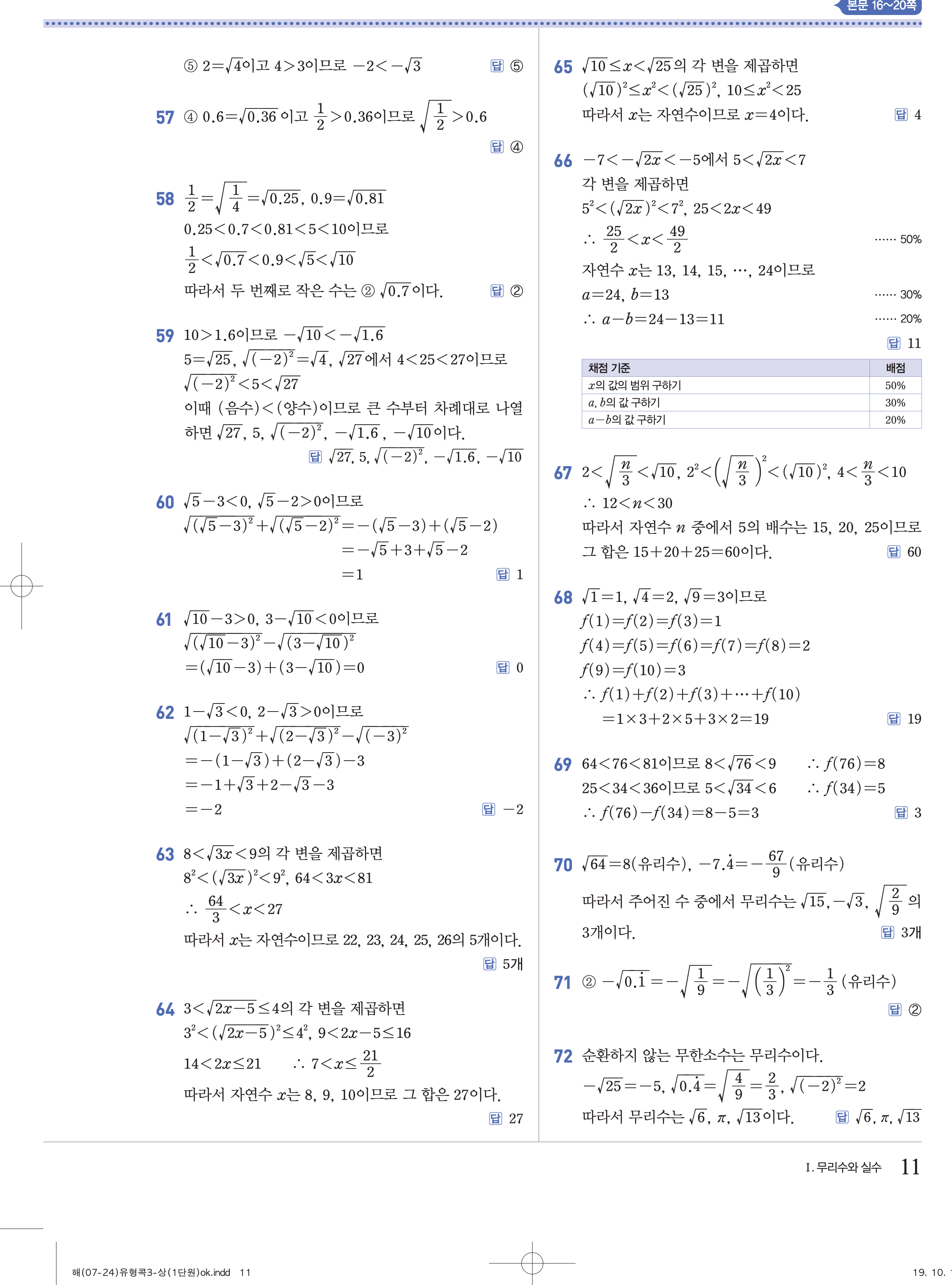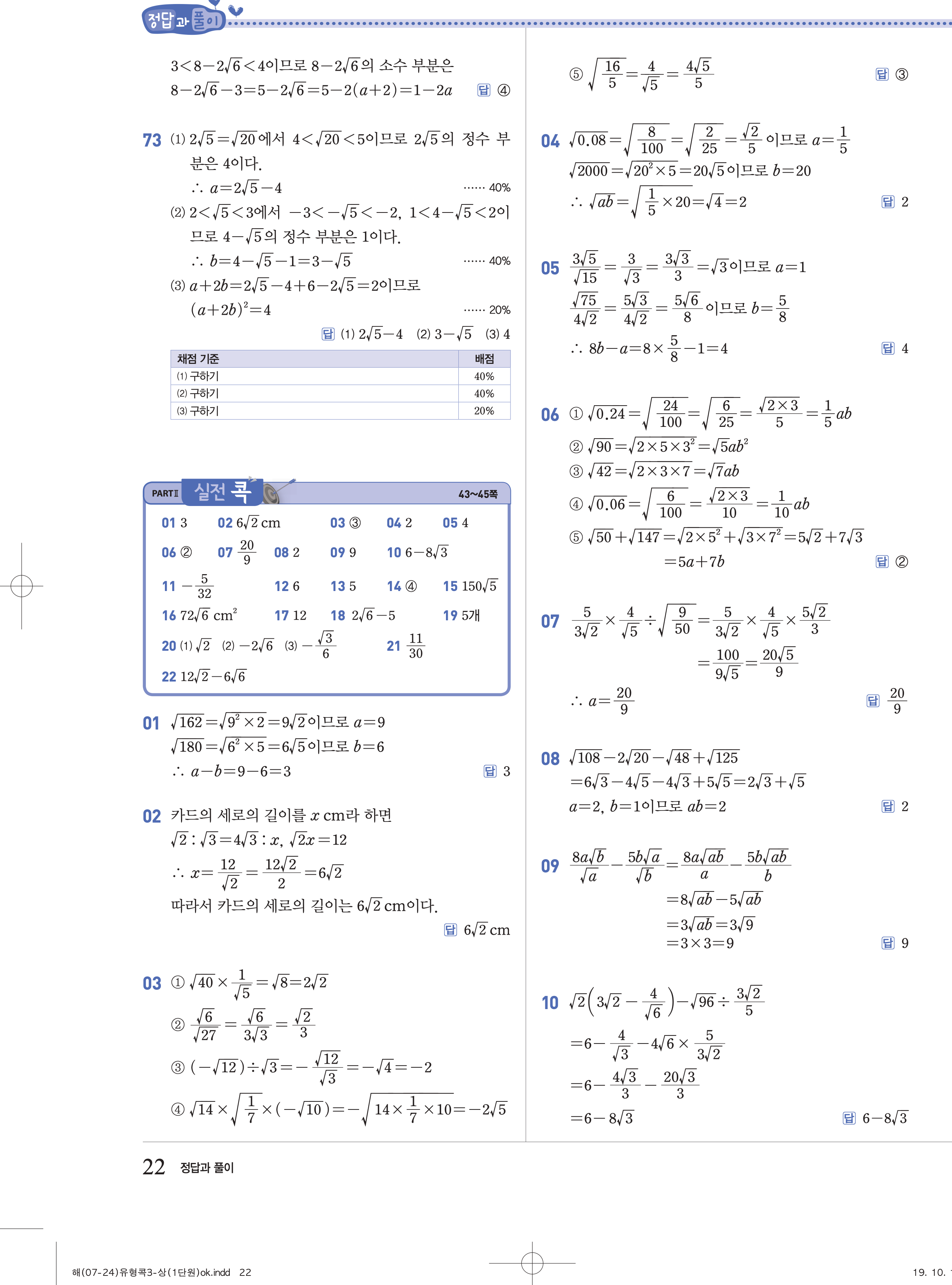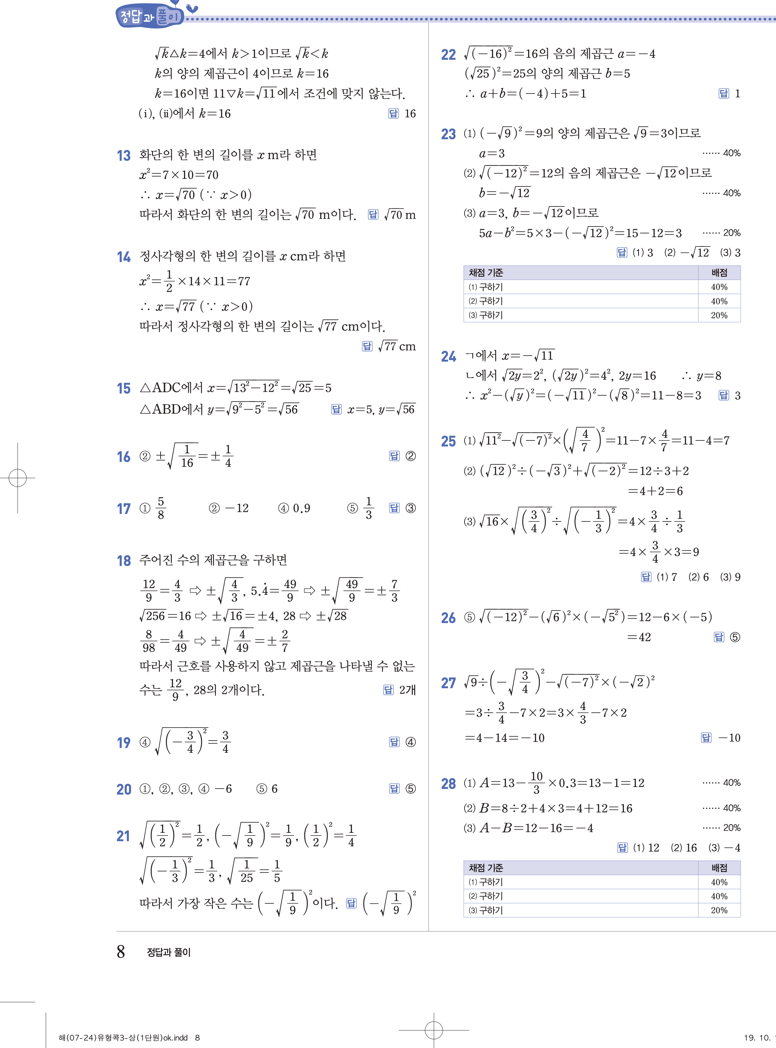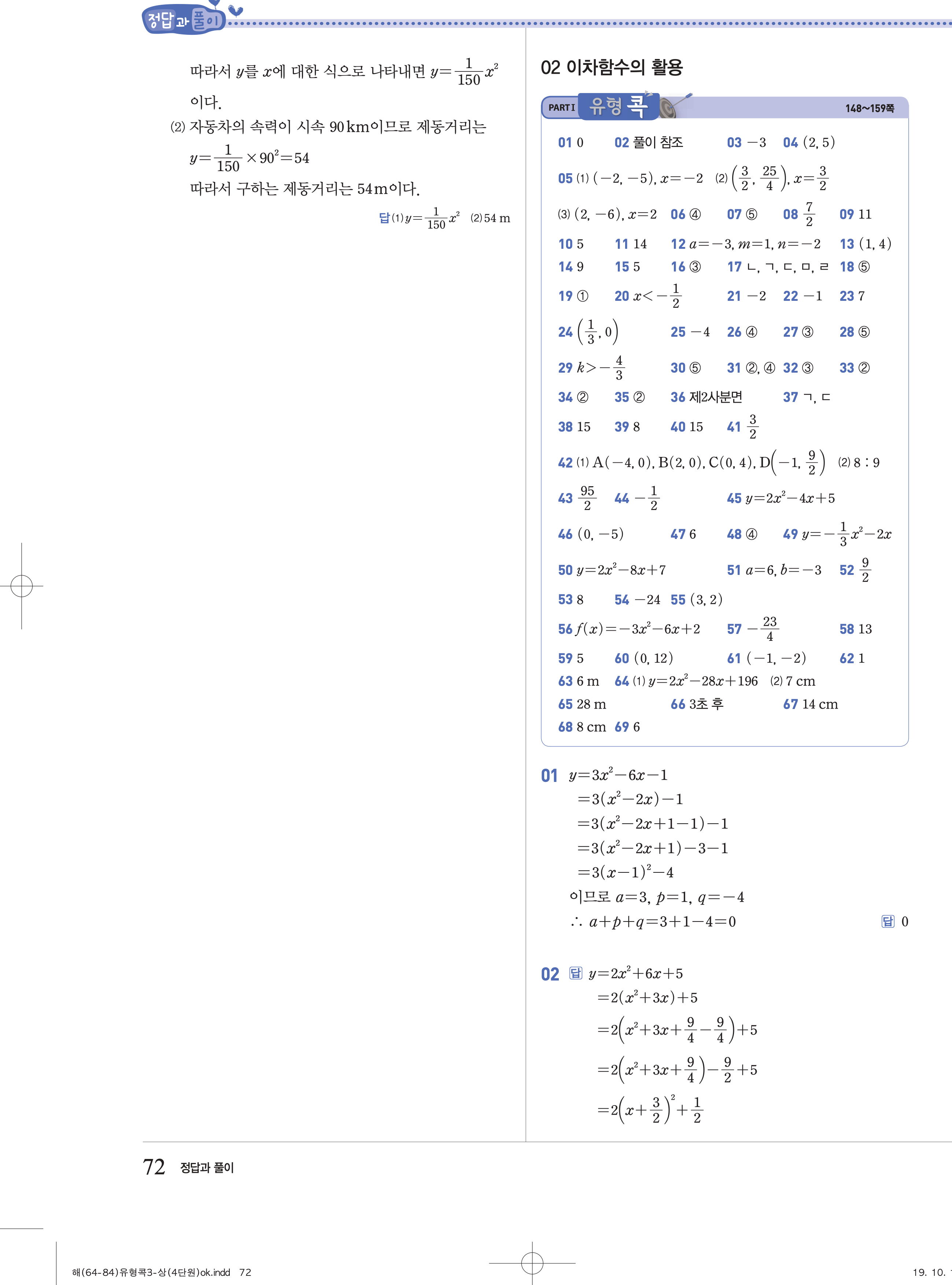 유형콕 중등수학 3-1 답지 해설 바로보는 사진답지 빠른답지 모바일최적화