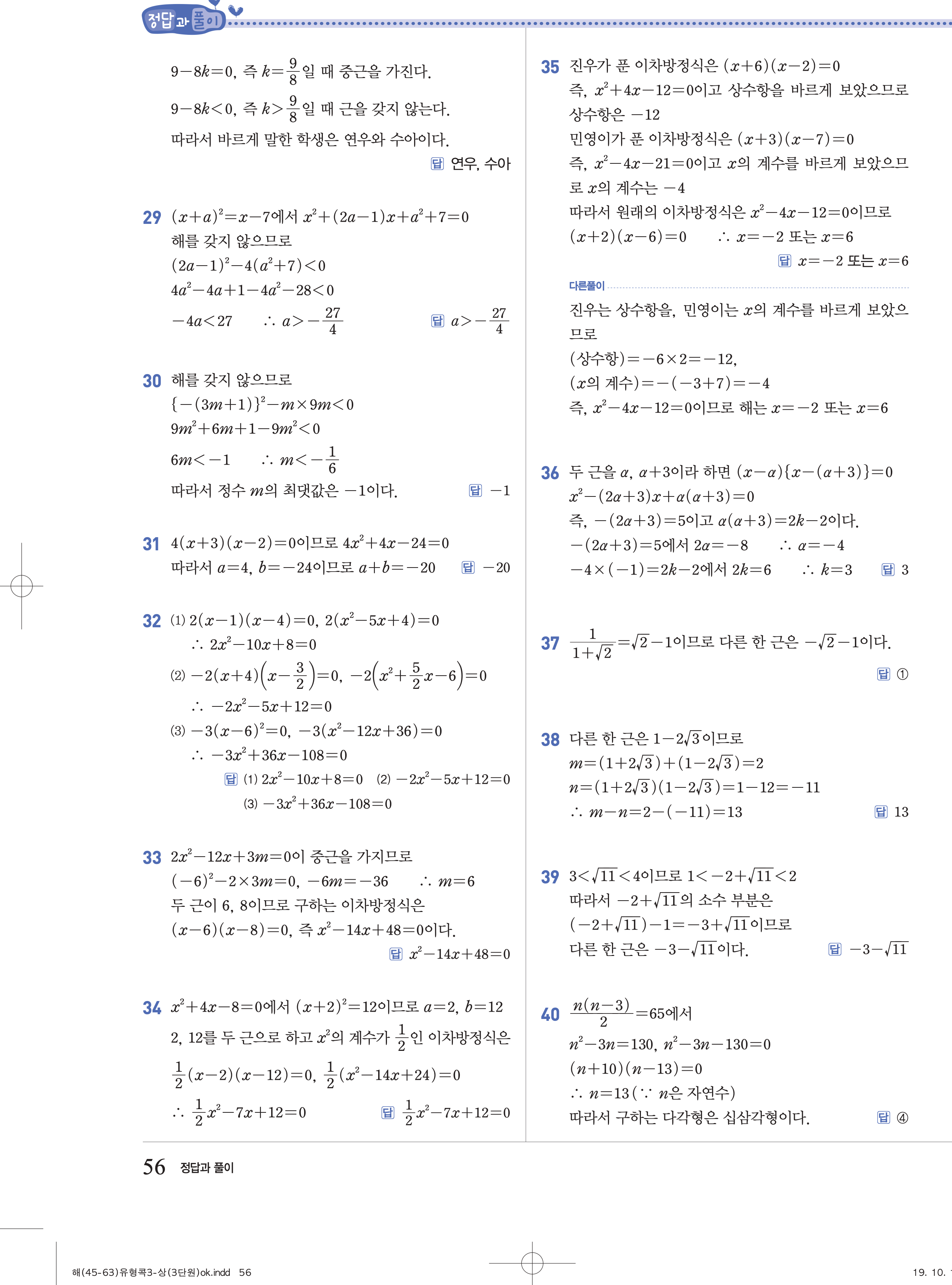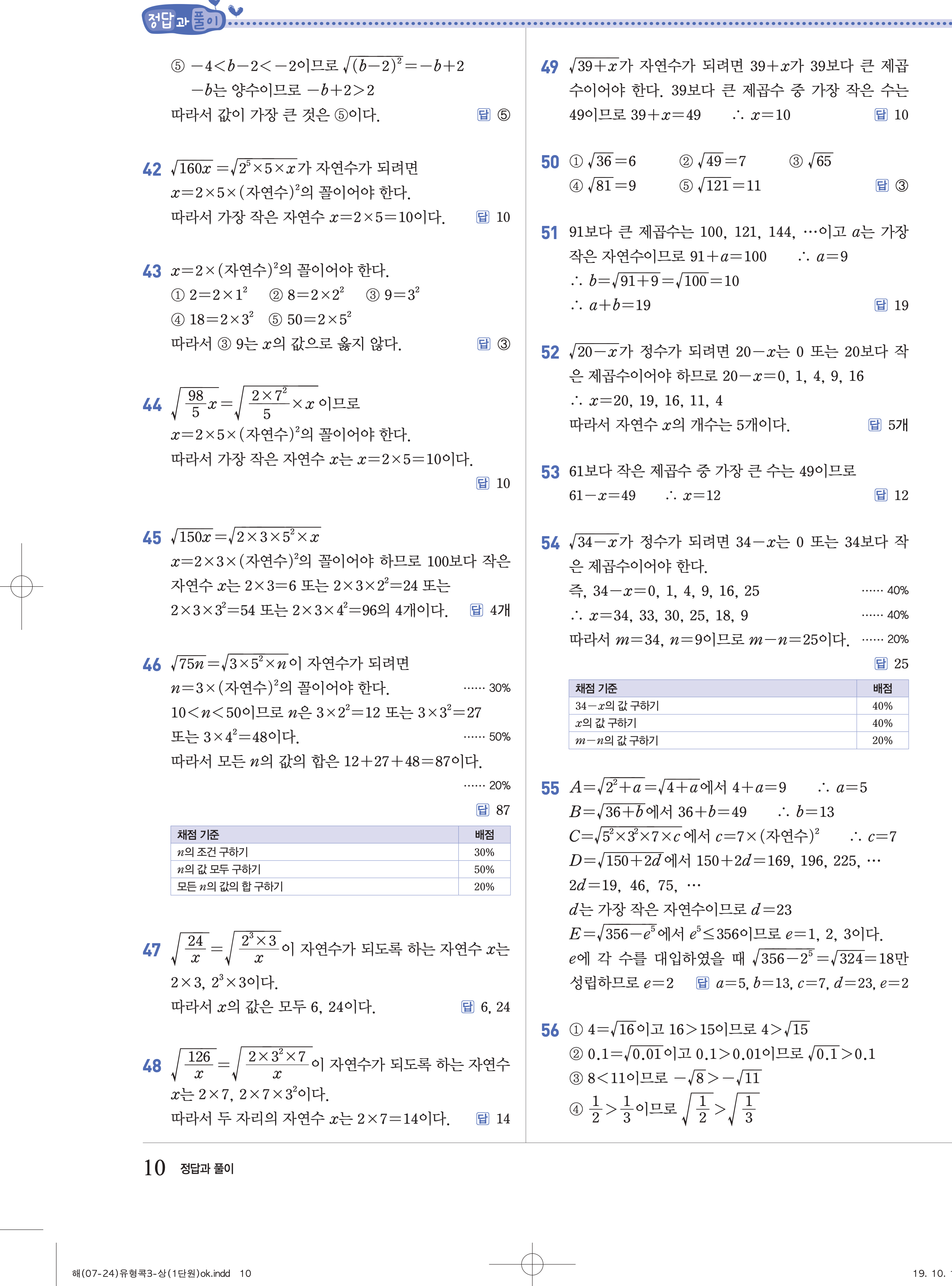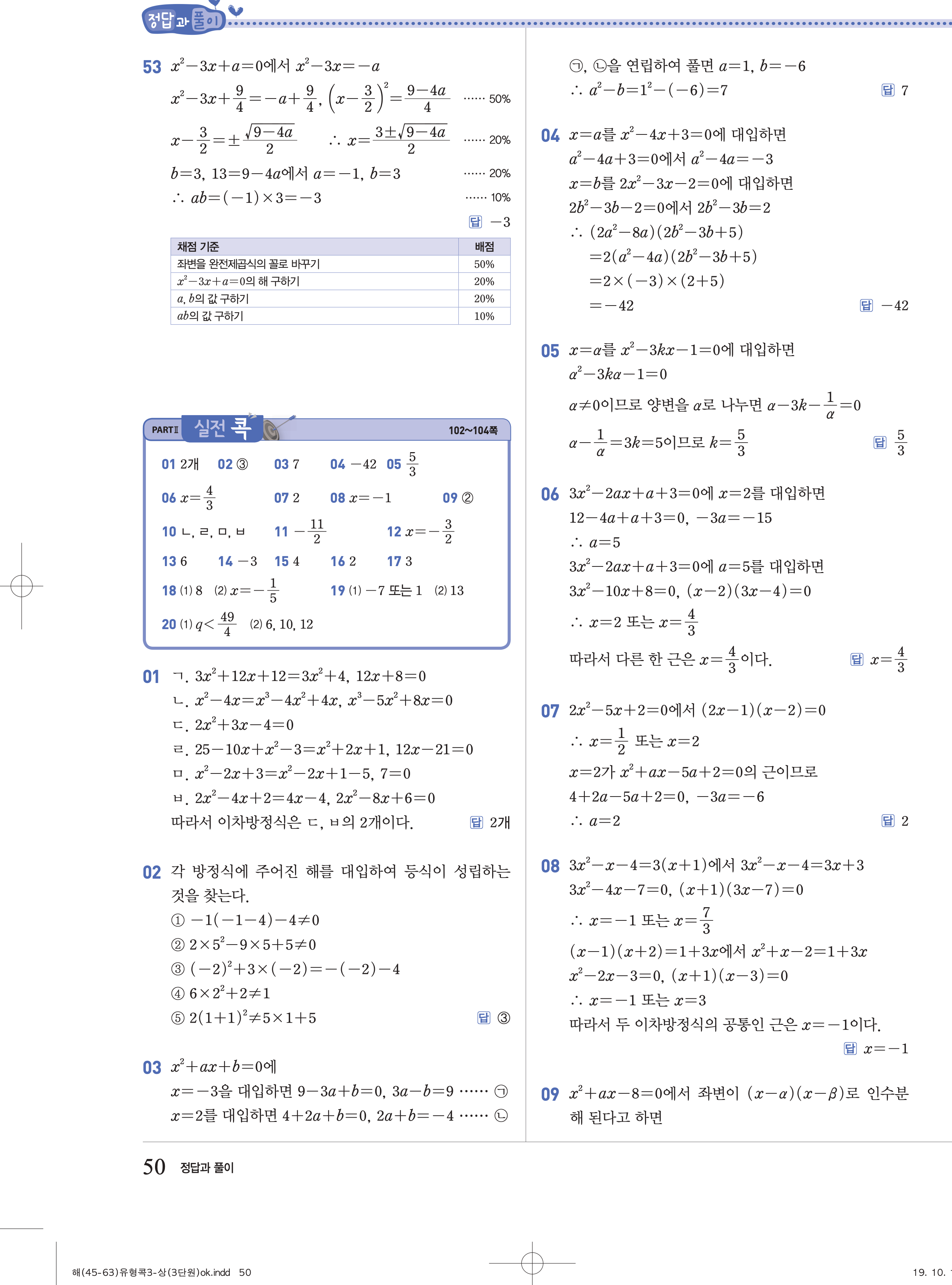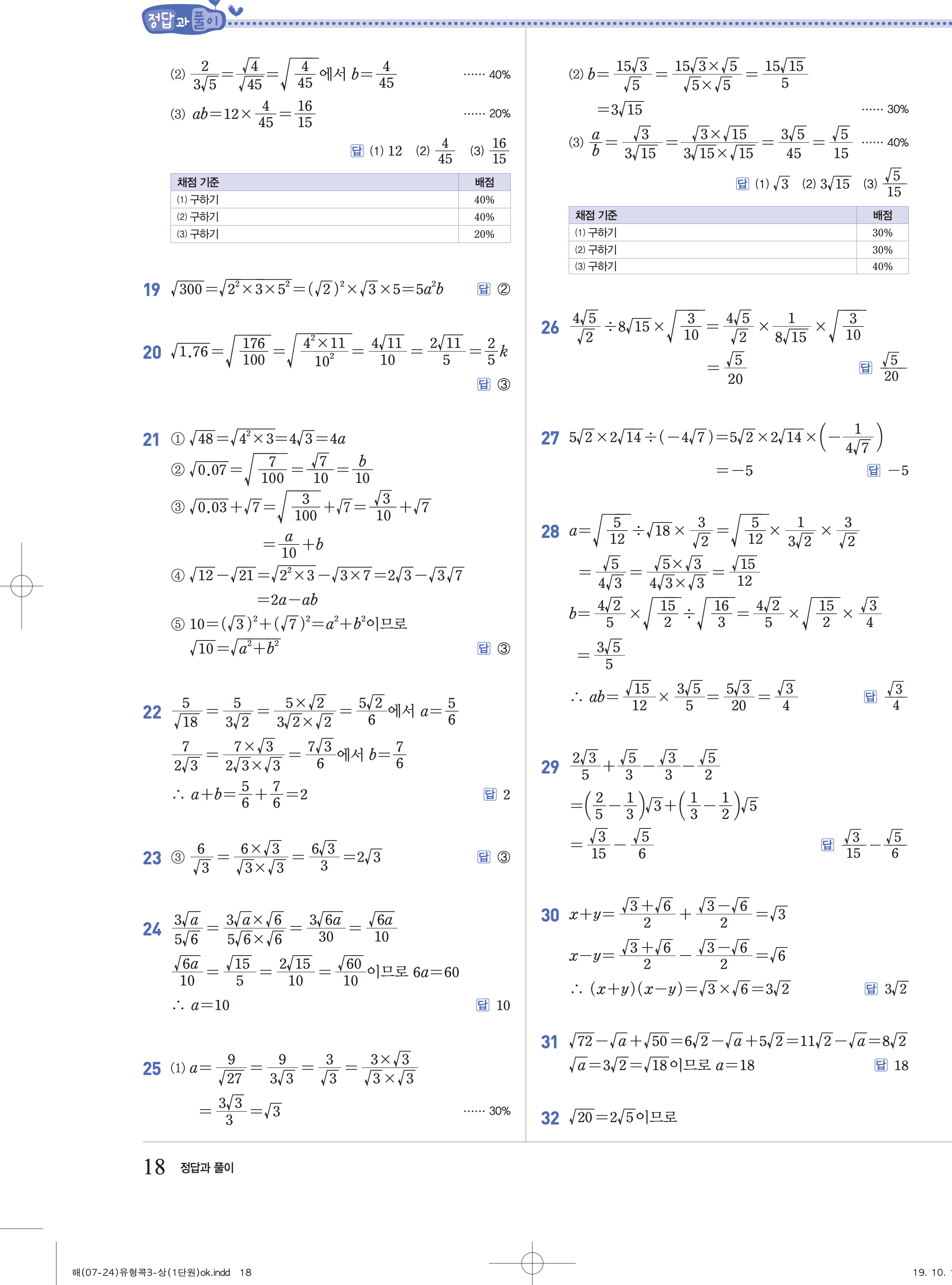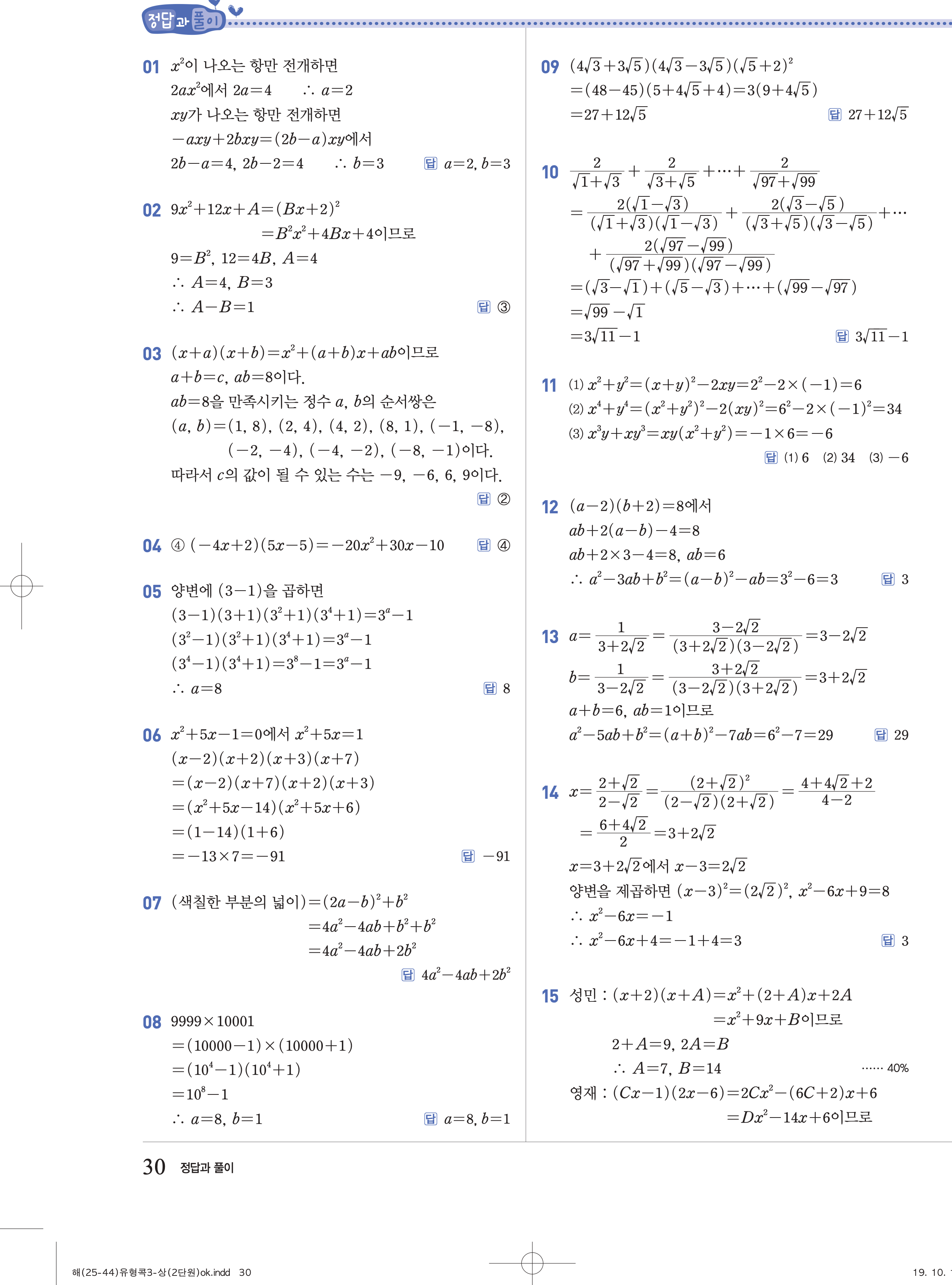 유형콕 중등수학 3-1 답지 해설 바로보는 사진답지 빠른답지 모바일최적화