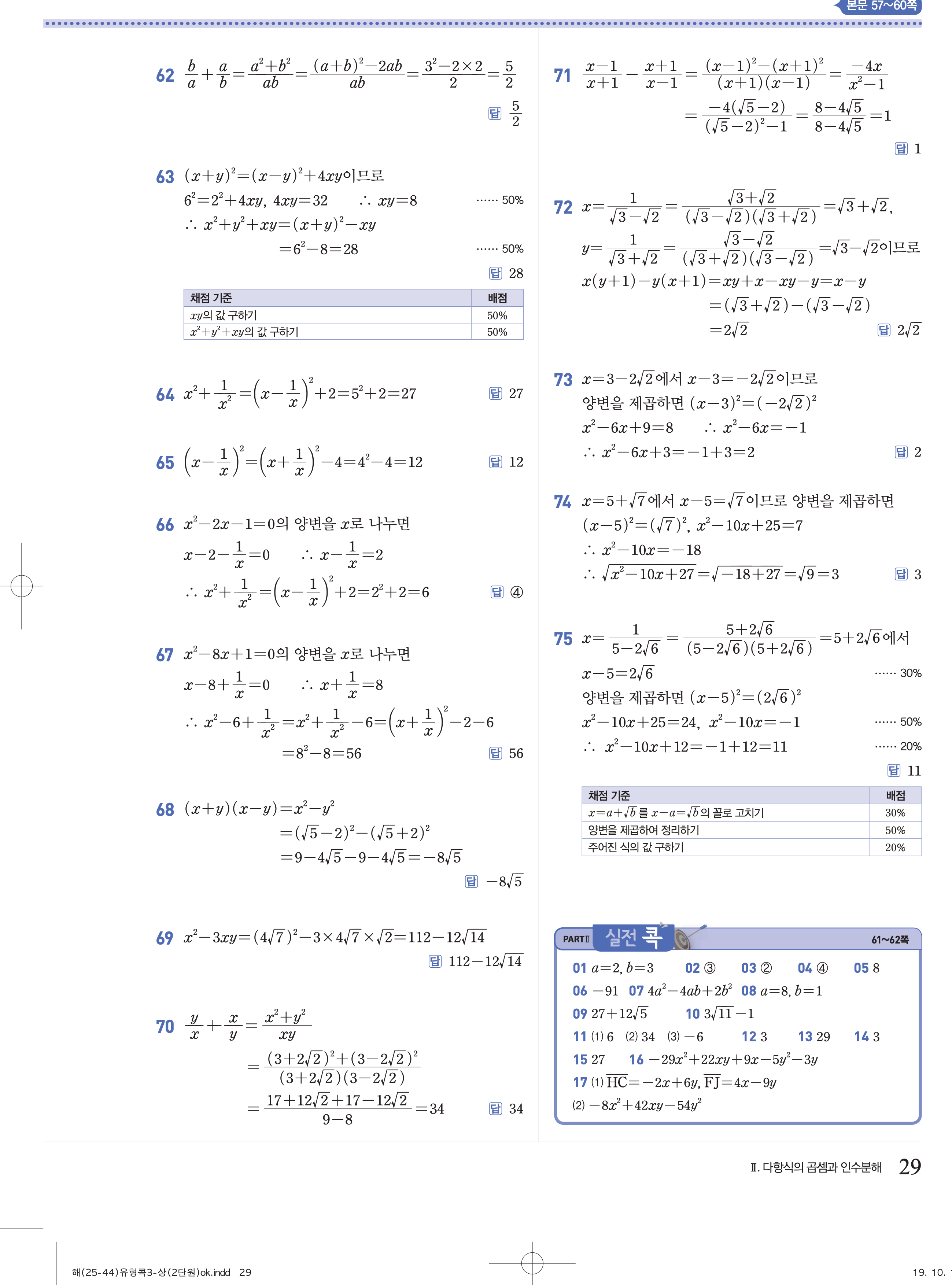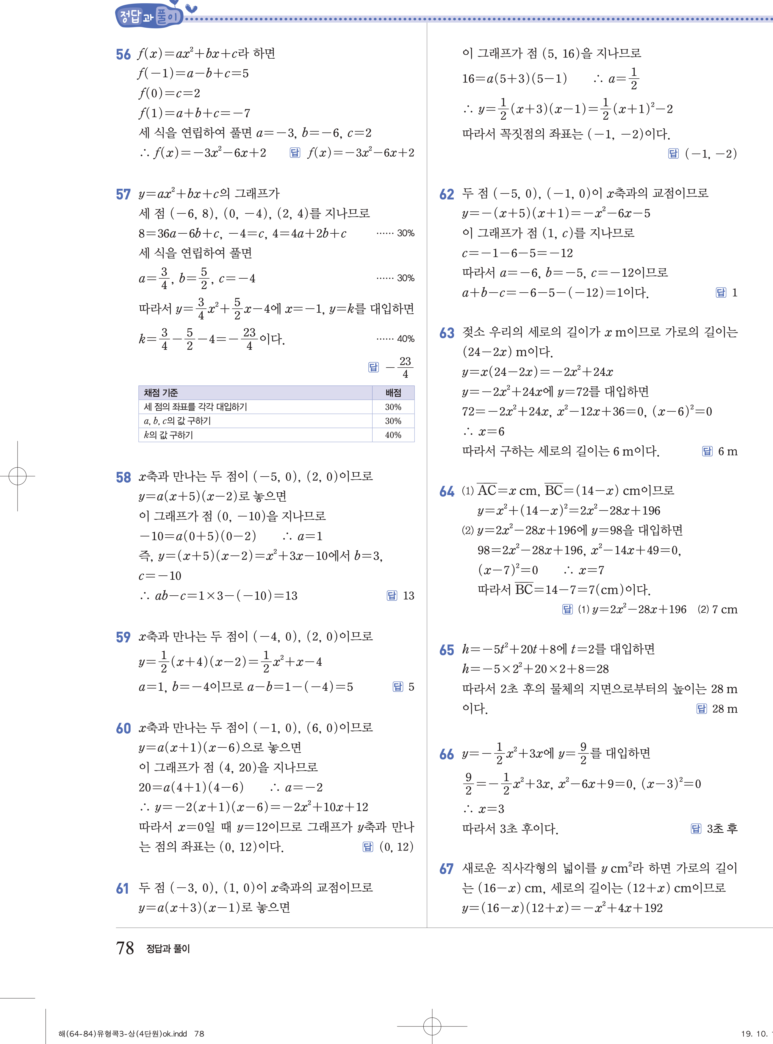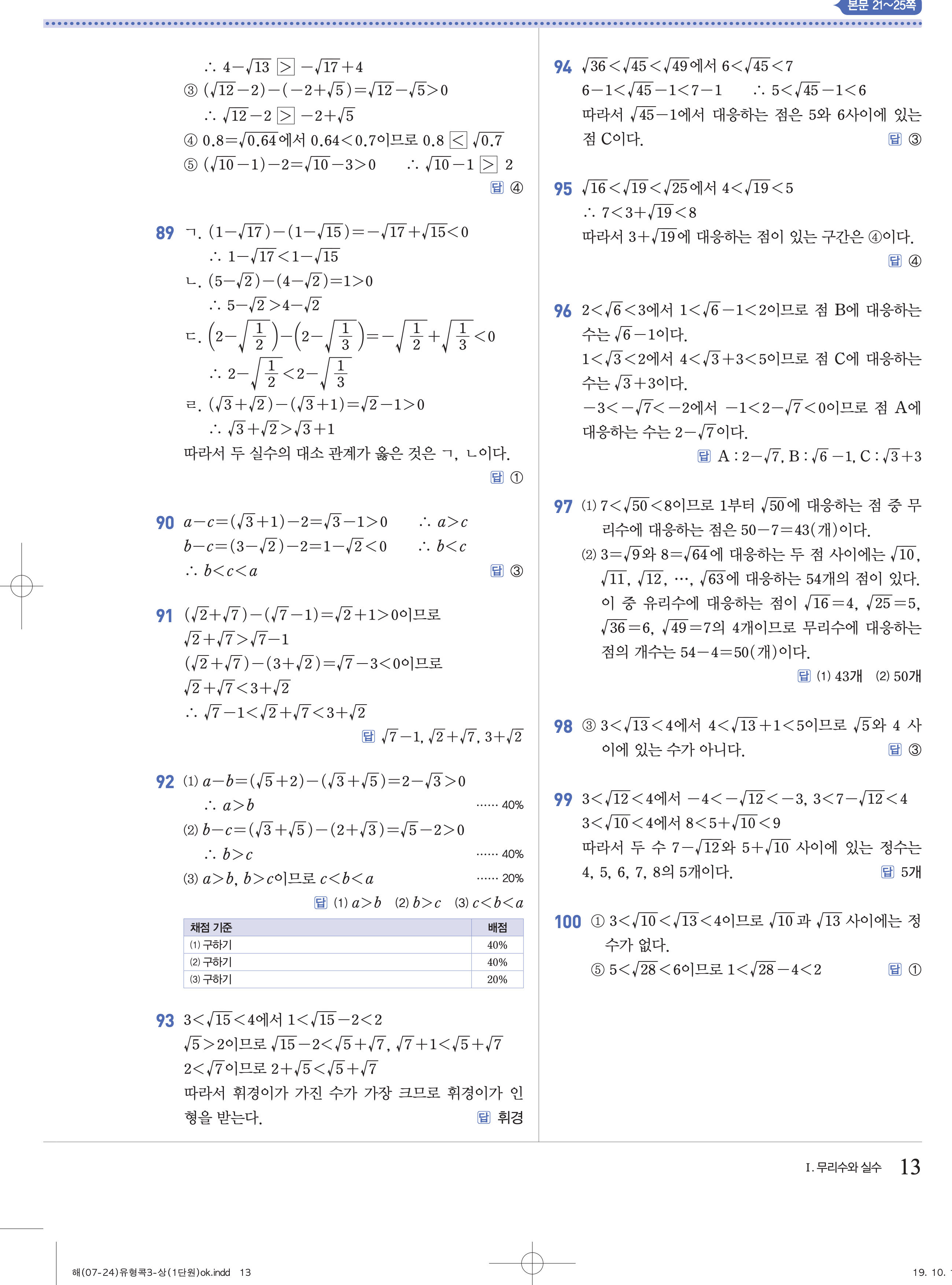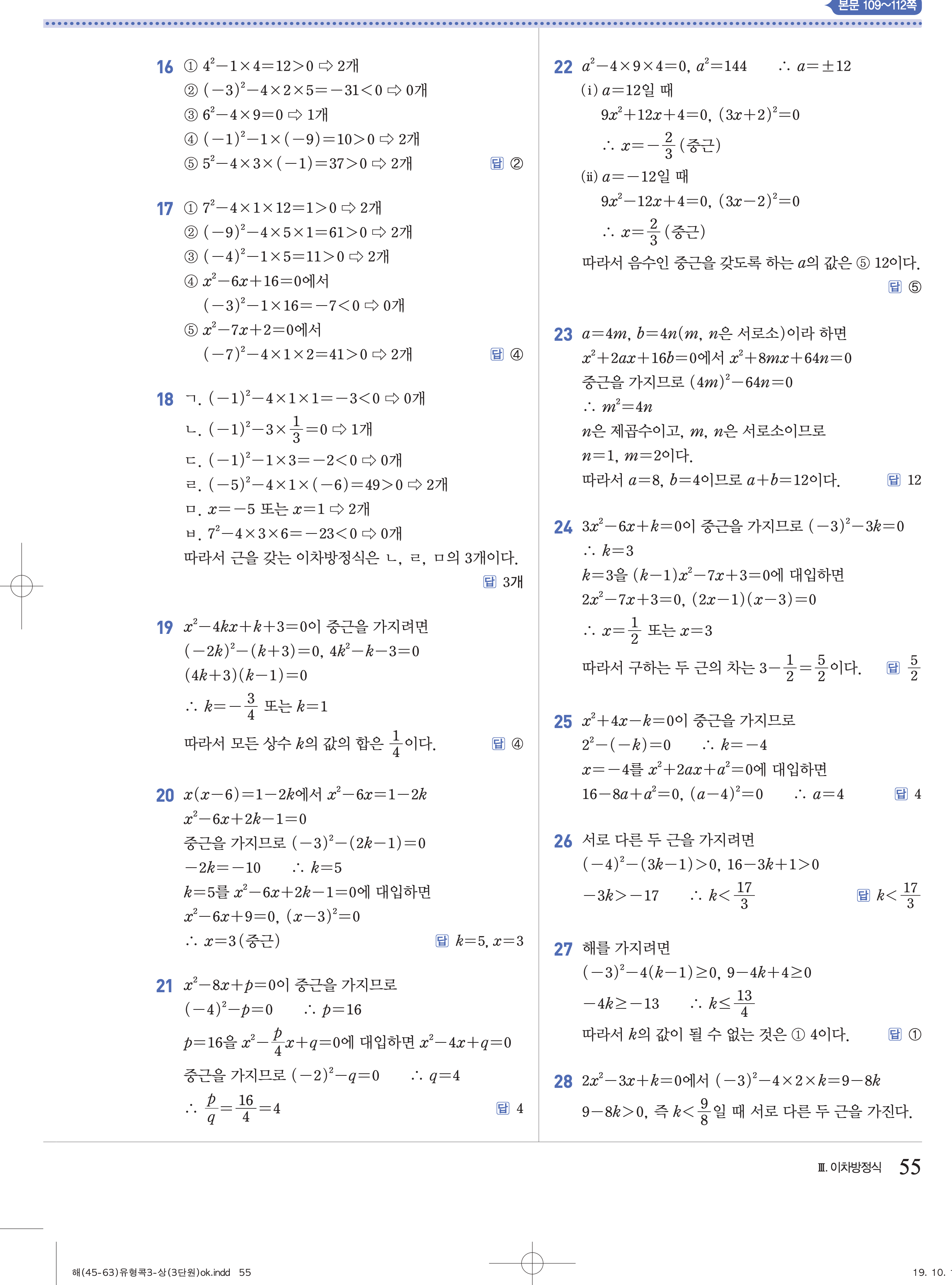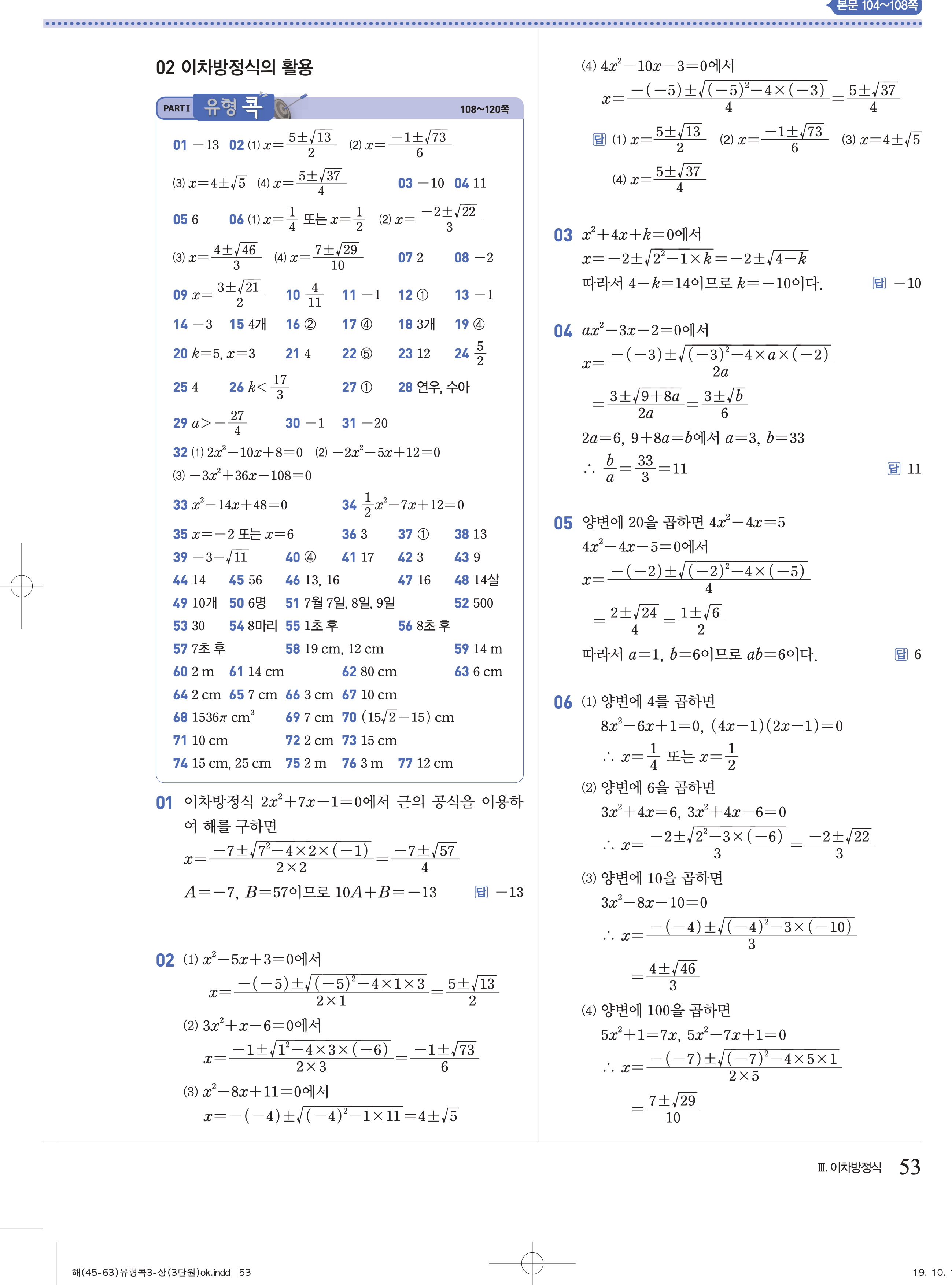 유형콕 중등수학 3-1 답지 해설 바로보는 사진답지 빠른답지 모바일최적화