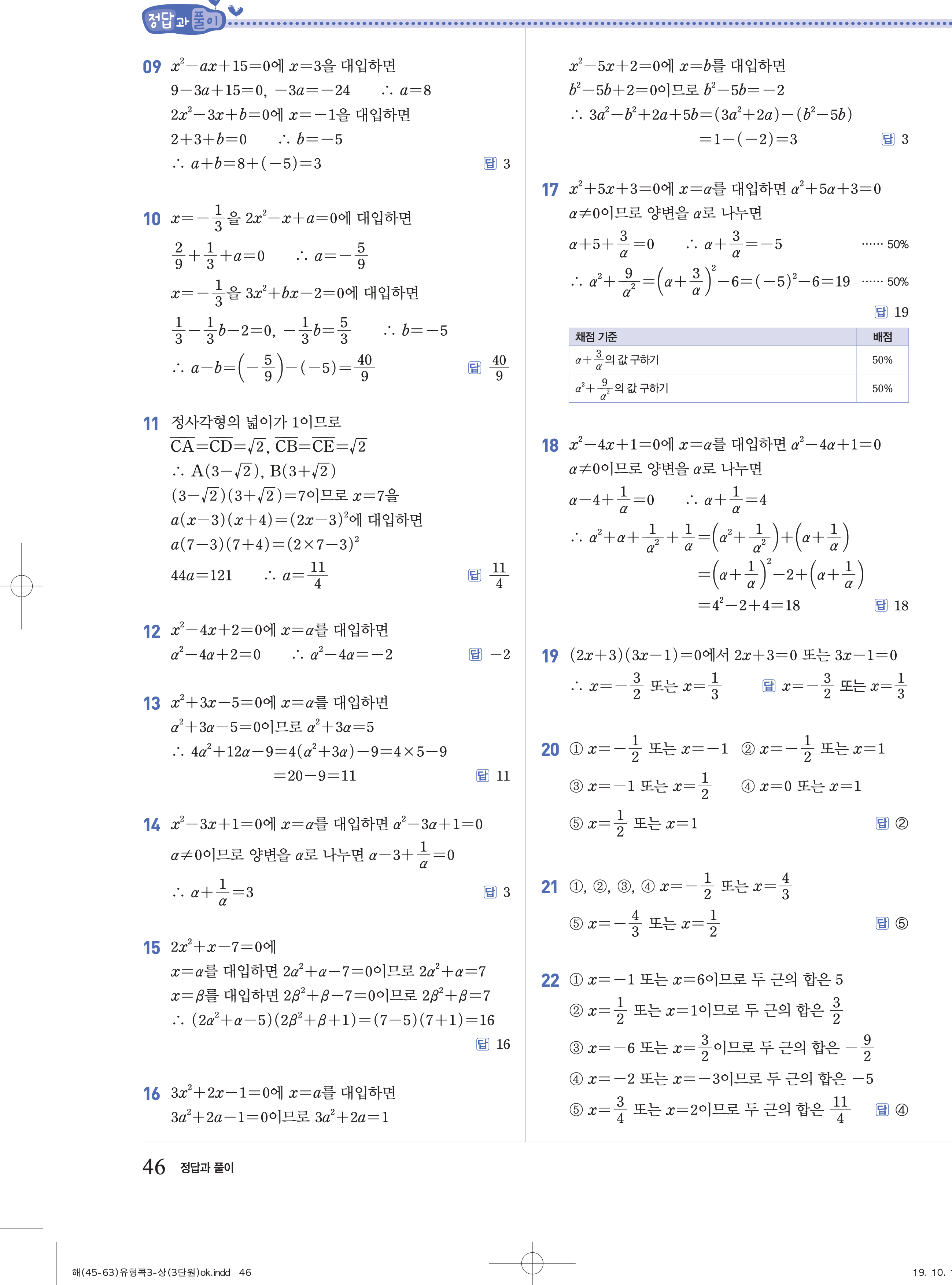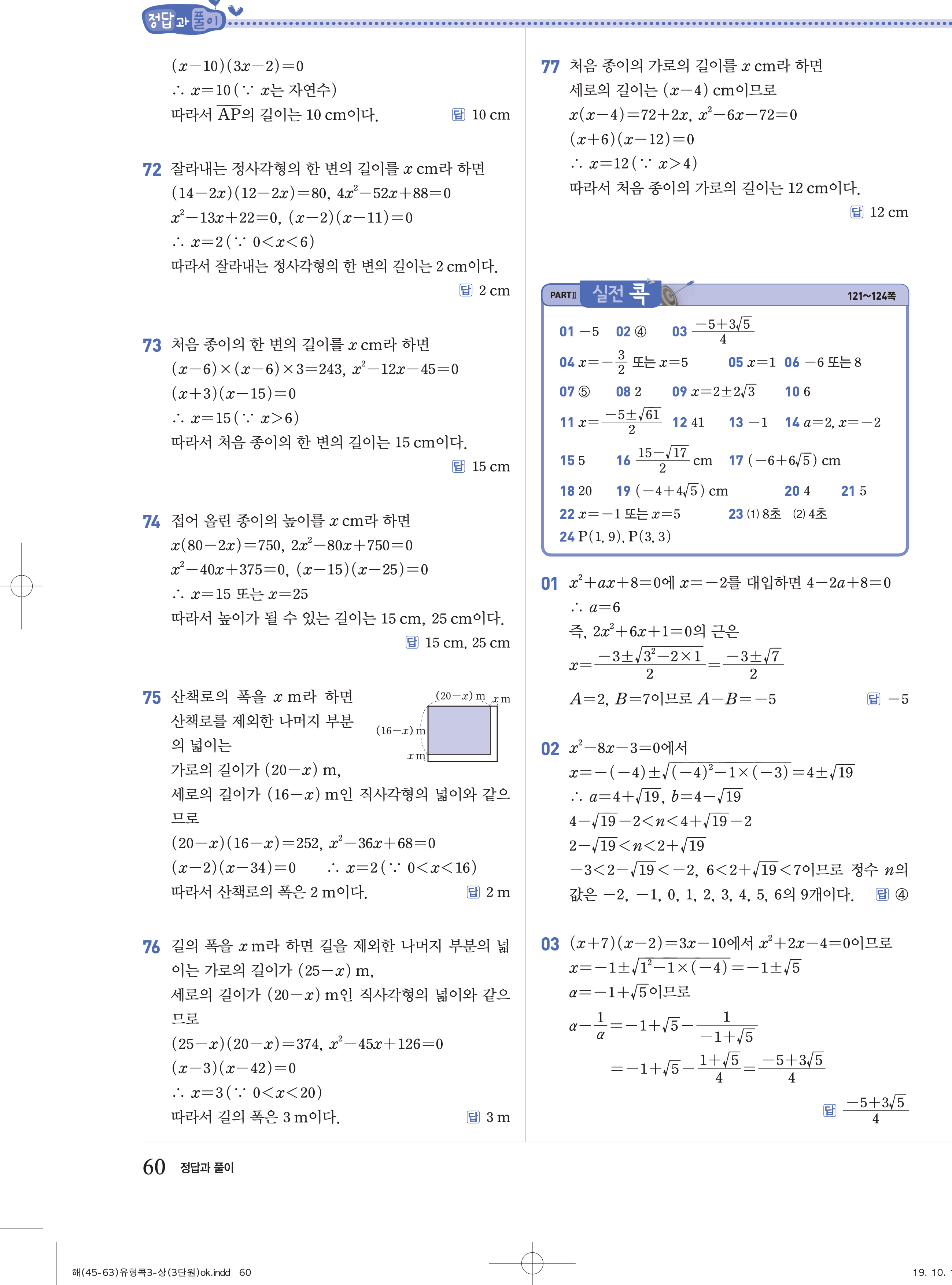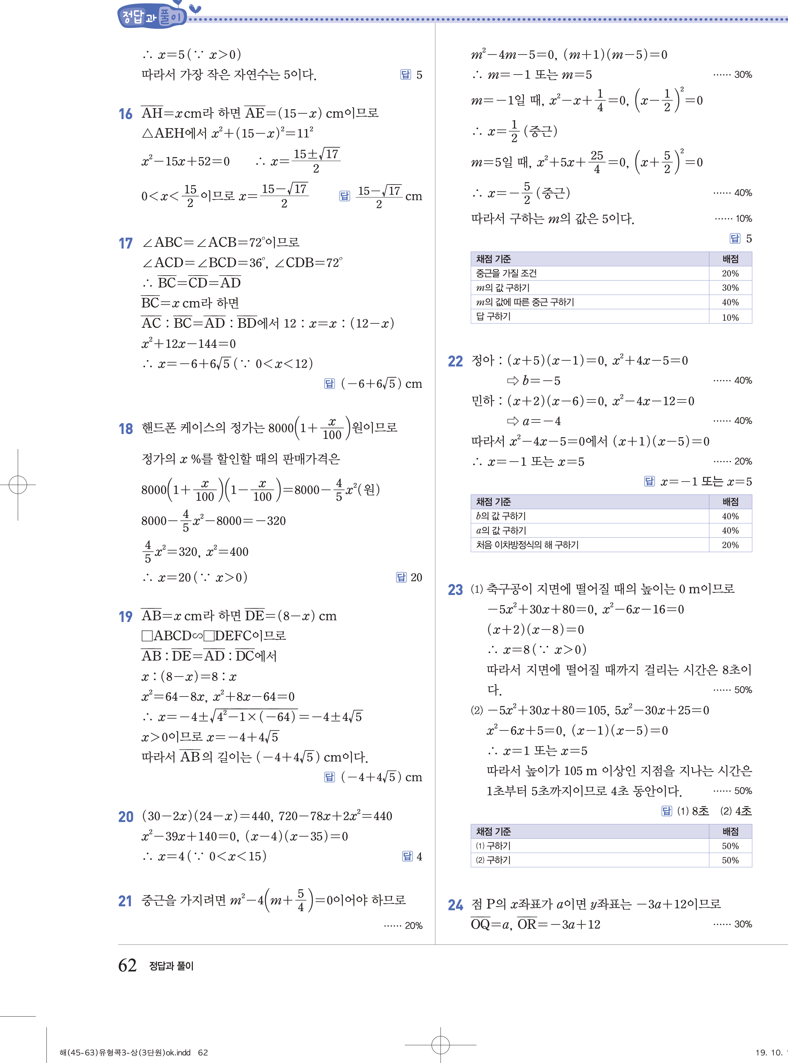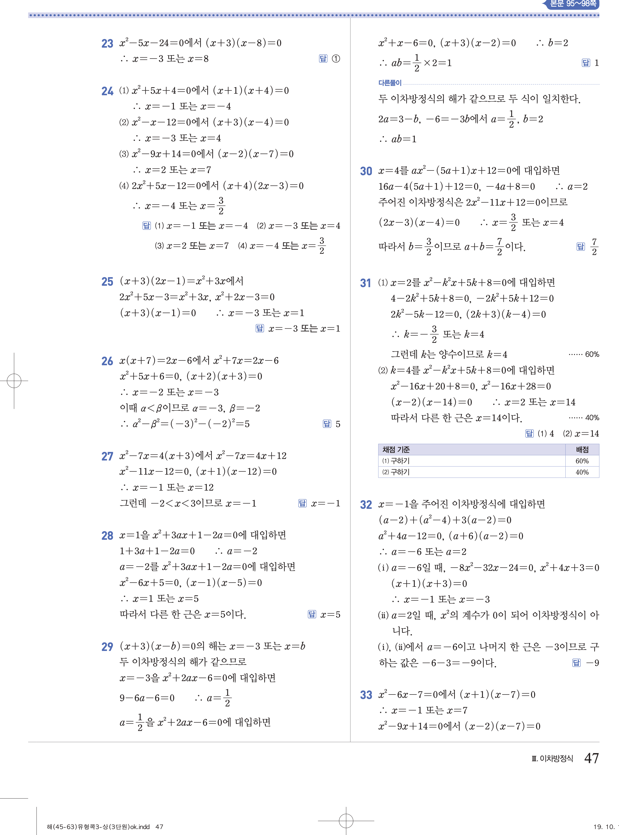 유형콕 중등수학 3-1 답지 해설 바로보는 사진답지 빠른답지 모바일최적화