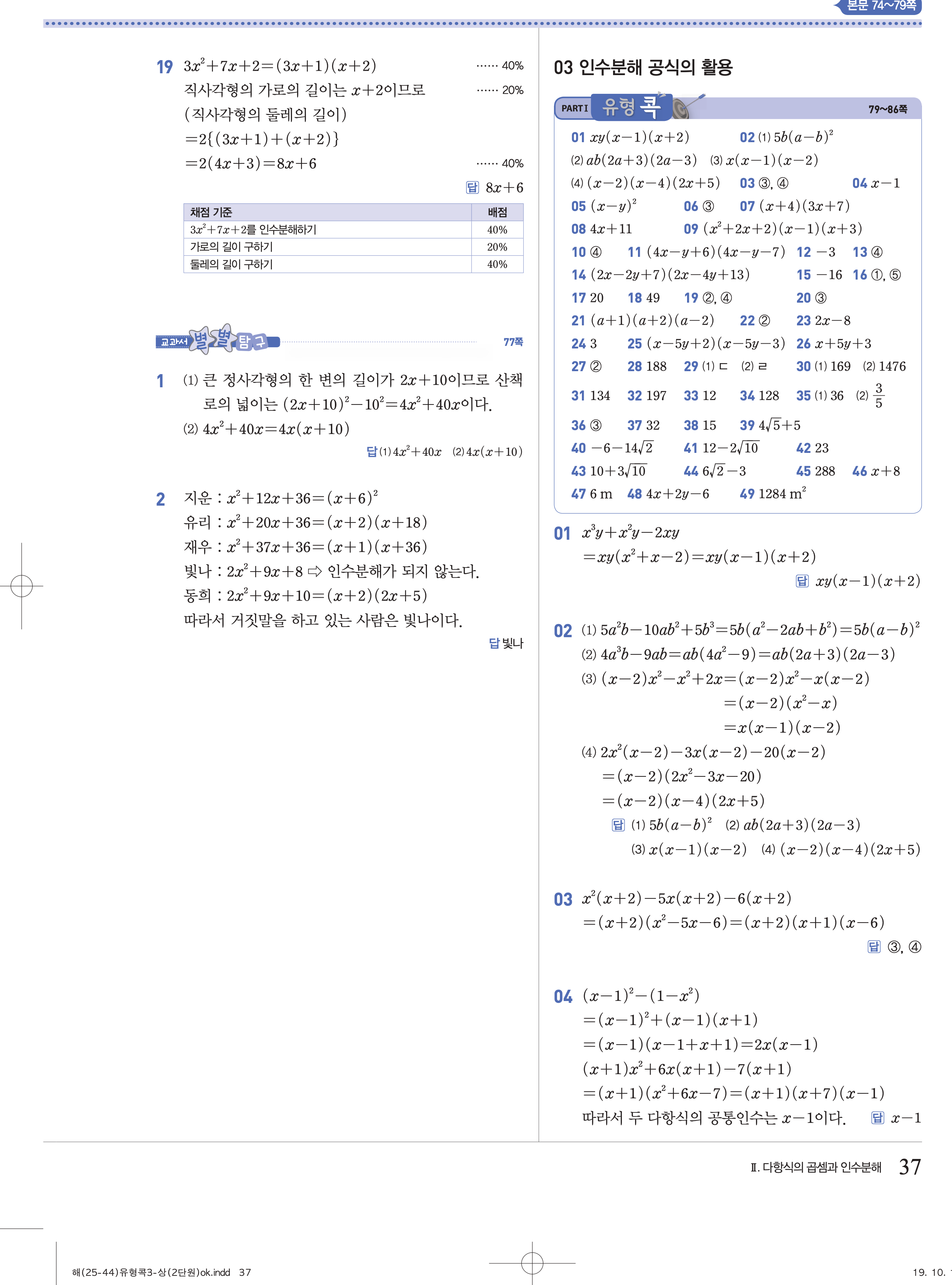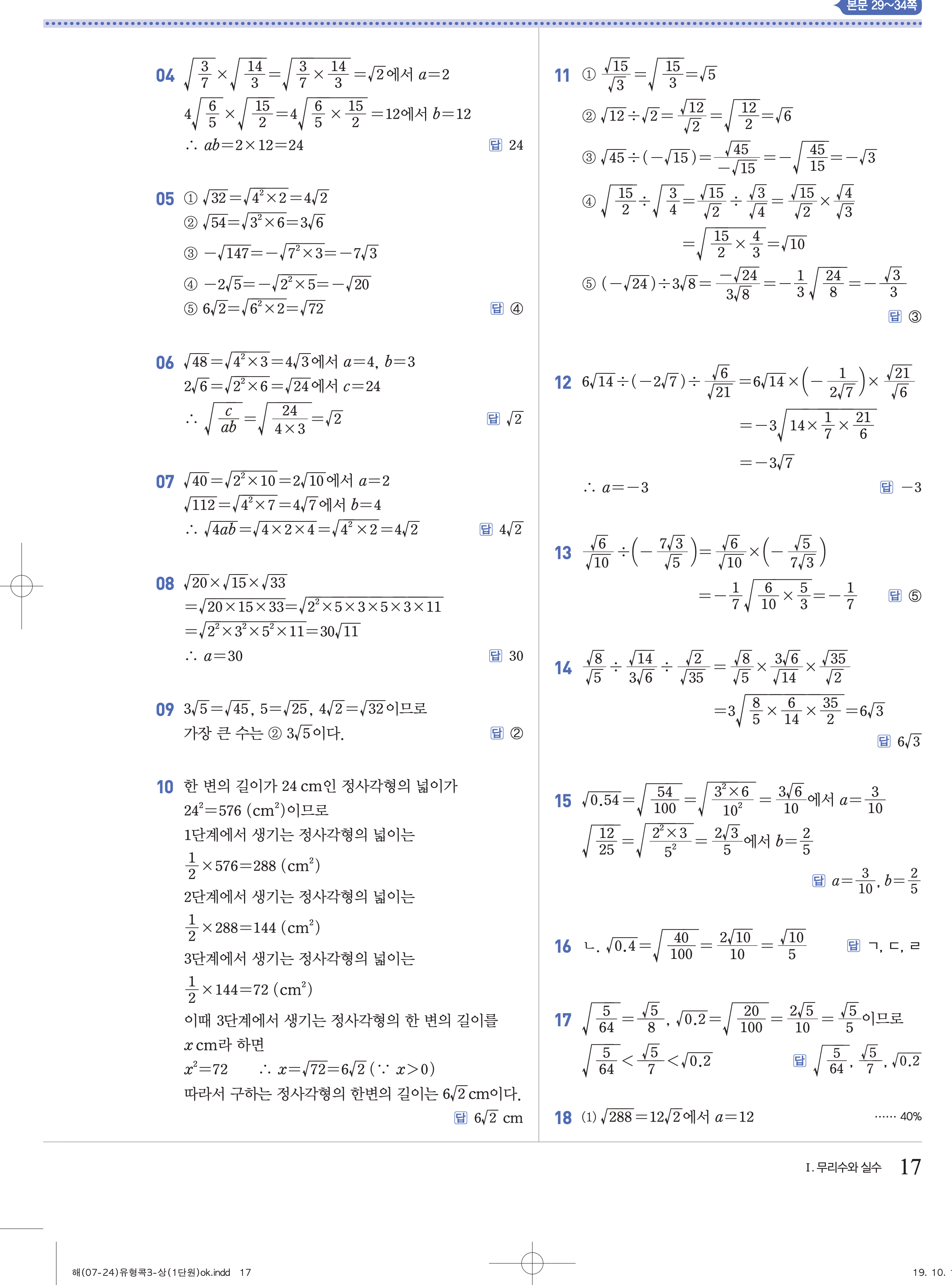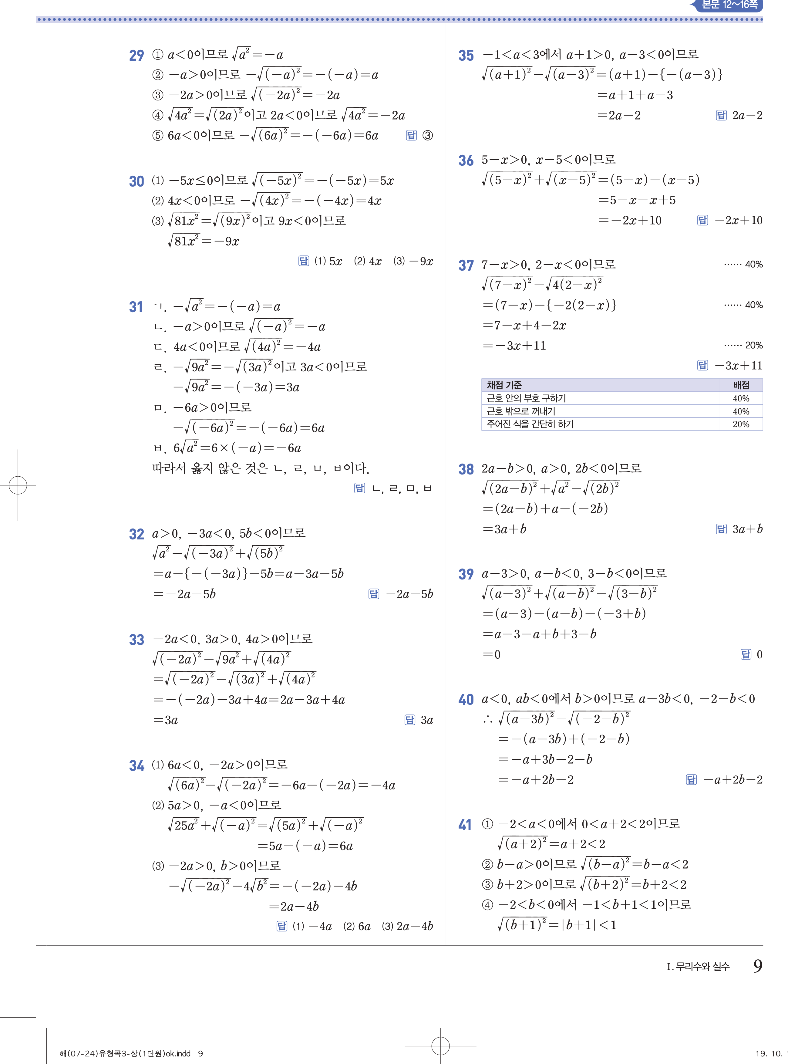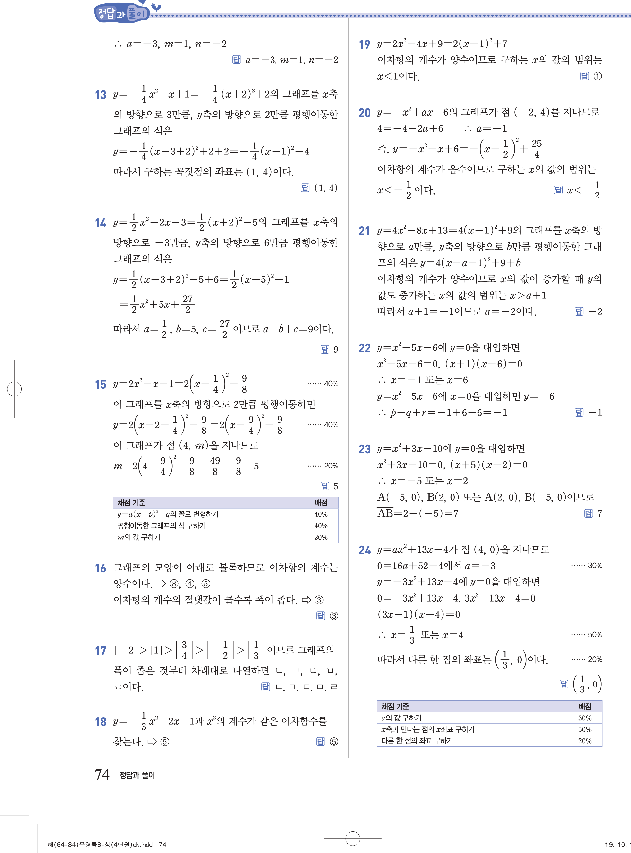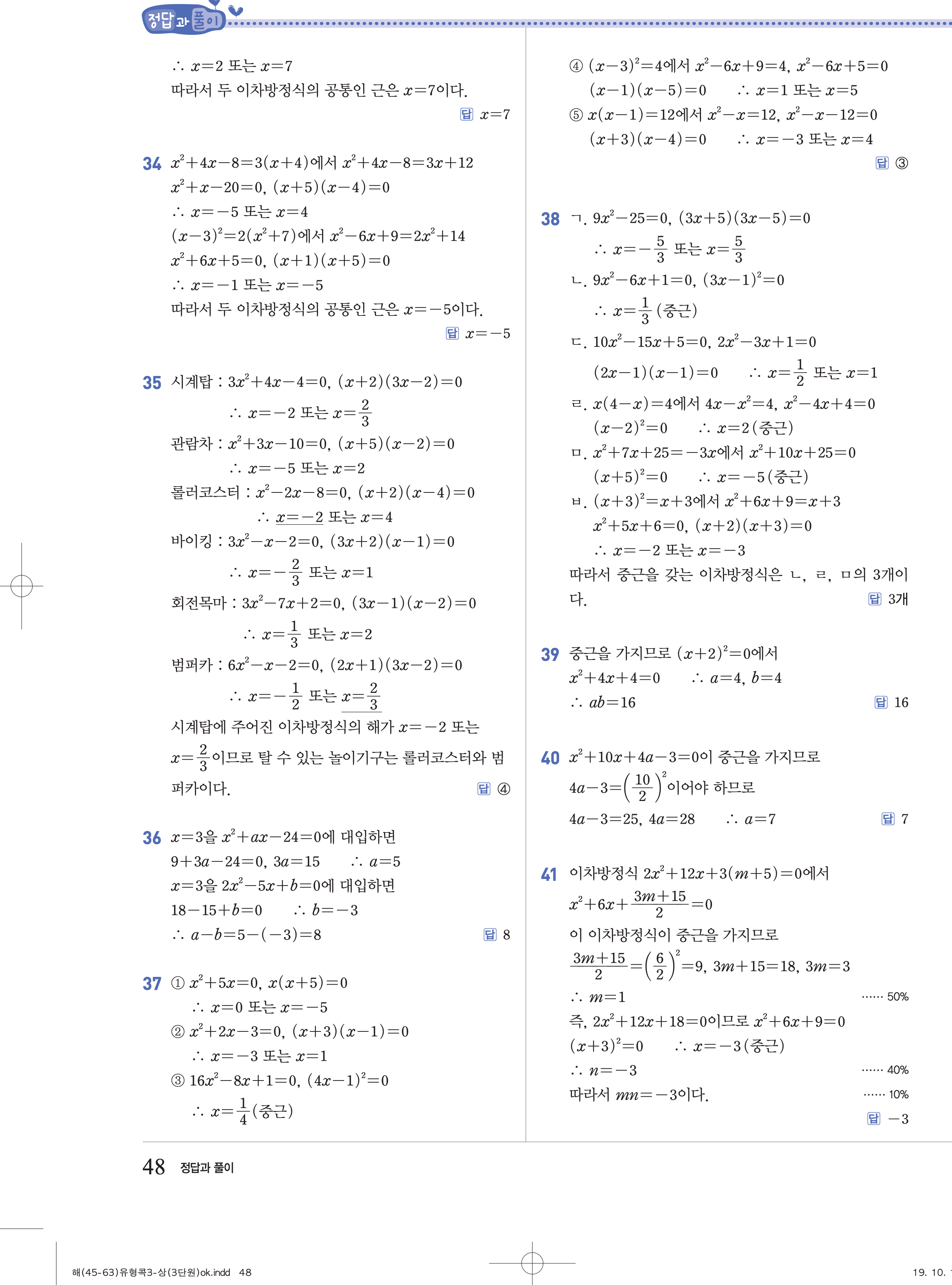 유형콕 중등수학 3-1 답지 해설 바로보는 사진답지 빠른답지 모바일최적화