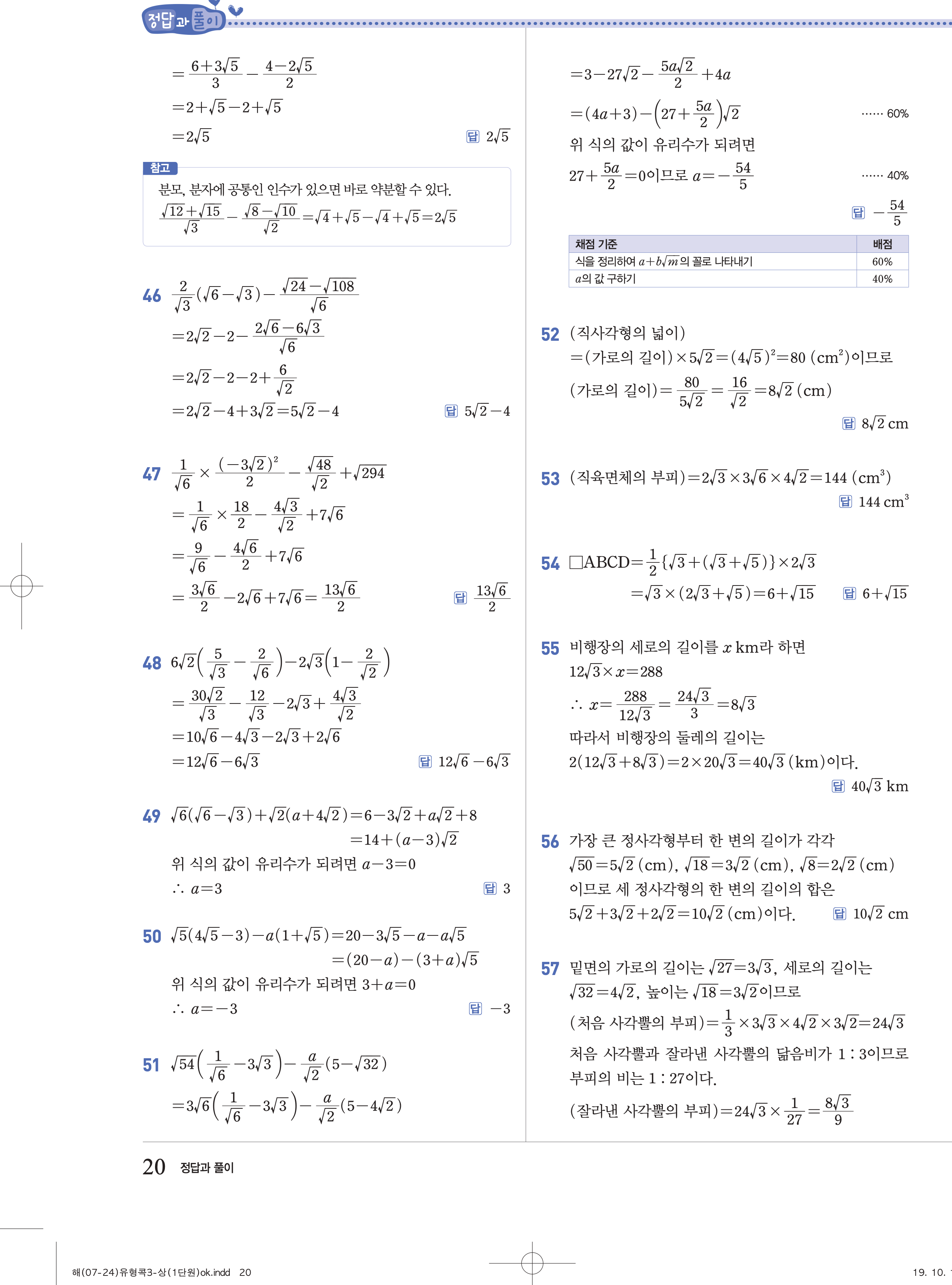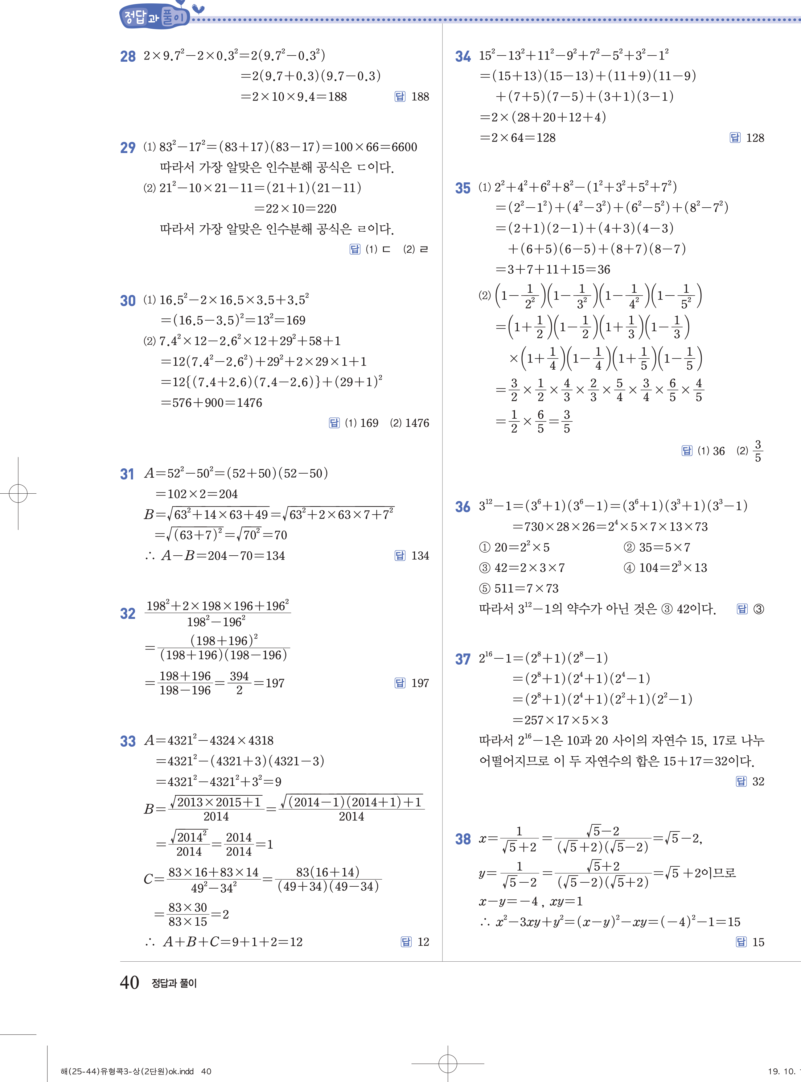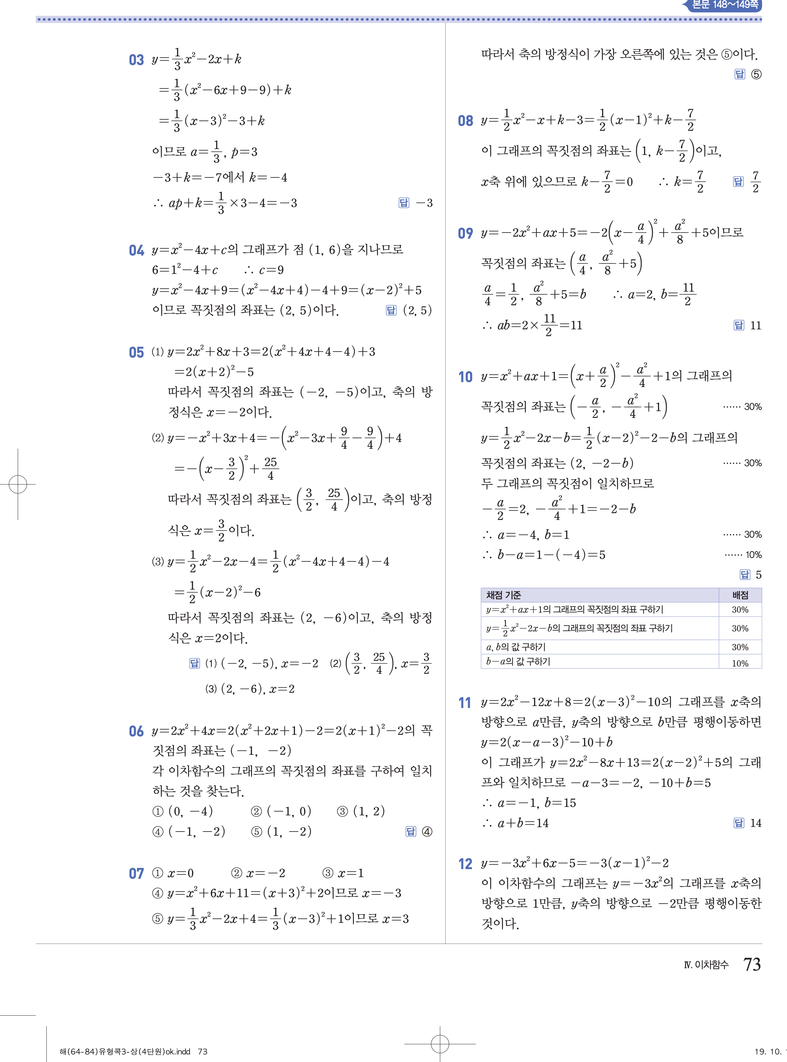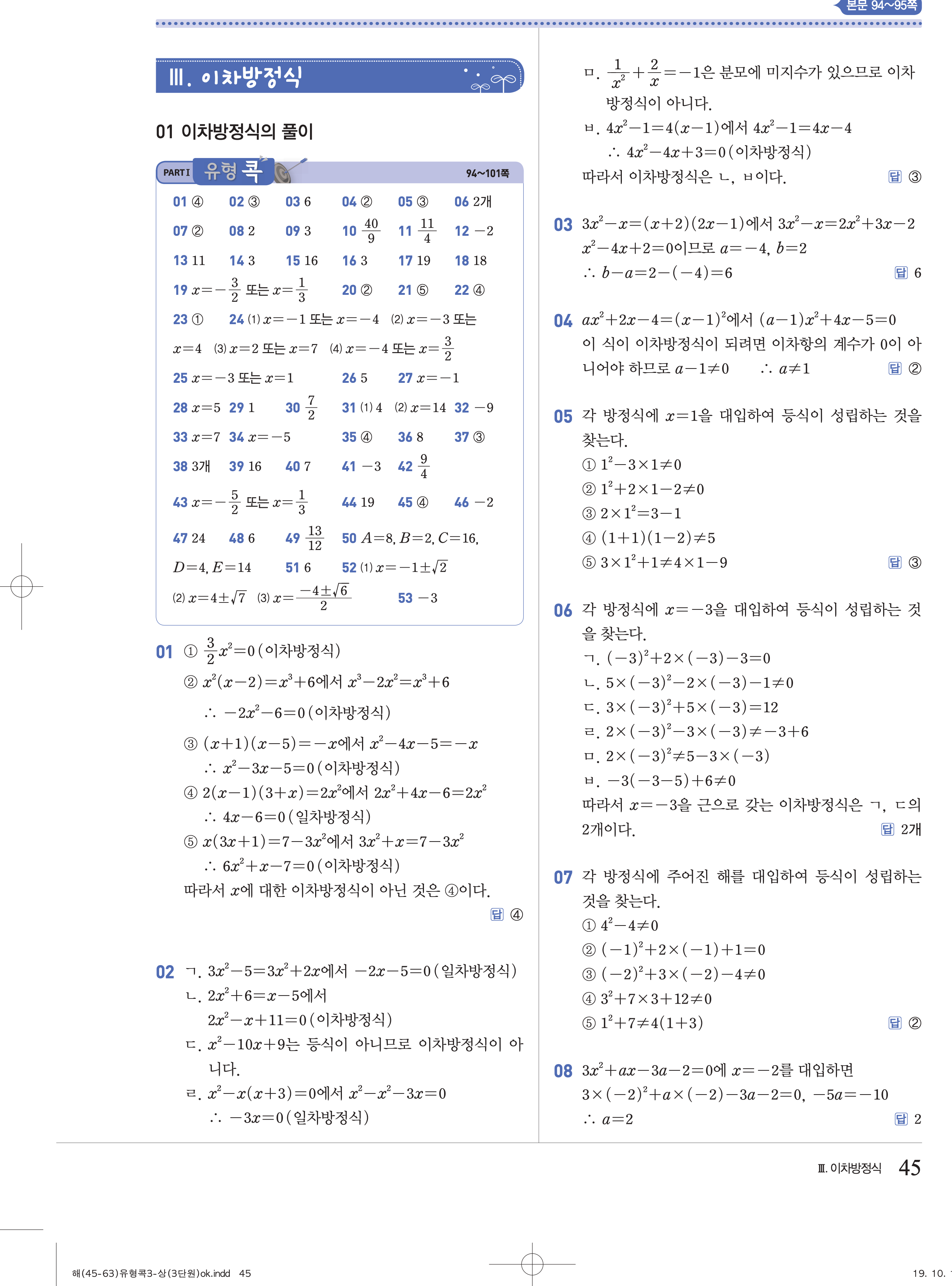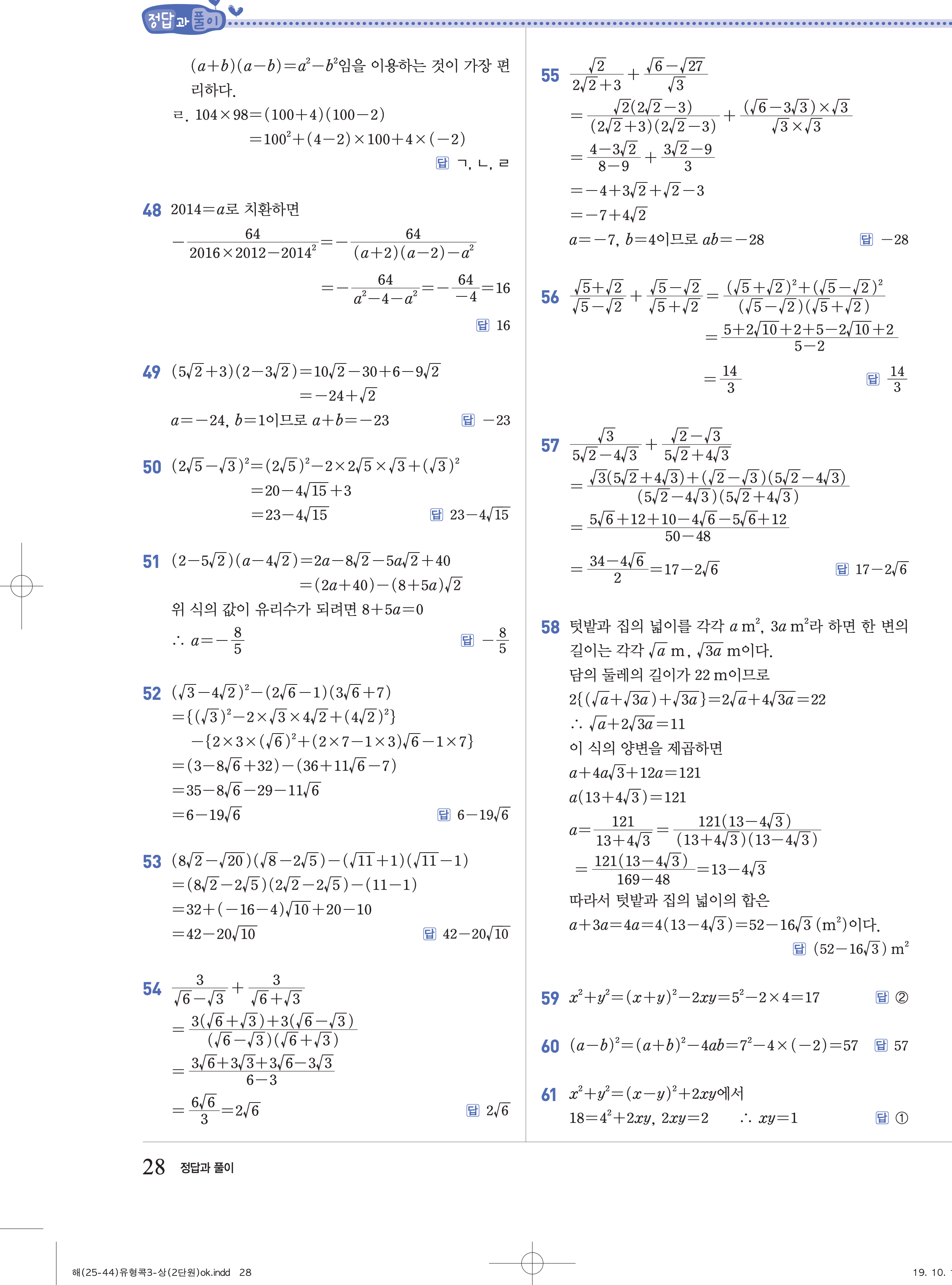 유형콕 중등수학 3-1 답지 해설 바로보는 사진답지 빠른답지 모바일최적화