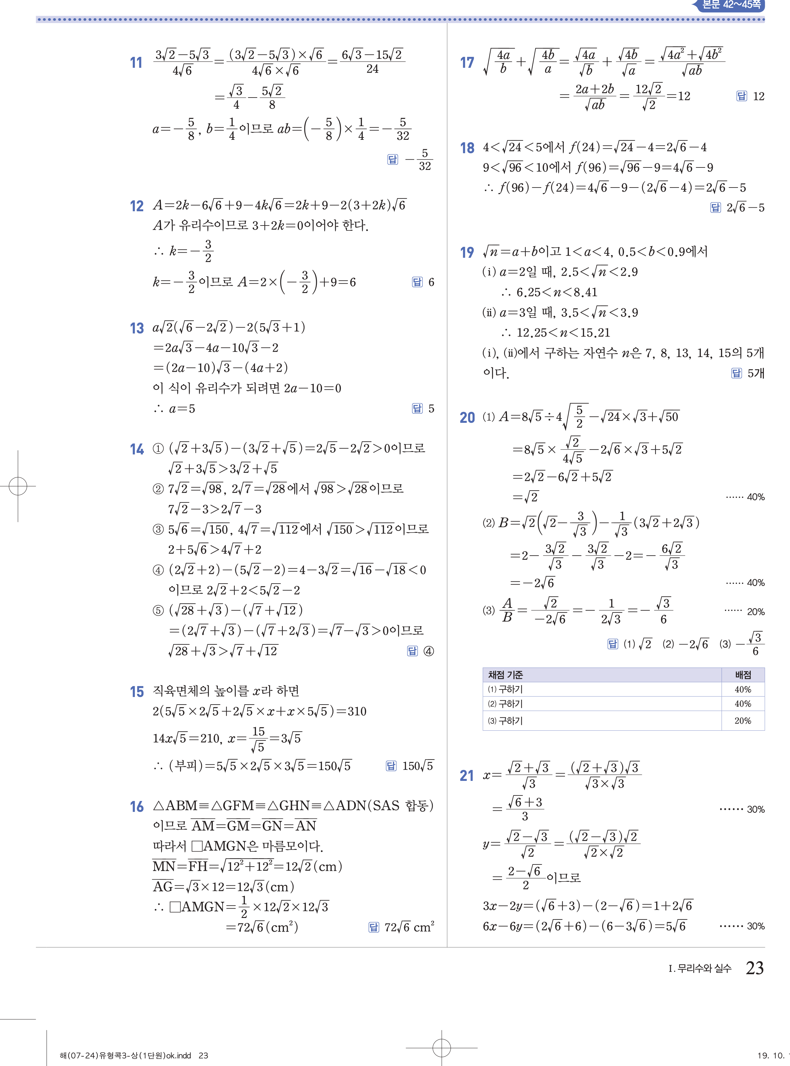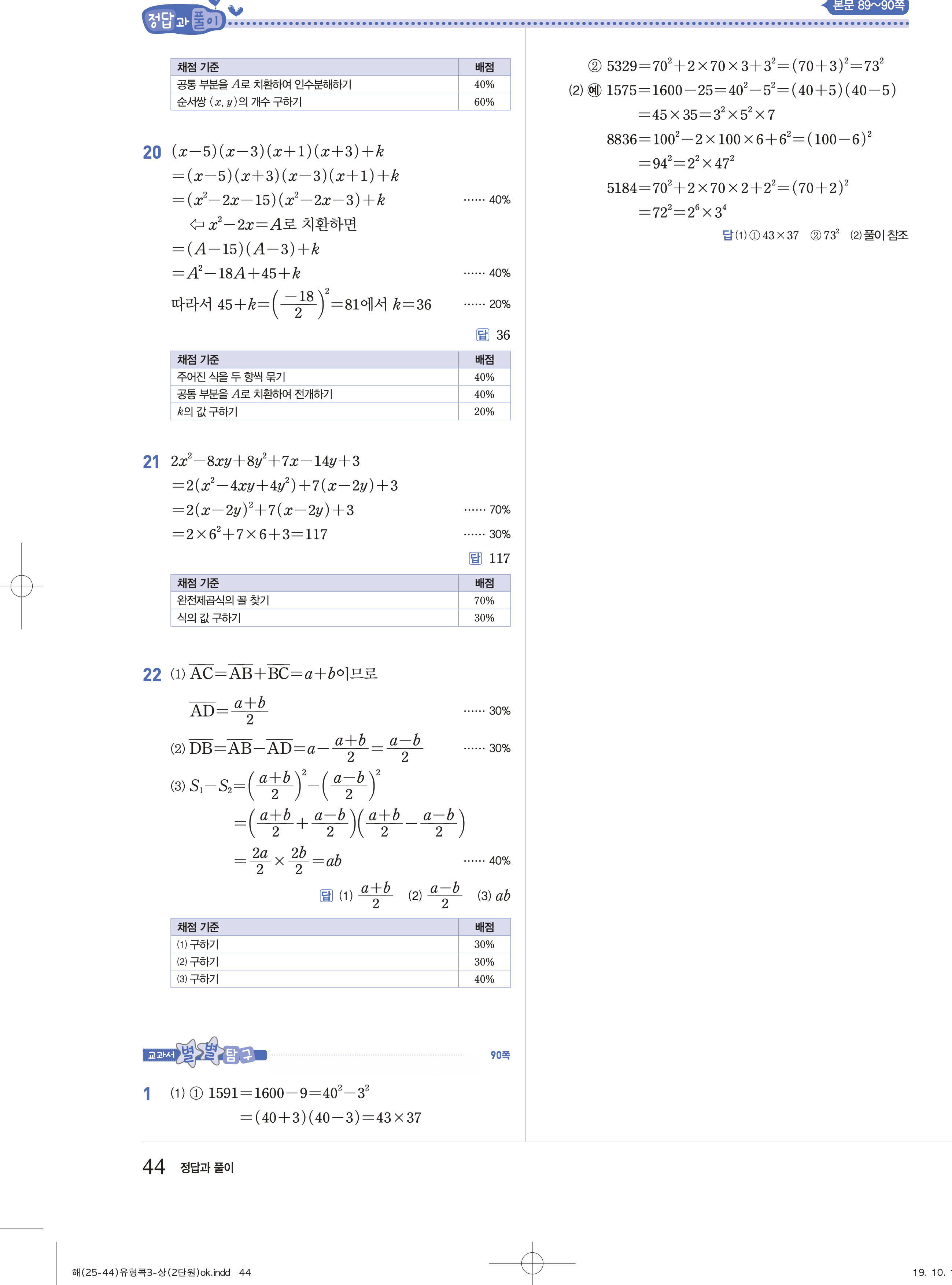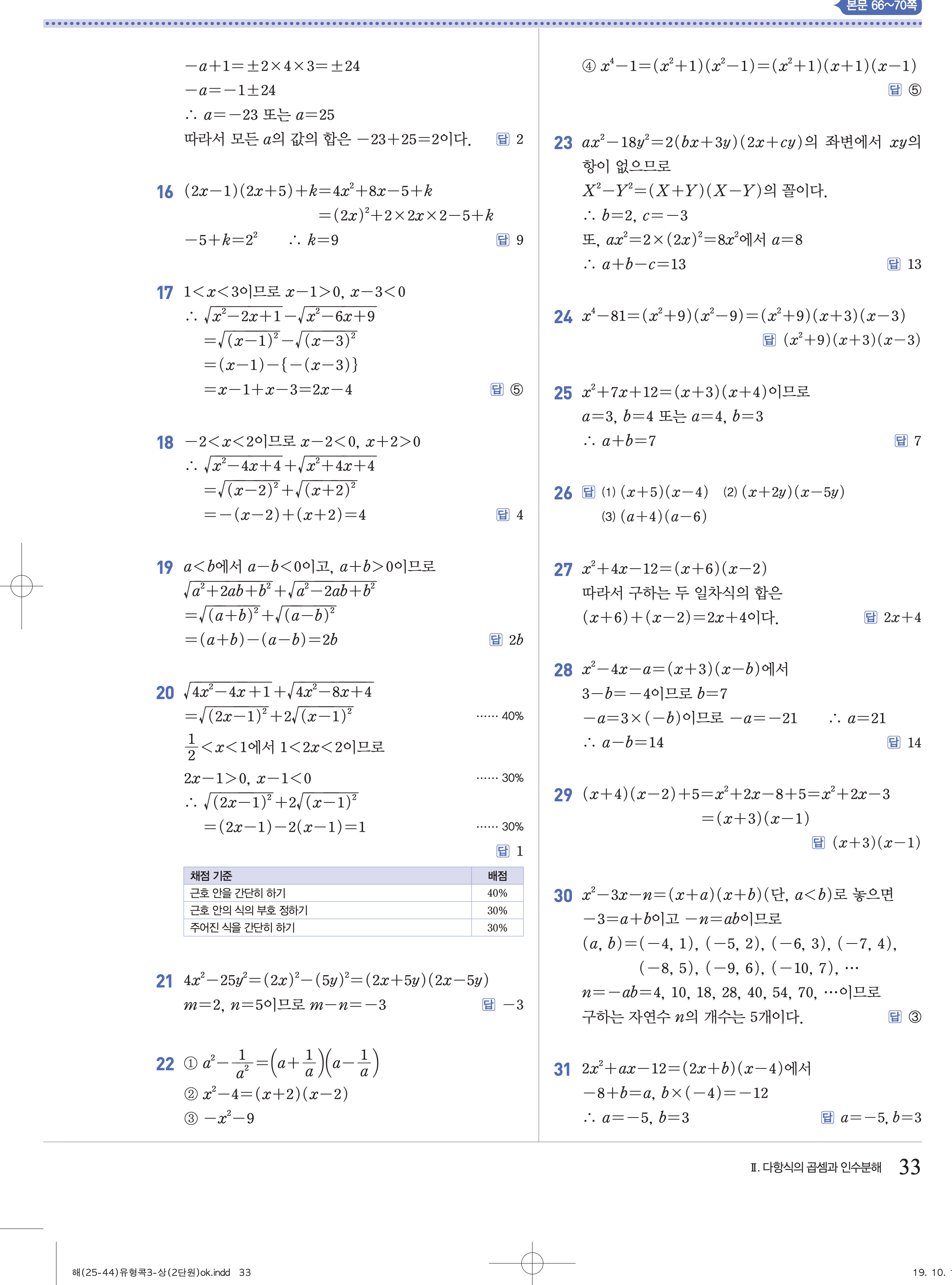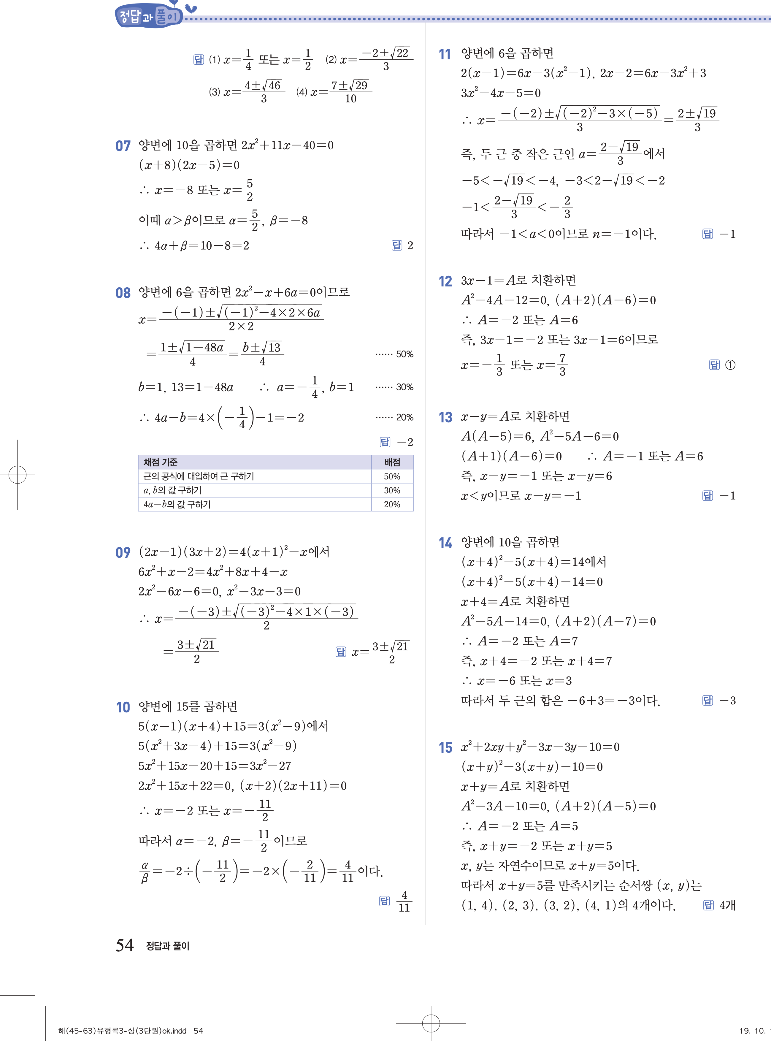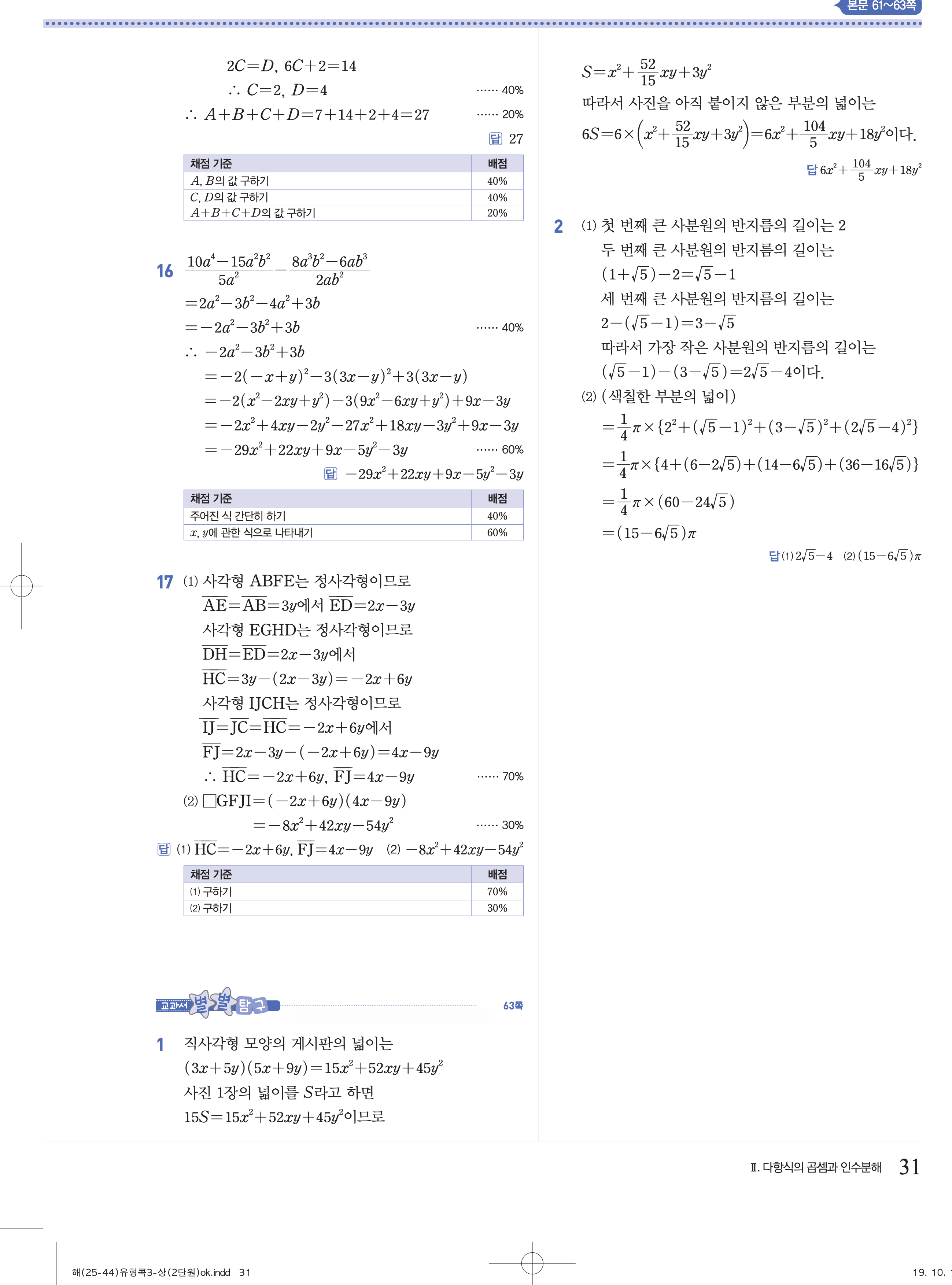 유형콕 중등수학 3-1 답지 해설 바로보는 사진답지 빠른답지 모바일최적화