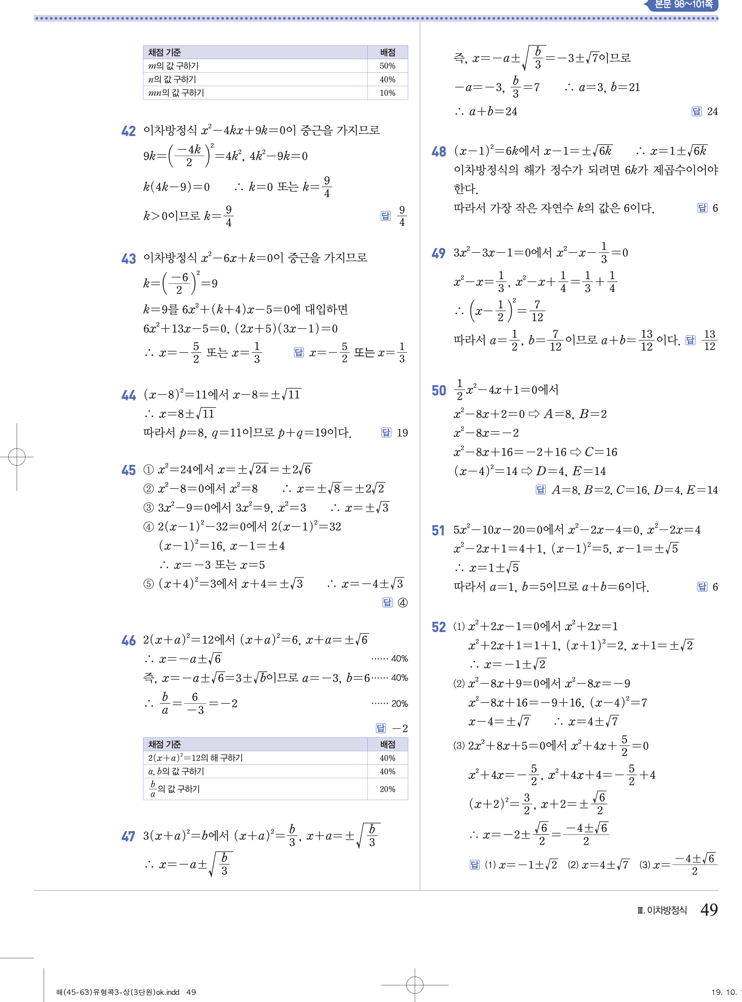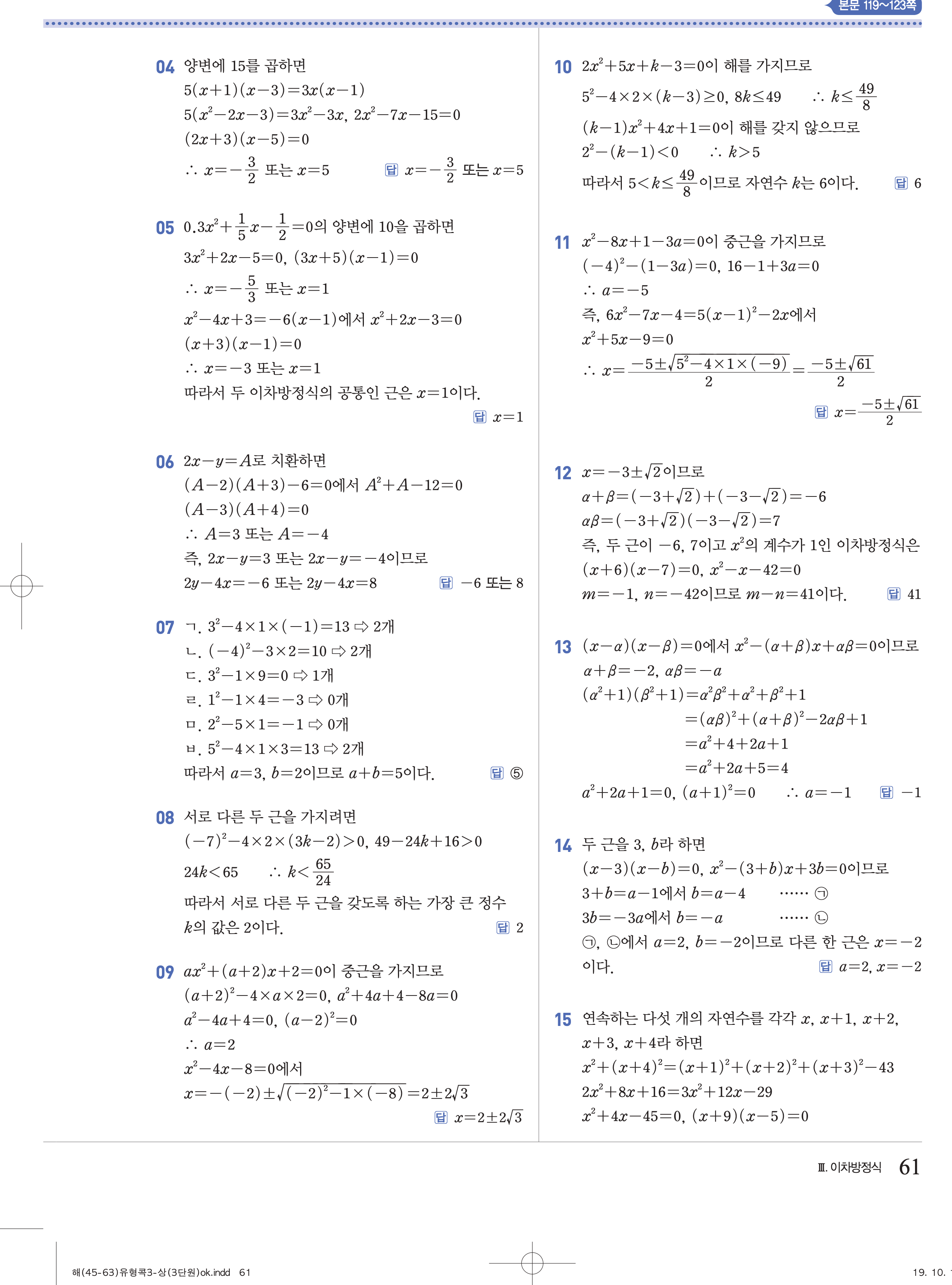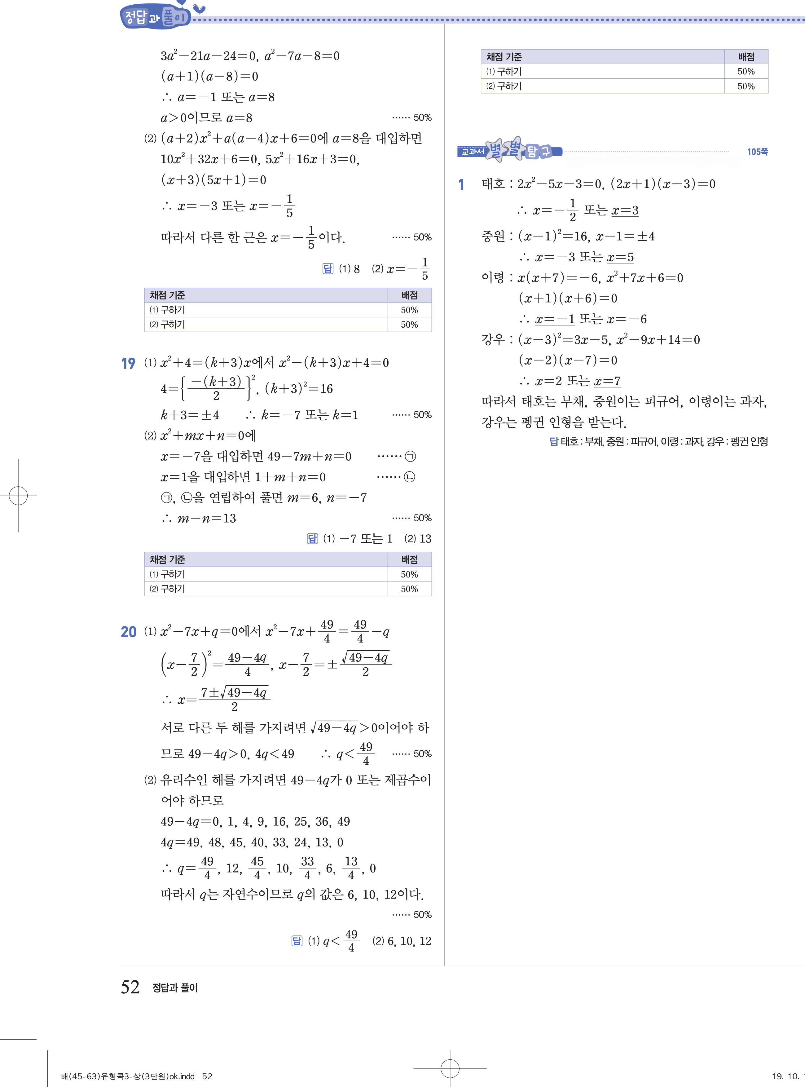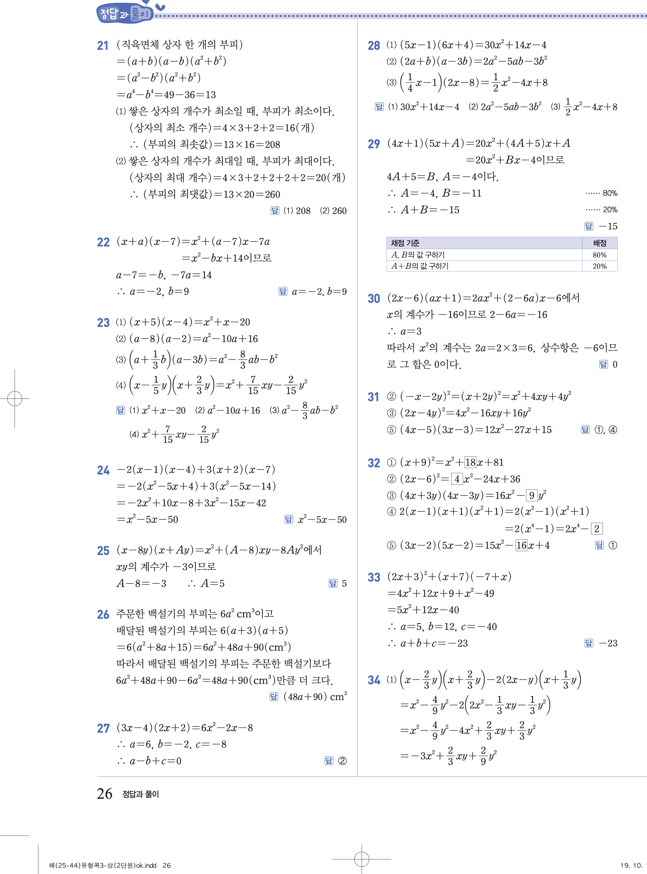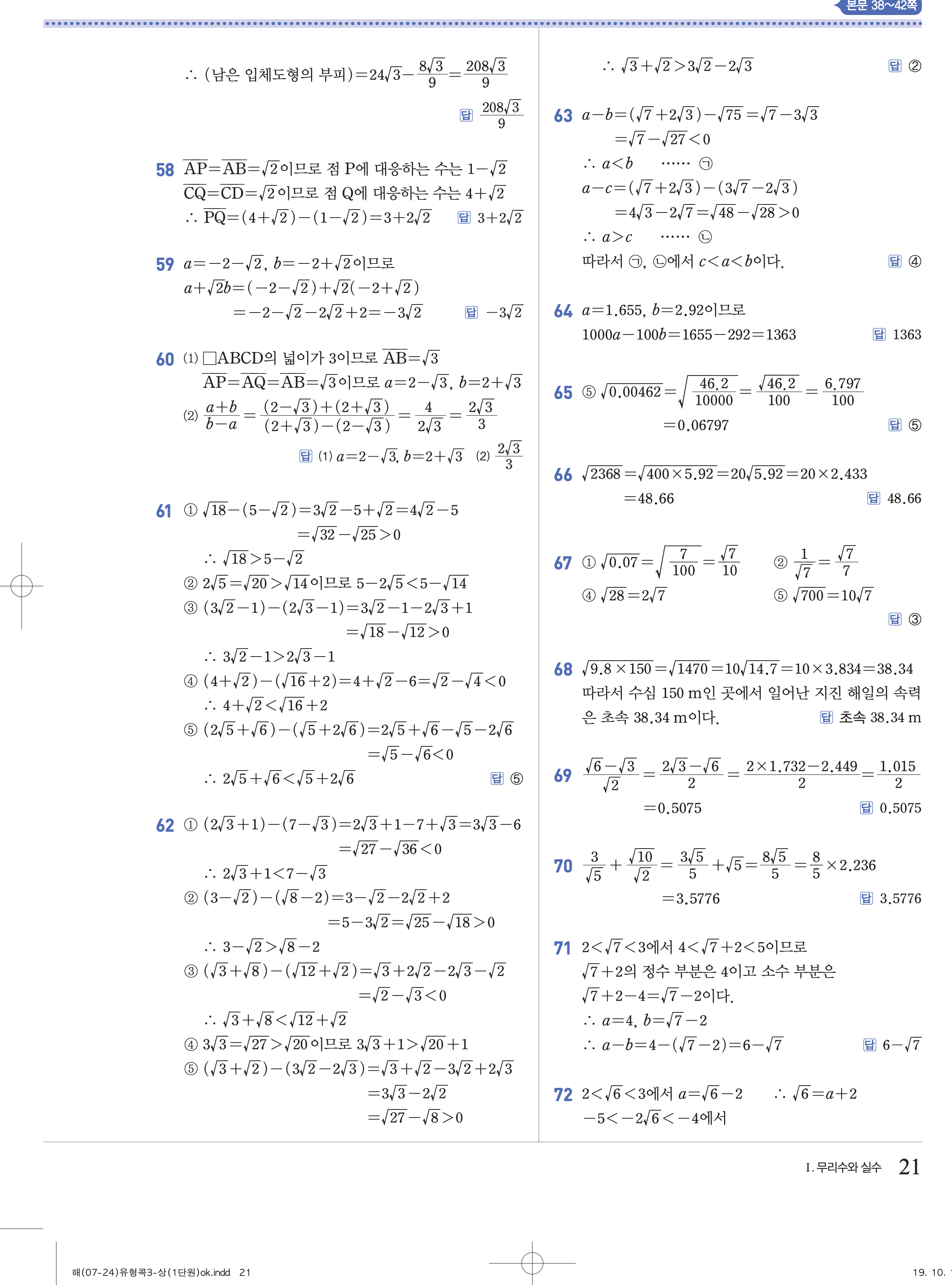 유형콕 중등수학 3-1 답지 해설 바로보는 사진답지 빠른답지 모바일최적화