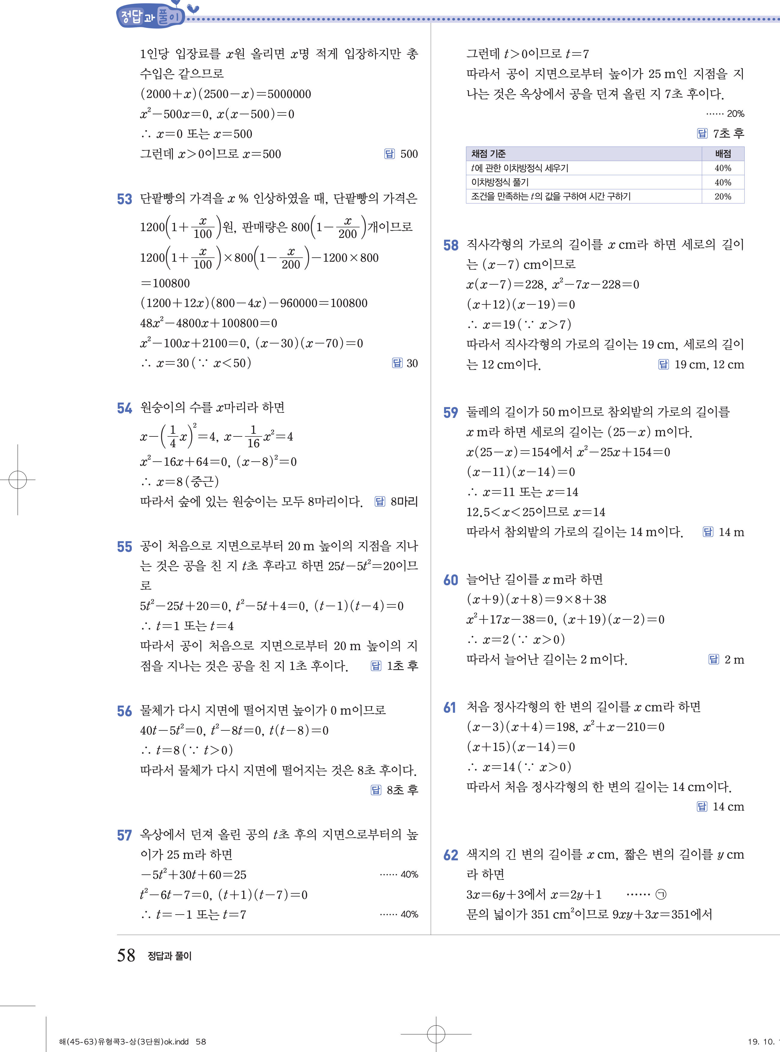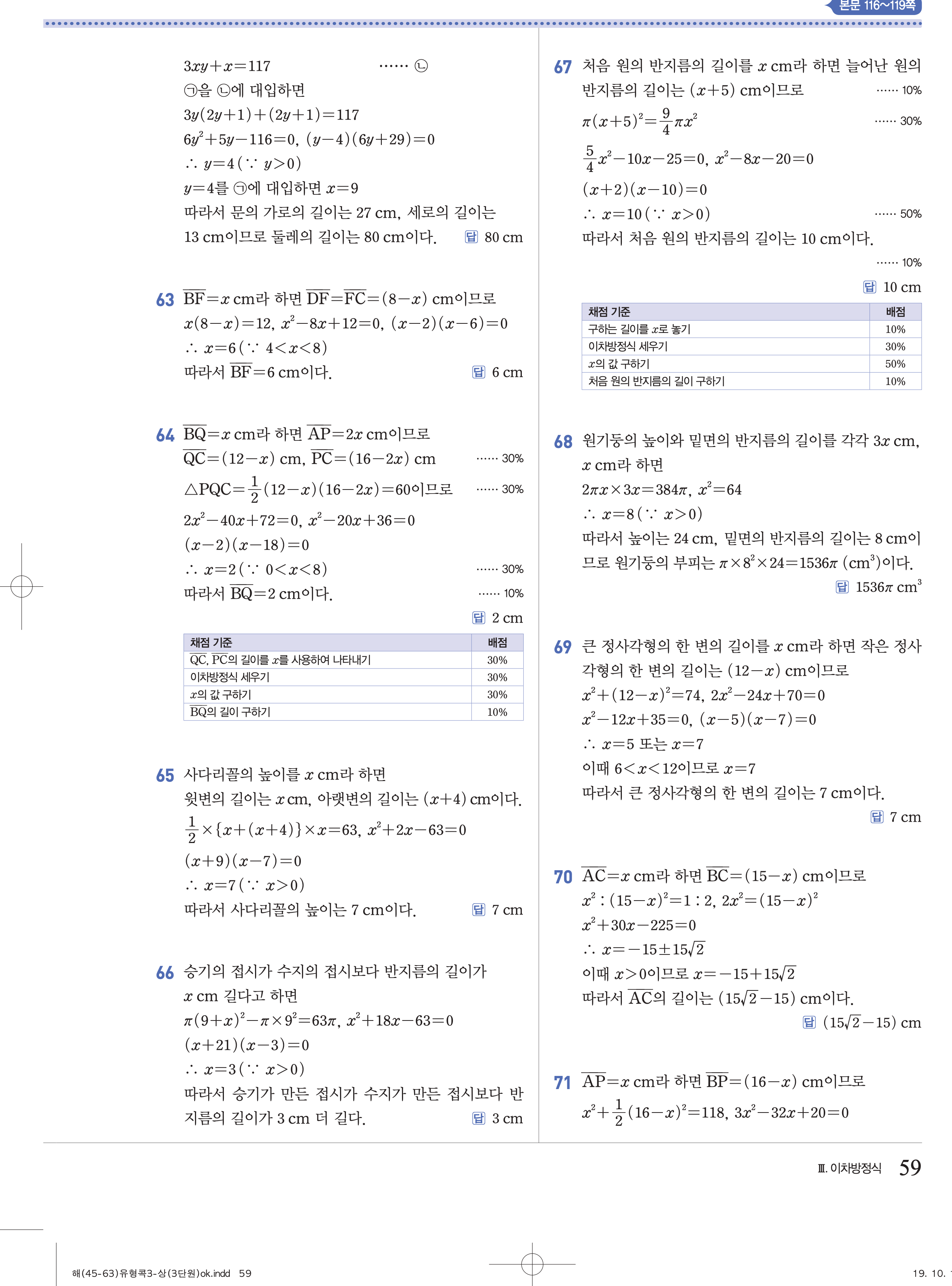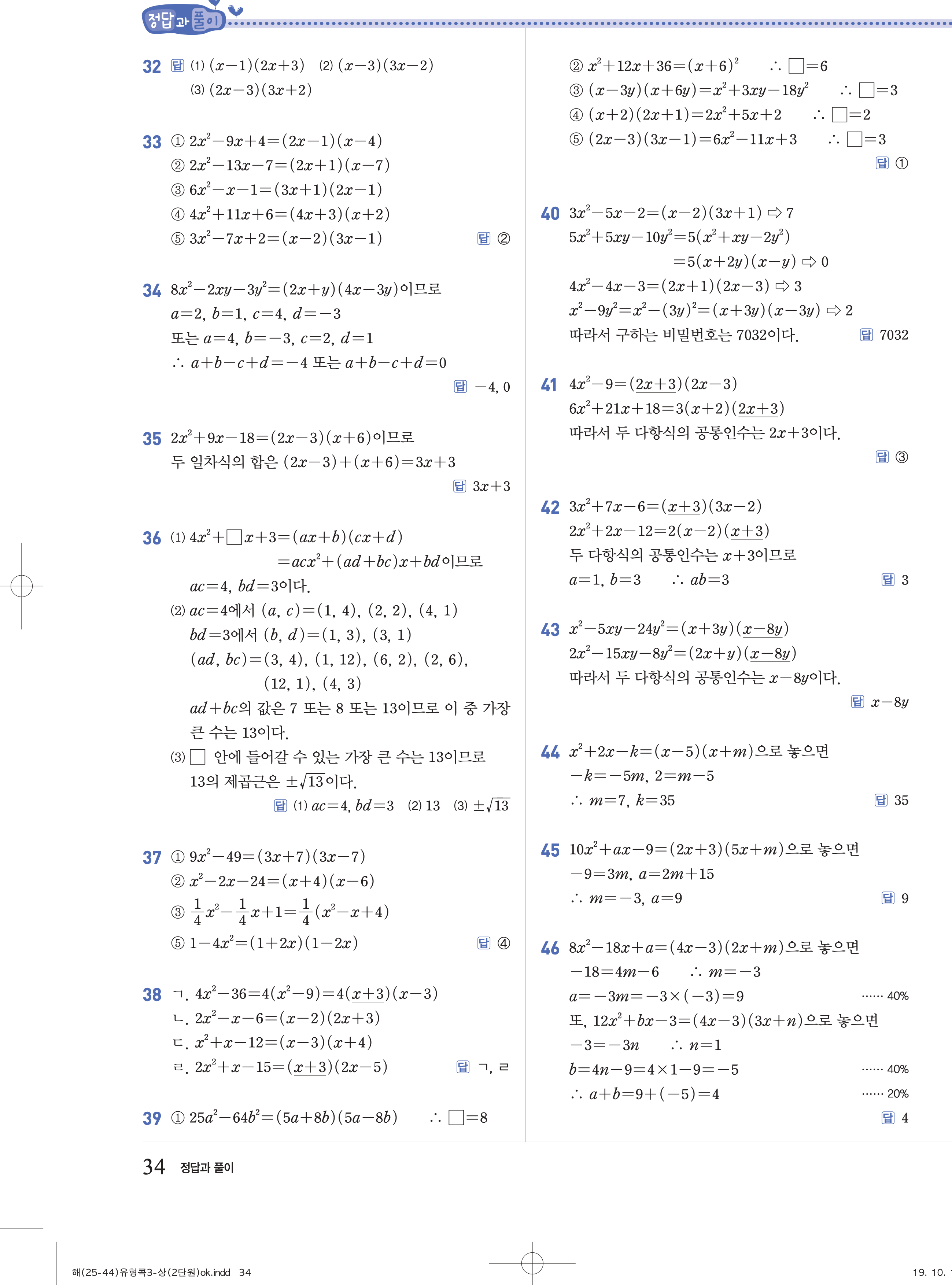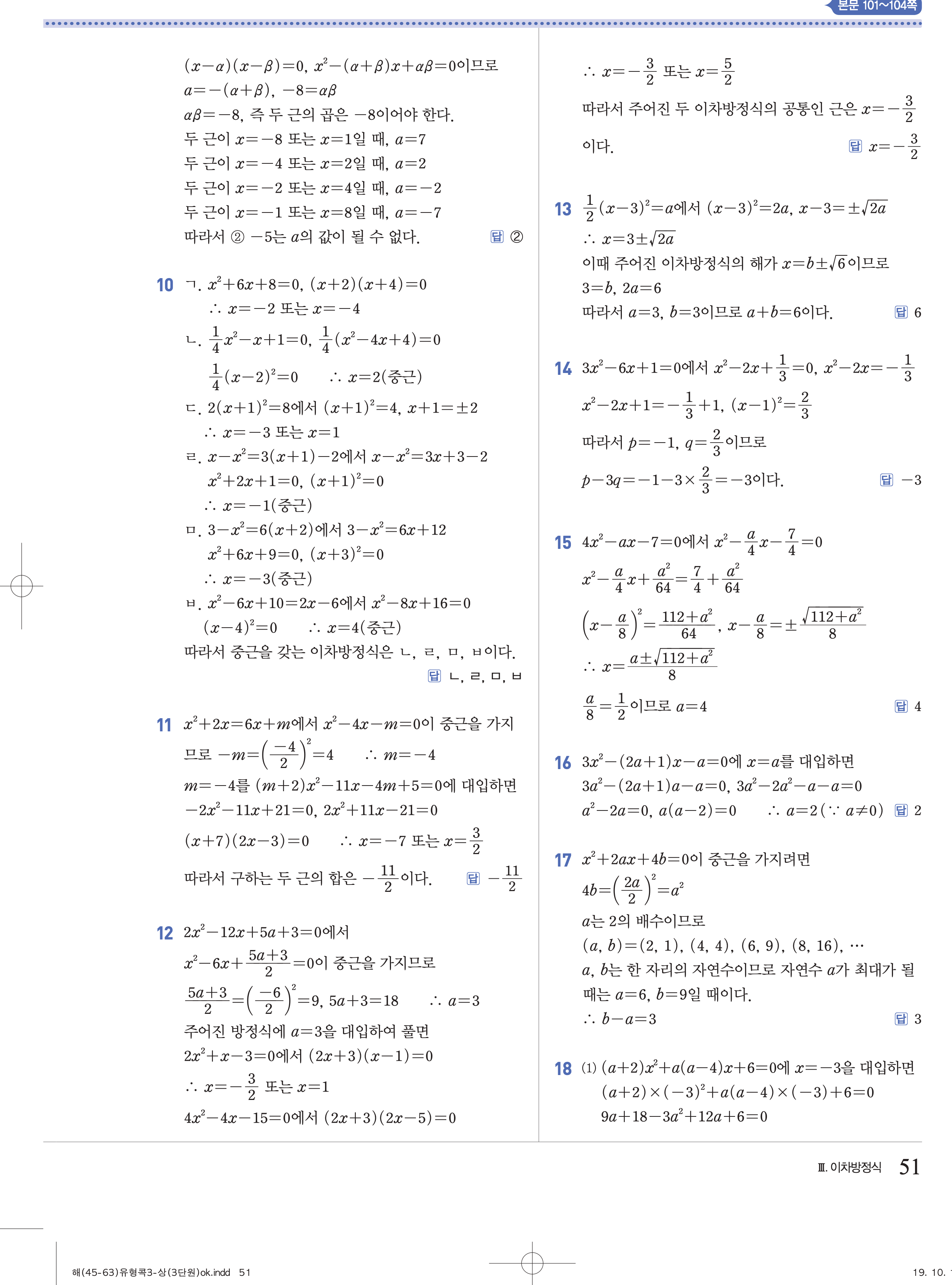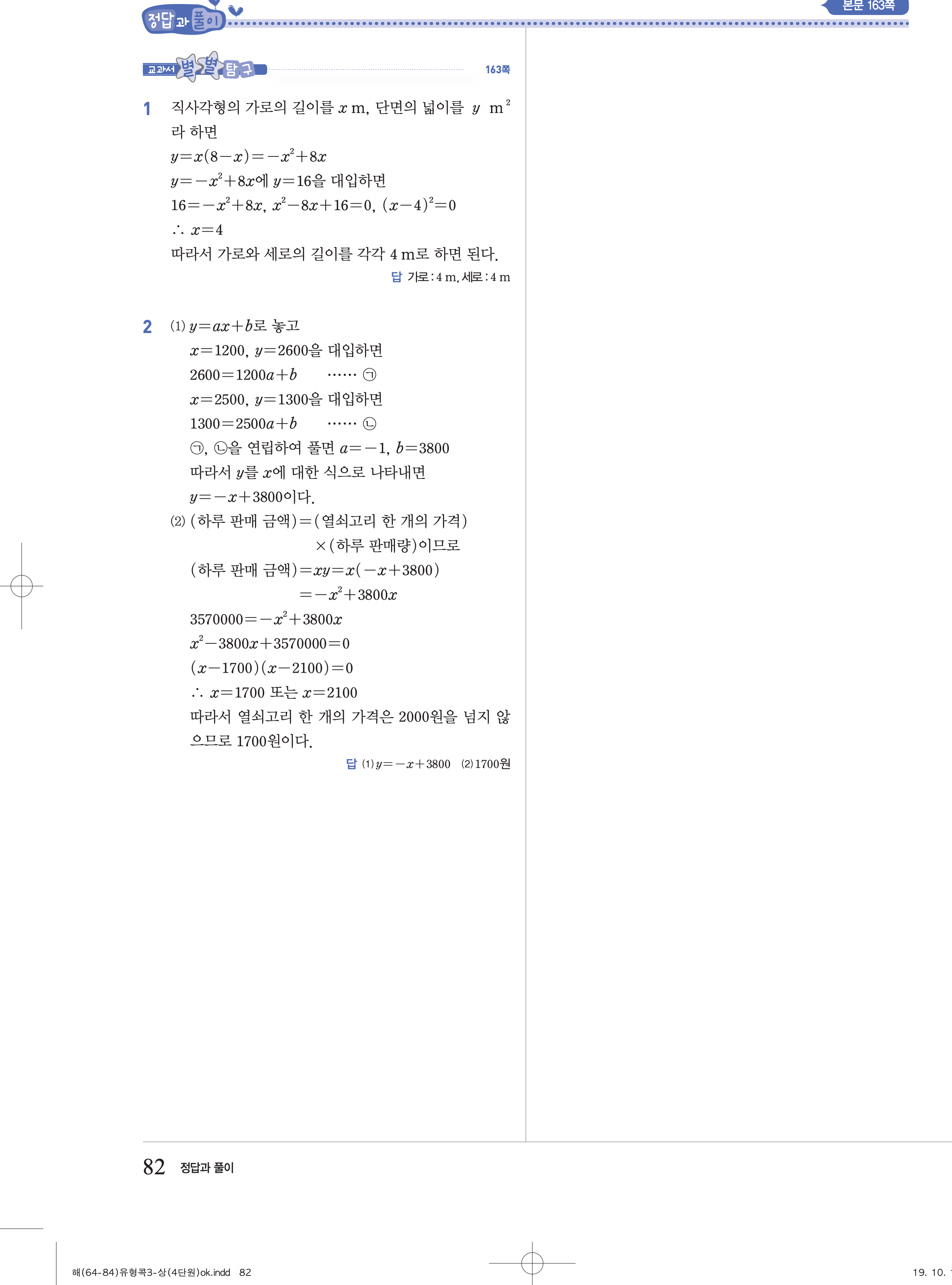 유형콕 중등수학 3-1 답지 해설 바로보는 사진답지 빠른답지 모바일최적화