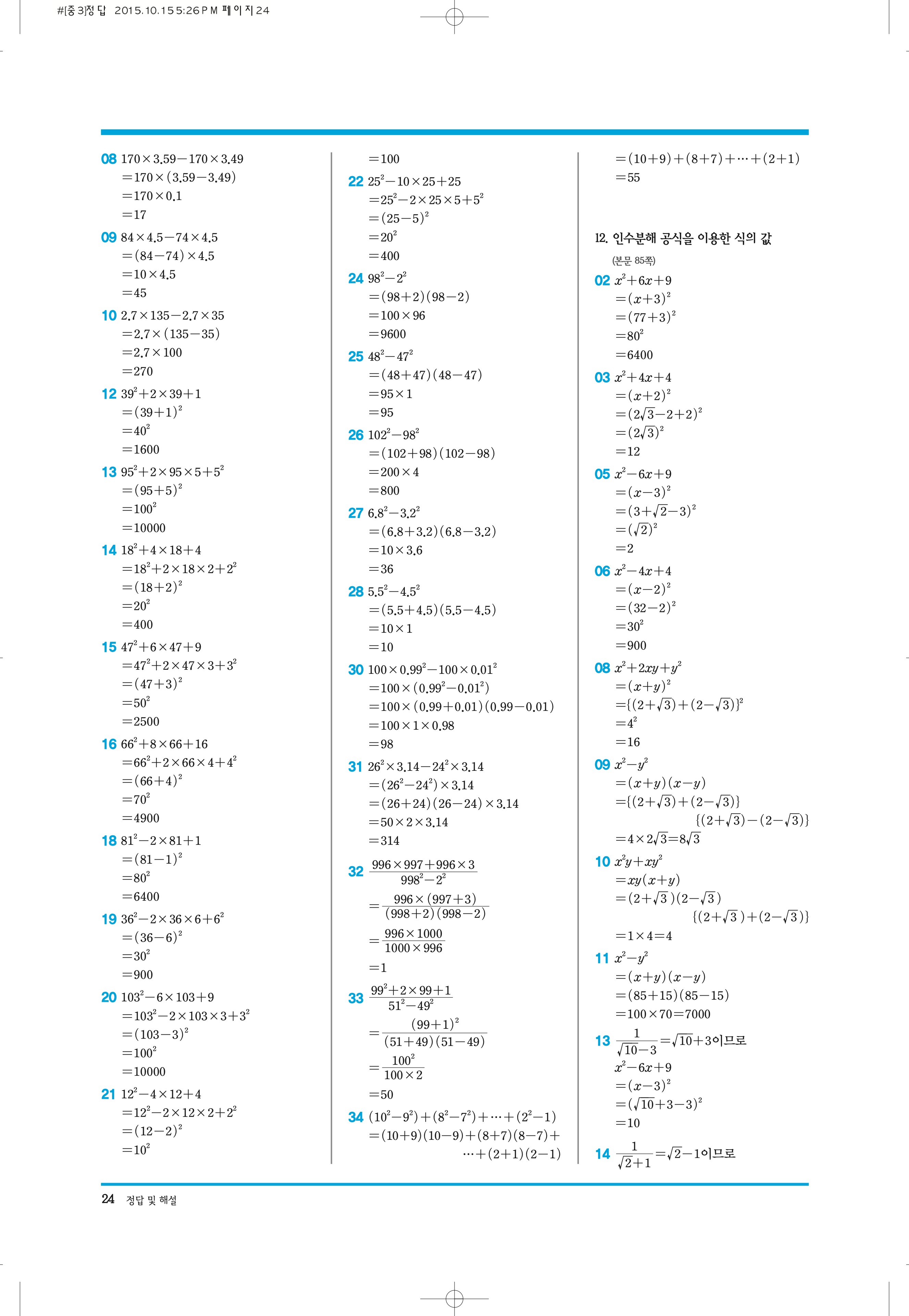 연마수학 3-1 답지 해설 바로보는 사진답지 빠른답지 모바일최적화