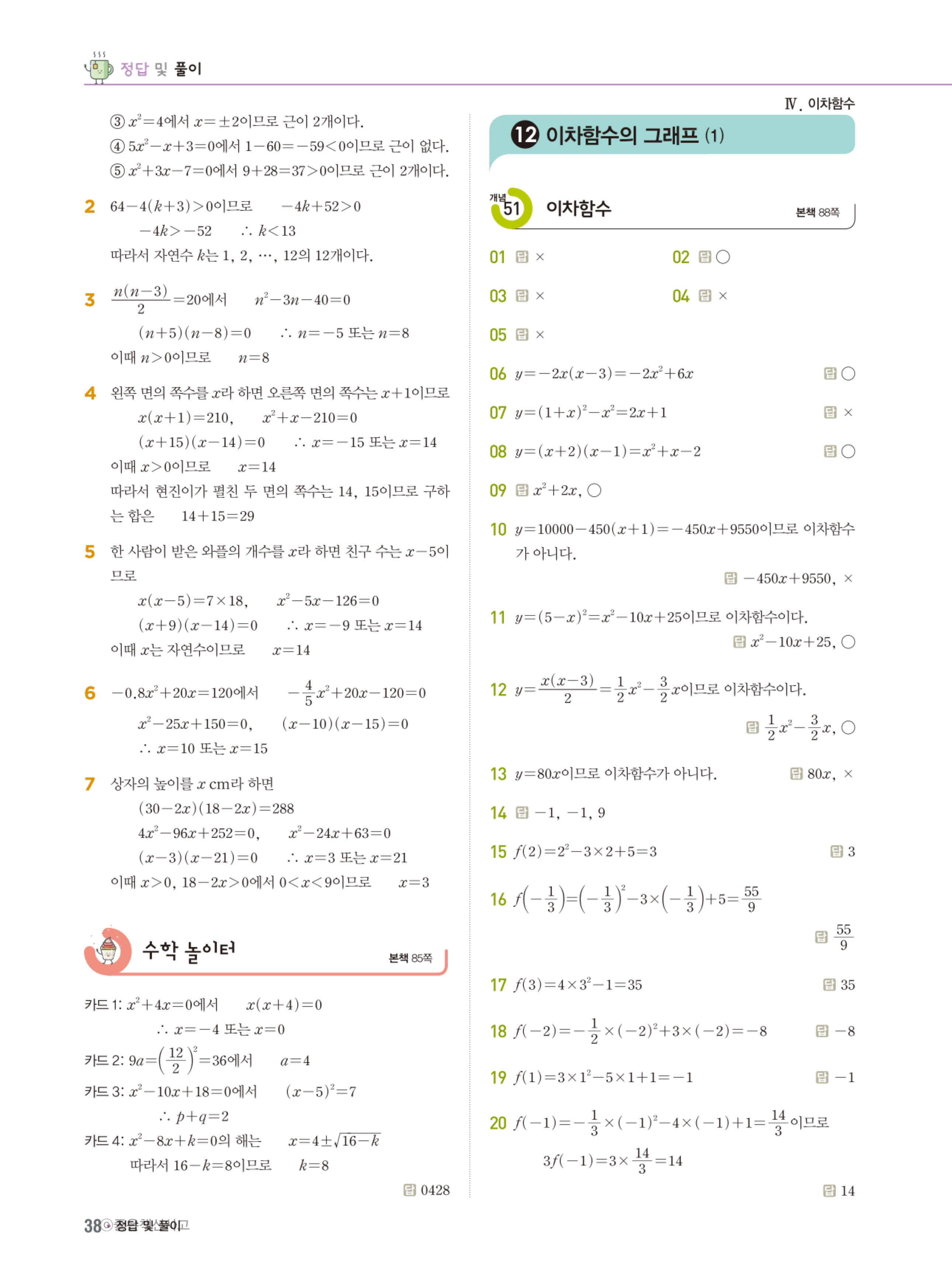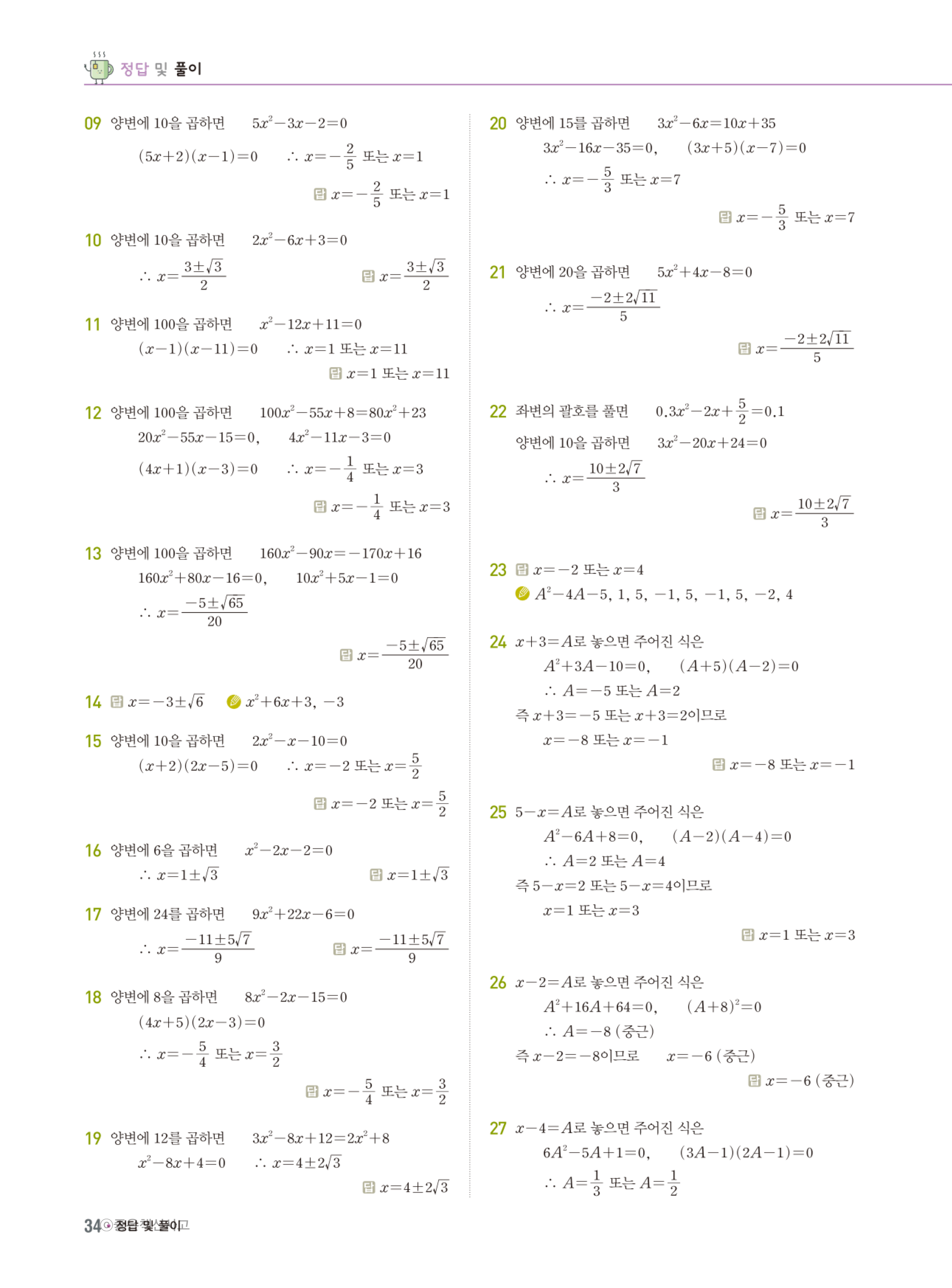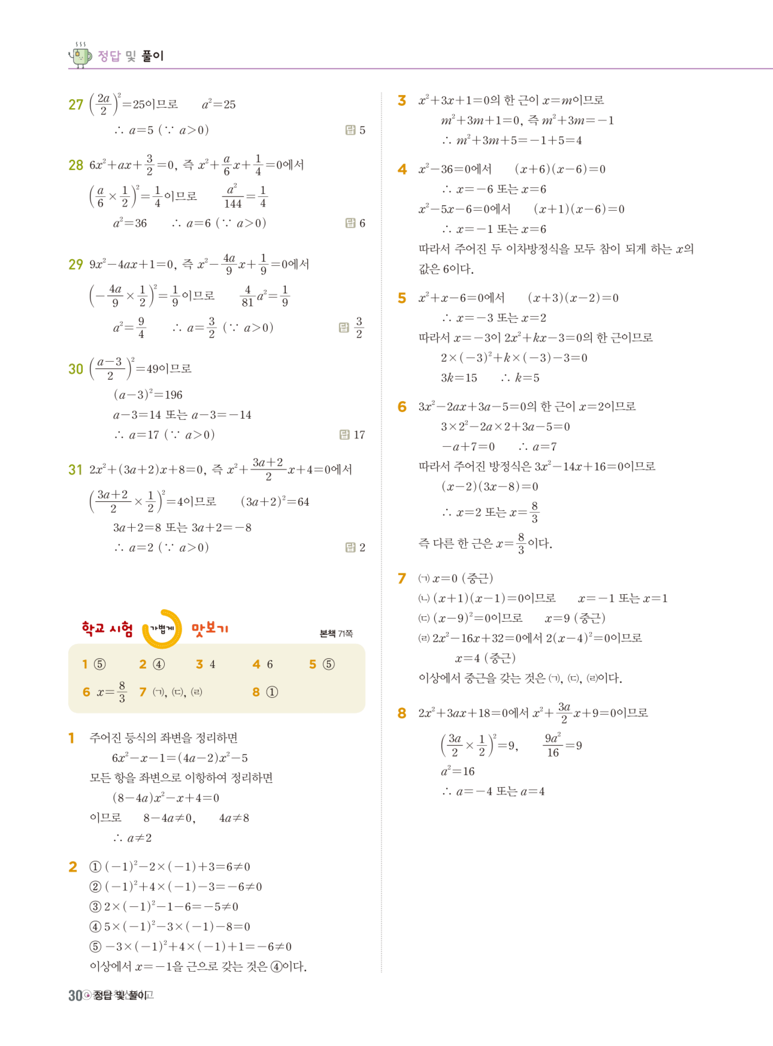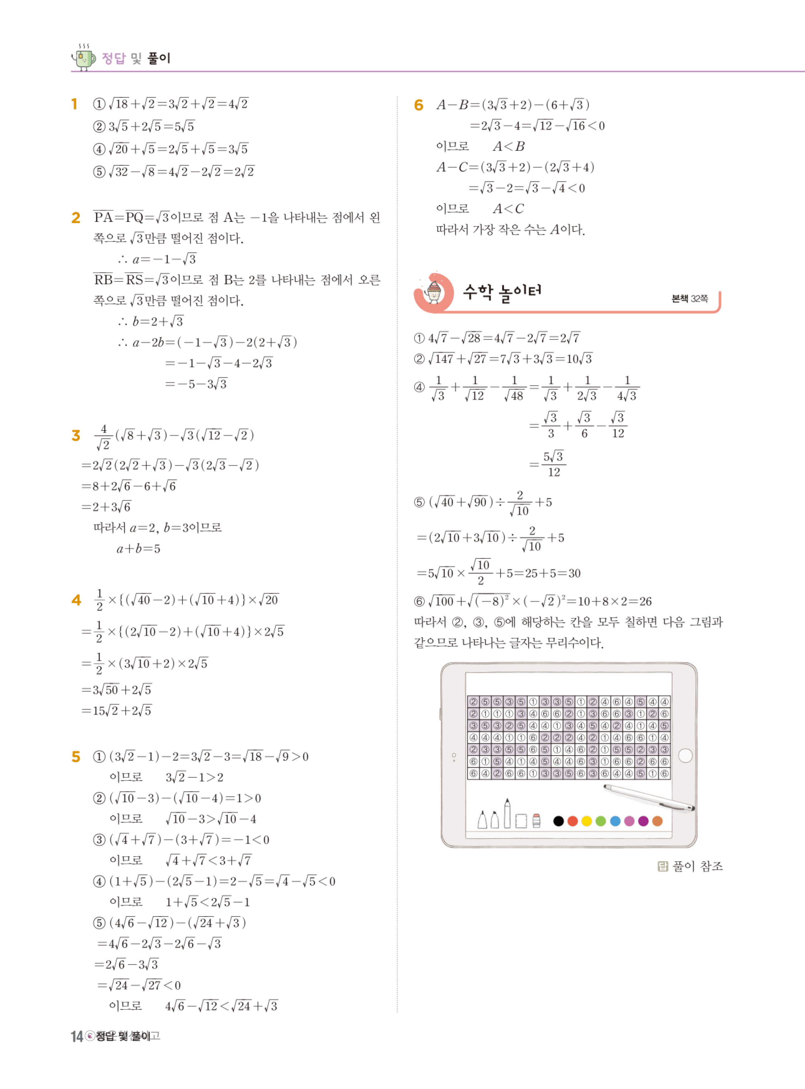 | 천재교육 이준열 중3 수학교과서 답지 | |