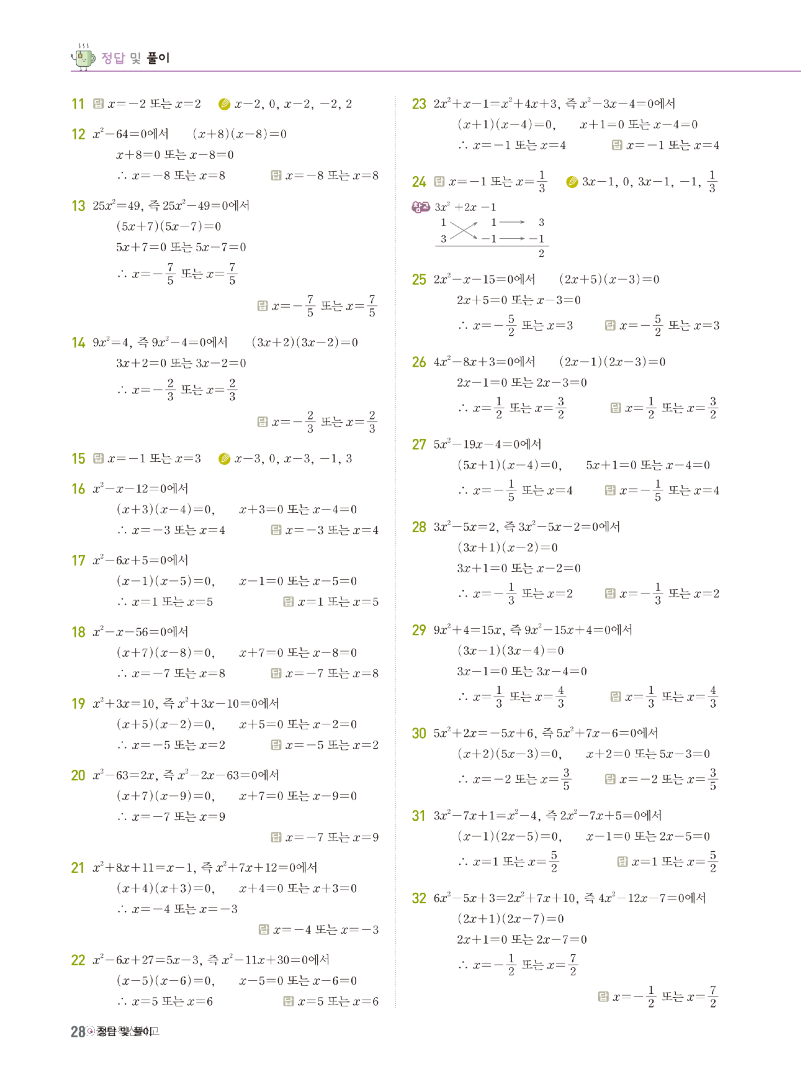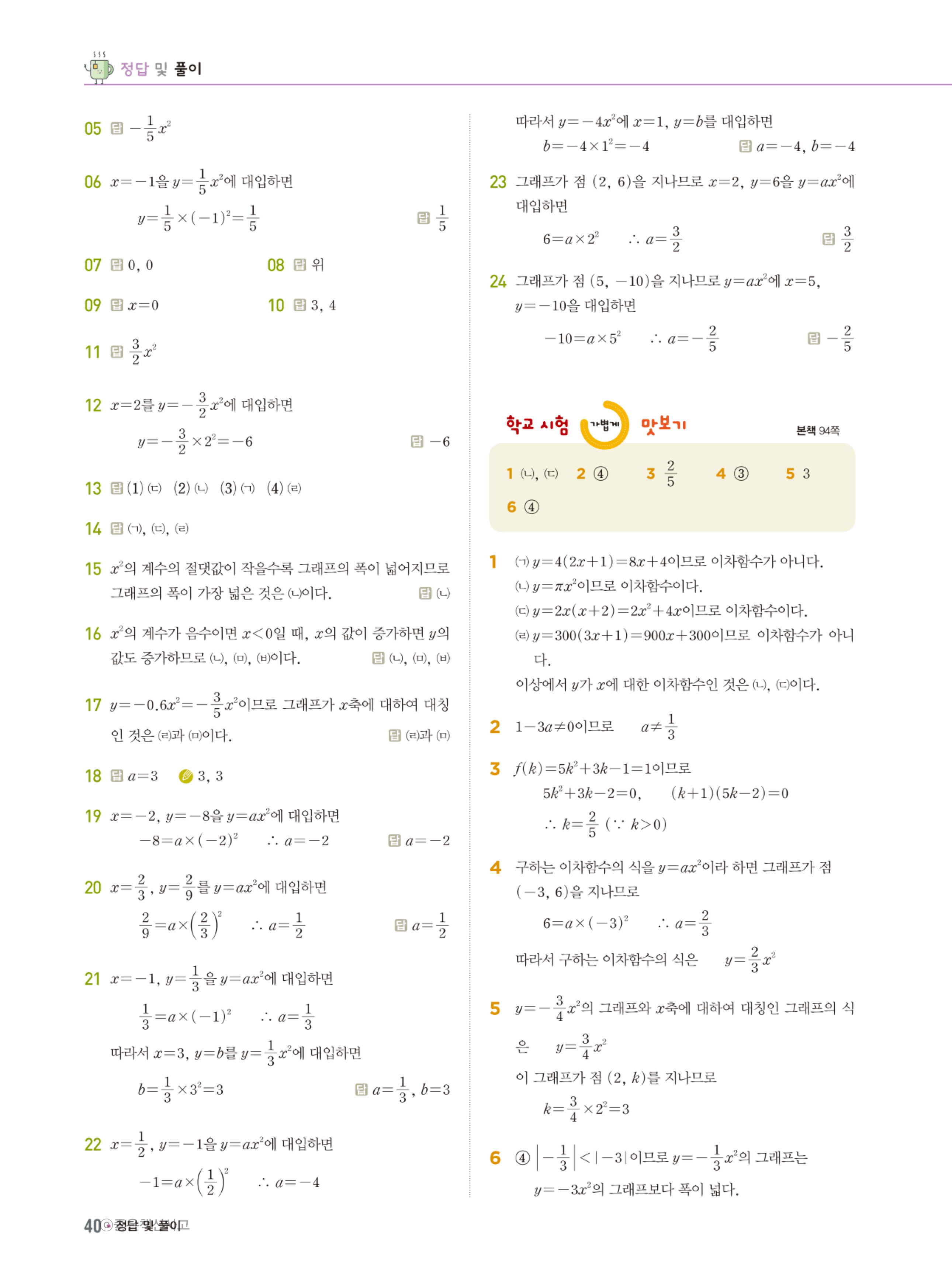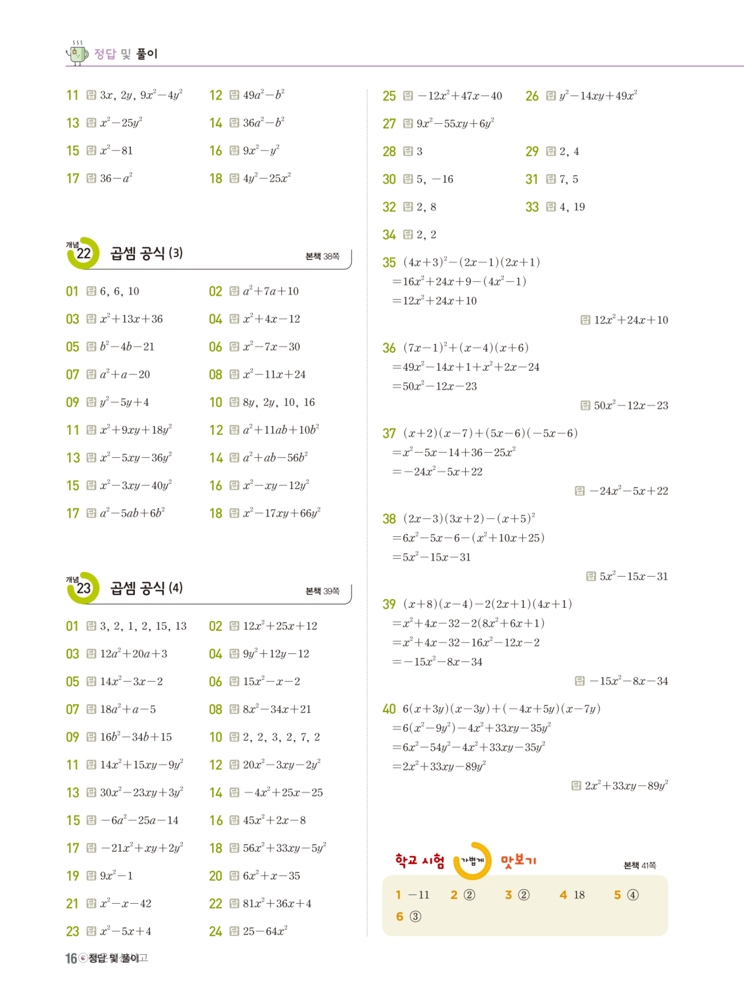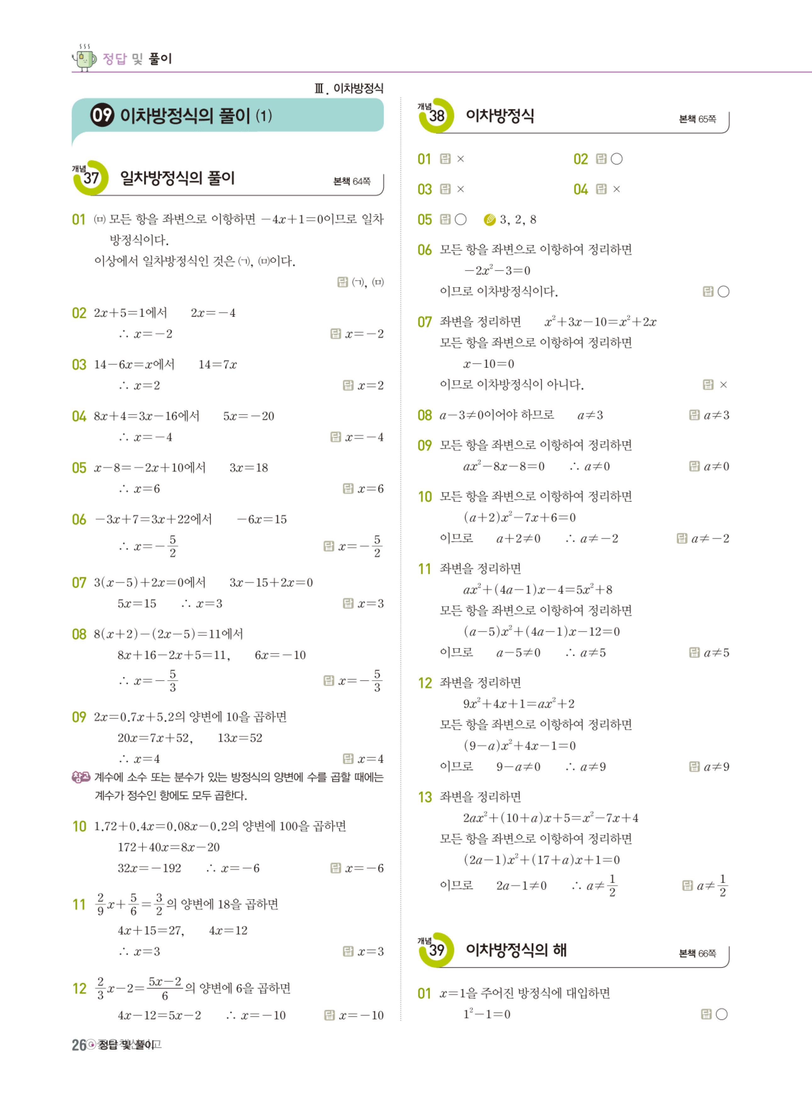 | 천재교육 이준열 중3 수학교과서 답지 | |