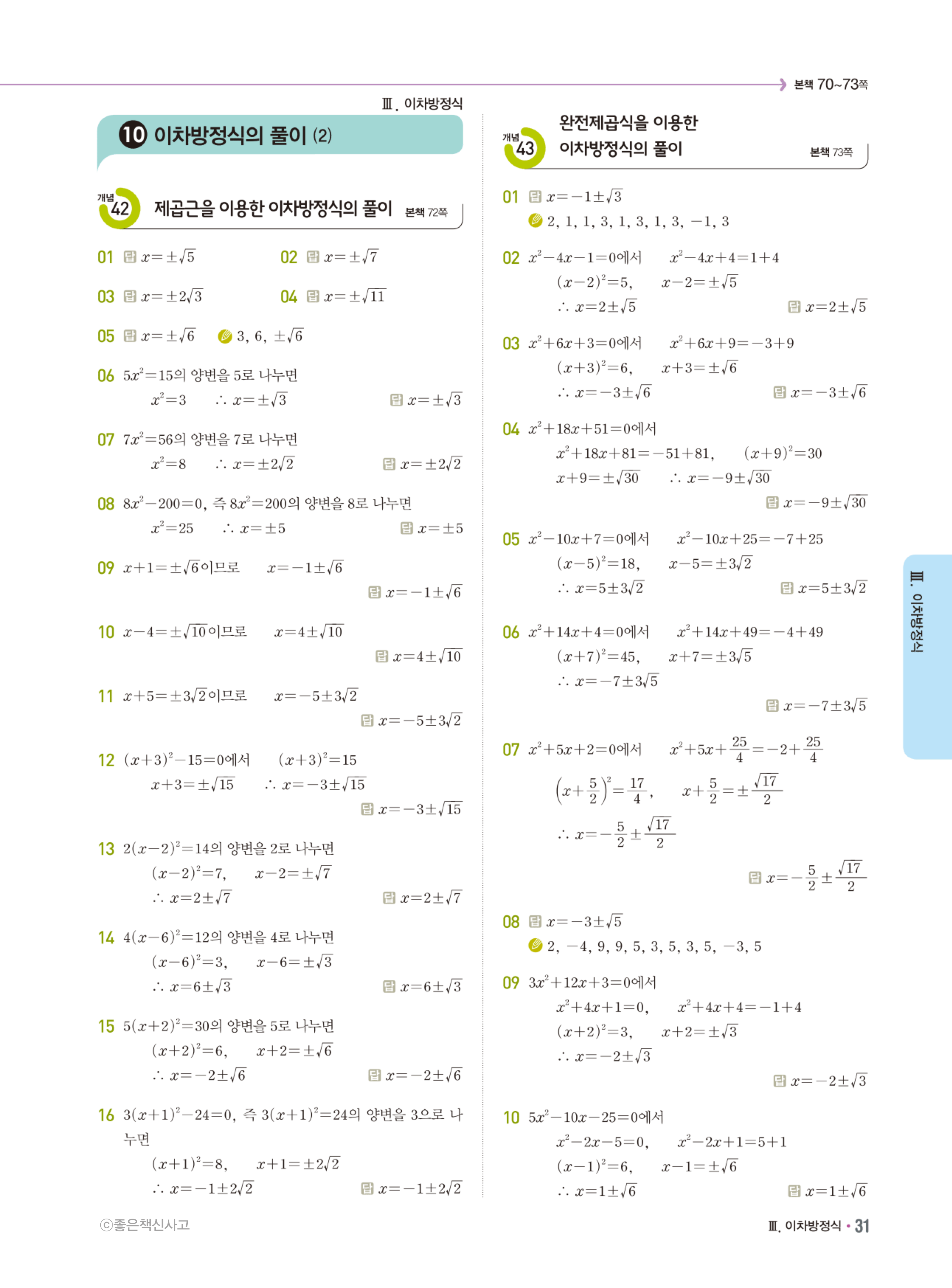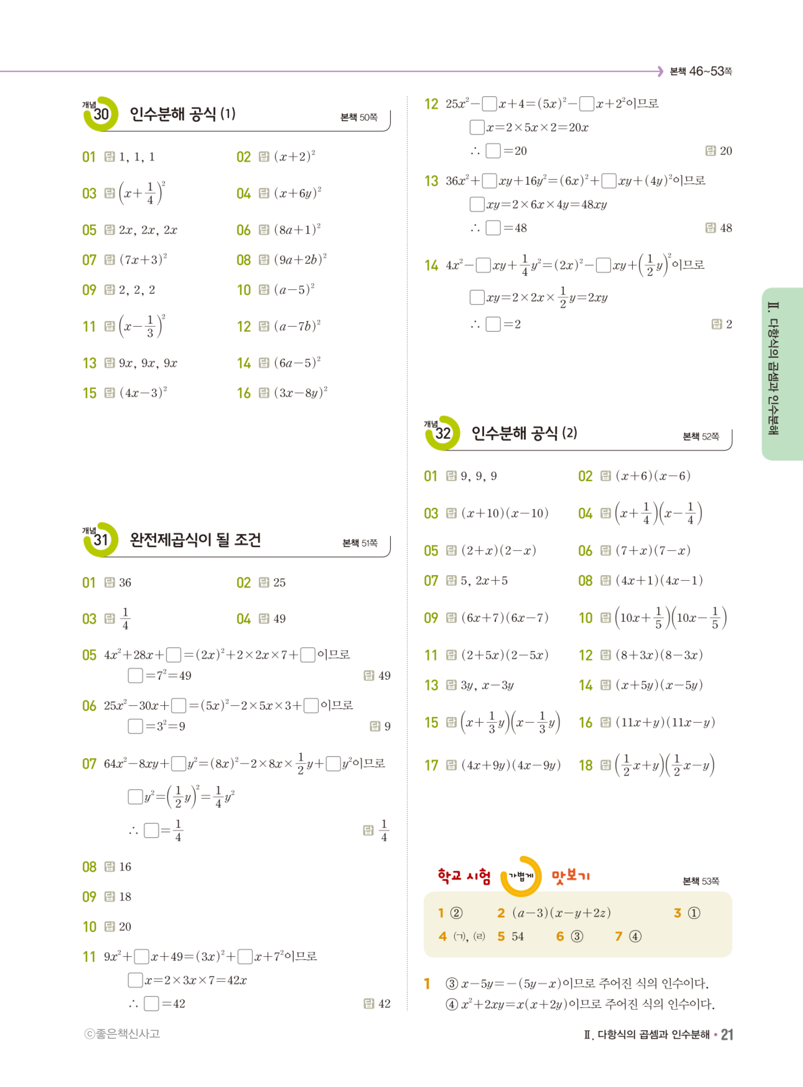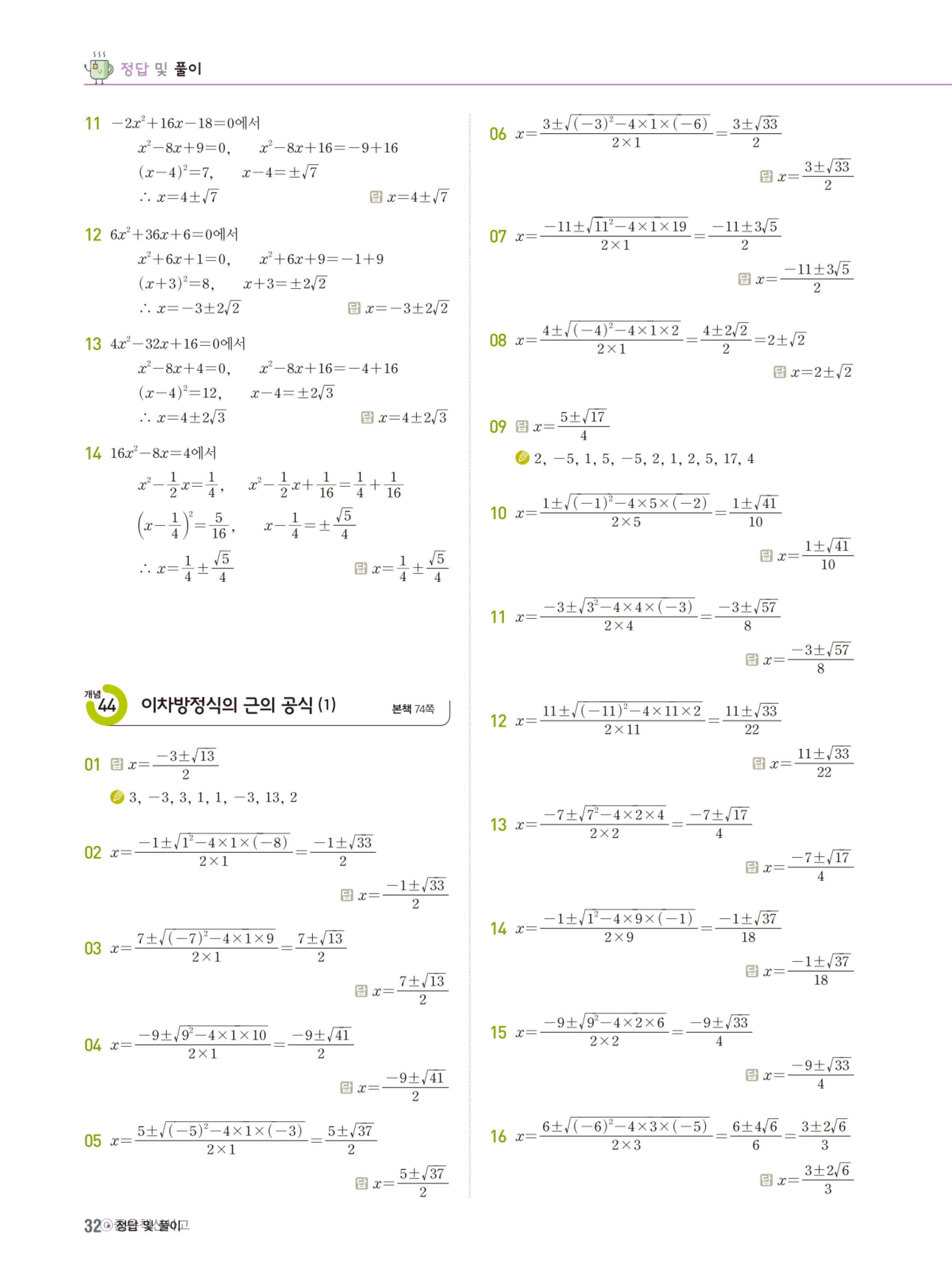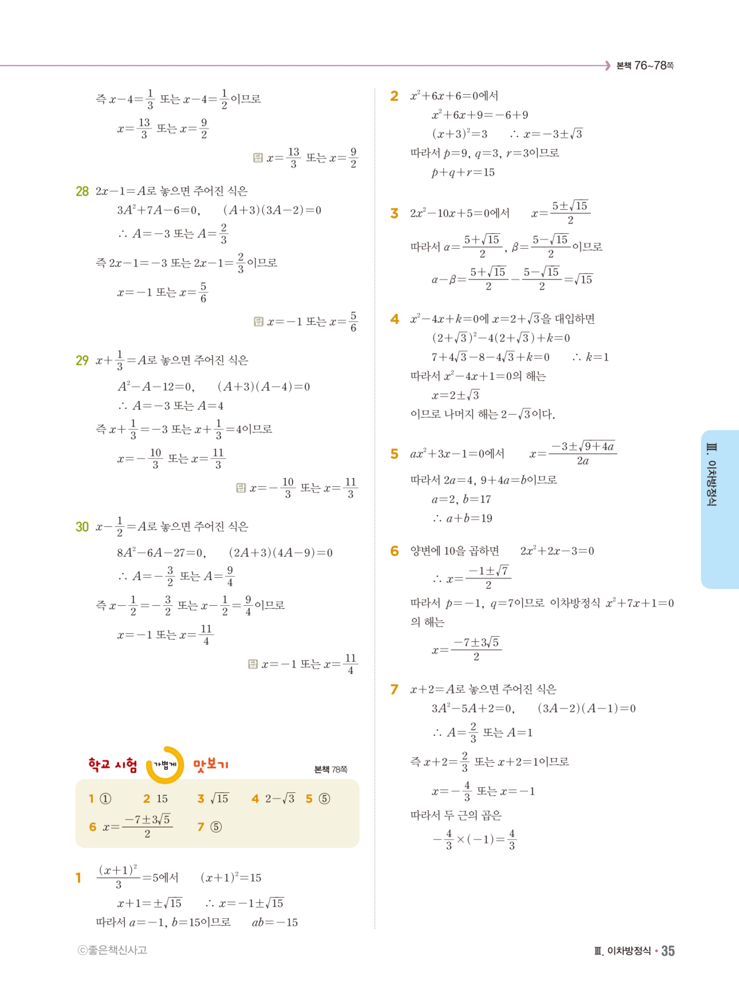 | 천재교육 이준열 중3 수학교과서 답지 | |