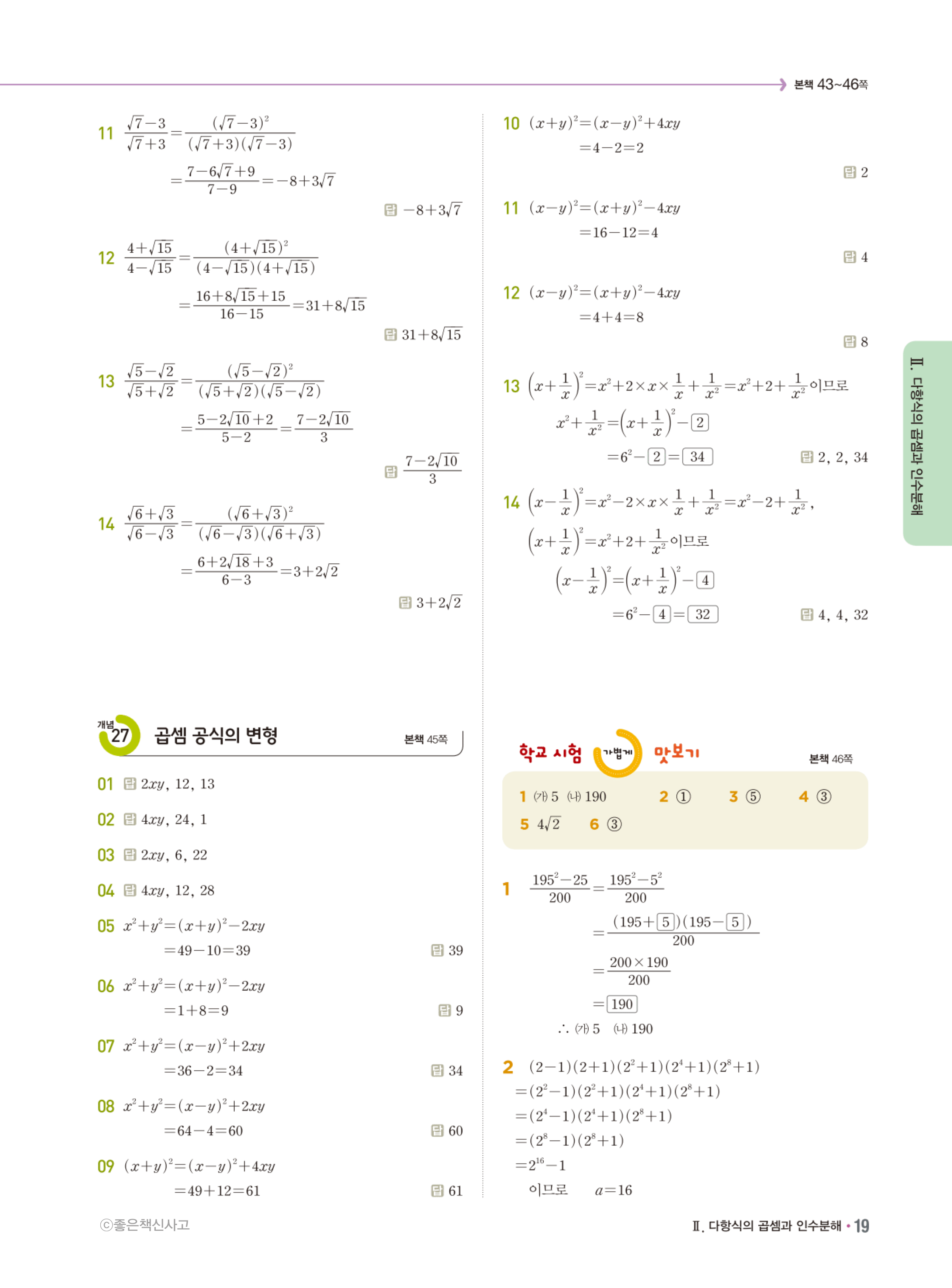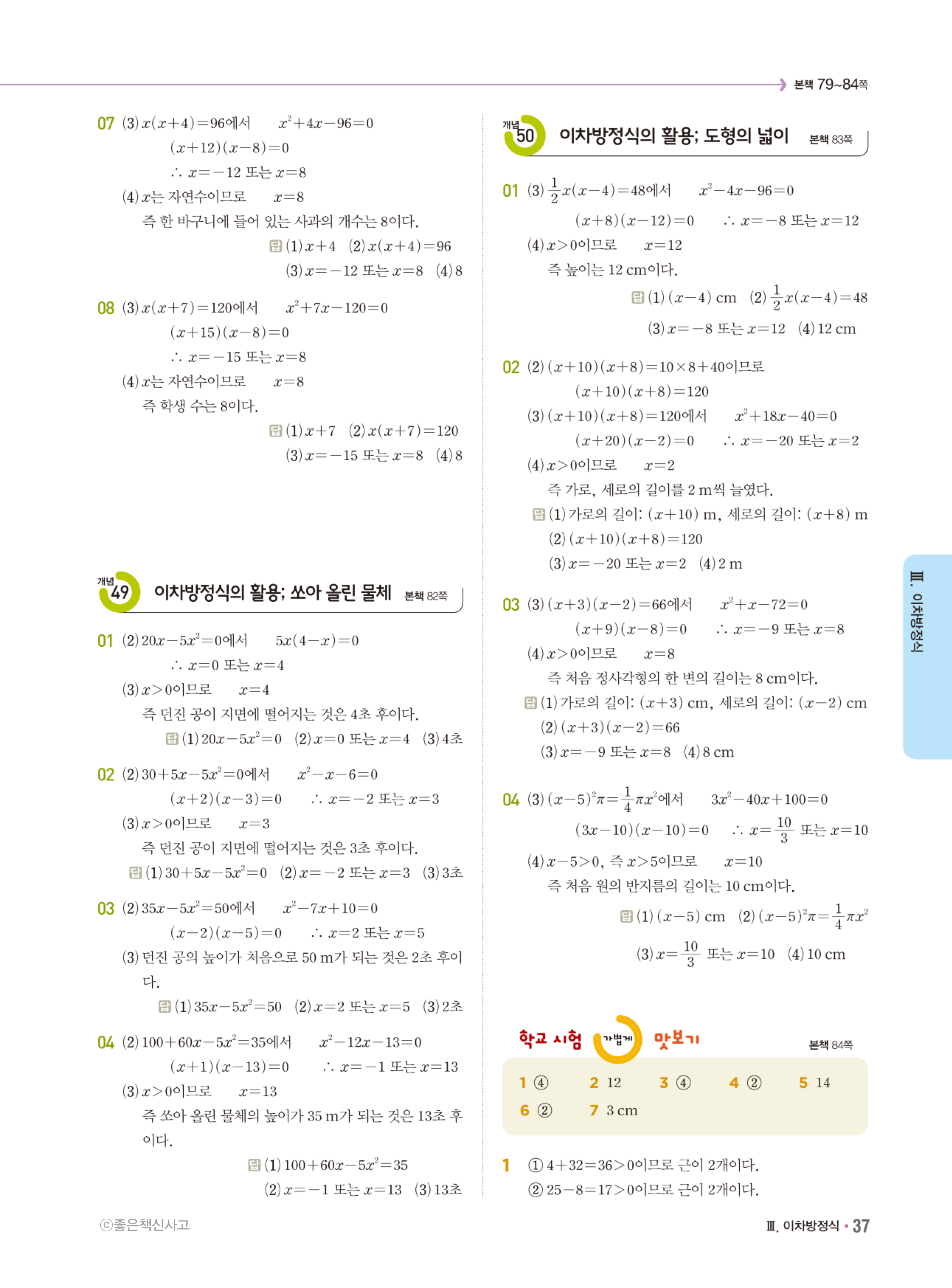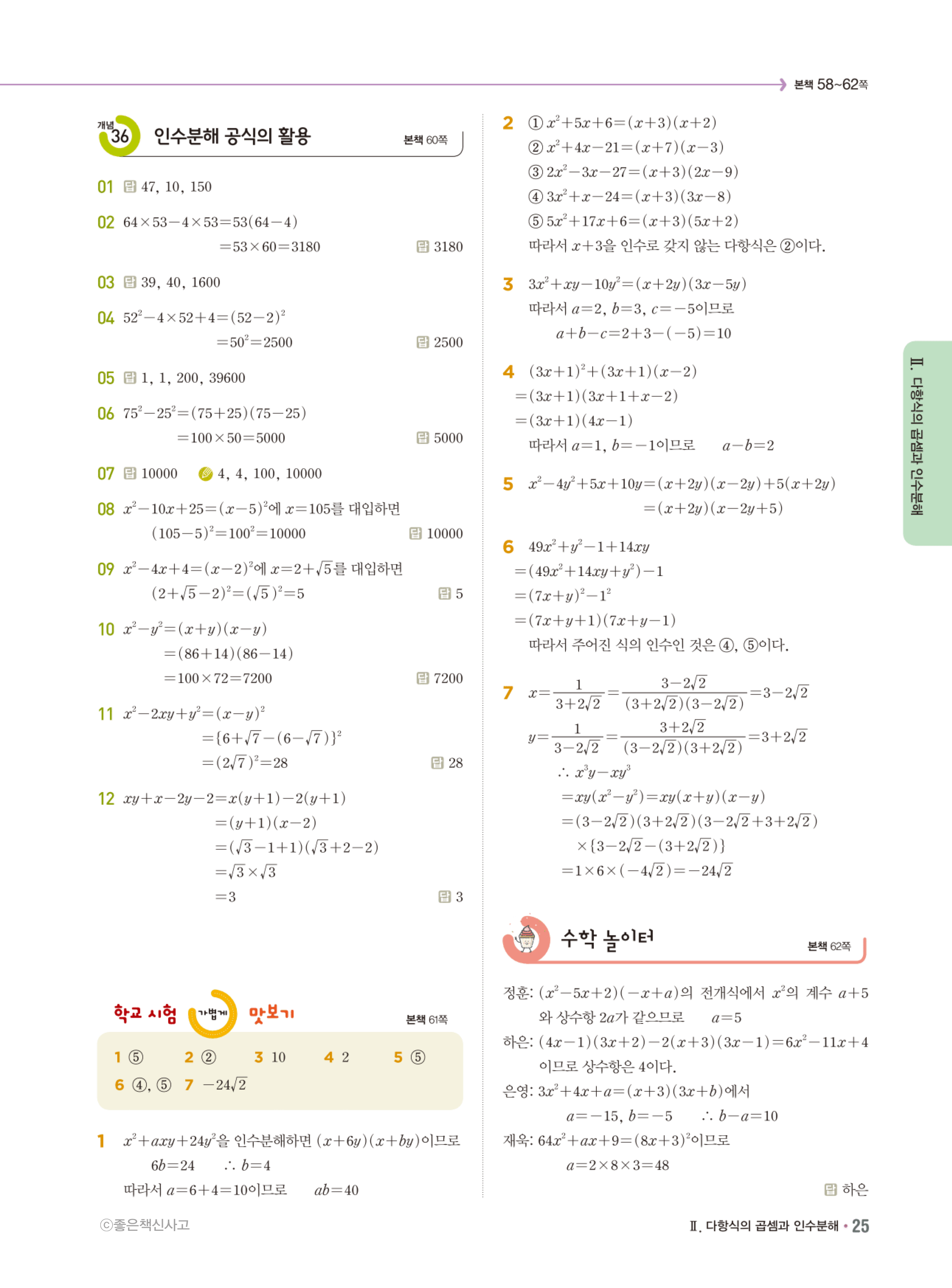 | 교학사 고호경 중3 수학교과서 답지 | |