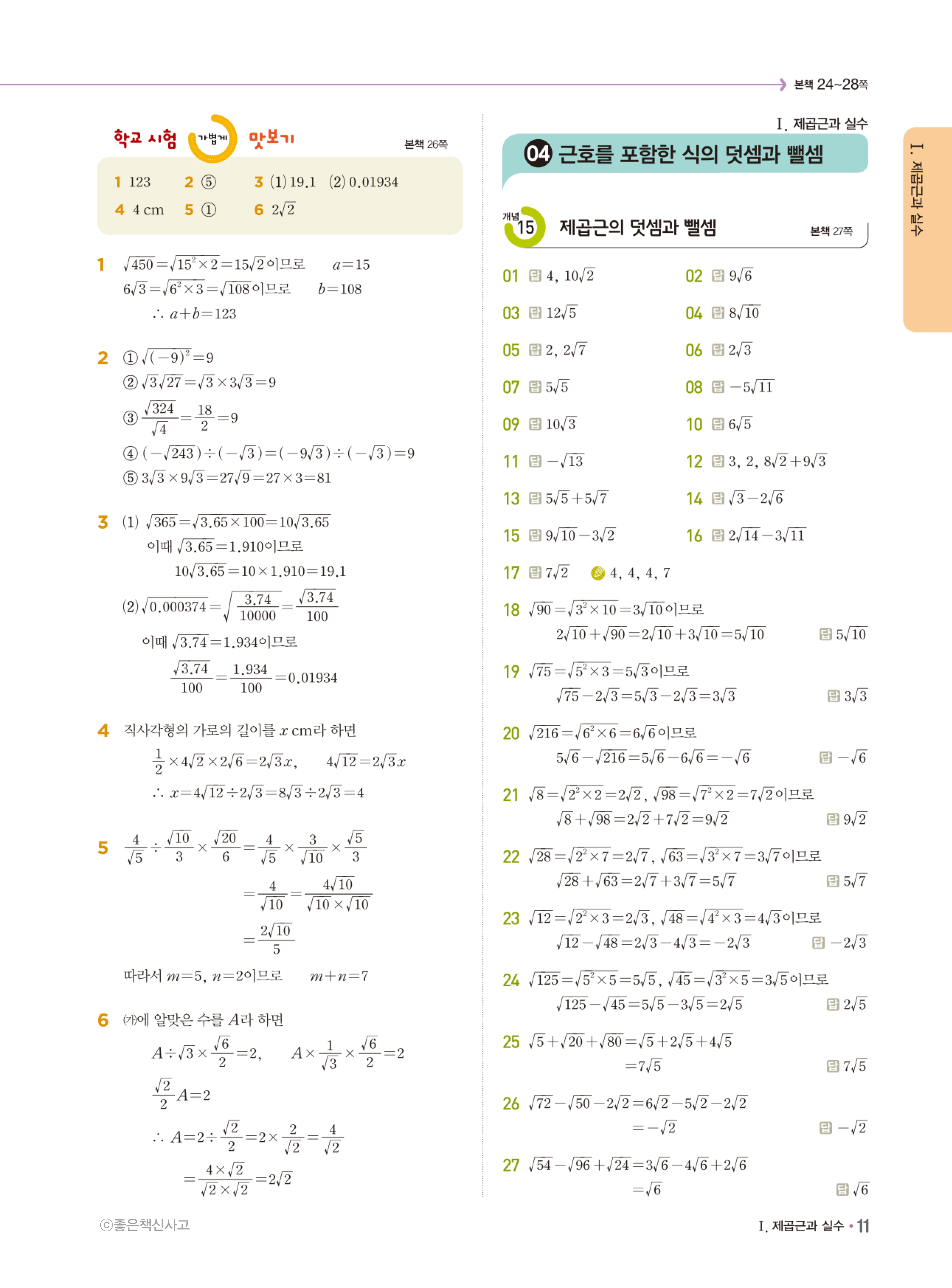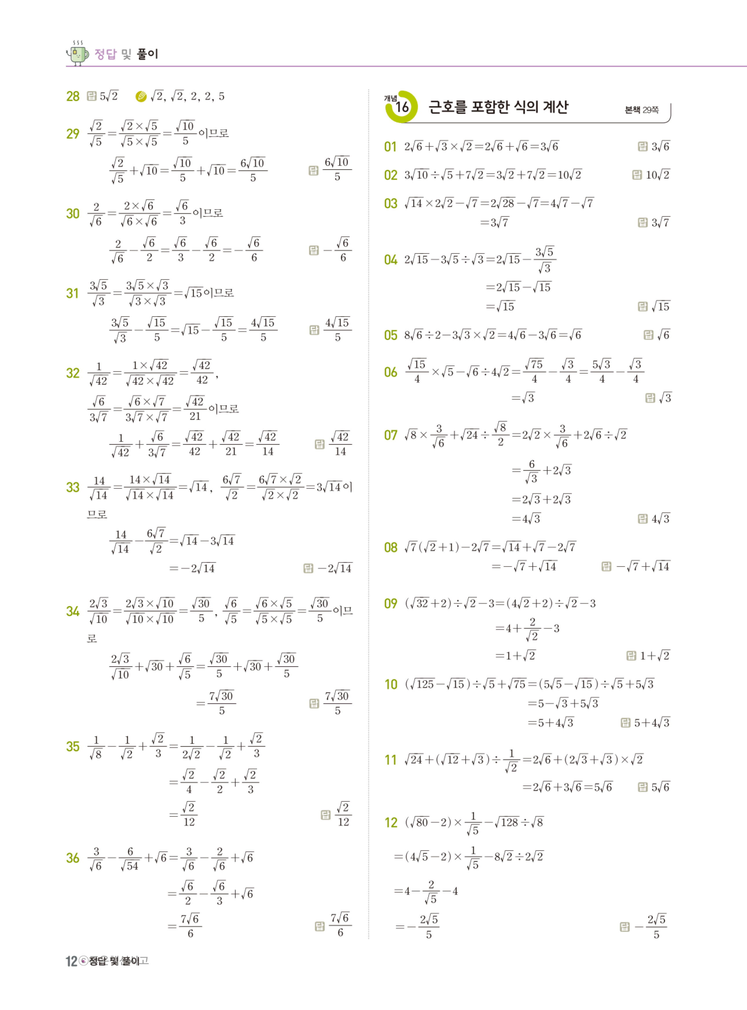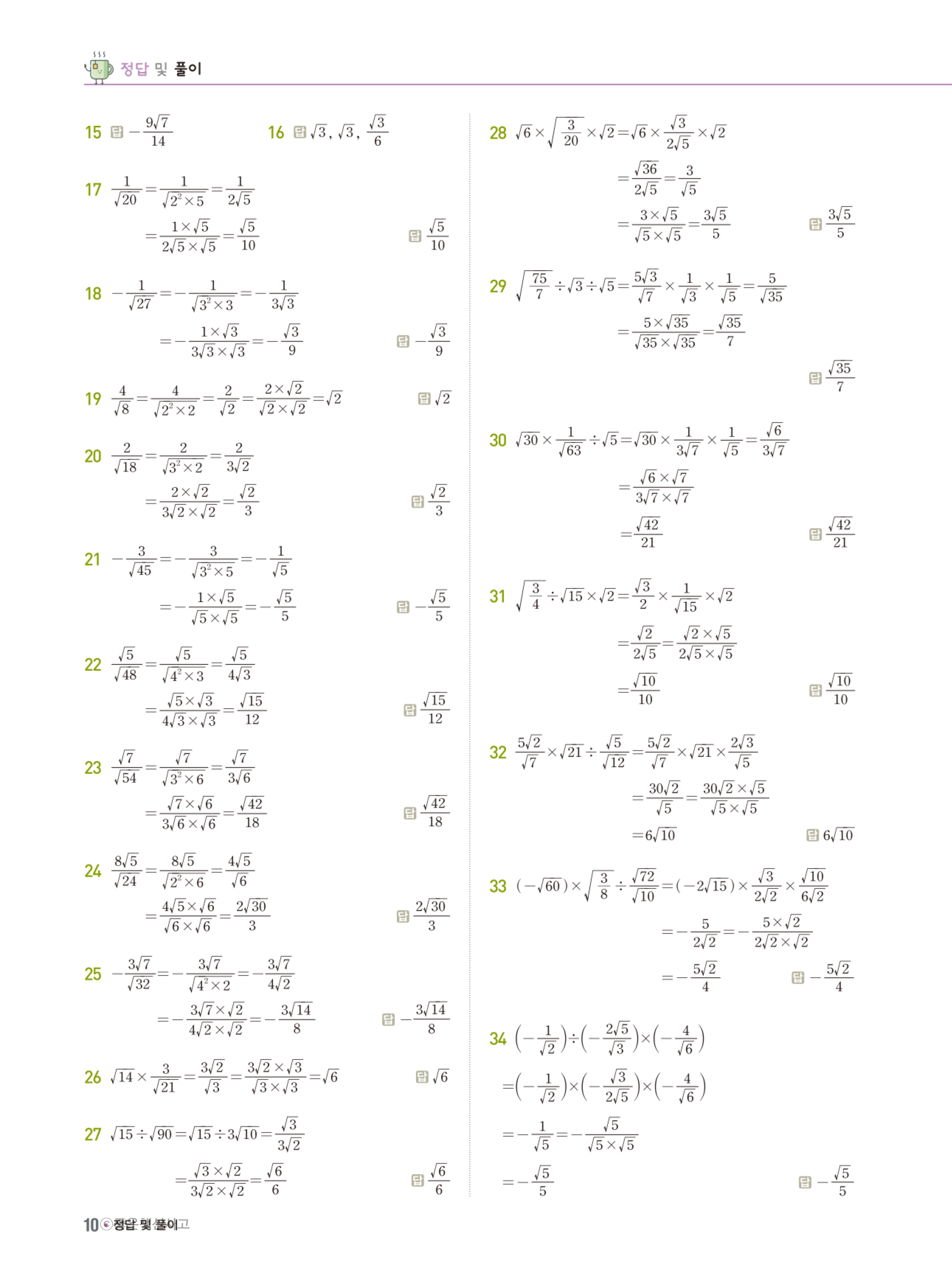 쎈연산 중3-1 답지 해설 바로보는 사진답지 빠른답지 모바일최적화