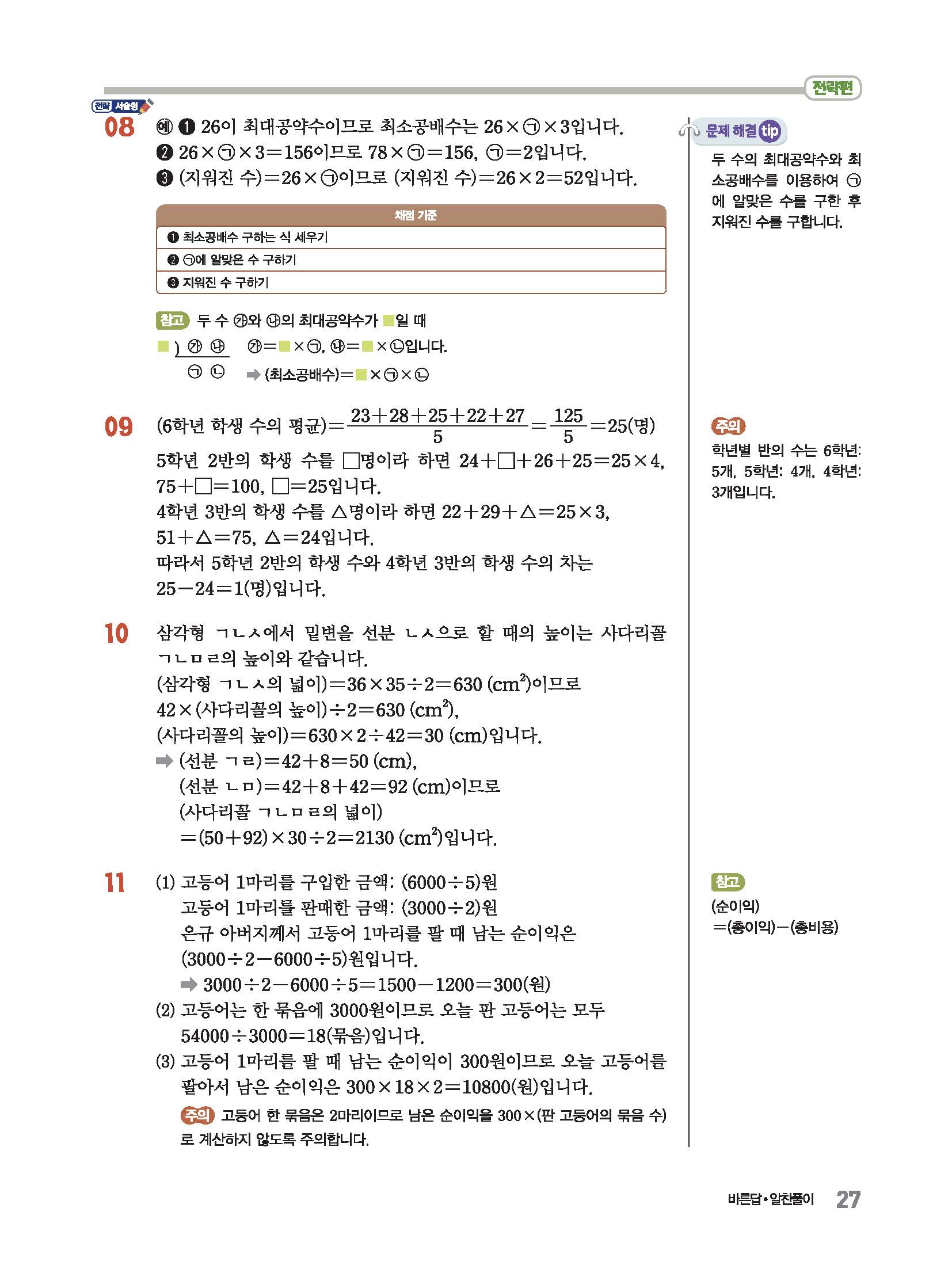 미래엔 문제 해결의 길잡이 심화 5학년 답지 사진답지 빠른답지 모바일최적화