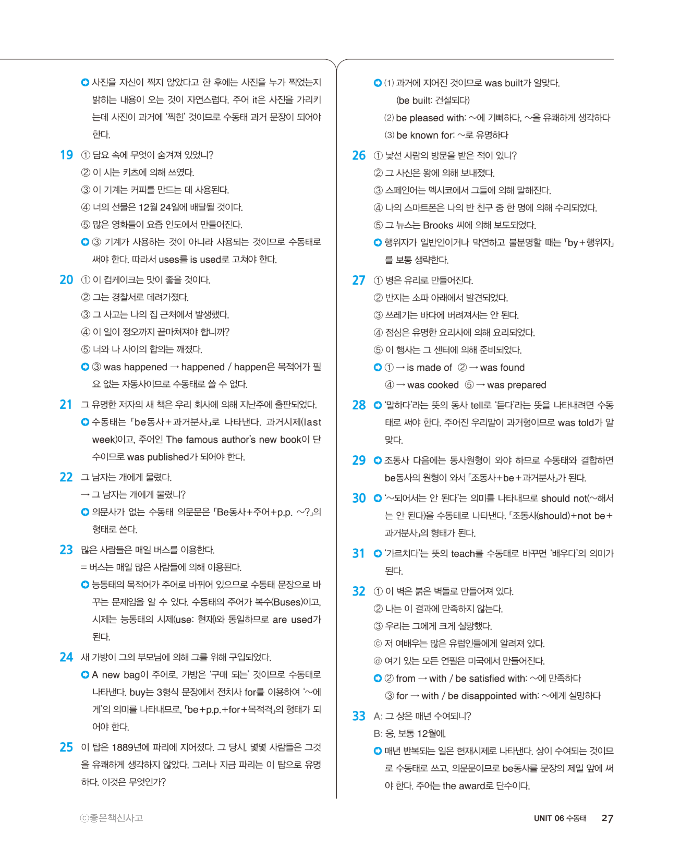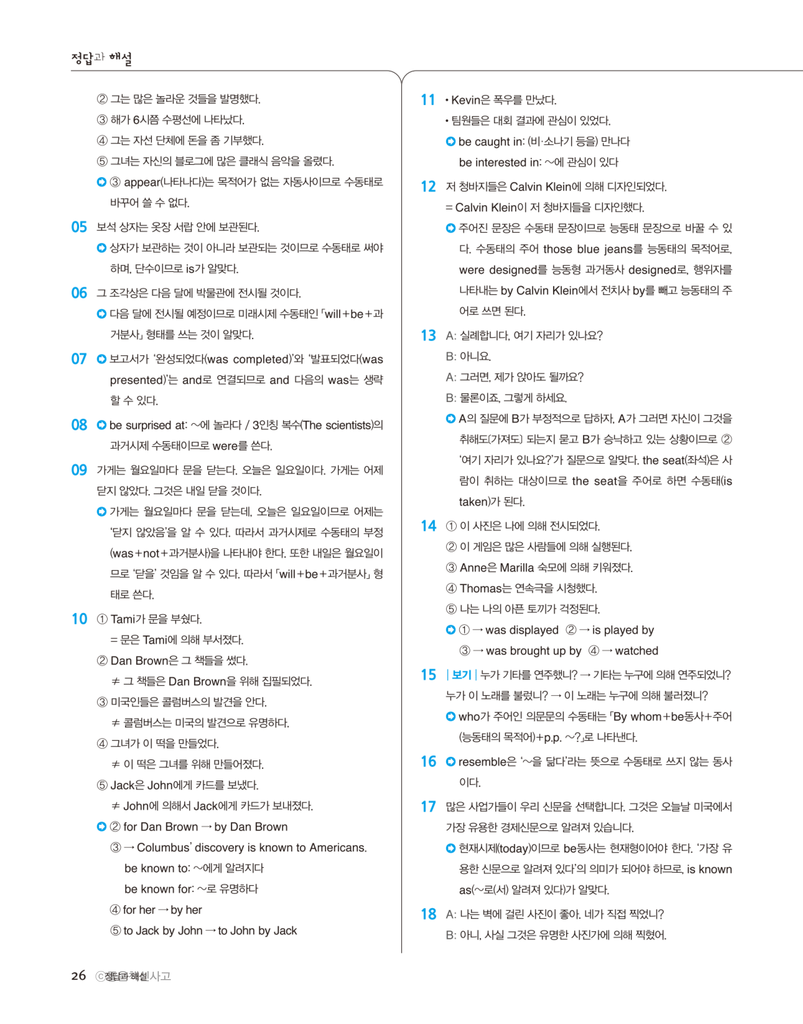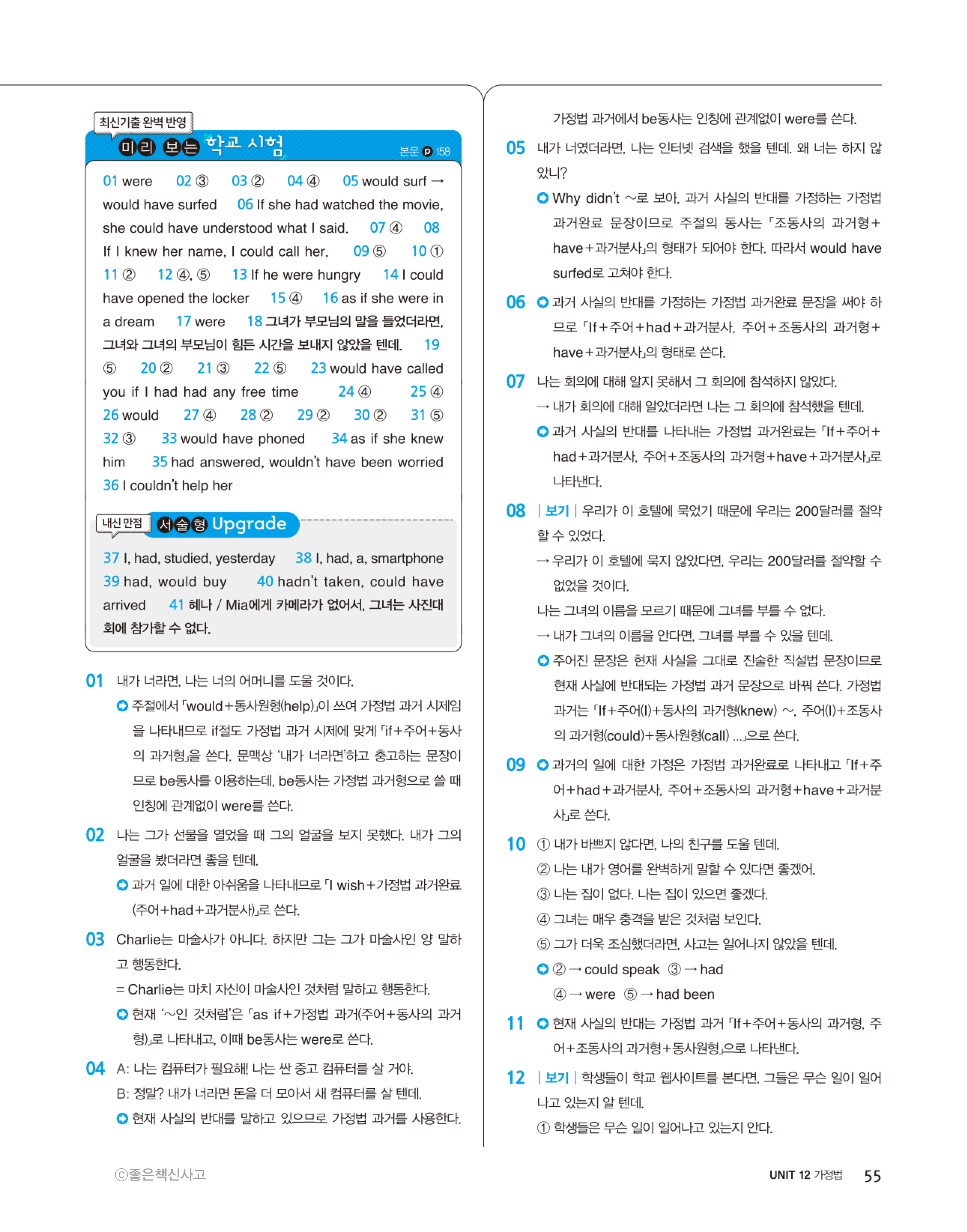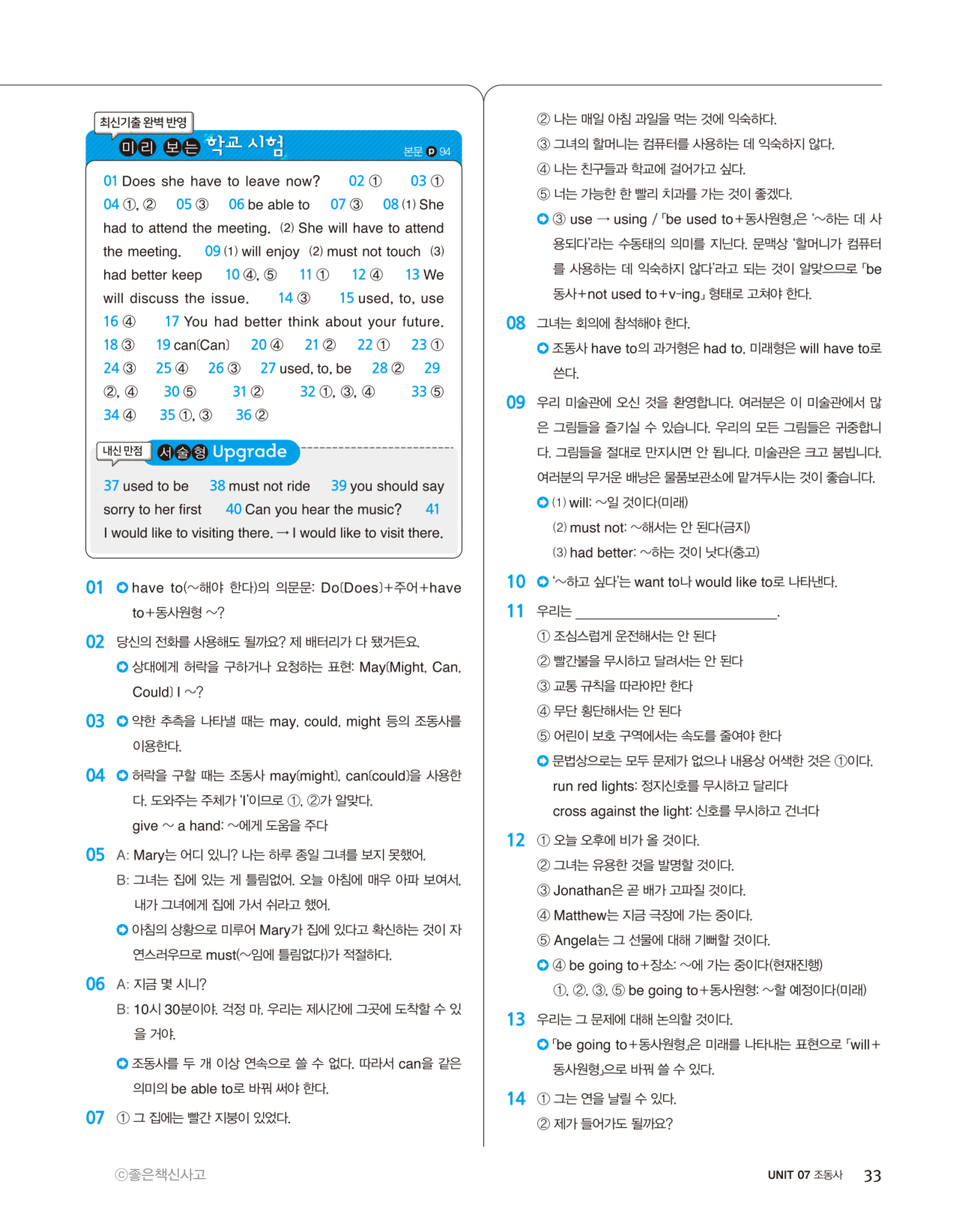 학교 시험에 자주 출제되는 문제 유형과 최신 기출 유형을 분석하여 동일 유형의 문제들로 구성하였습니다. 실제 학교 시험에 출제되는 유형의 문제를 통해 학습한 문법 사항이 실제로는 어떻게 출제되는지 파악할 수 있습니다.