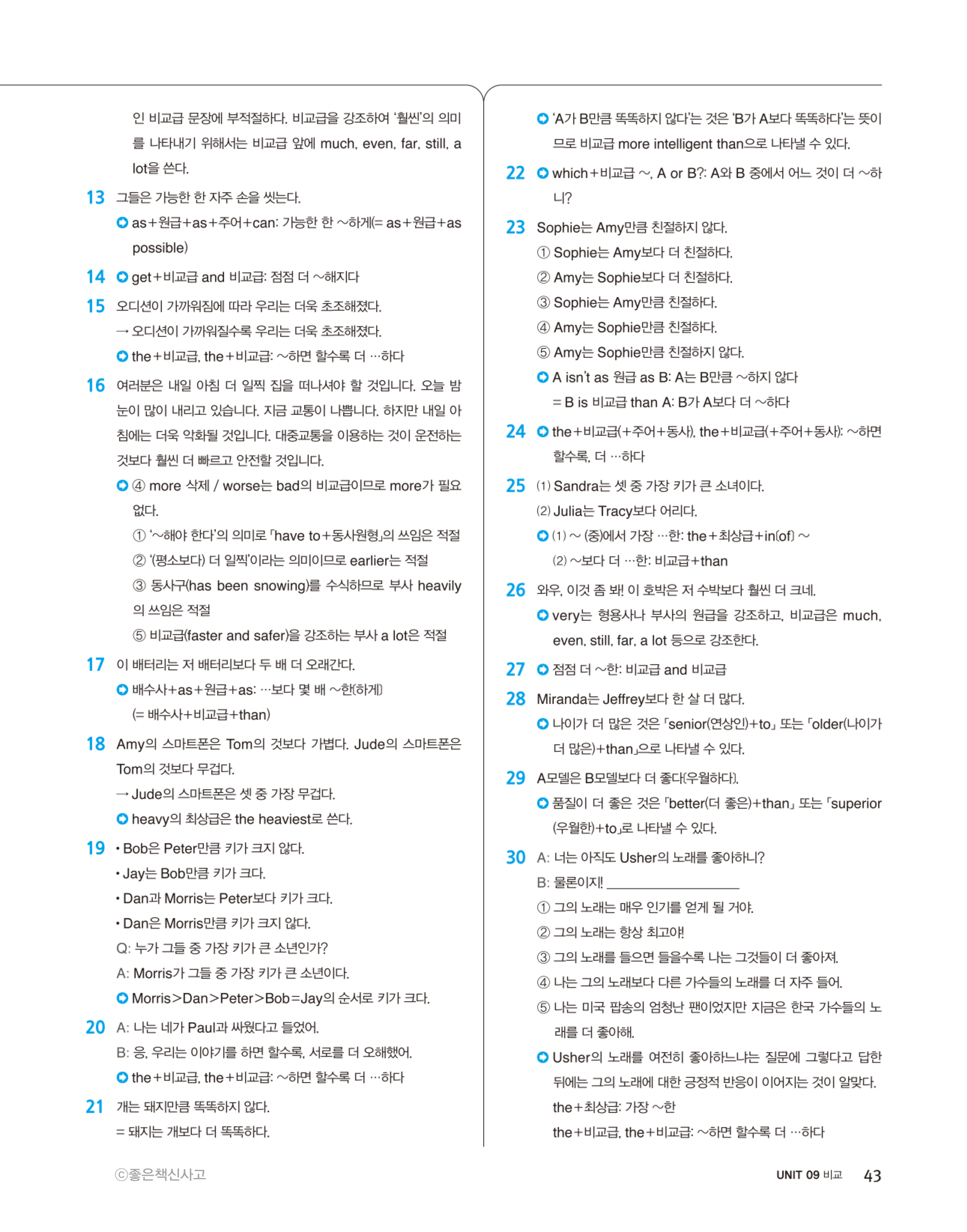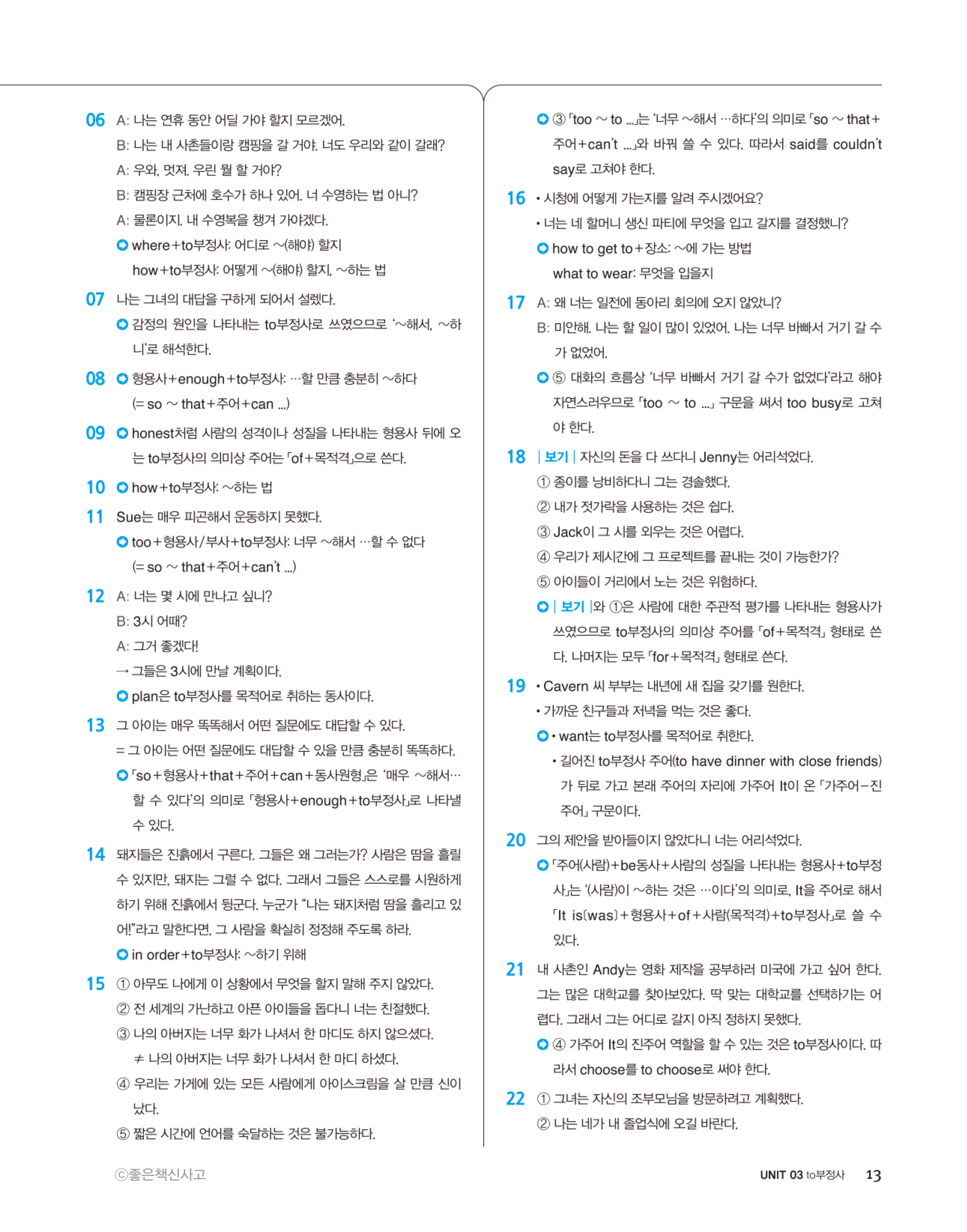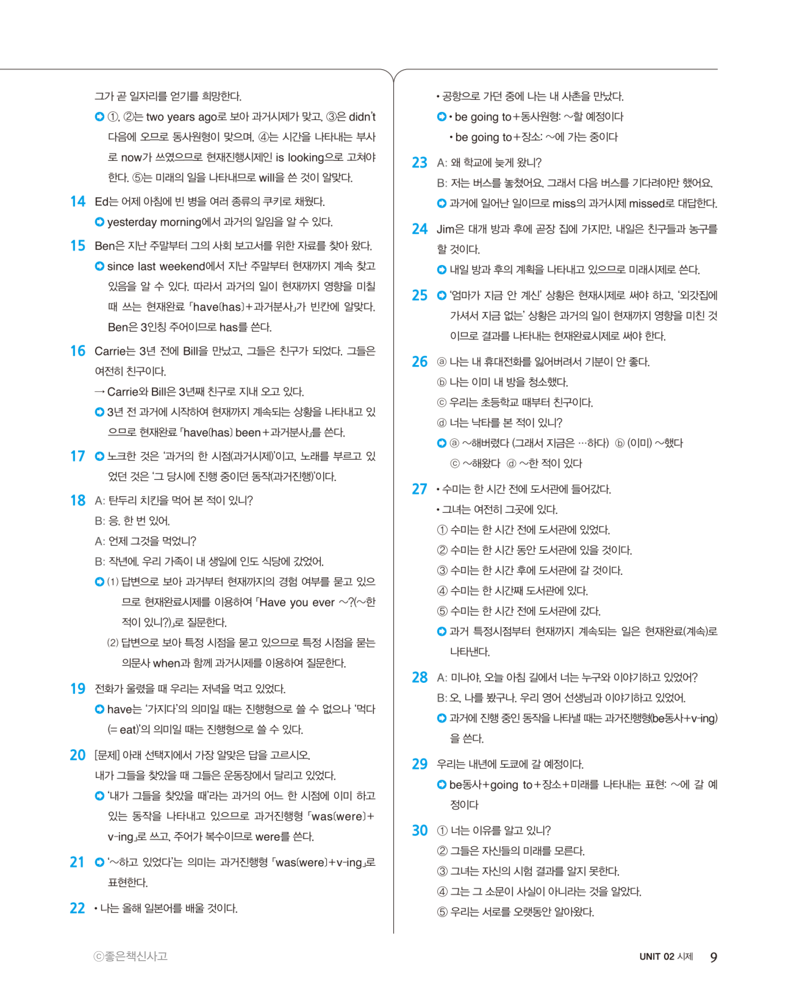 각 UNIT 마무리 페이지에 학교 시험에 반드시 출제되는 POINT만을 선별하여 정리하였습니다. 시험 직전에 빠르게 훑어보며 주요 문법 사항을 정리할 수 있습니다.