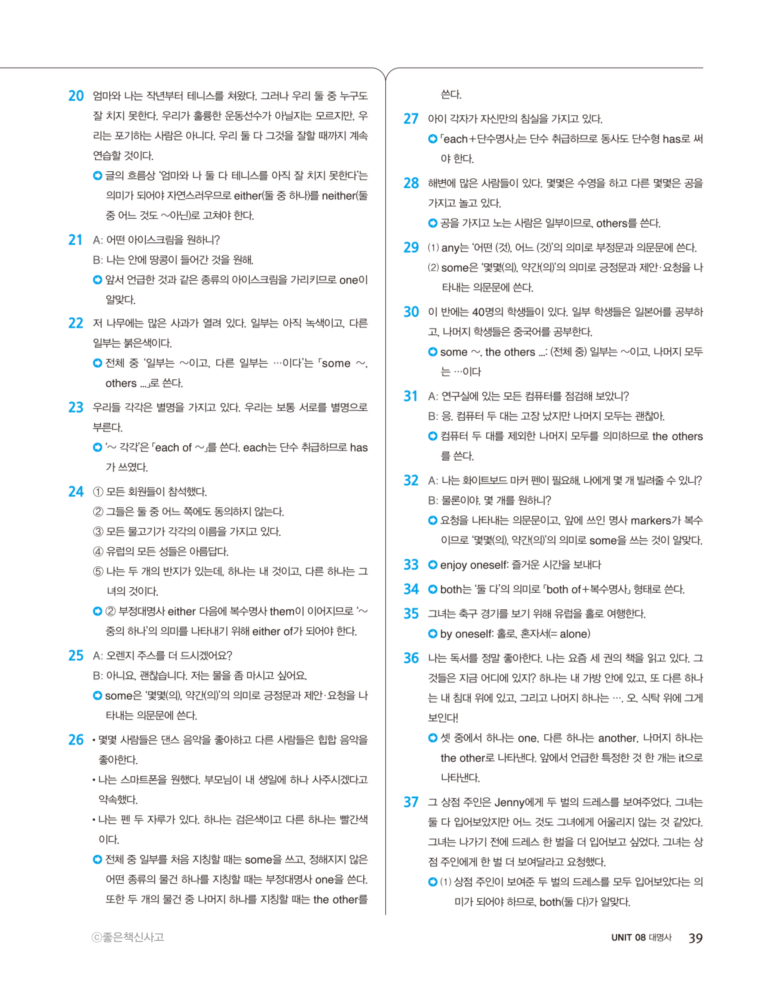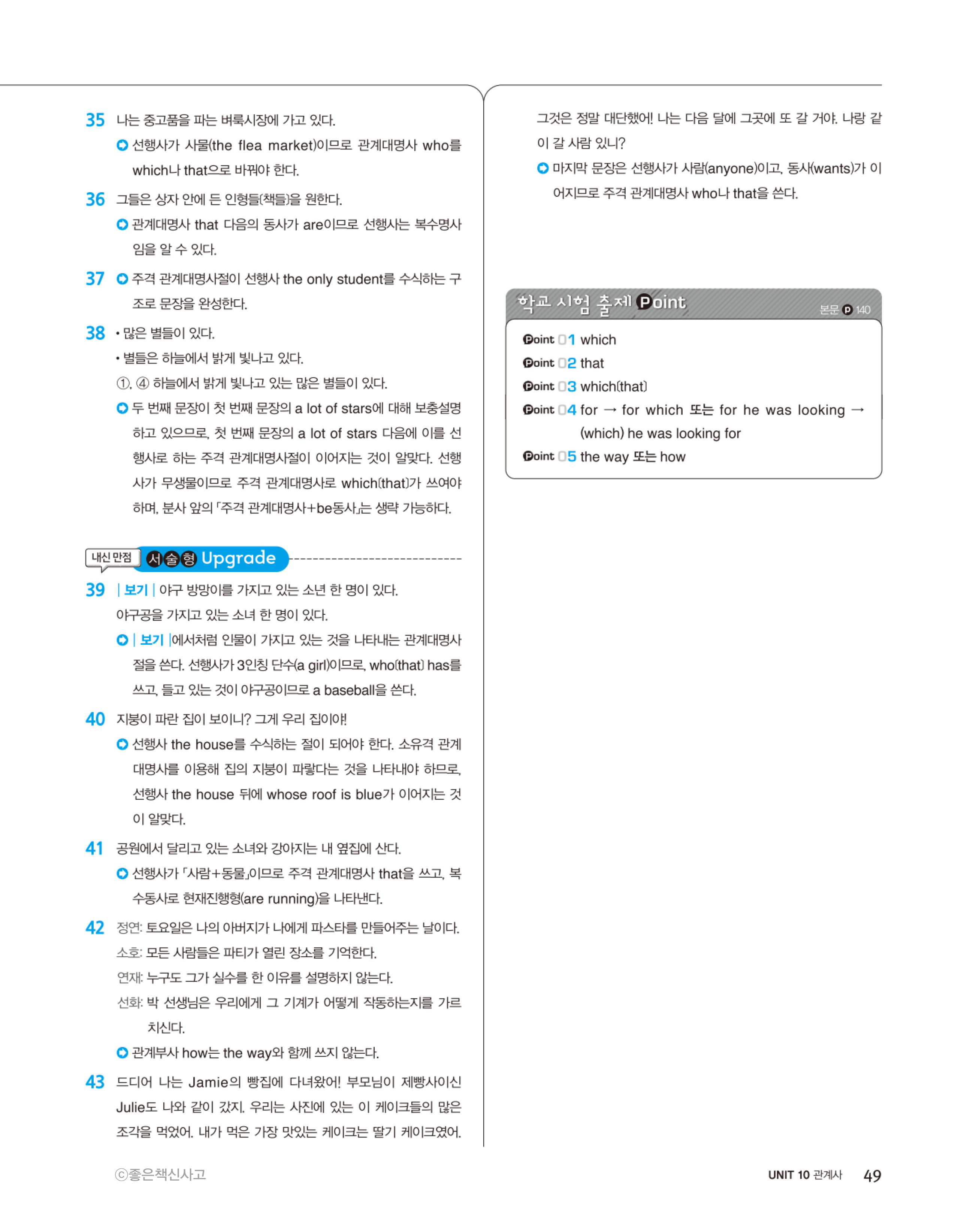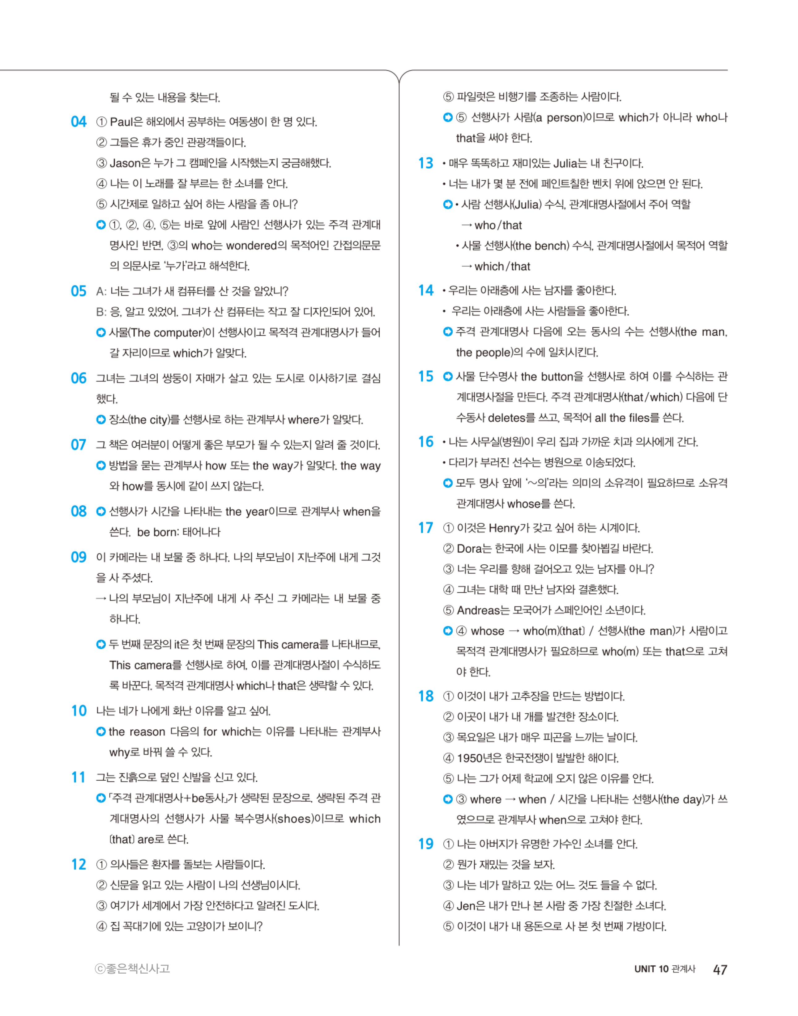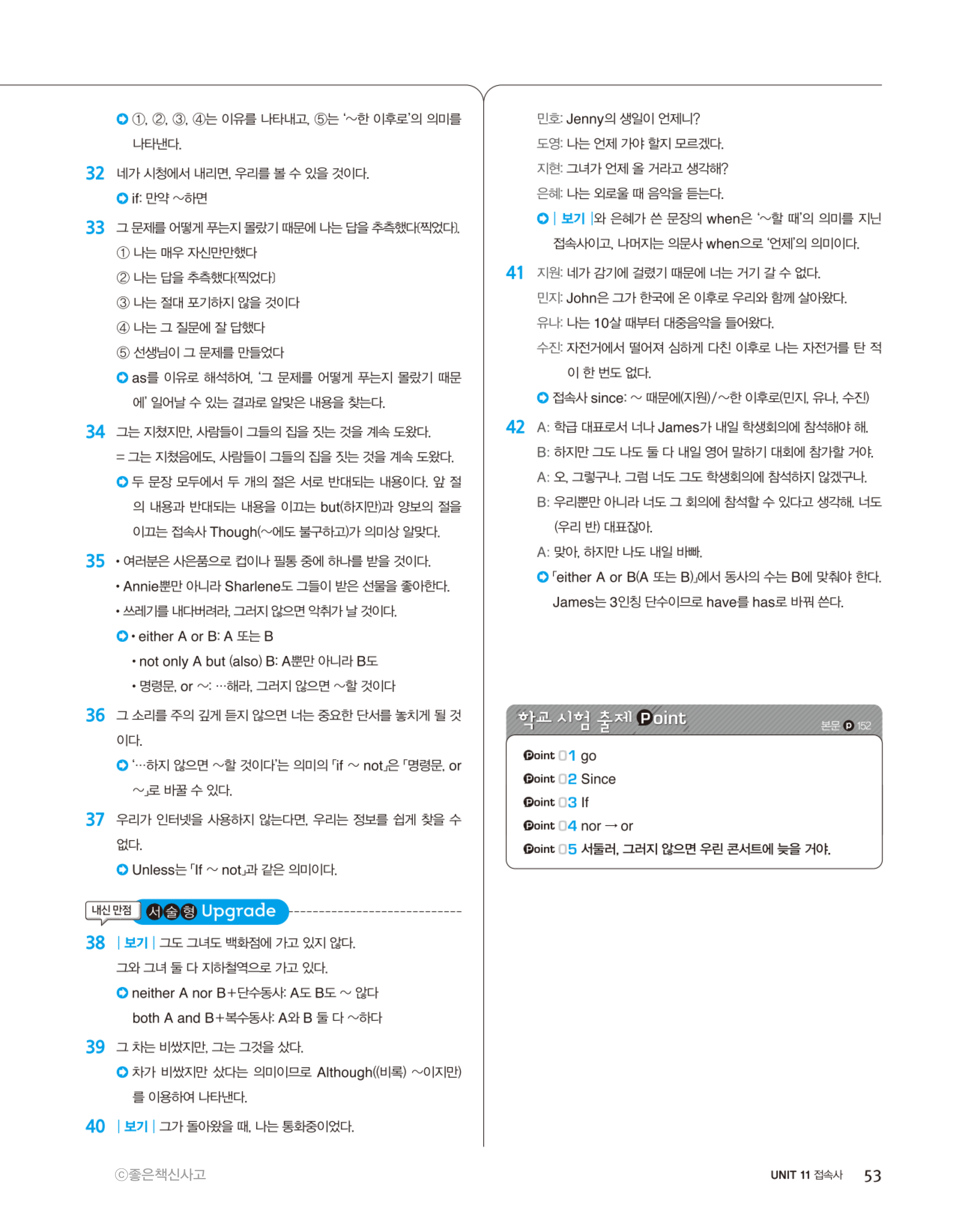 각 UNIT 마무리 페이지에 학교 시험에 반드시 출제되는 POINT만을 선별하여 정리하였습니다. 시험 직전에 빠르게 훑어보며 주요 문법 사항을 정리할 수 있습니다.