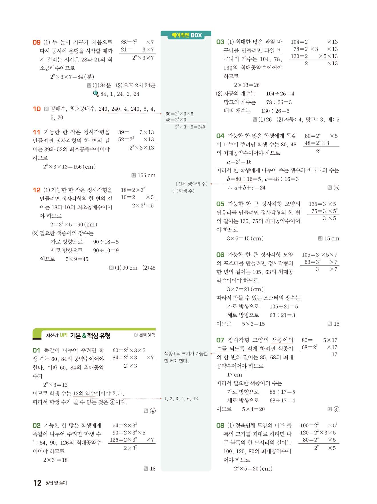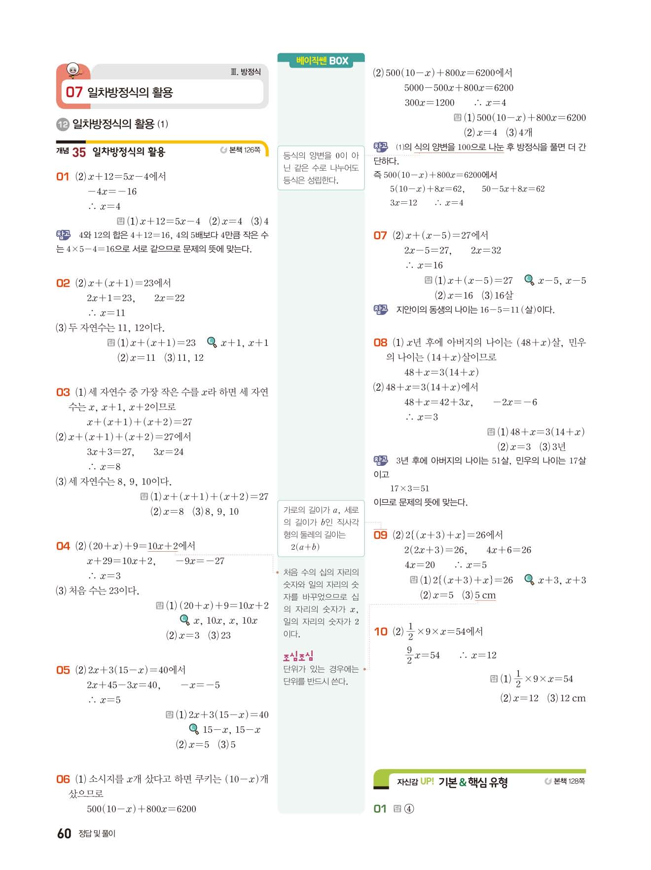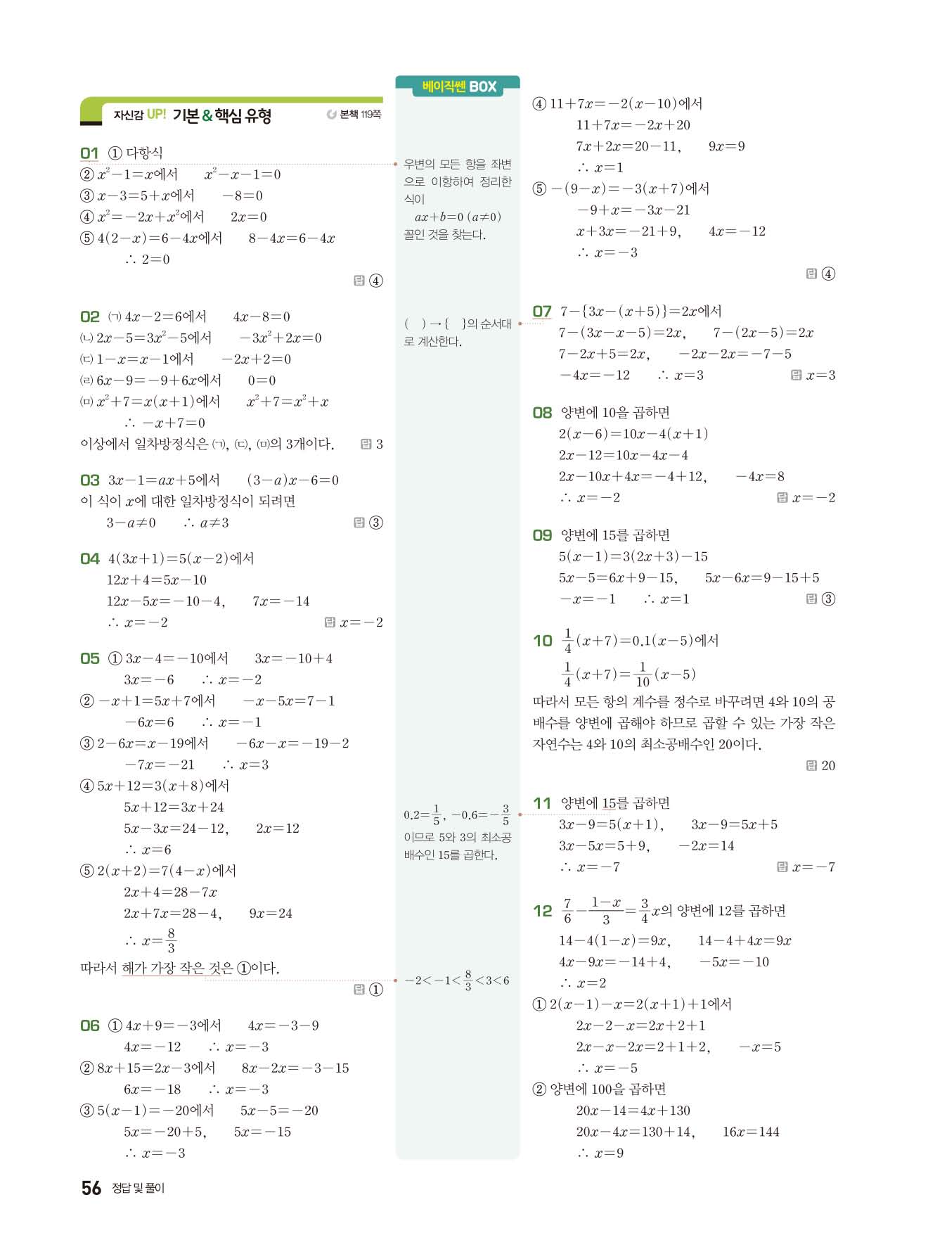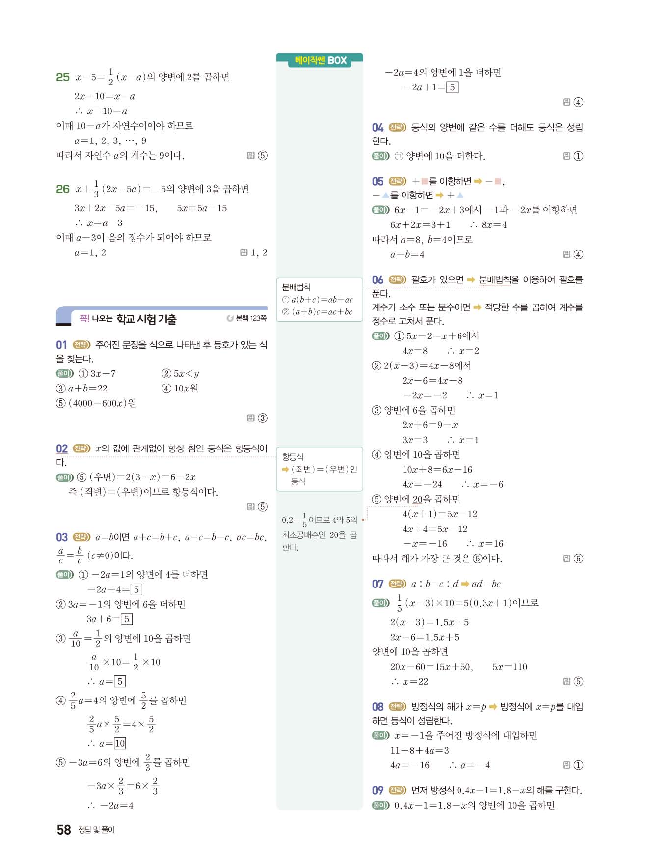 베이직쎈 중1상 답지 해설지 사진답지 빠른답지 모바일최적화