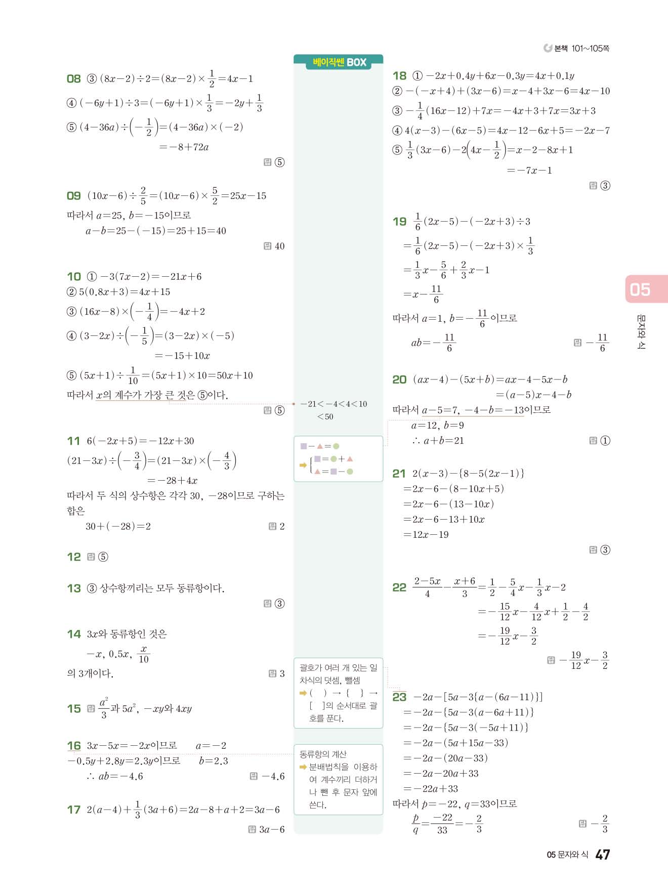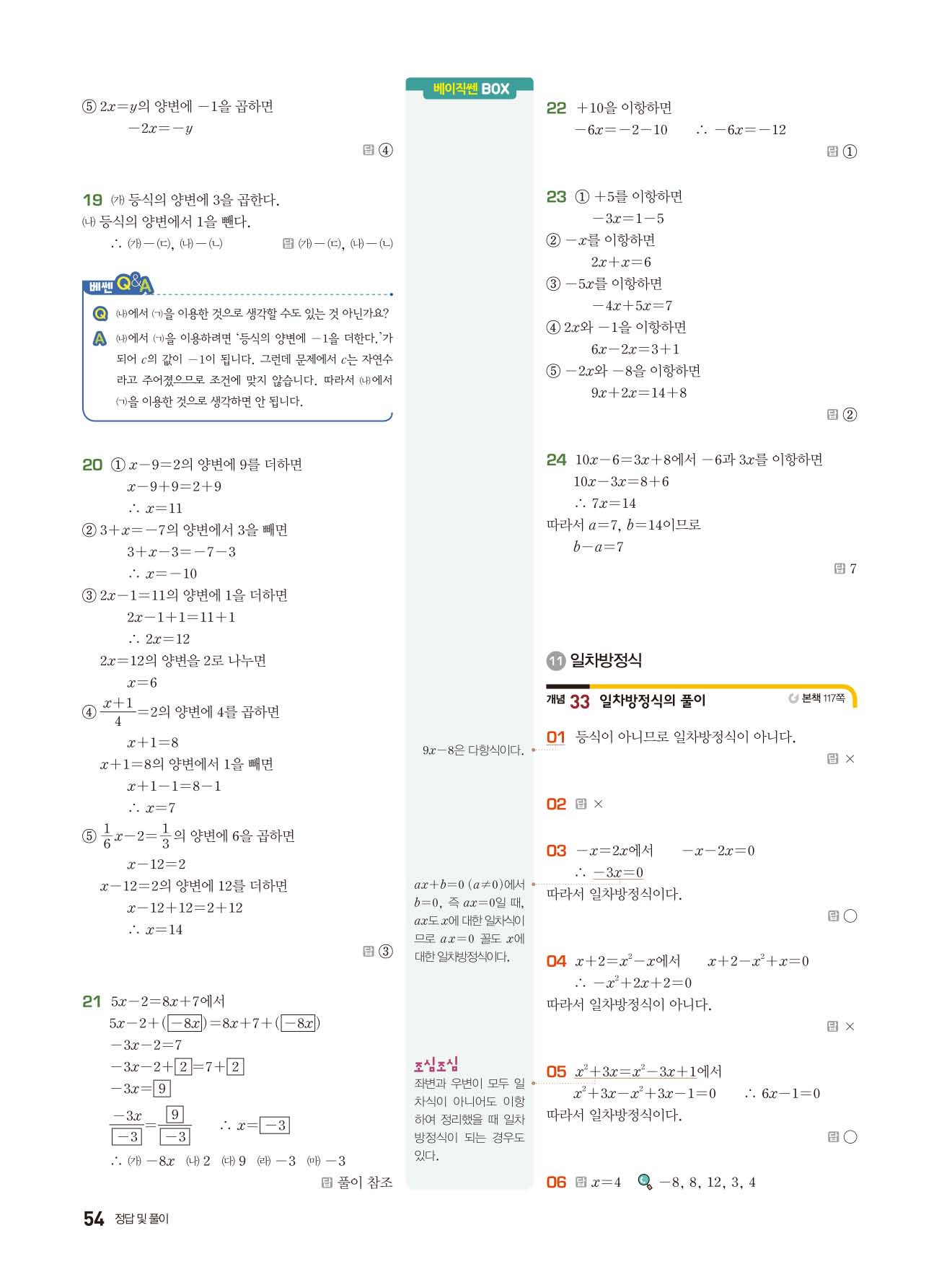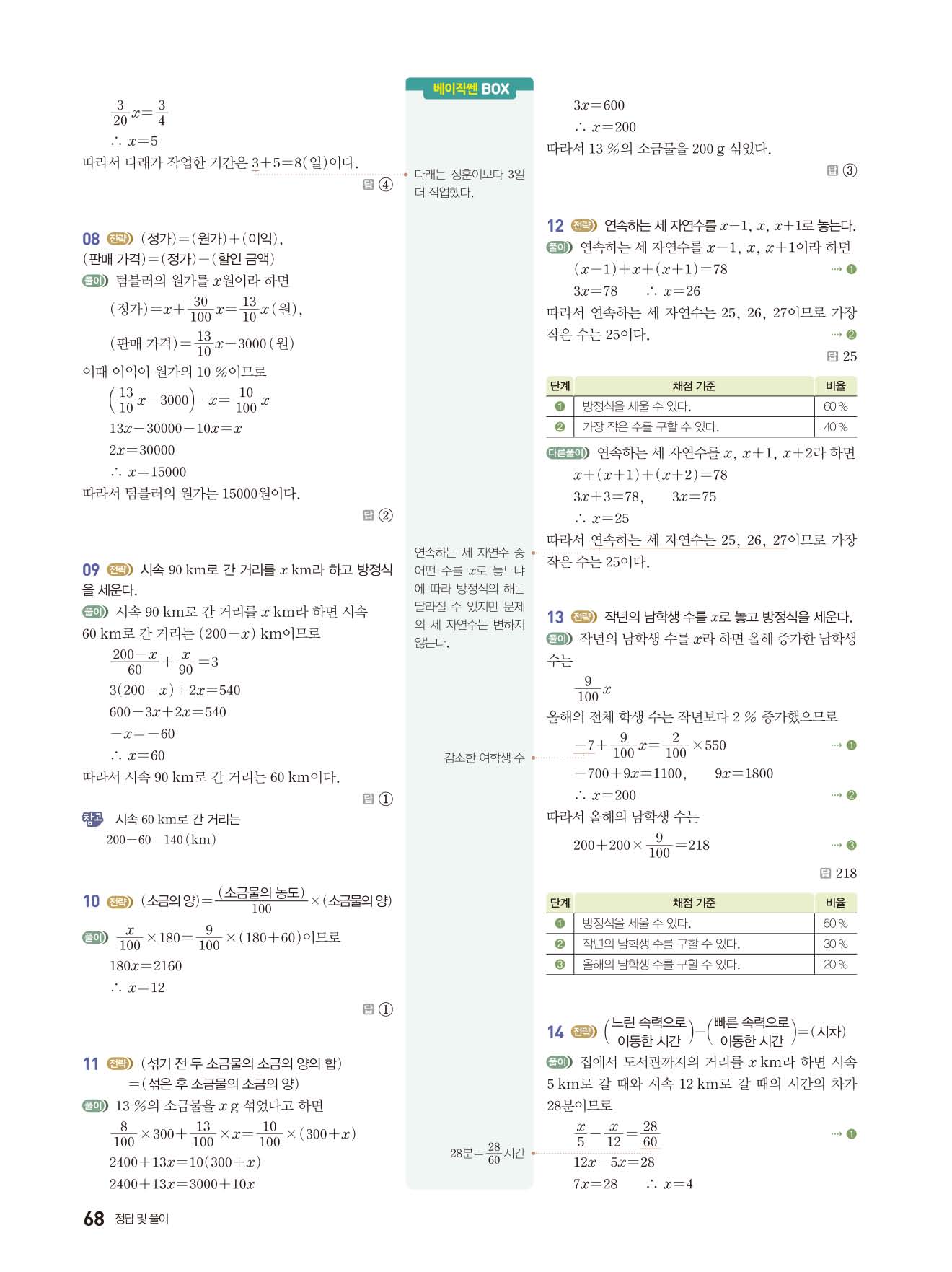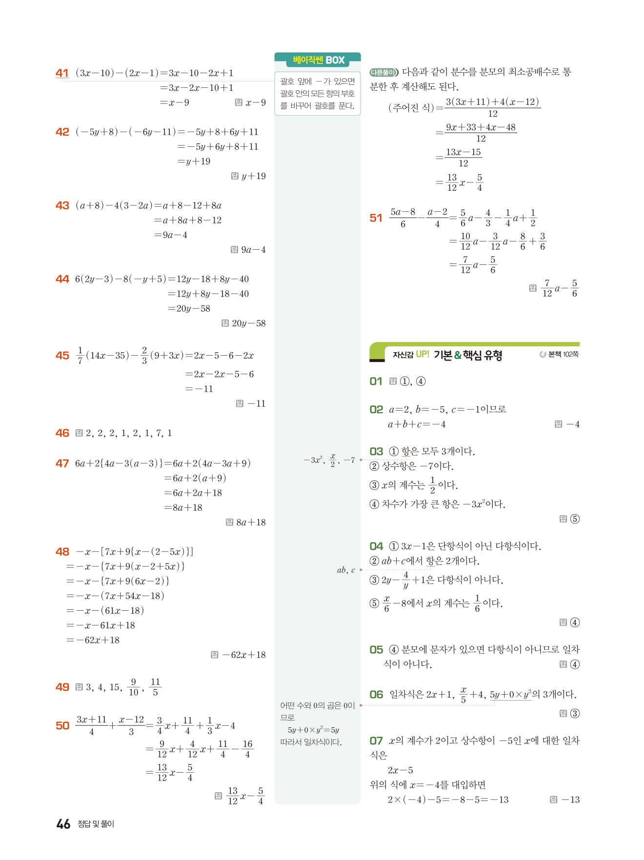 베이직쎈 중1상 답지 해설지 사진답지 빠른답지 모바일최적화