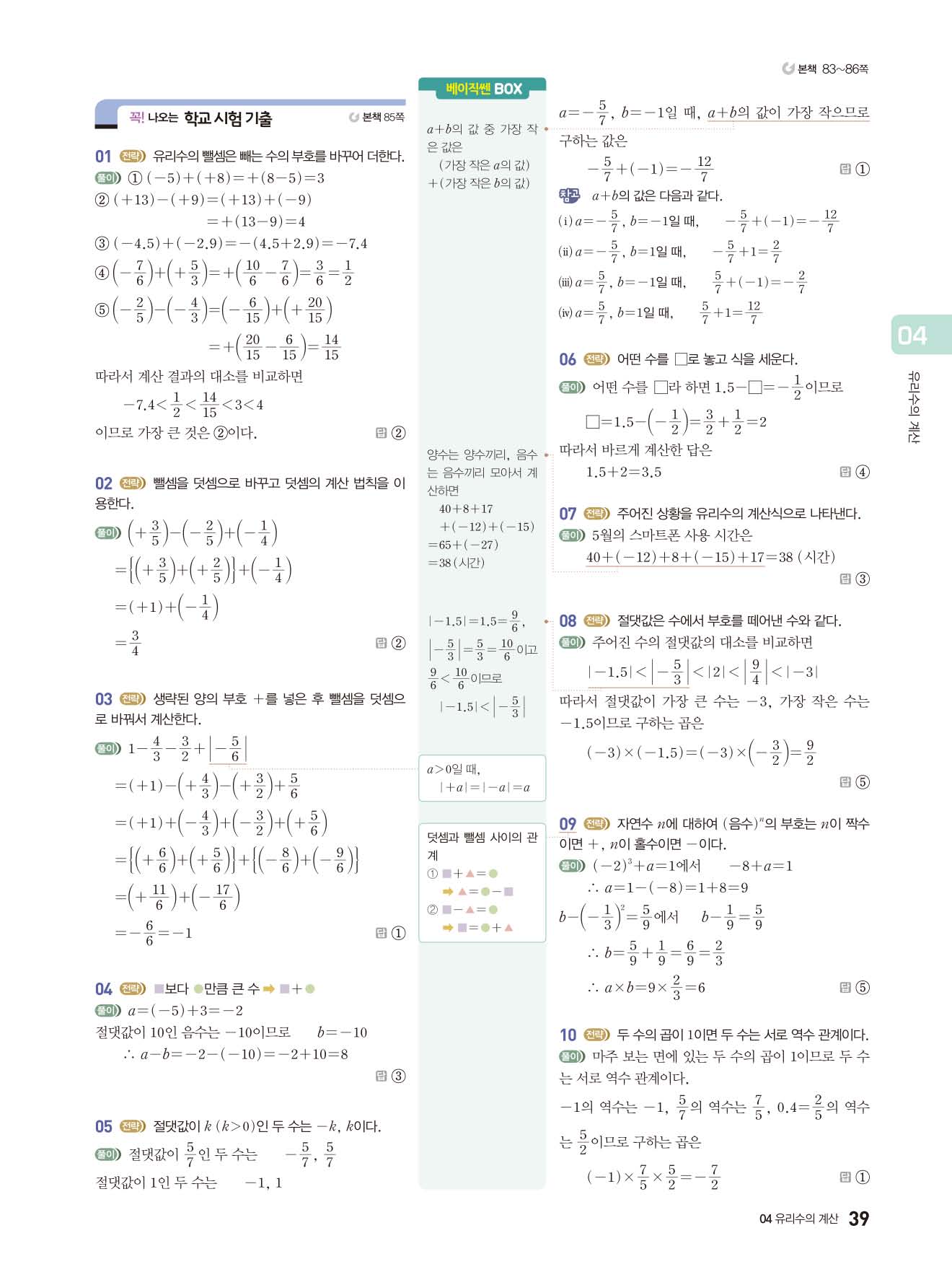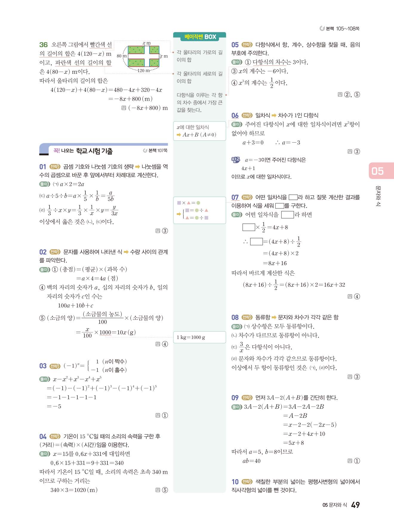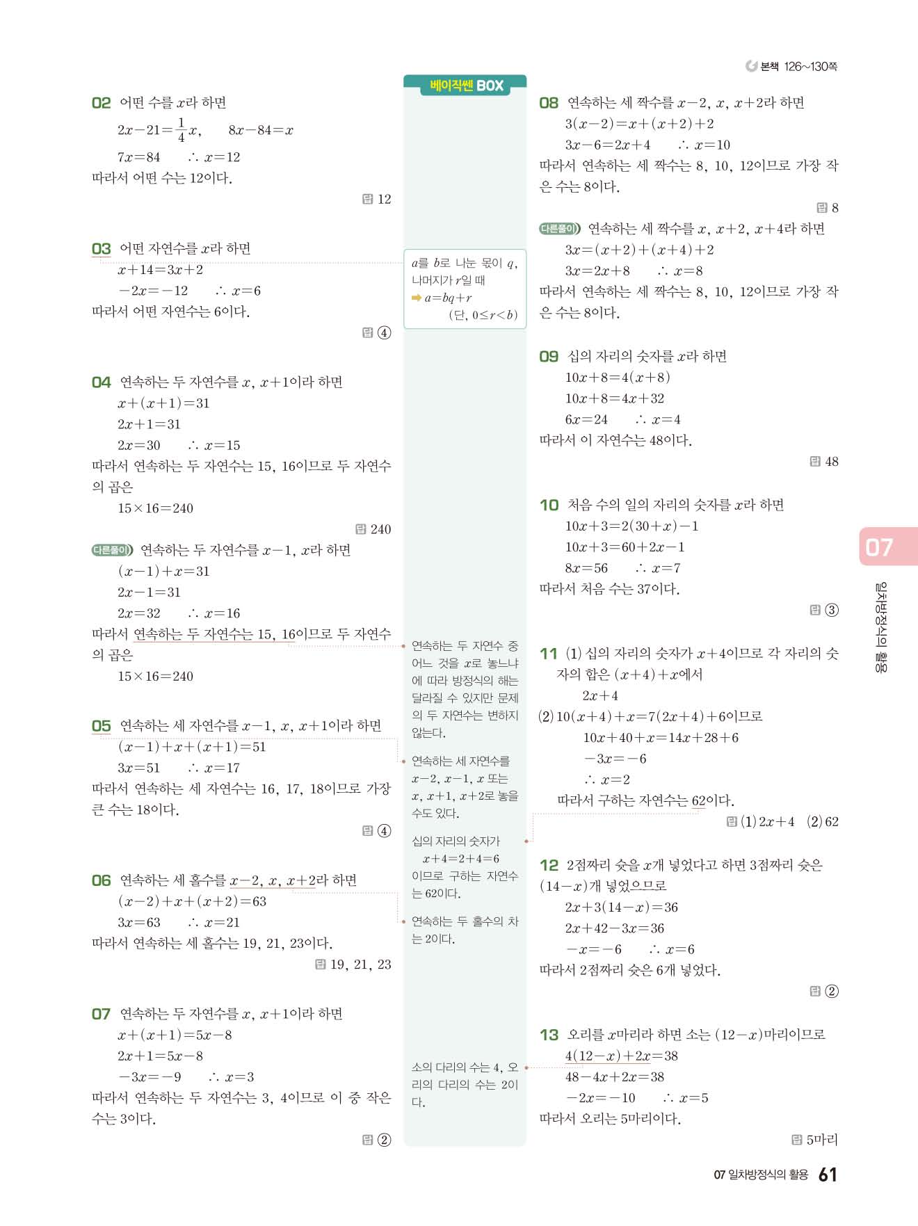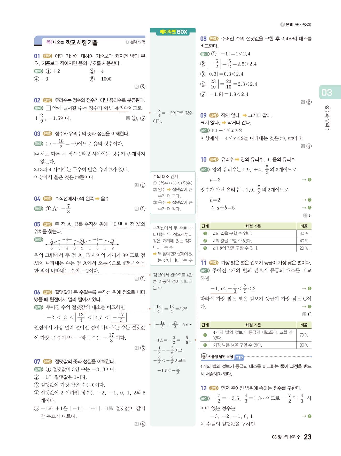 베이직쎈 중1상 답지 해설지 사진답지 빠른답지 모바일최적화