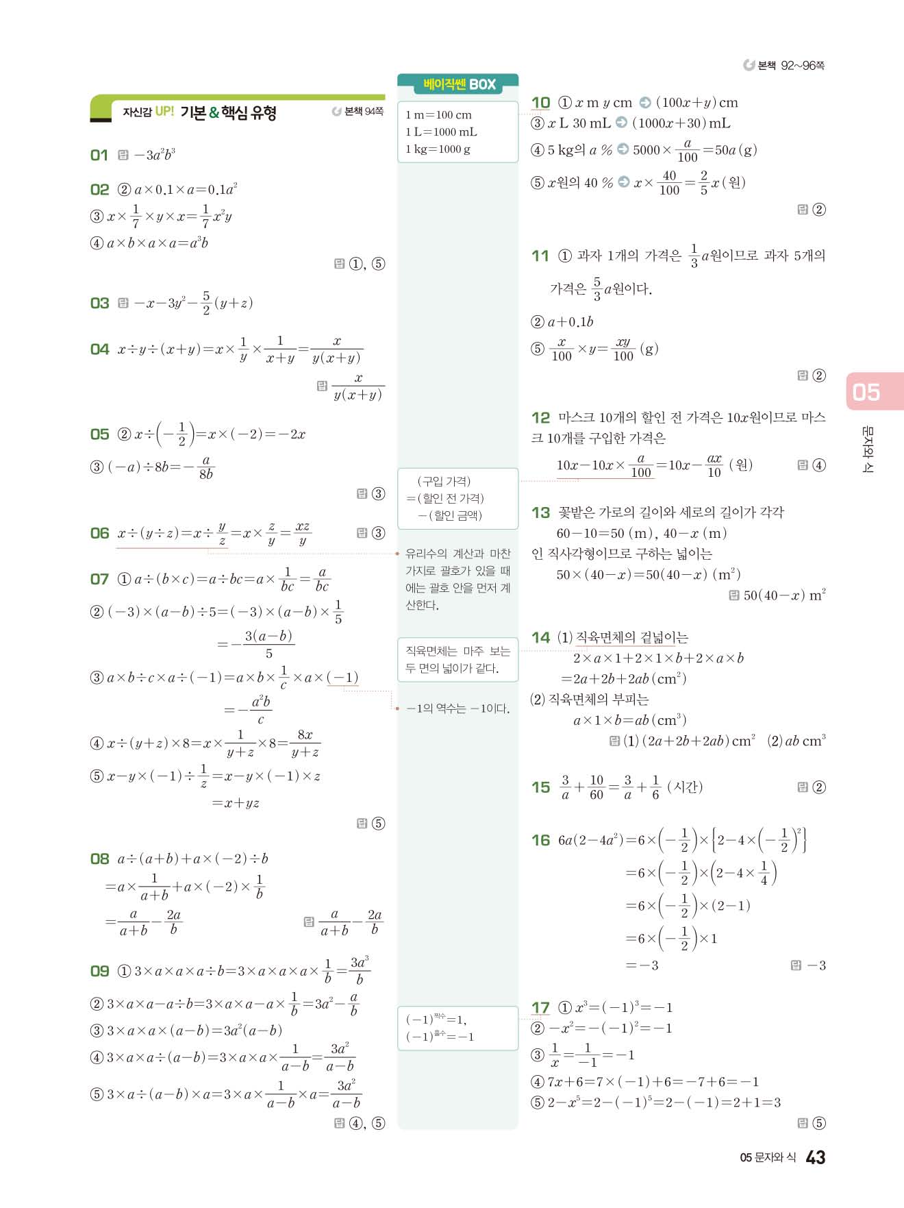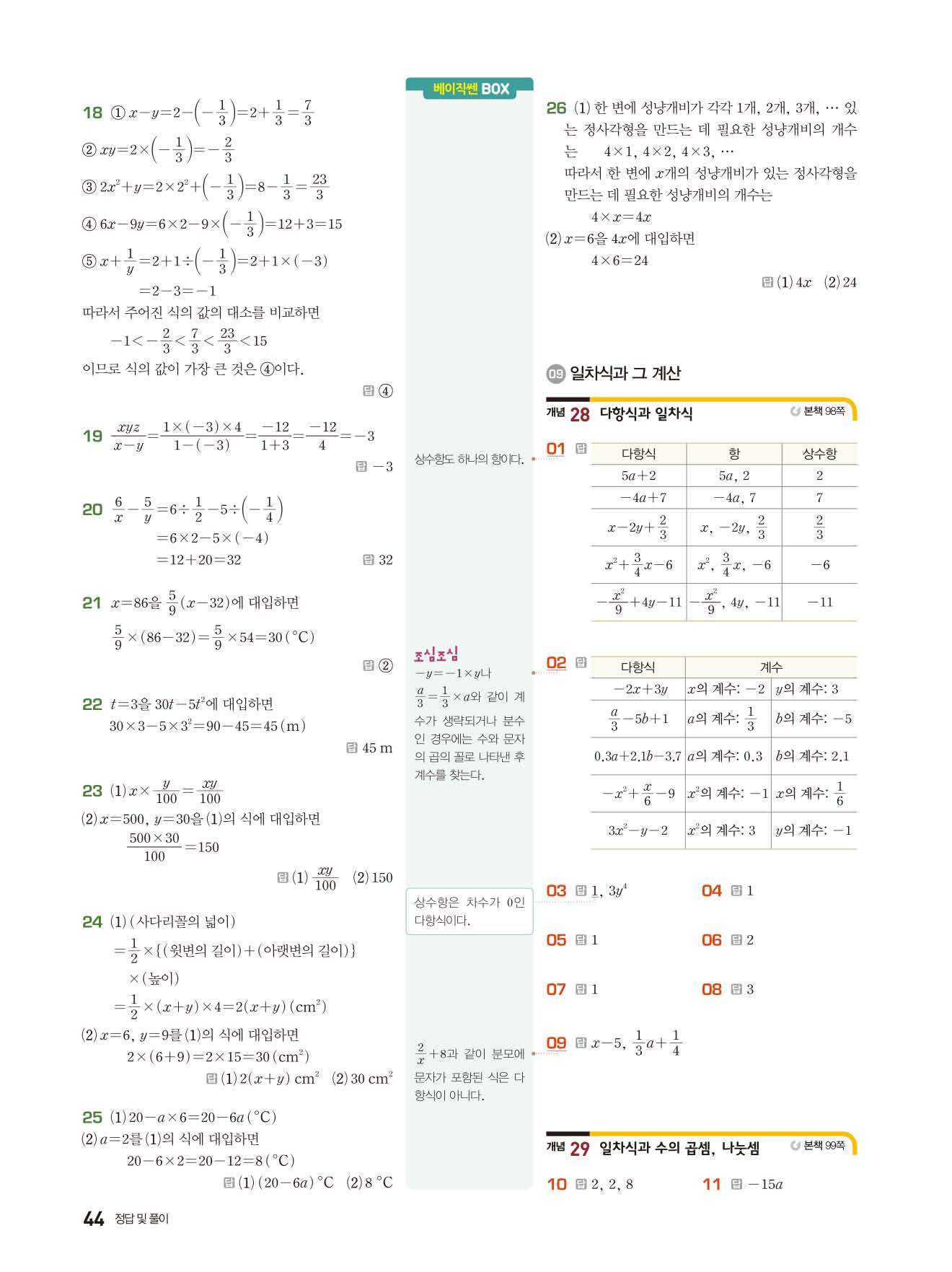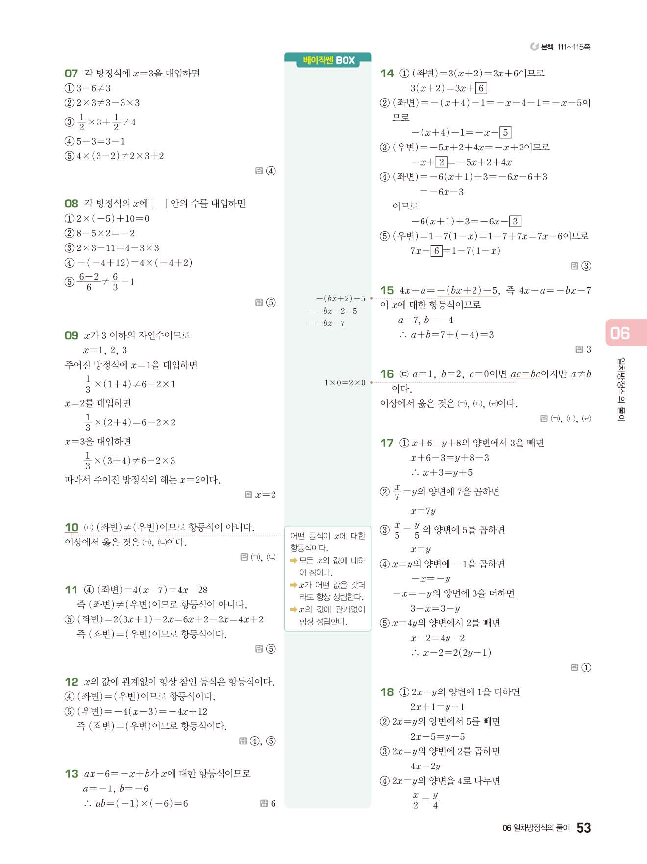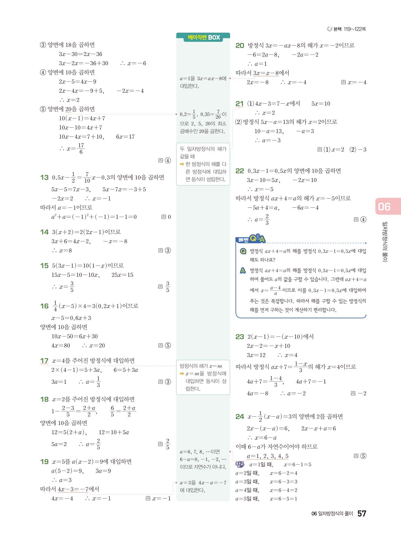베이직쎈 중1상 답지 해설지 사진답지 빠른답지 모바일최적화