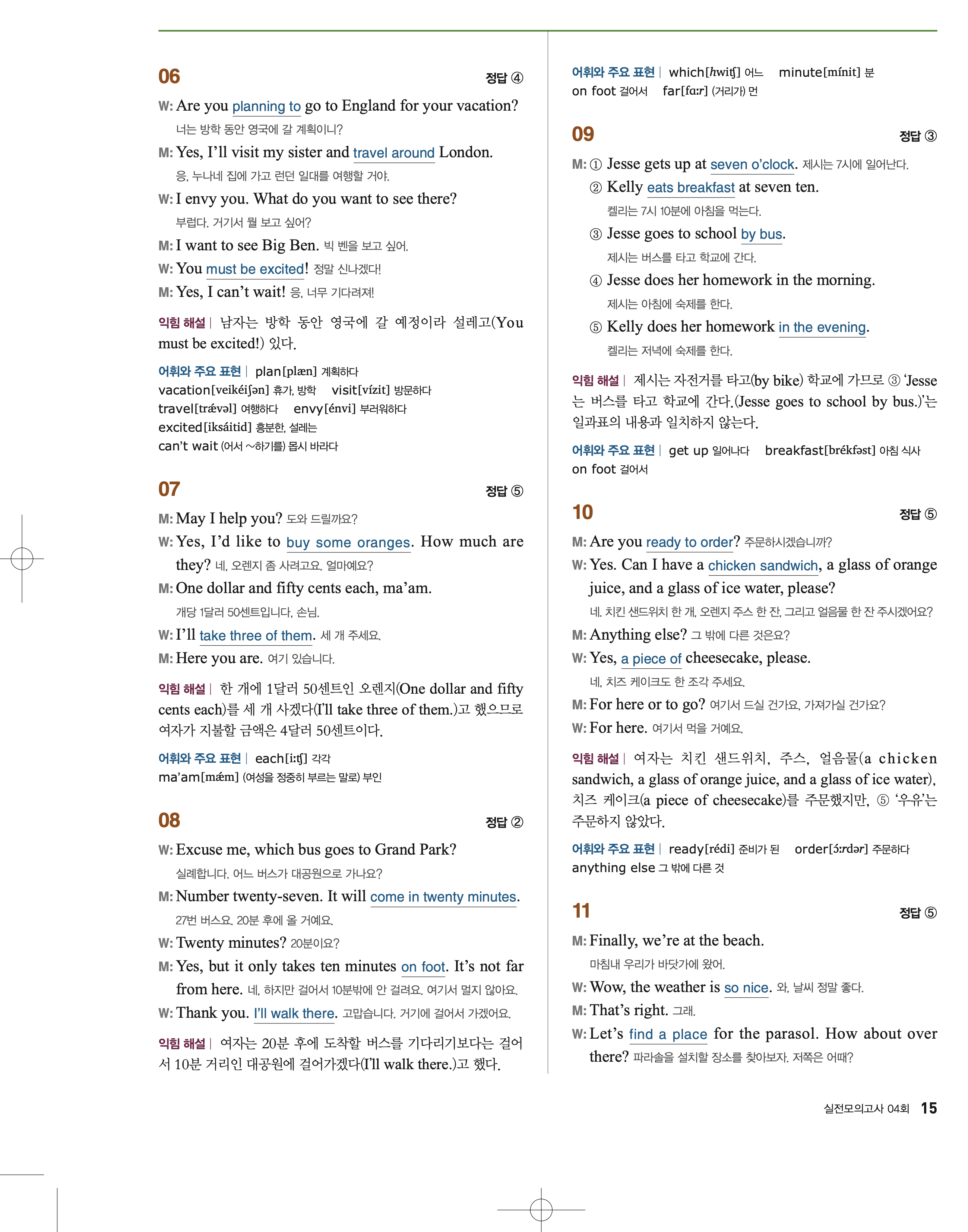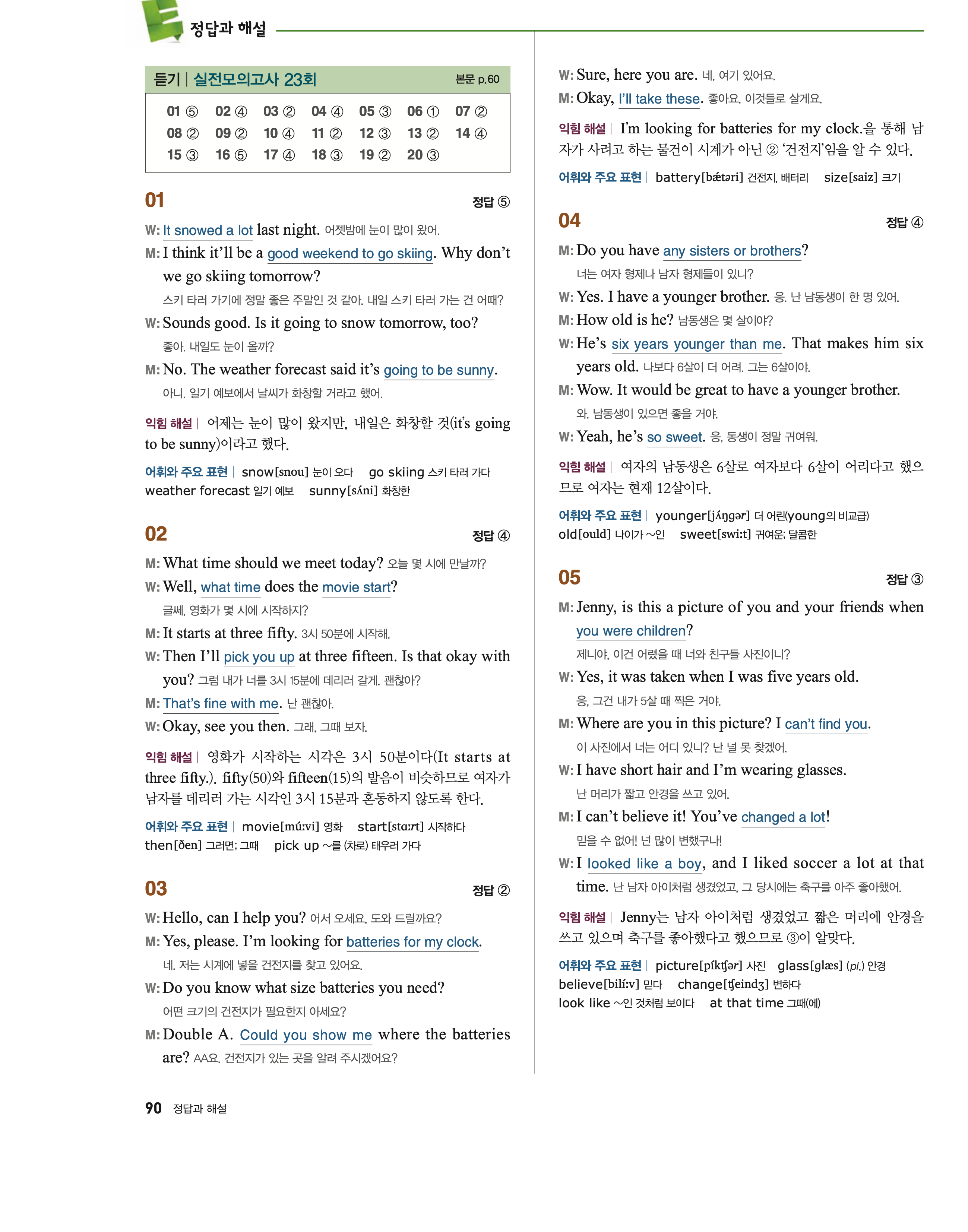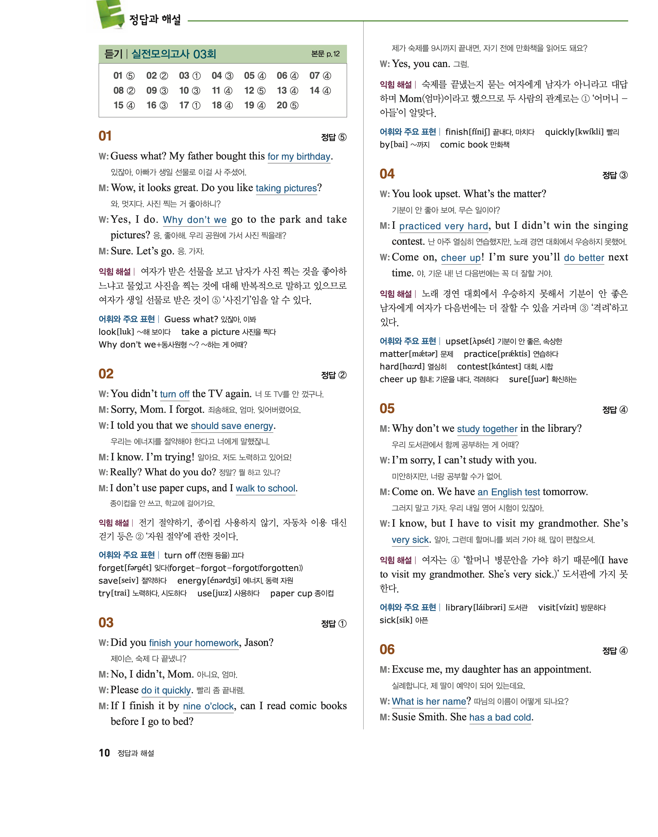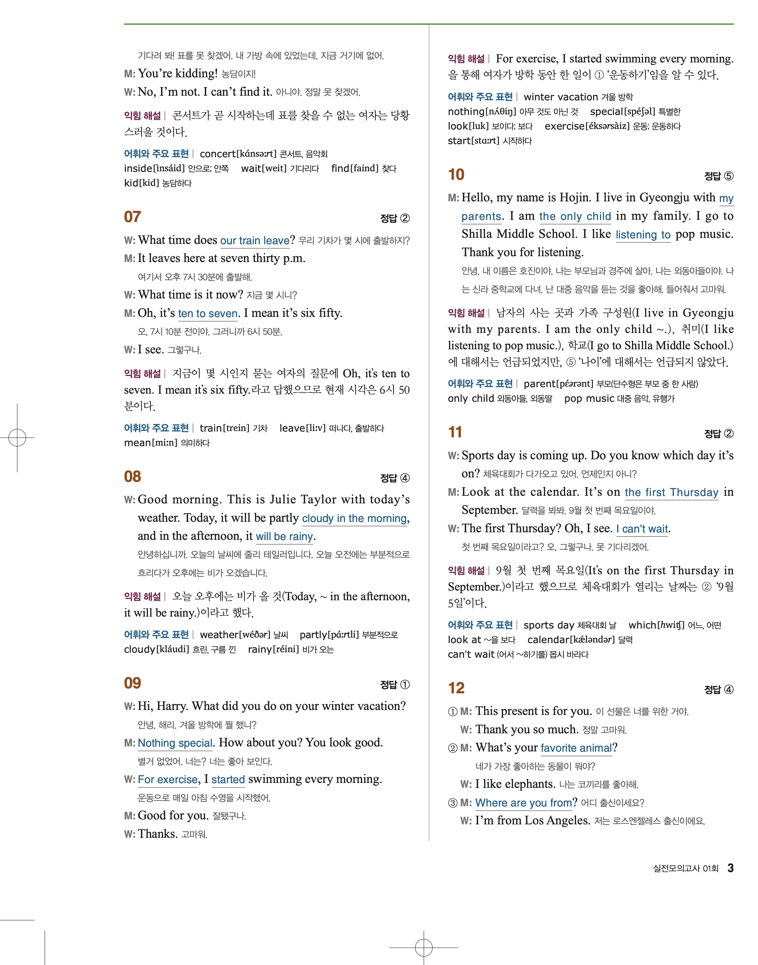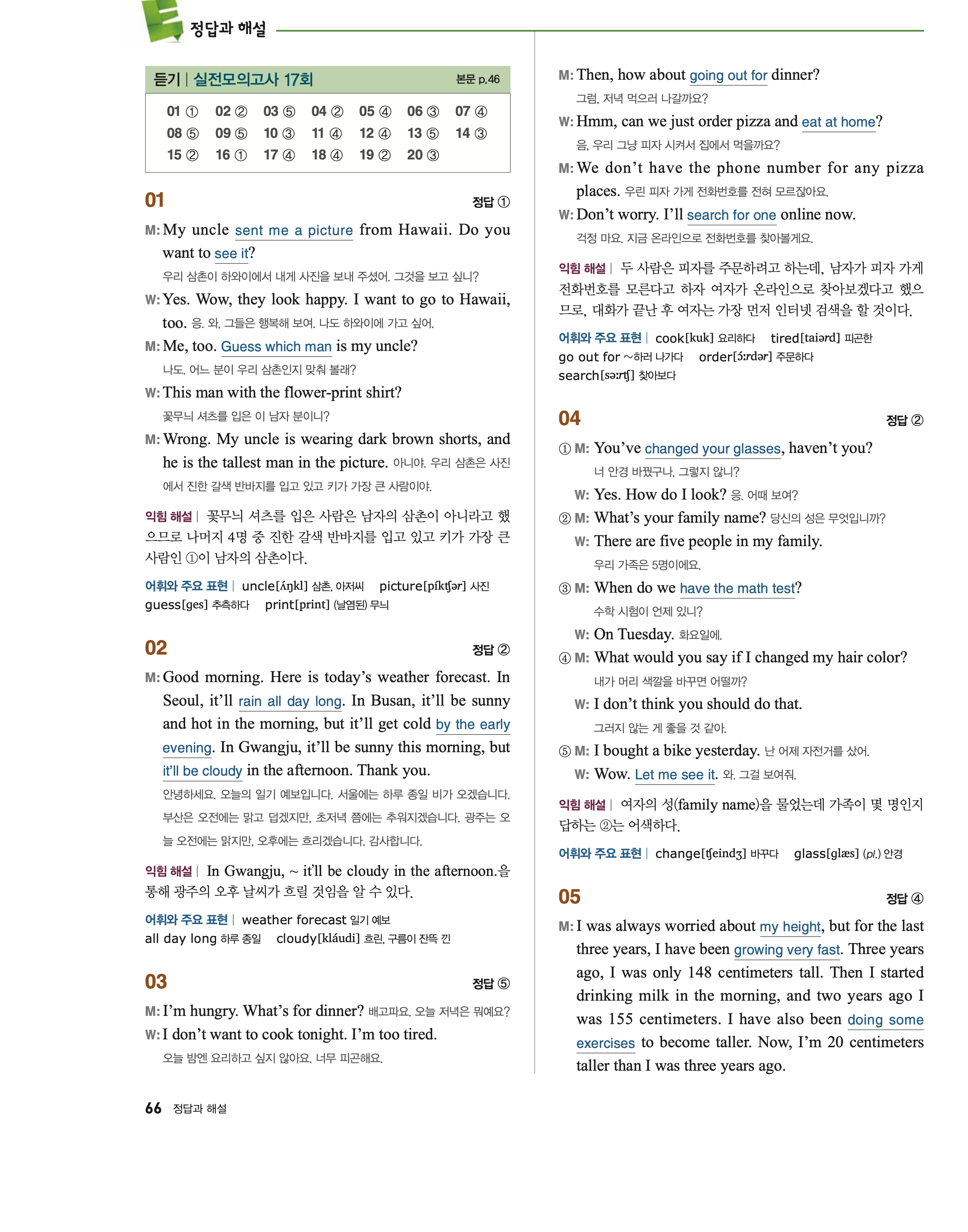 이그잼 중등 듣기모의고사25회 레벨1 답지 해설 바로보는 사진답지 빠른답지 모바일최적화