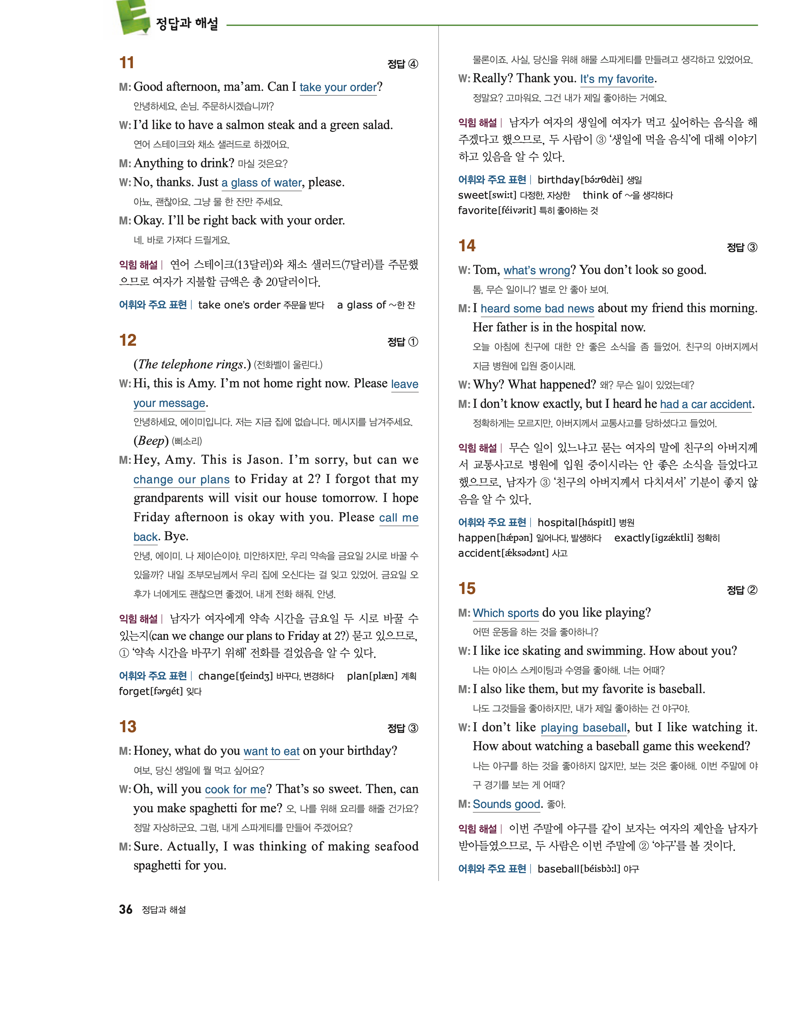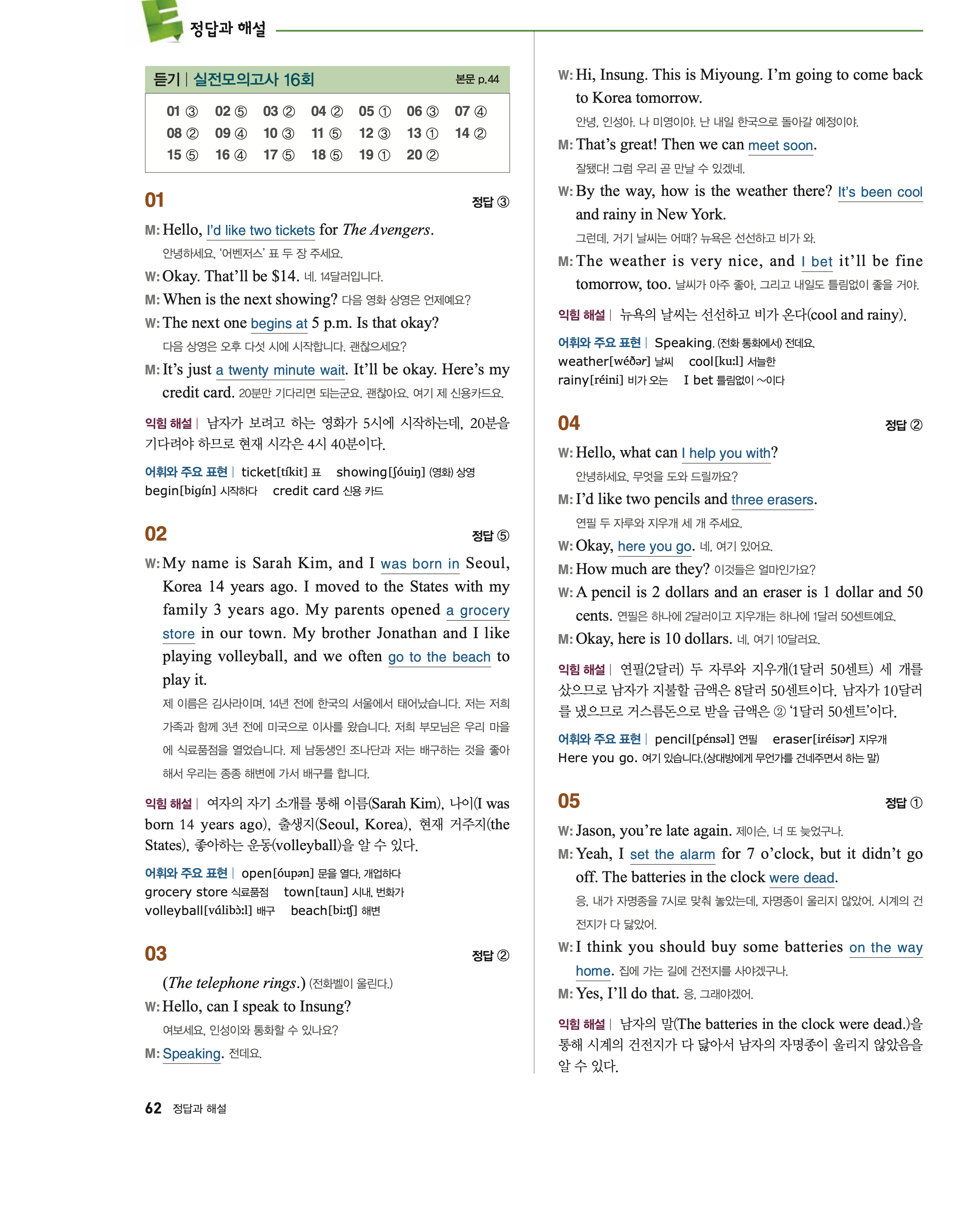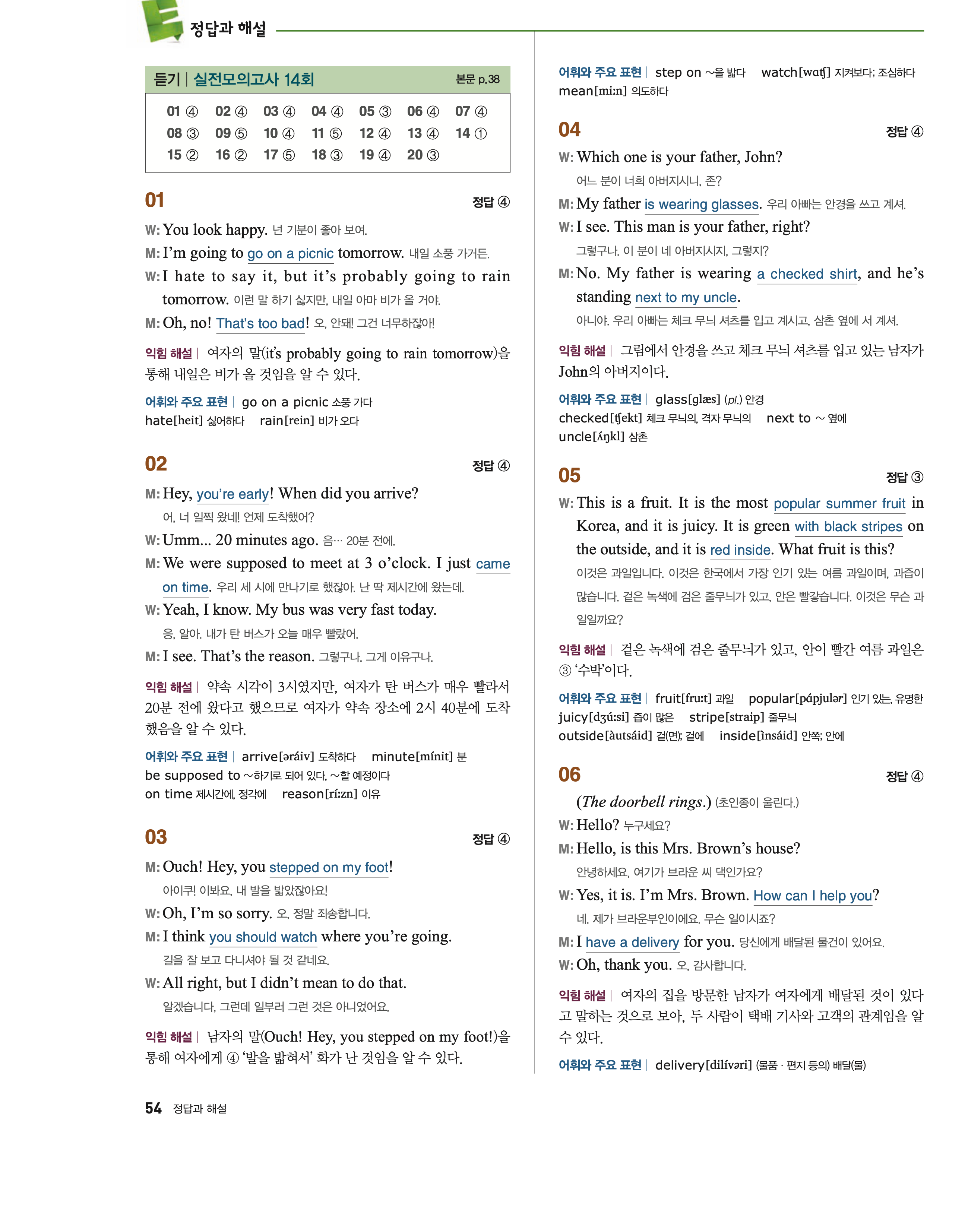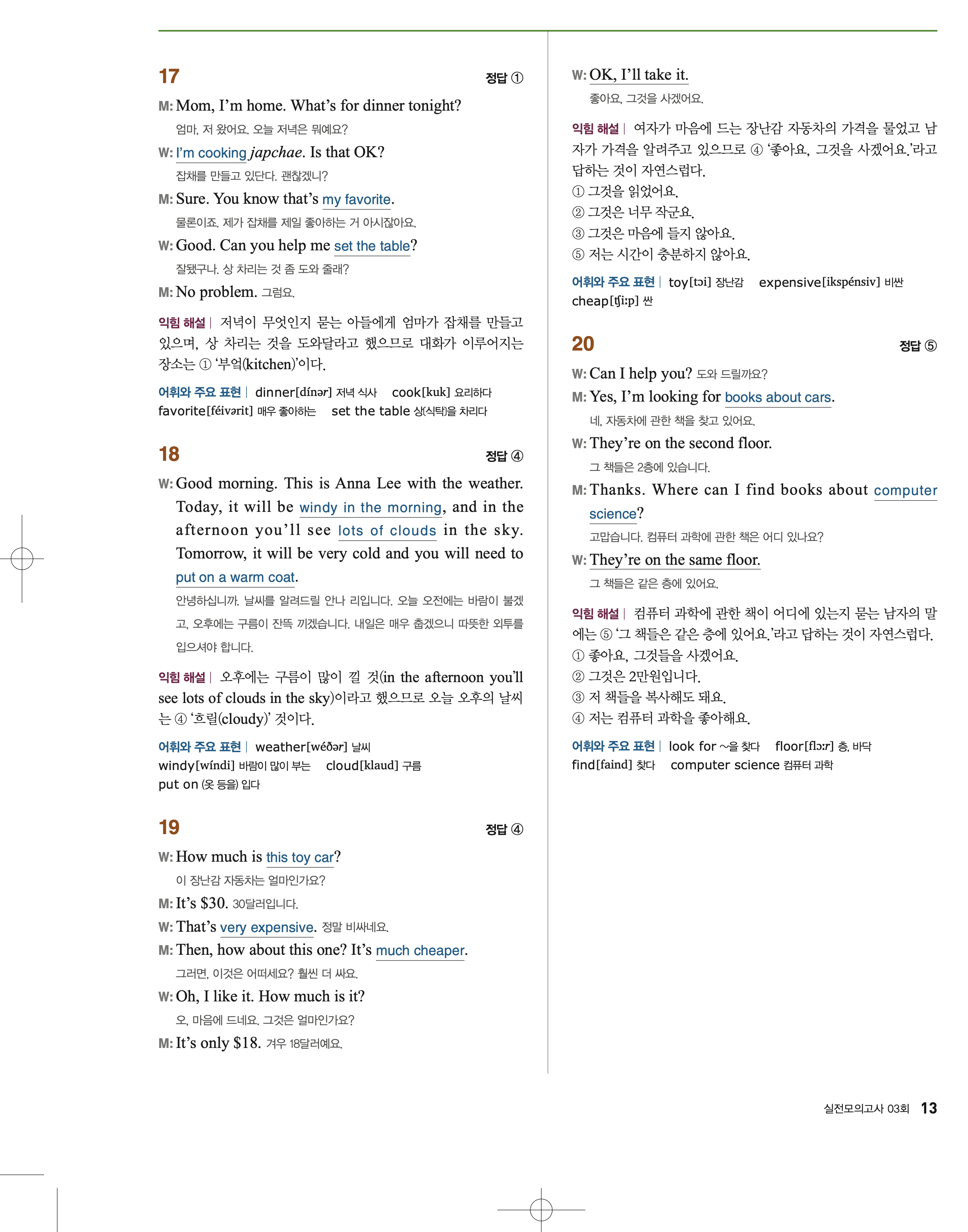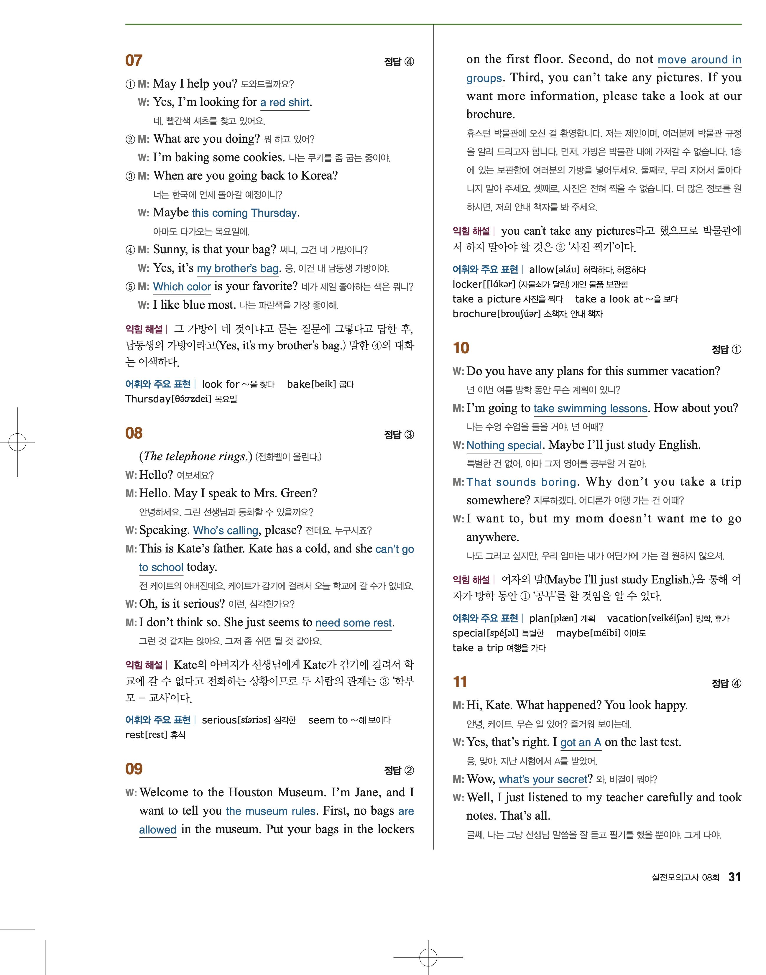 이그잼 중등 듣기모의고사25회 레벨1 답지 해설 바로보는 사진답지 빠른답지 모바일최적화