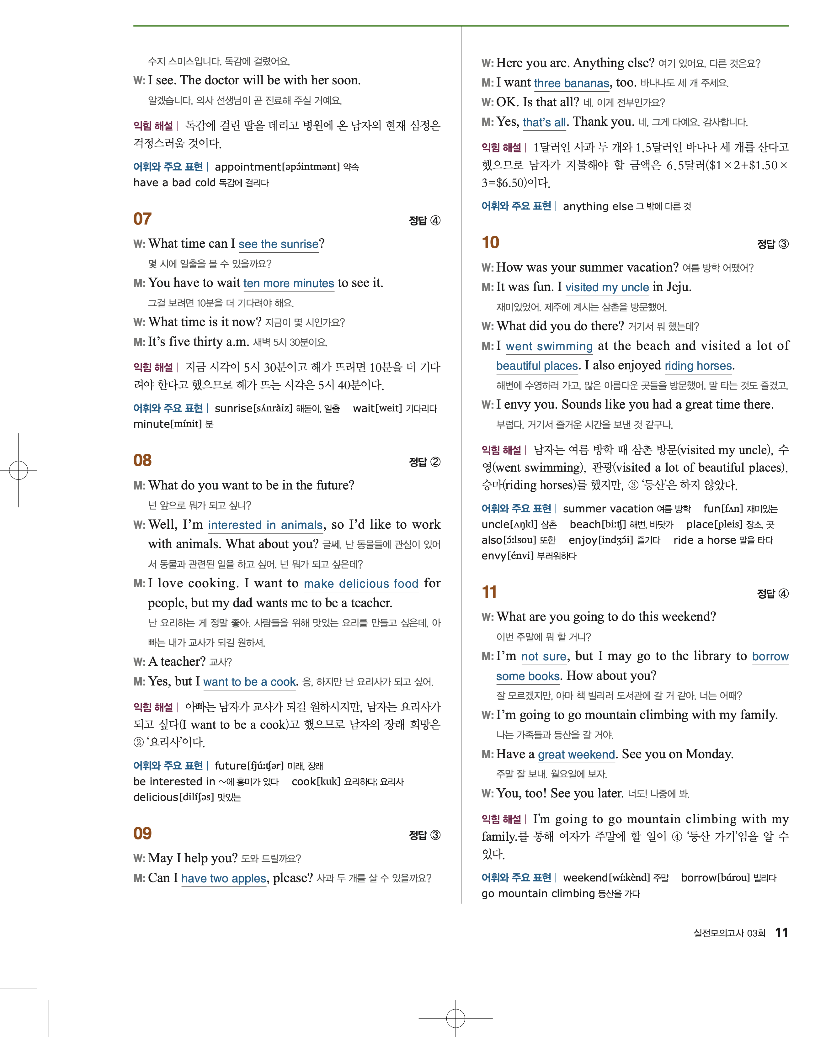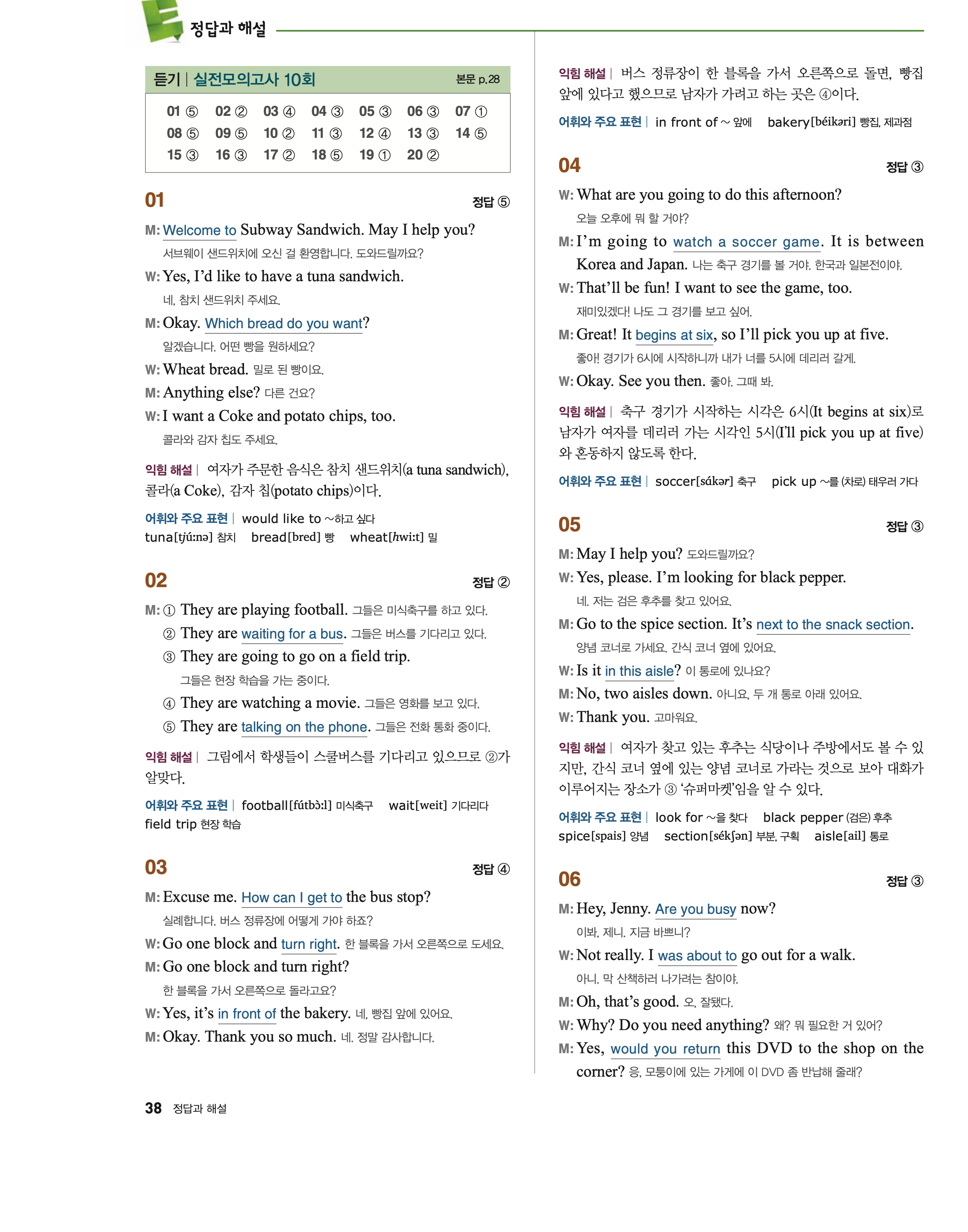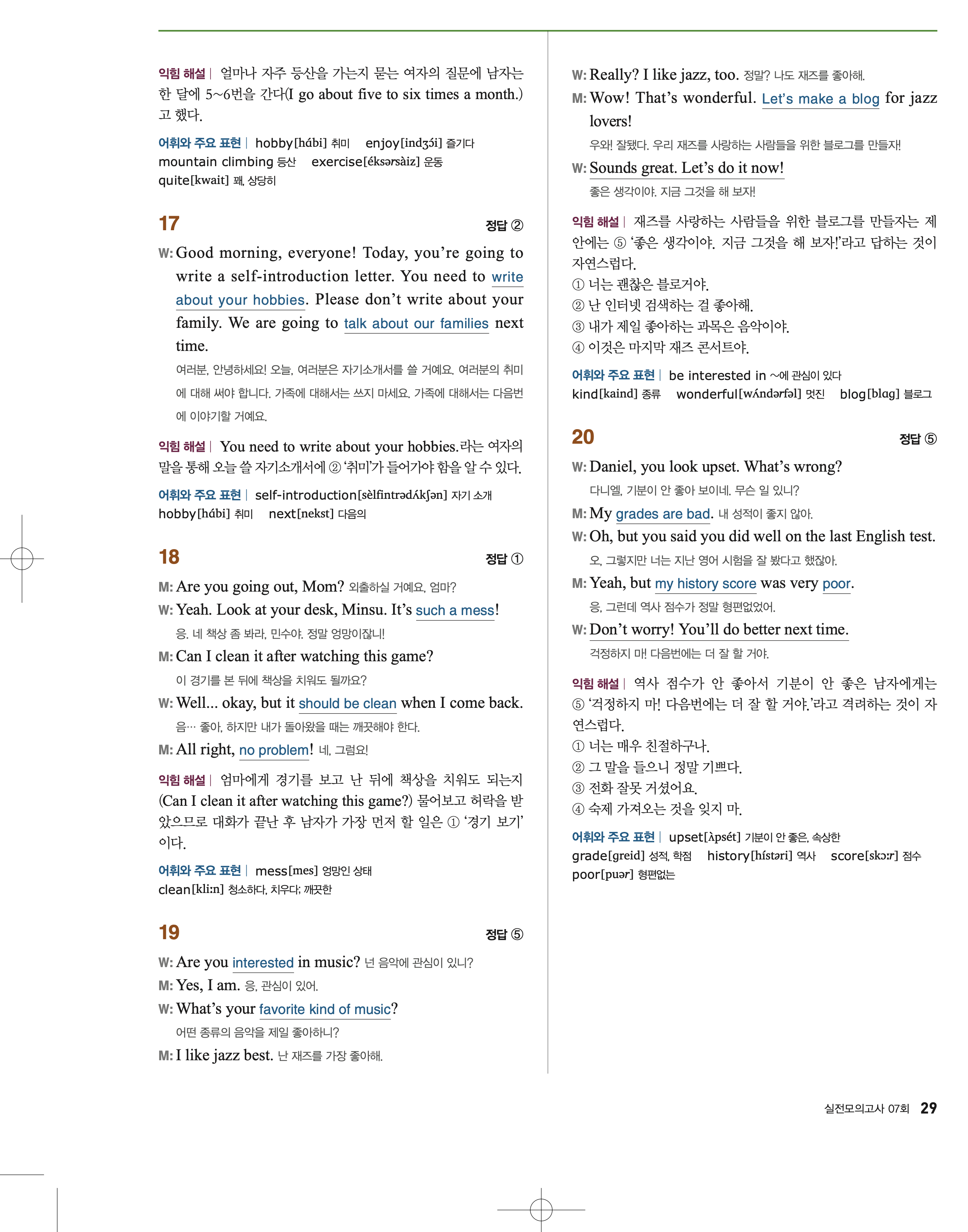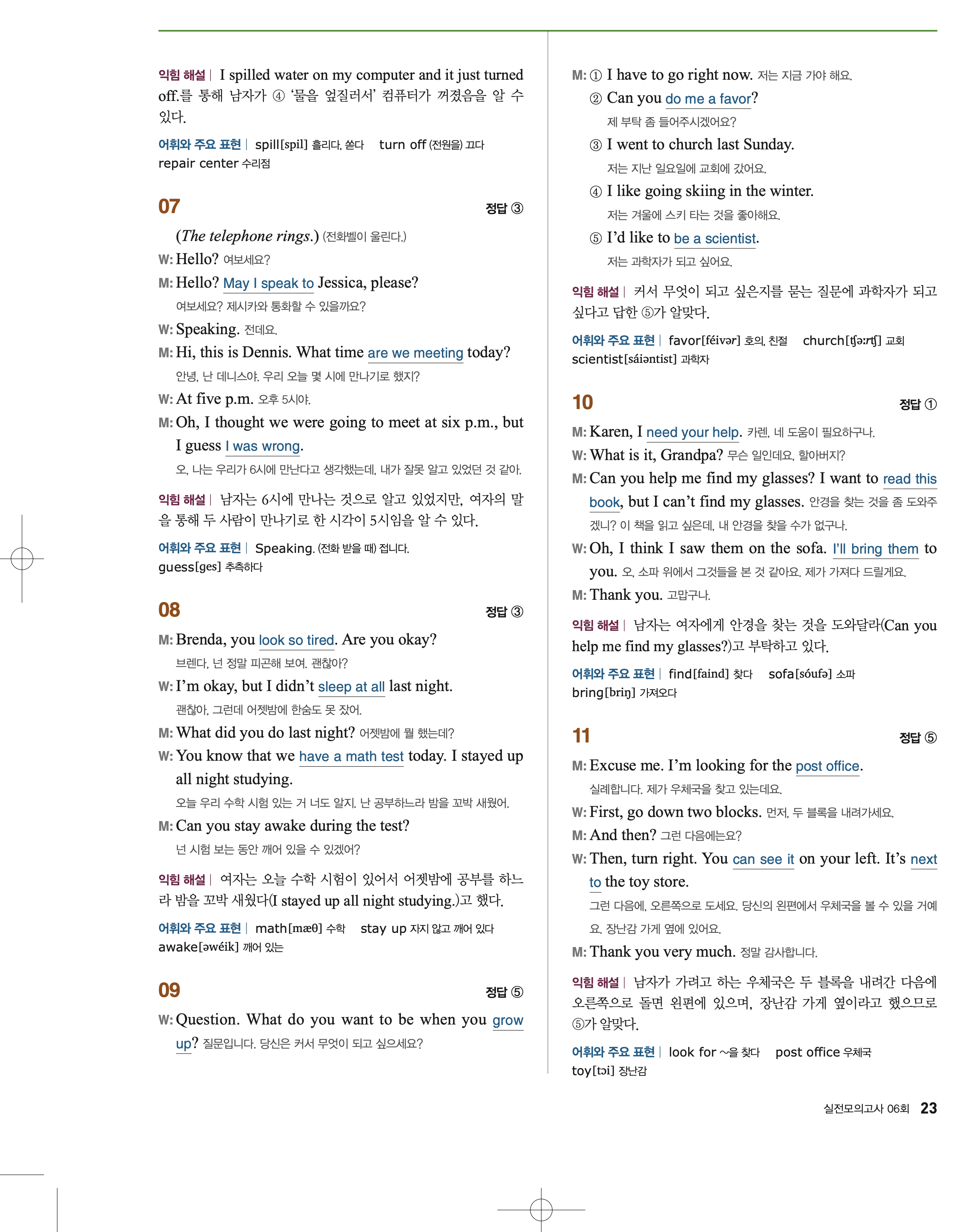 이그잼 중등 듣기모의고사25회 레벨1 답지 해설 바로보는 사진답지 빠른답지 모바일최적화