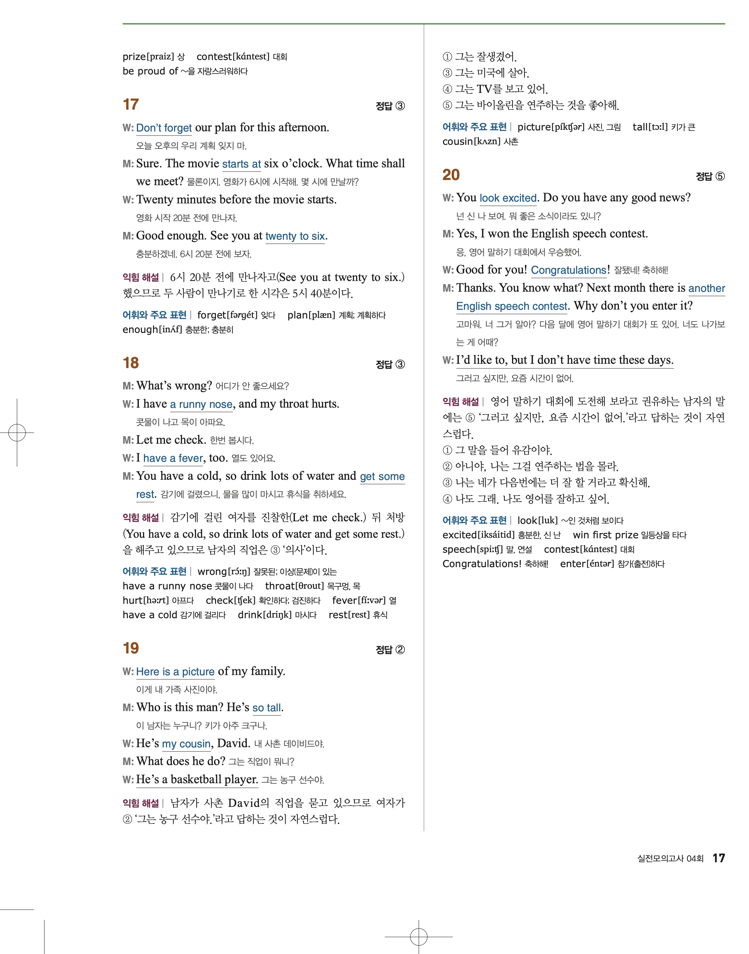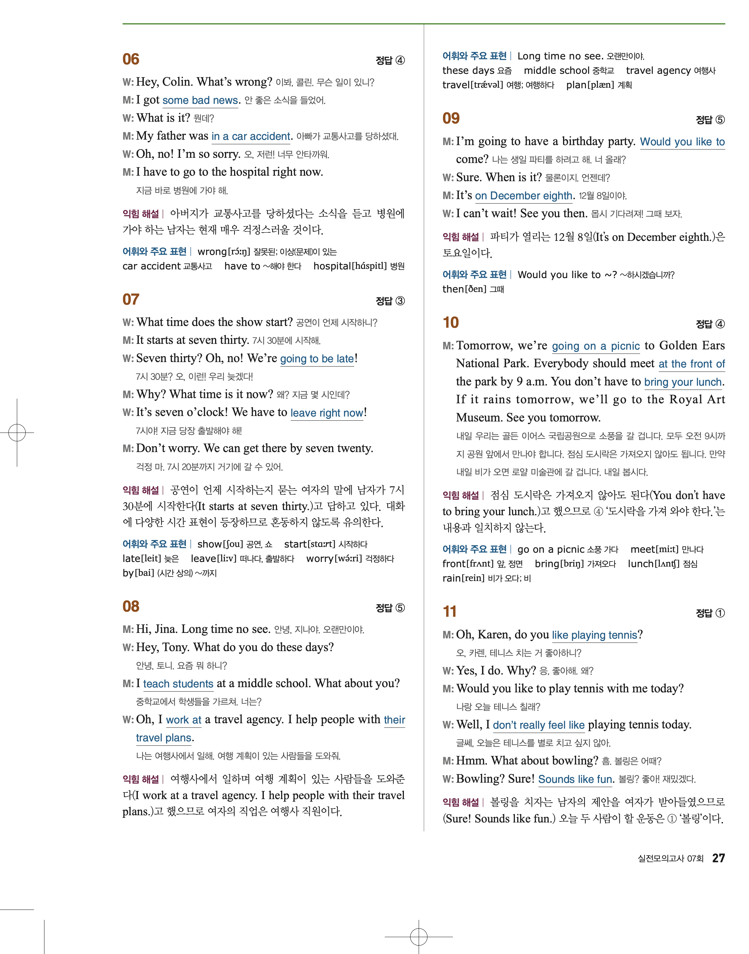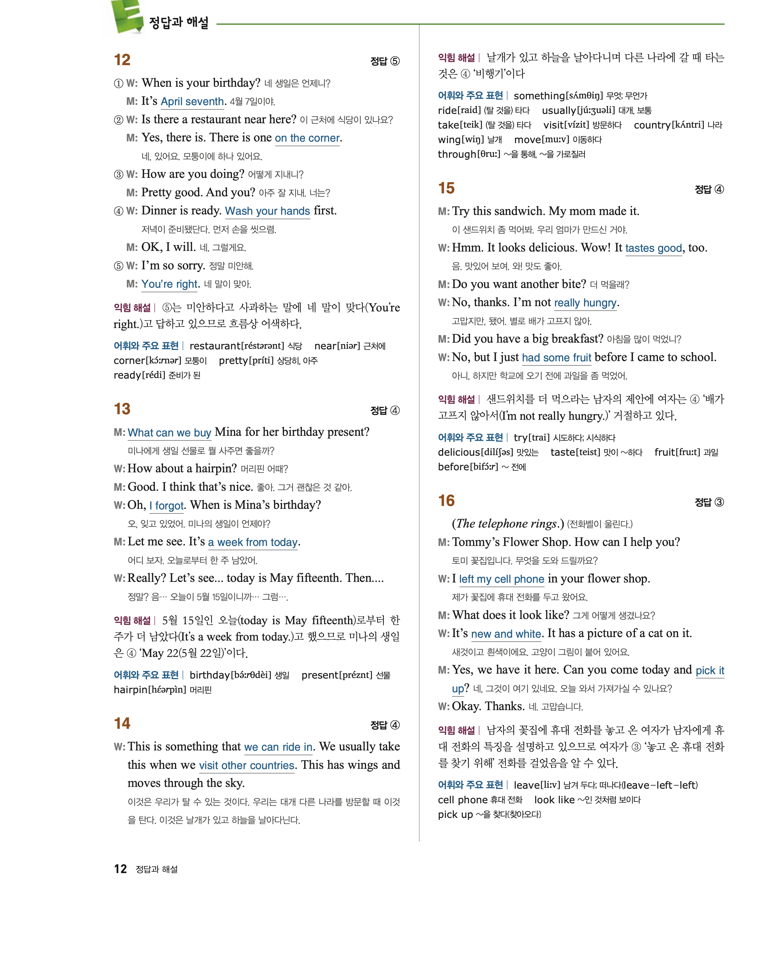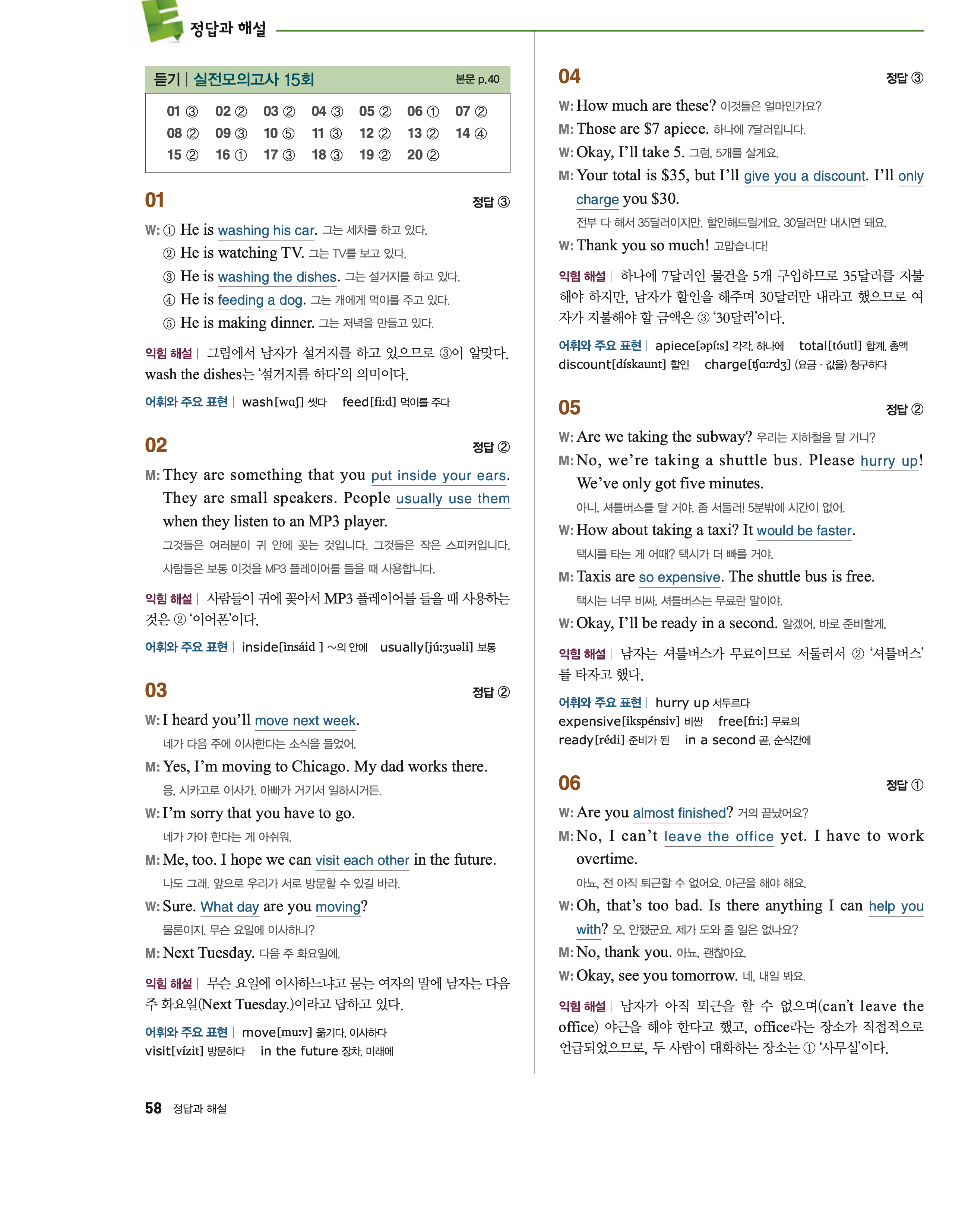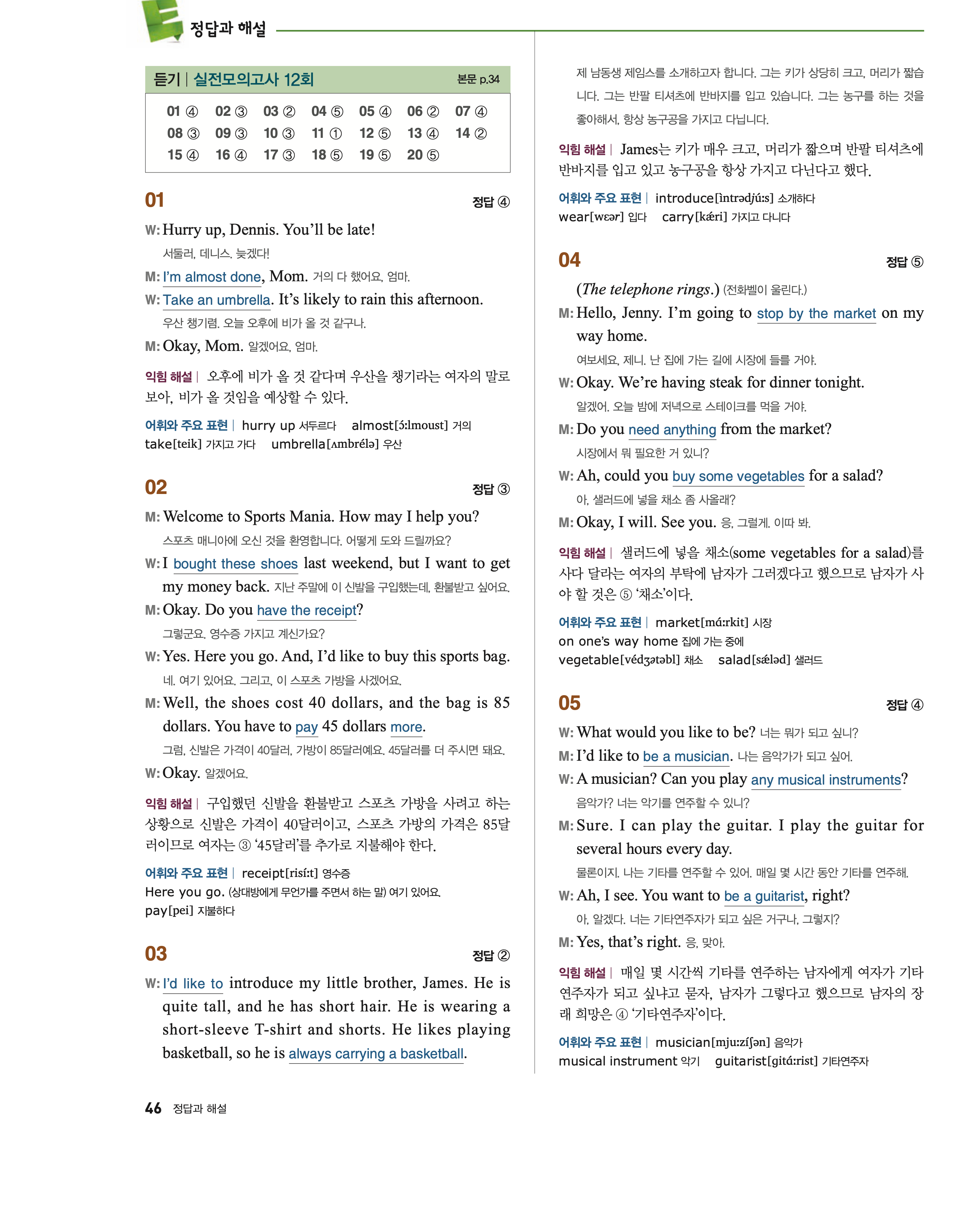 이그잼 중등 듣기모의고사25회 레벨1 답지 해설 바로보는 사진답지 빠른답지 모바일최적화