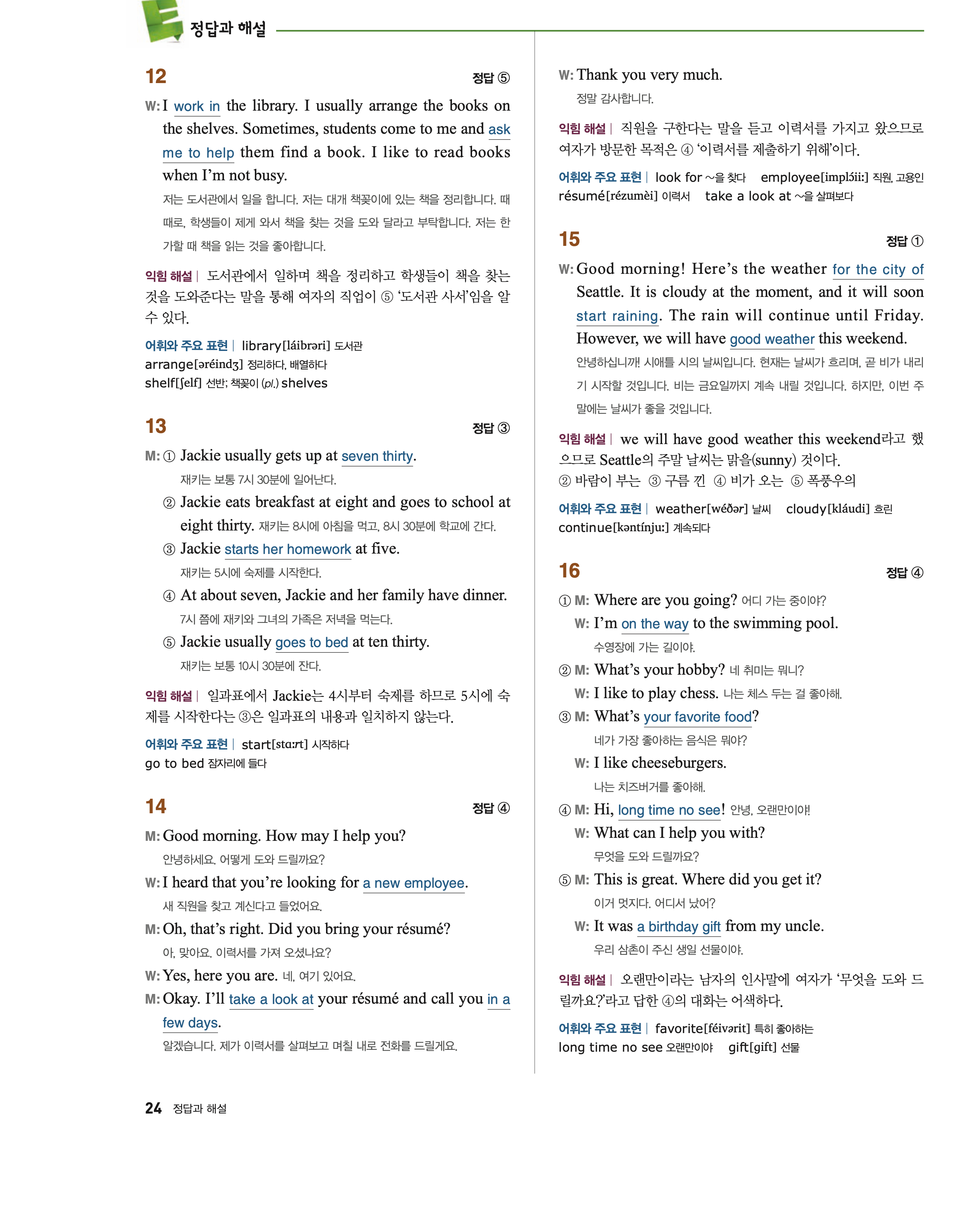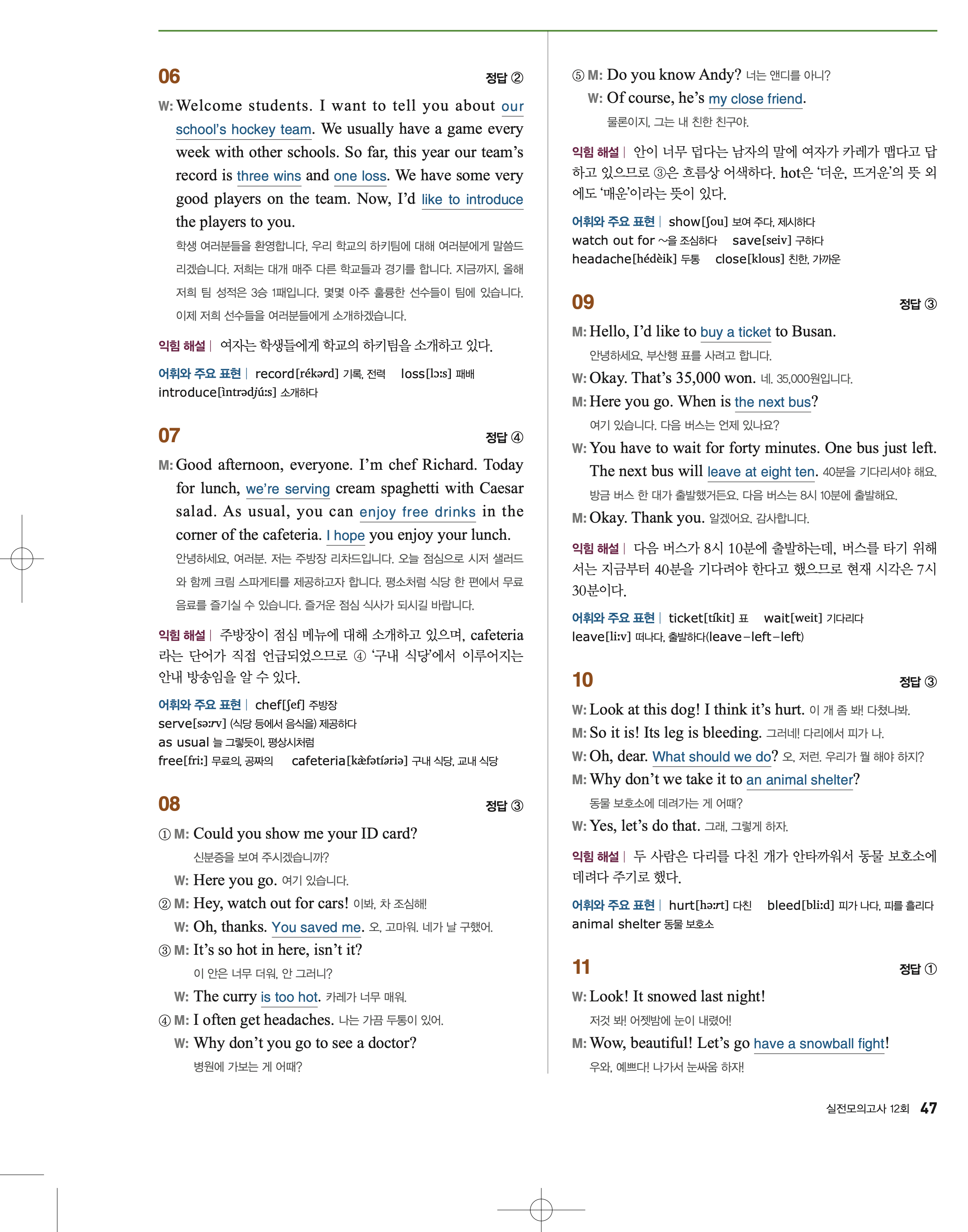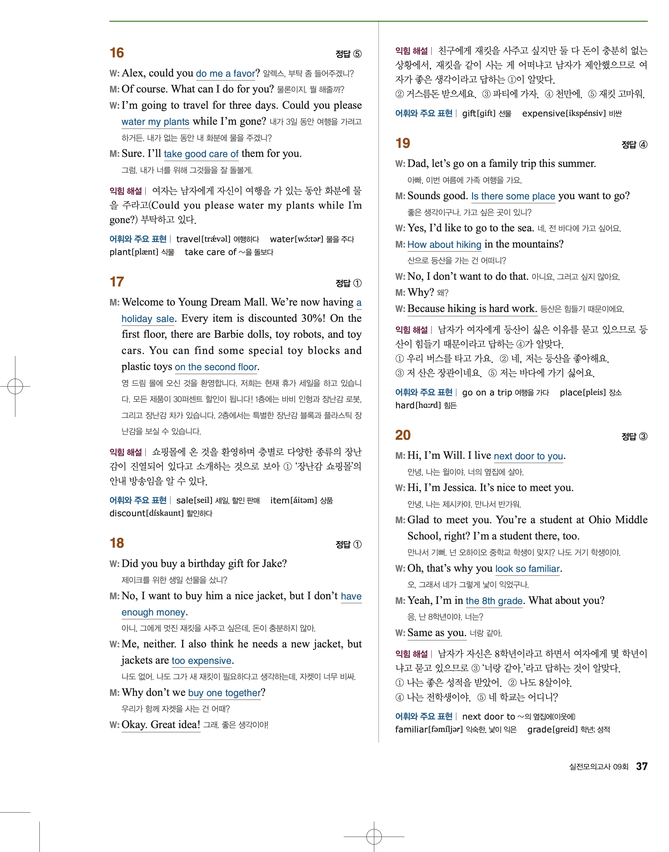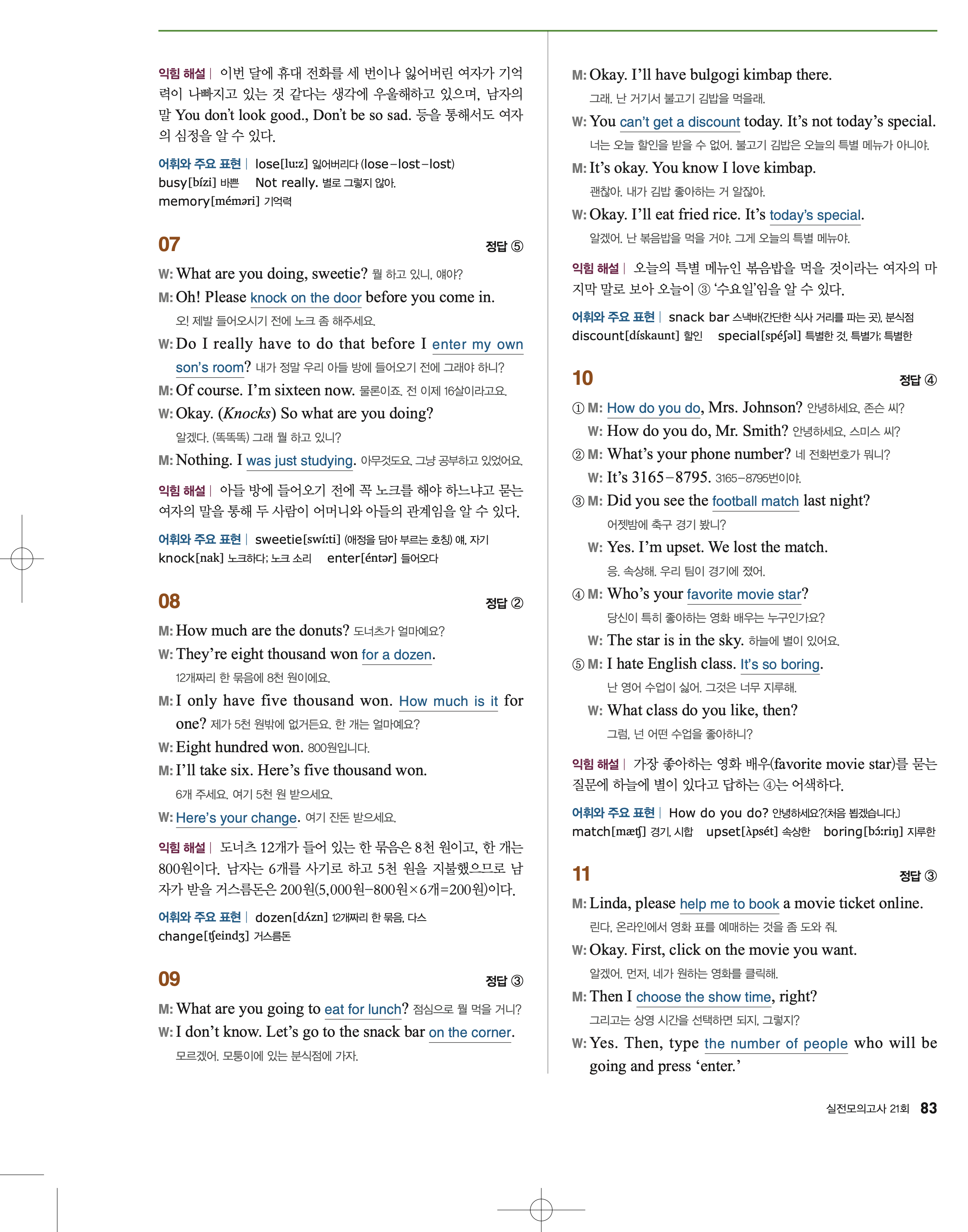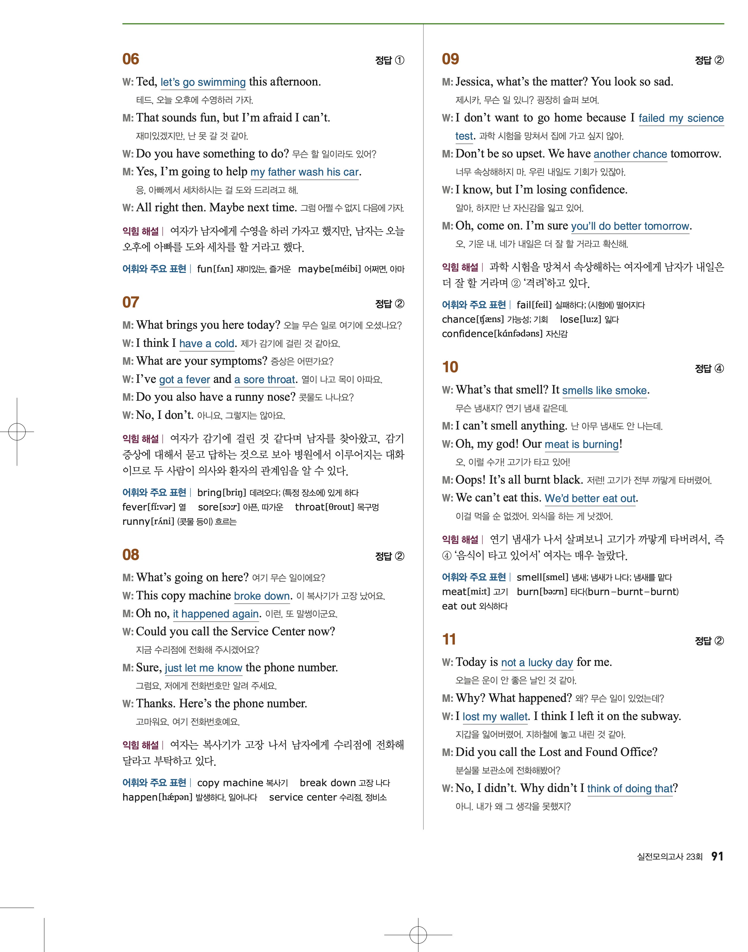 이그잼 중등 듣기모의고사25회 레벨1 답지 해설 바로보는 사진답지 빠른답지 모바일최적화