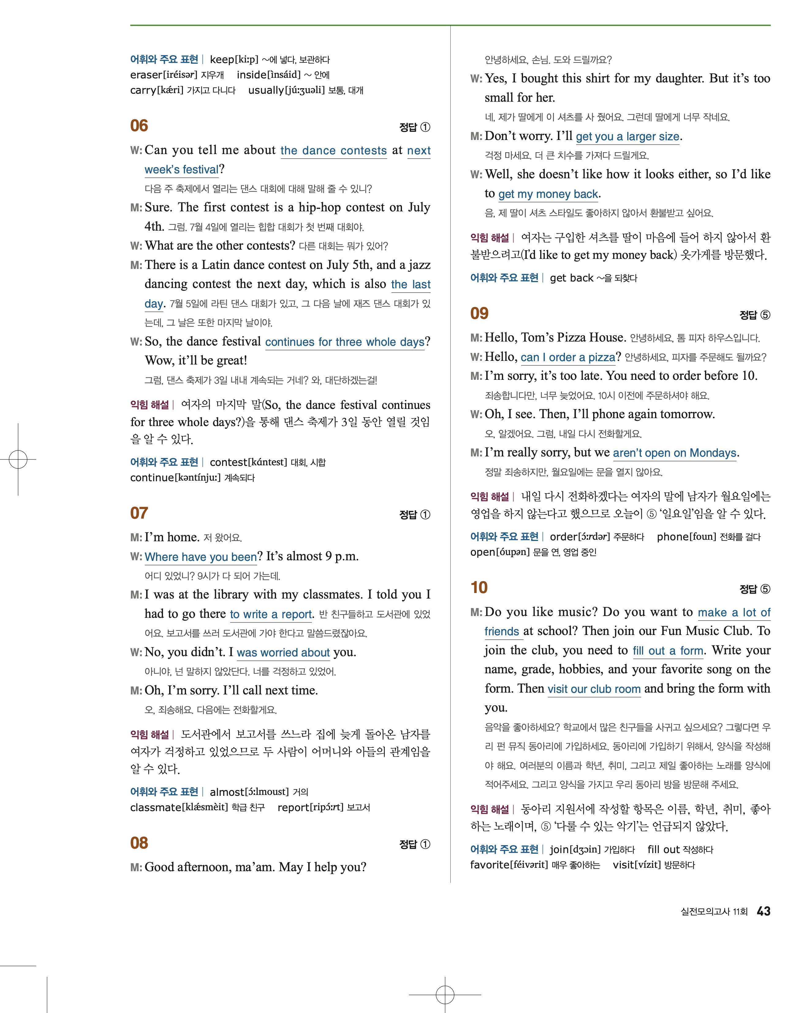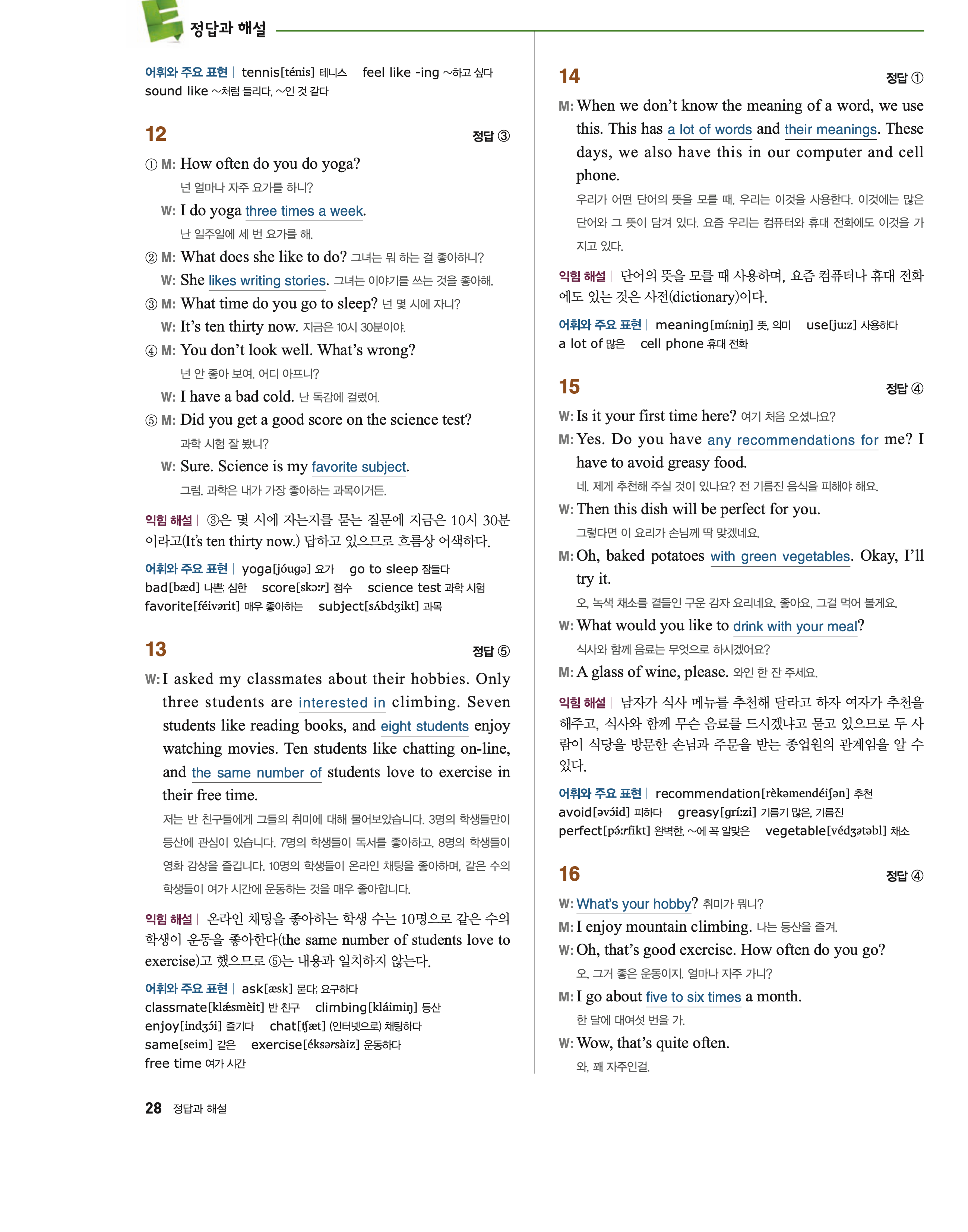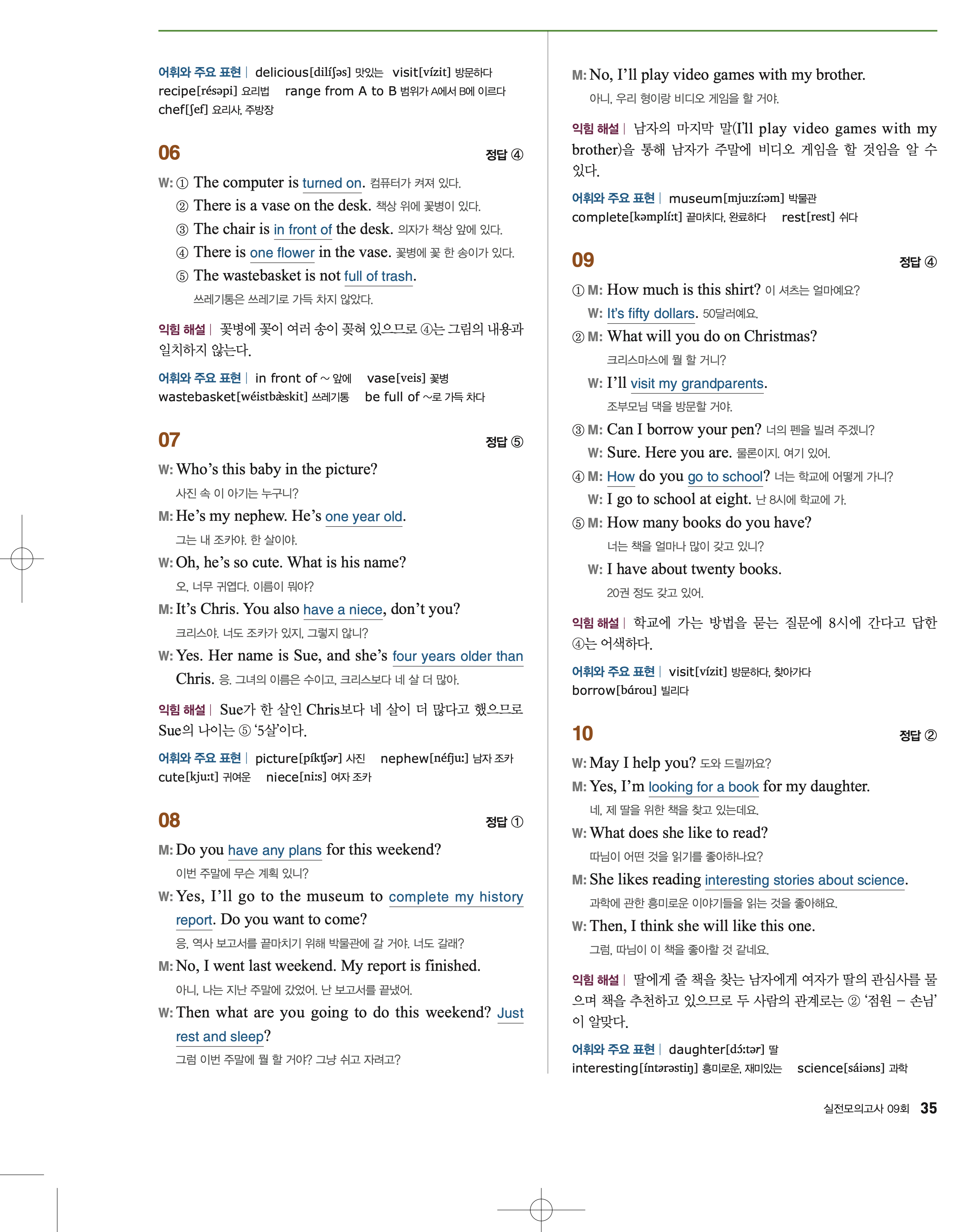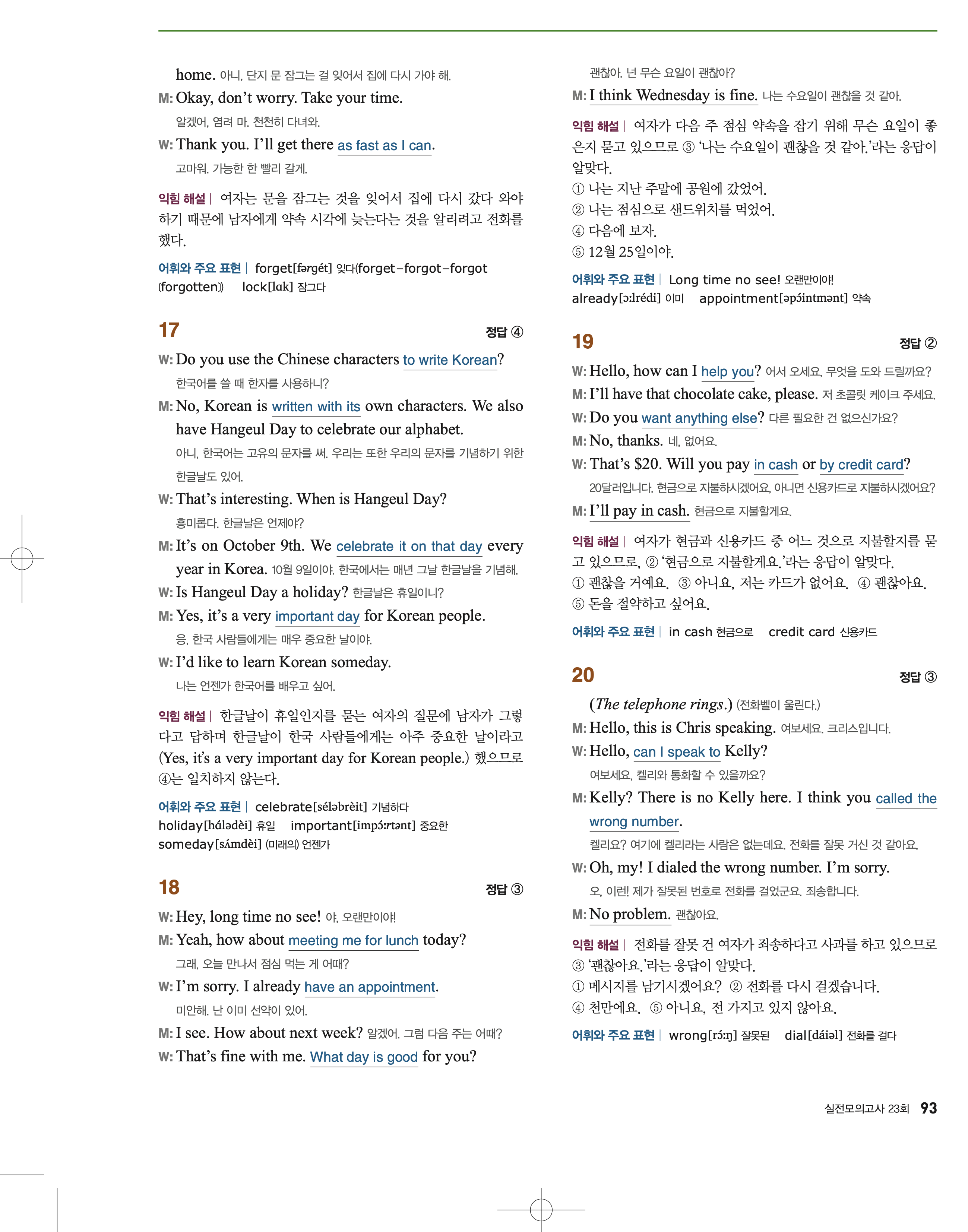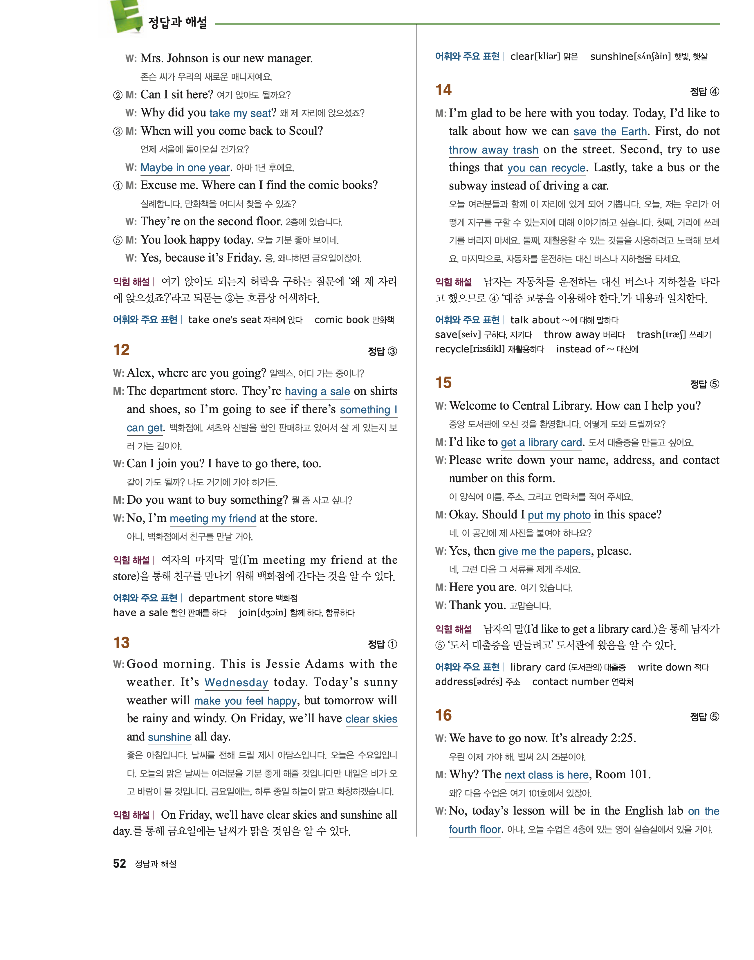 이그잼 중등 듣기모의고사25회 레벨1 답지 해설 바로보는 사진답지 빠른답지 모바일최적화