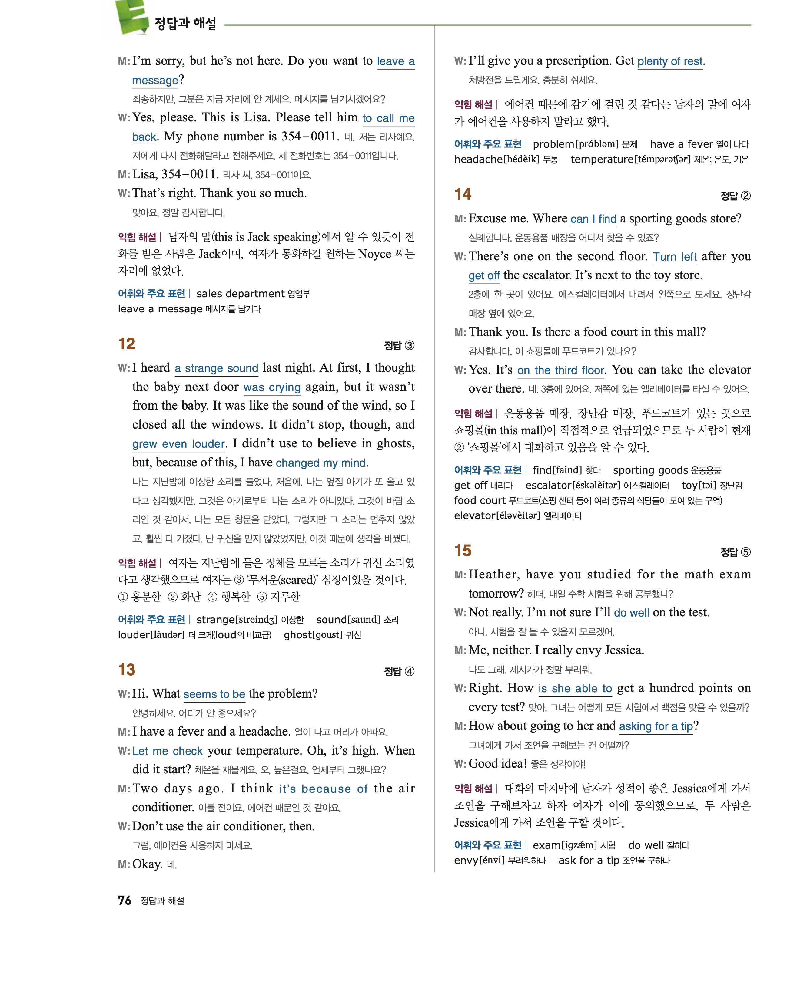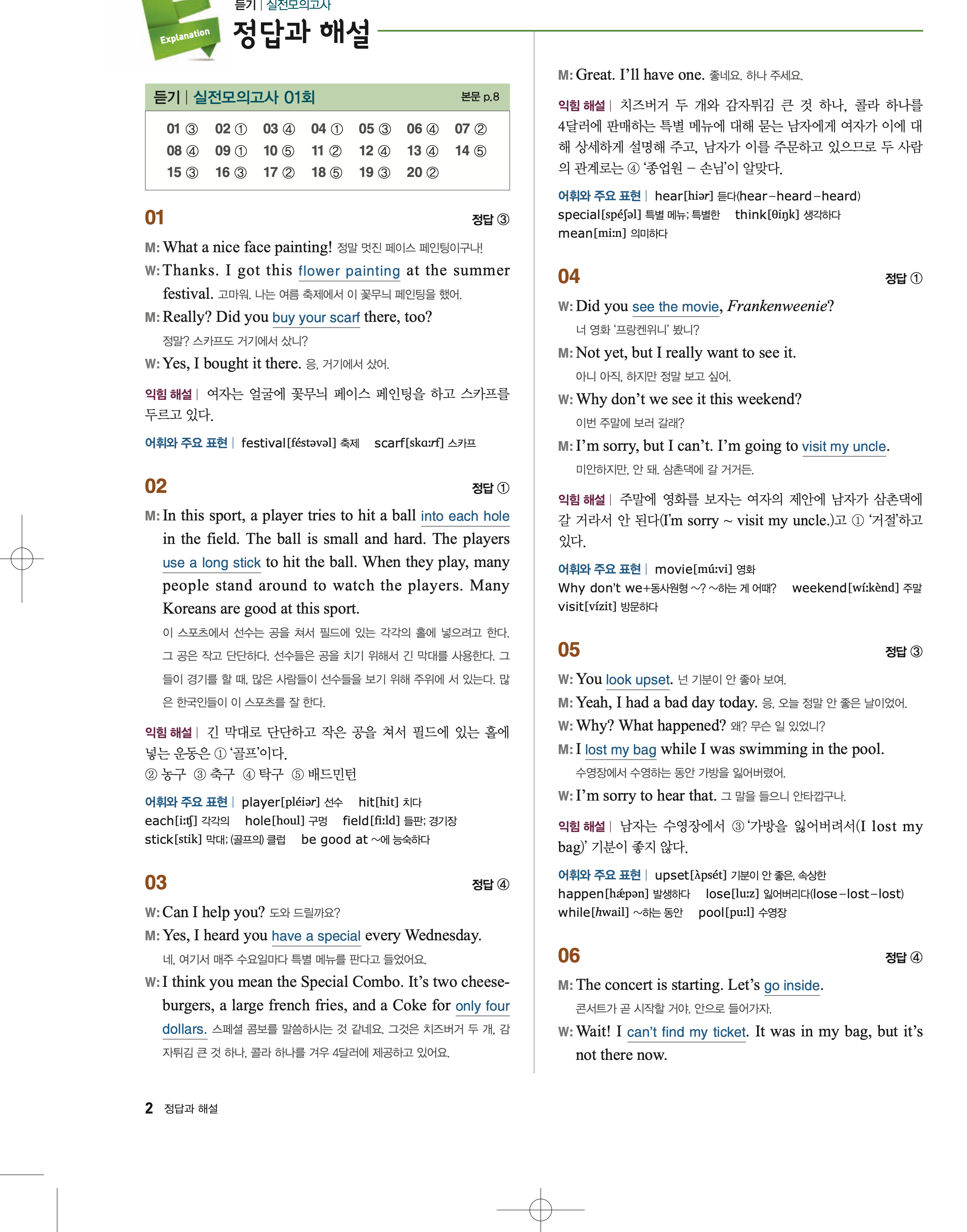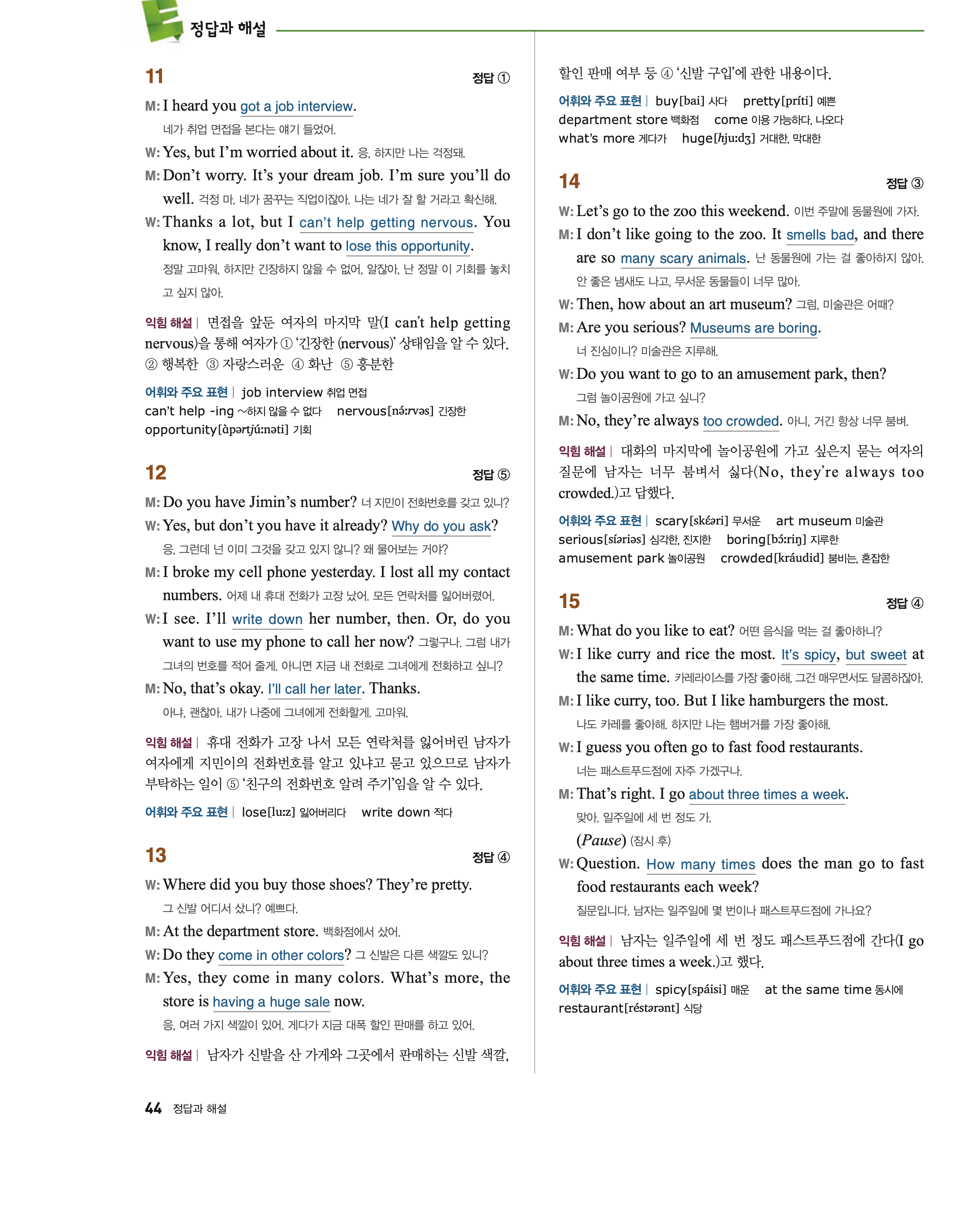 Dictation Book을 별도로 제공하여 학습 편의성을 더욱 높였으며, 각 문제와 함께 전체 대본을 다시 들으며 받아쓰기를 해봄으로써 문제와 대본의 내용을 완전히 이해하고 실제 듣기 평가에 대한 적응력을 충분히 키울 수 있도록 하였다.