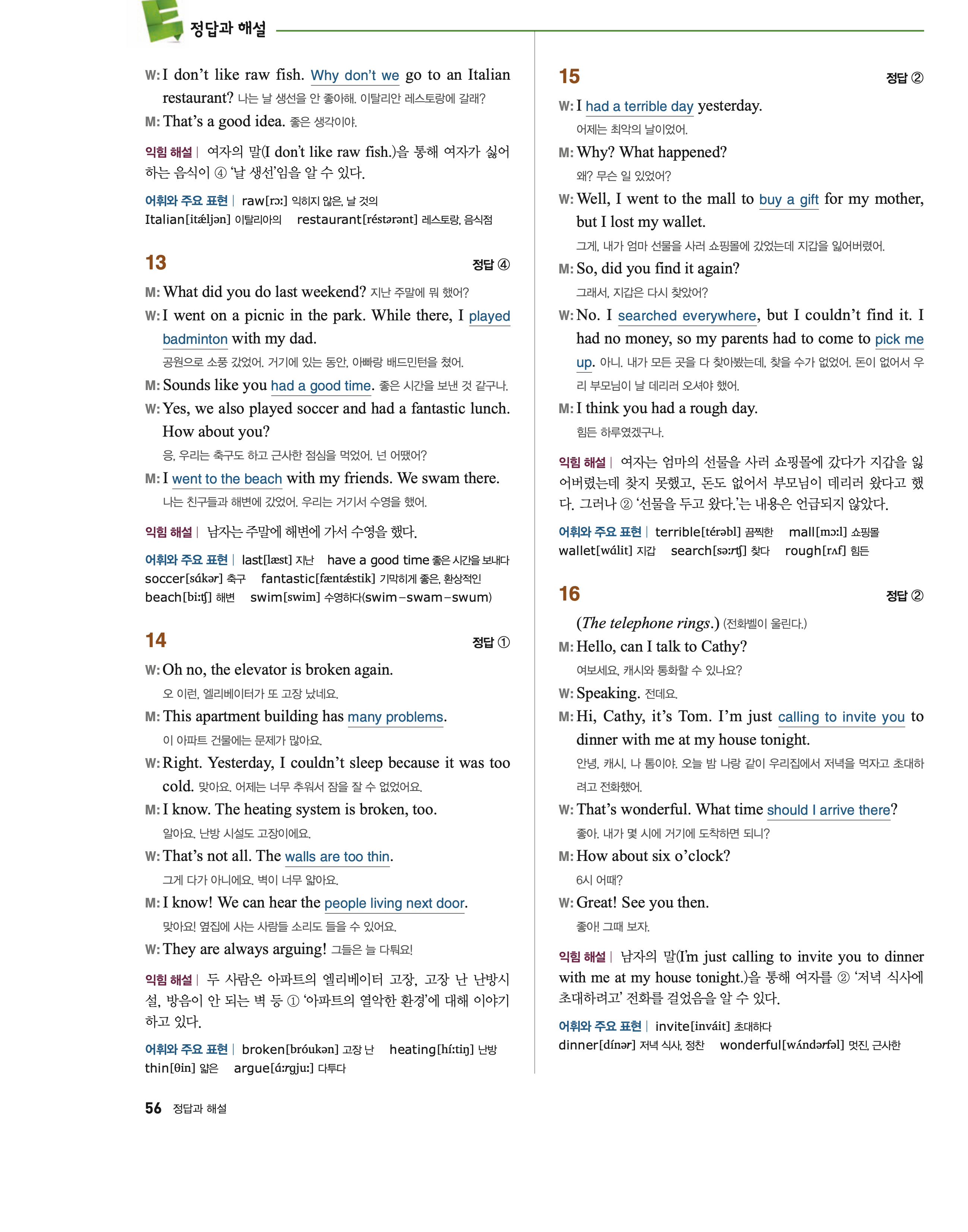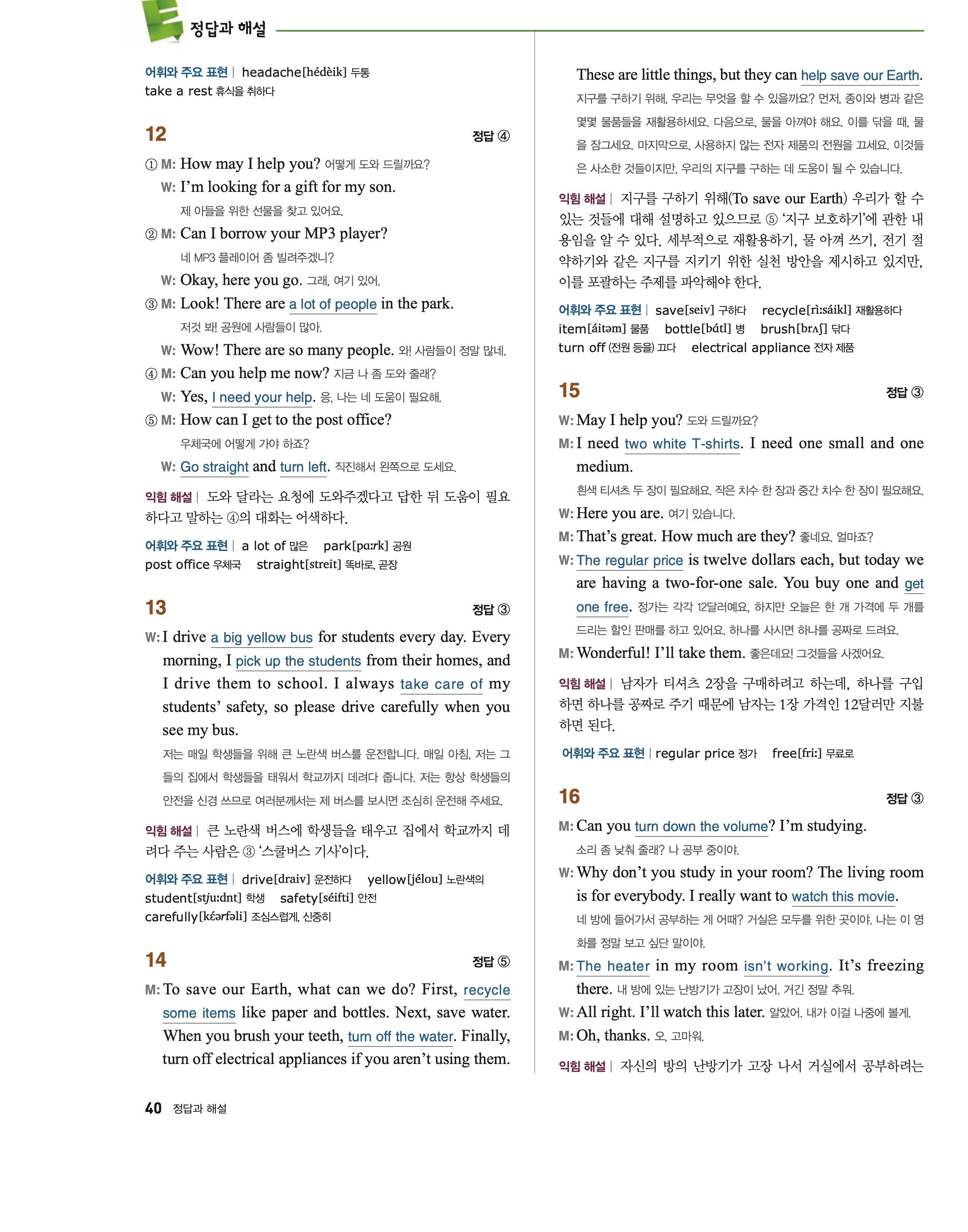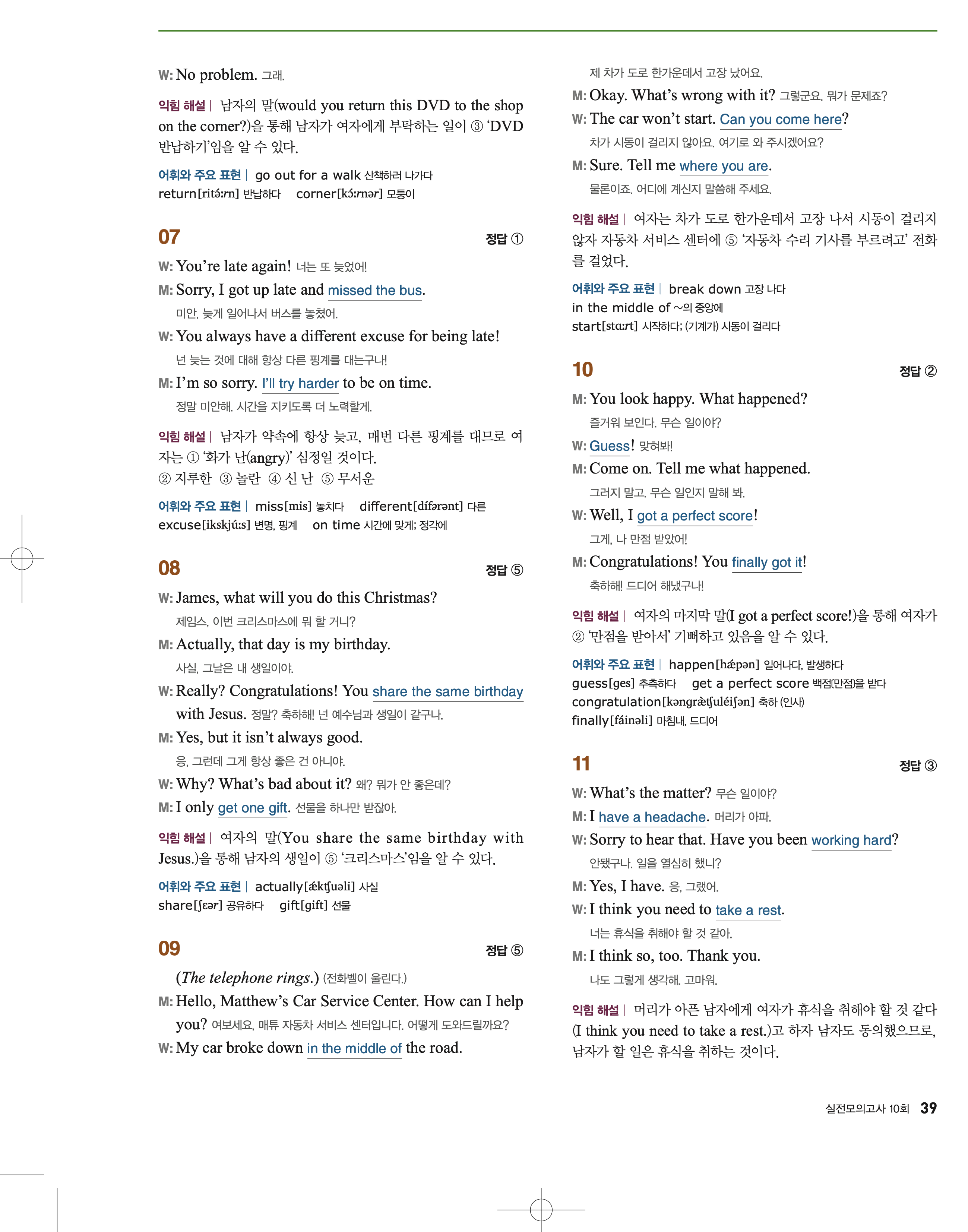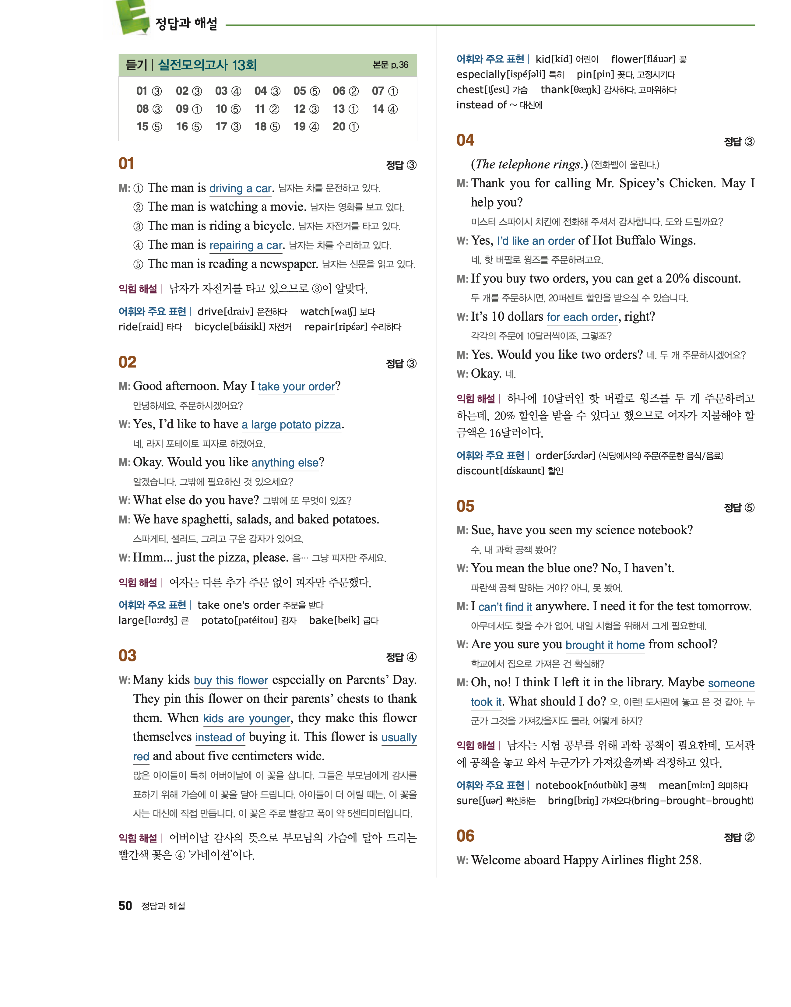 Dictation Book을 별도로 제공하여 학습 편의성을 더욱 높였으며, 각 문제와 함께 전체 대본을 다시 들으며 받아쓰기를 해봄으로써 문제와 대본의 내용을 완전히 이해하고 실제 듣기 평가에 대한 적응력을 충분히 키울 수 있도록 하였다.